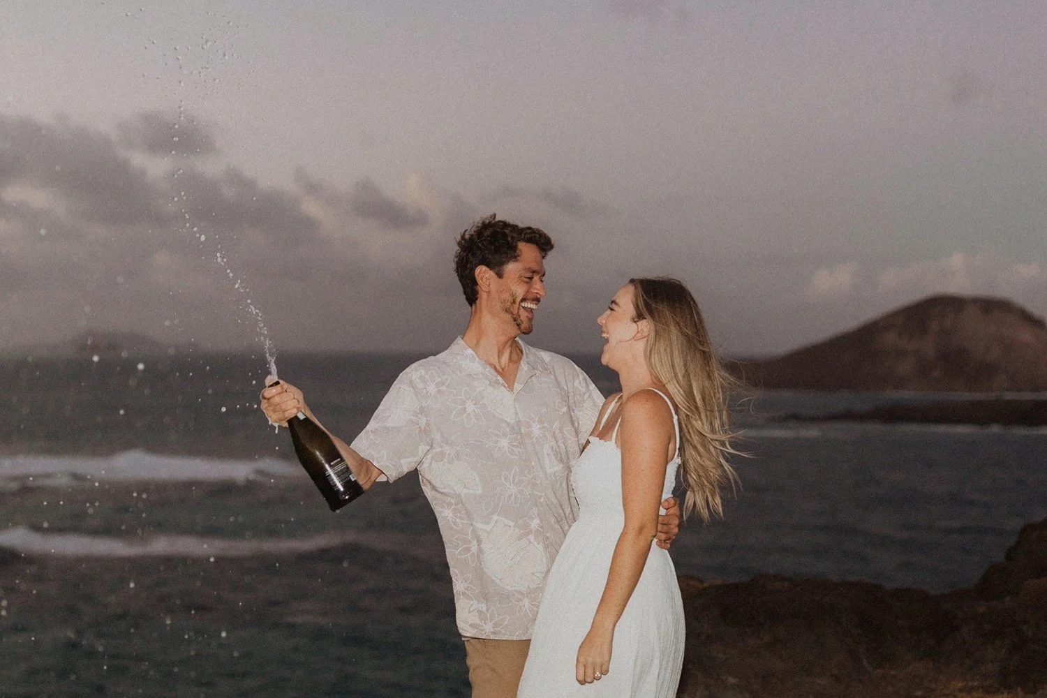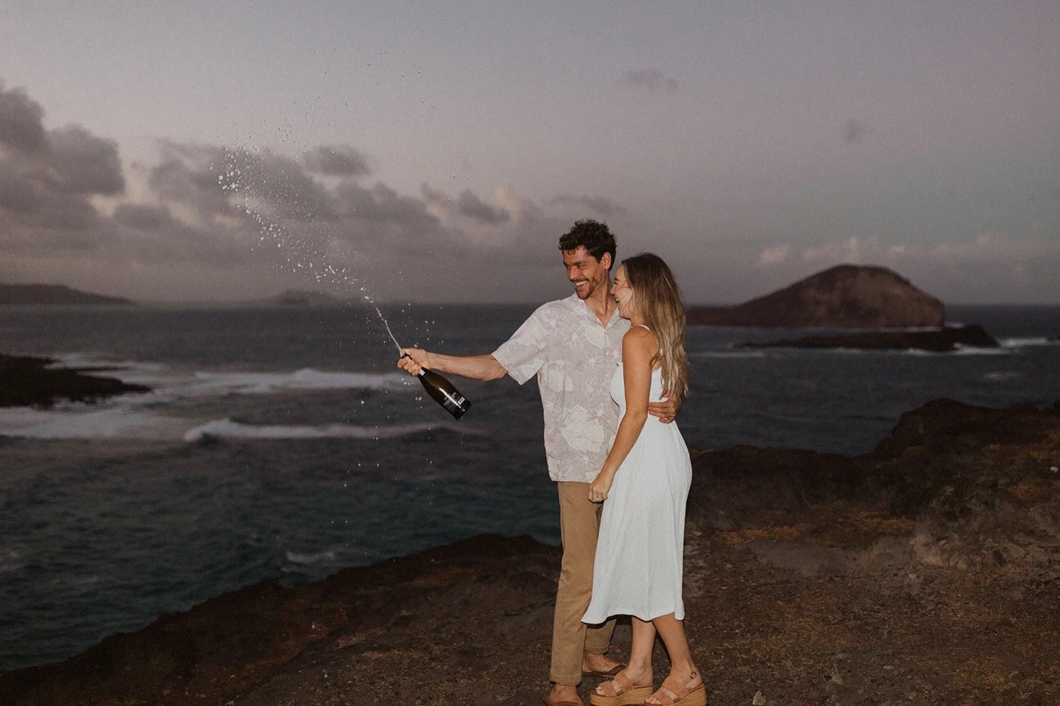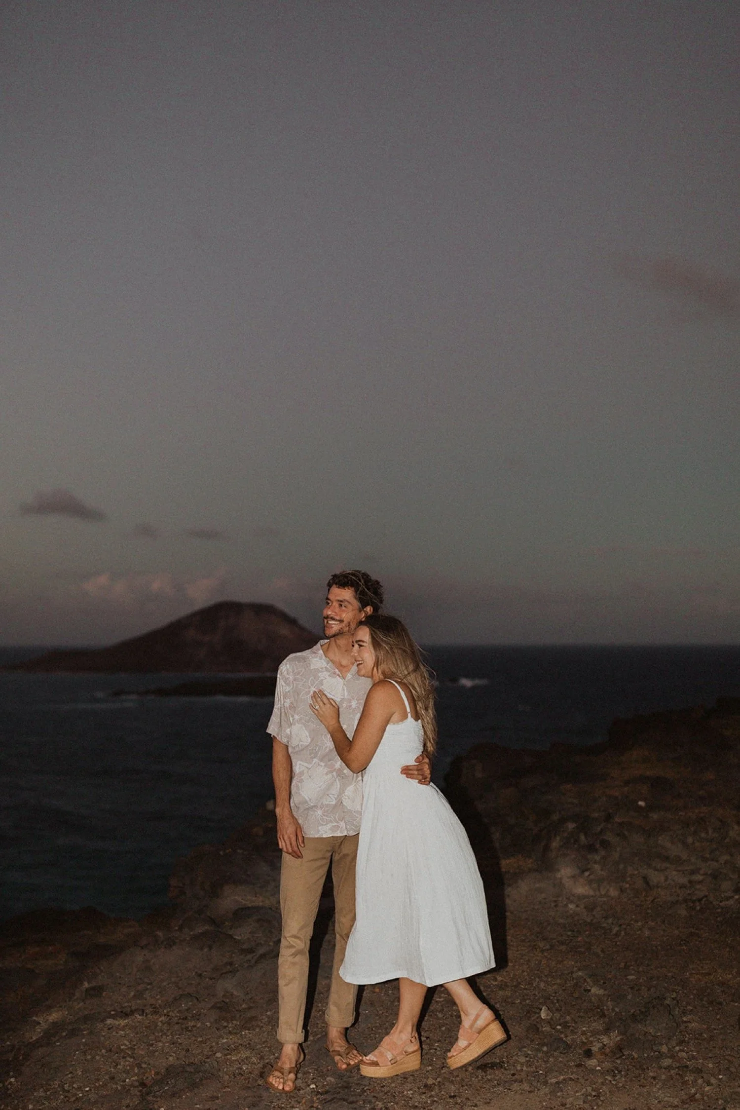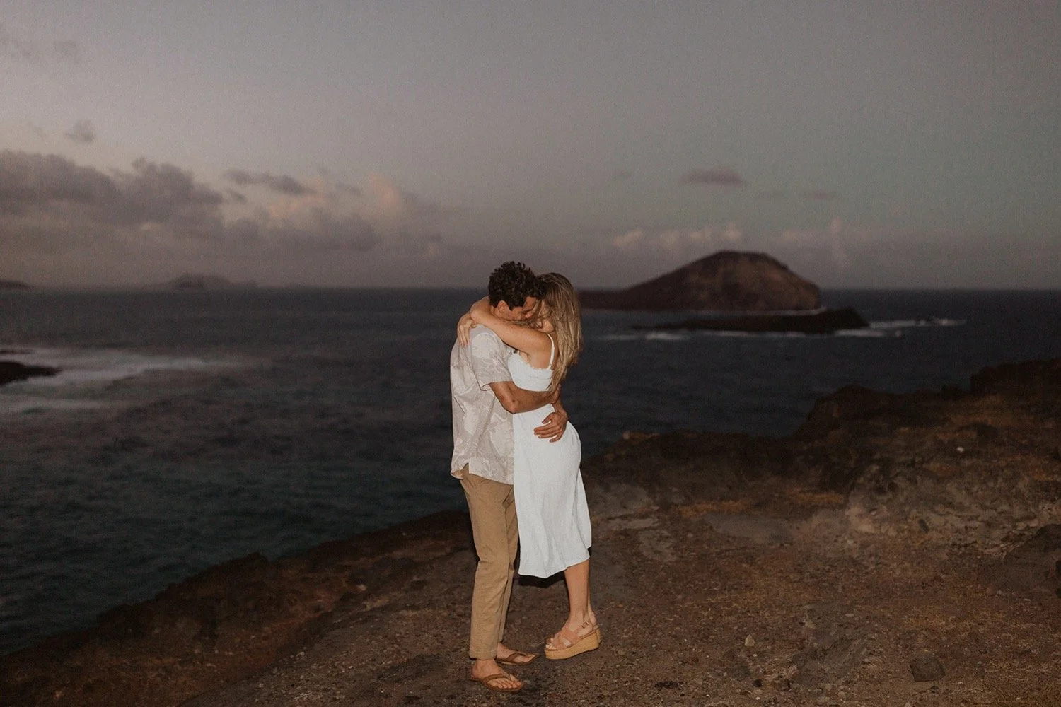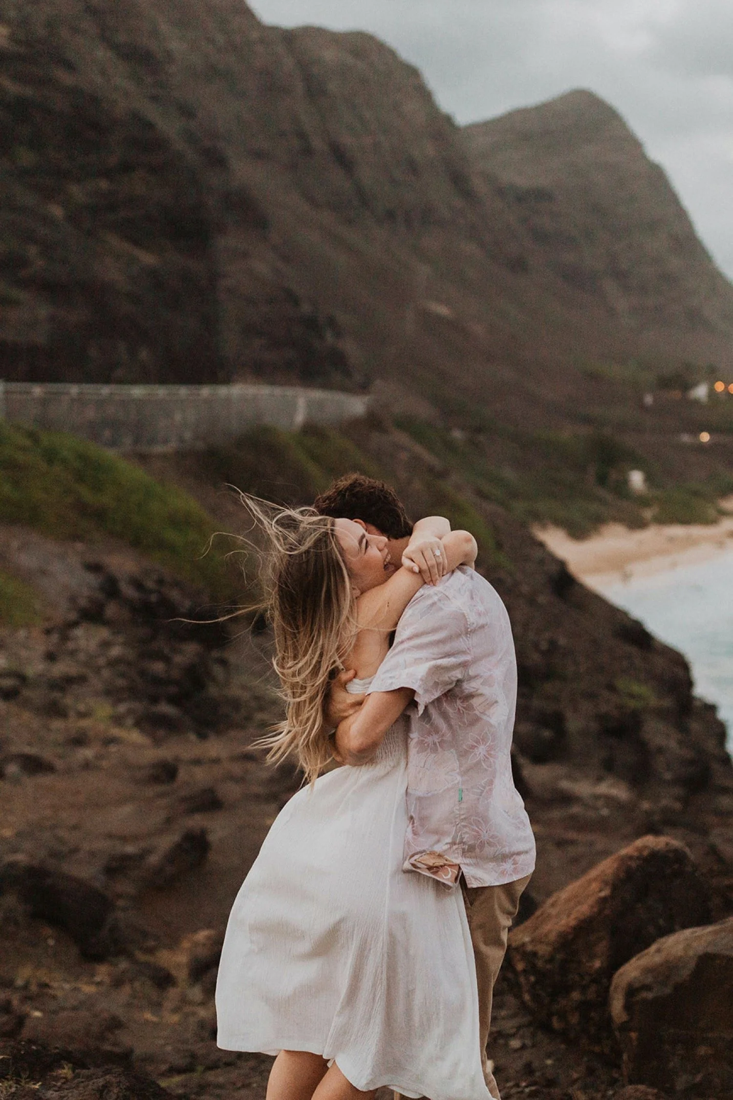 We decided to do the surprise proposal at one of my favorite lookout spots in Hawaii. It is on the East side of Oahu and has the best views of the beautiful blue ocean. This spot also looks out on the city where they live and has a gorgeous view of the island and coastline.