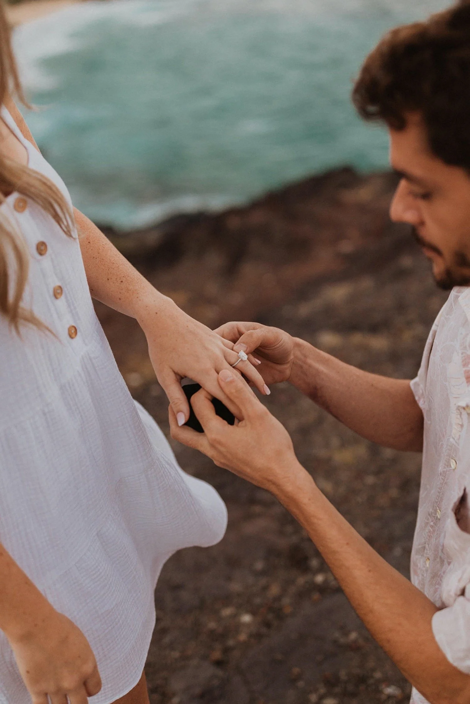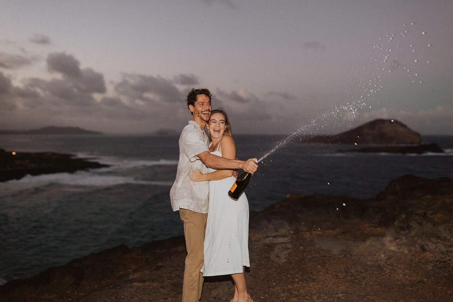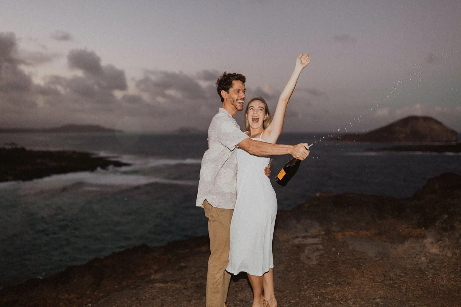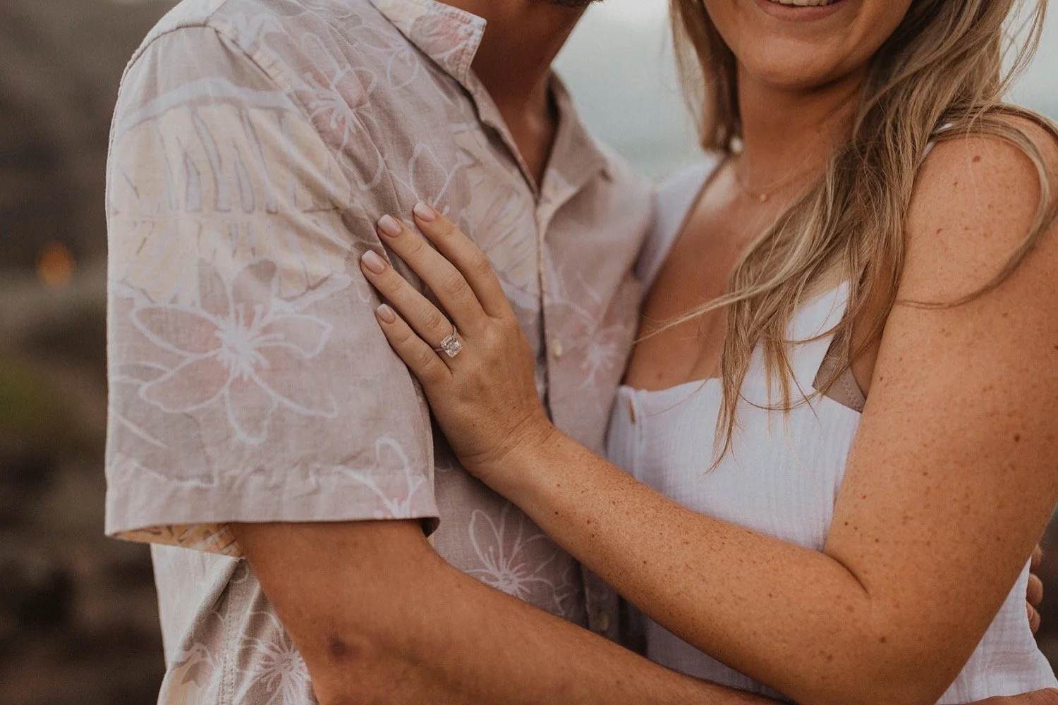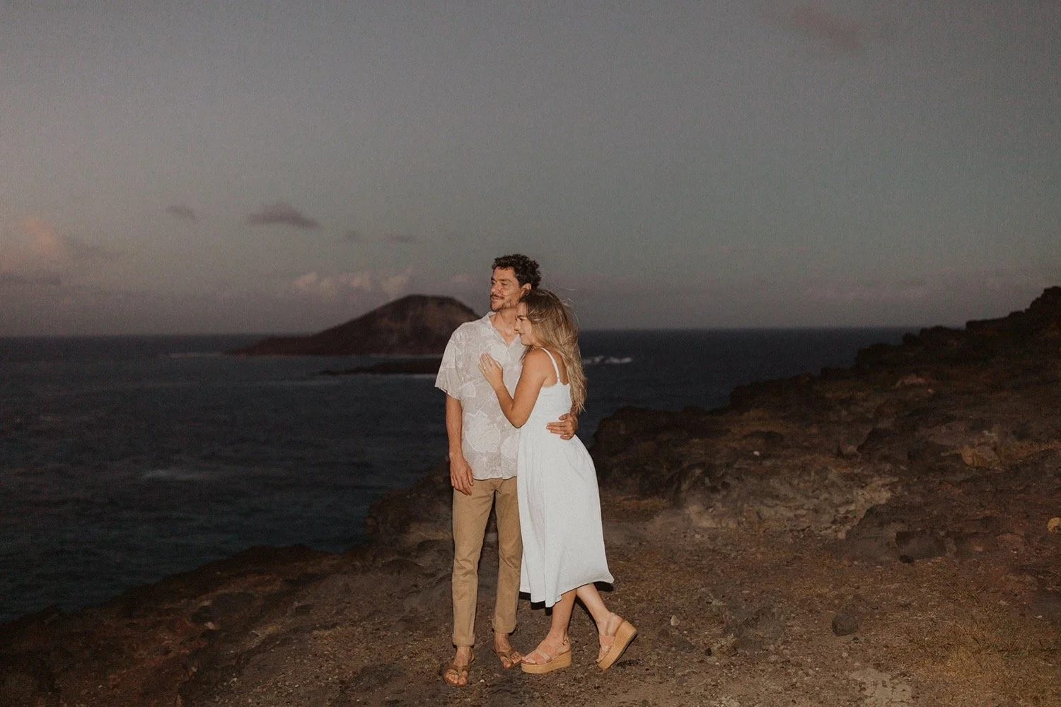 We decided to do the surprise proposal at one of my favorite lookout spots in Hawaii. It is on the East side of Oahu and has the best views of the beautiful blue ocean. This spot also looks out on the city where they live and has a gorgeous view of the island and coastline.