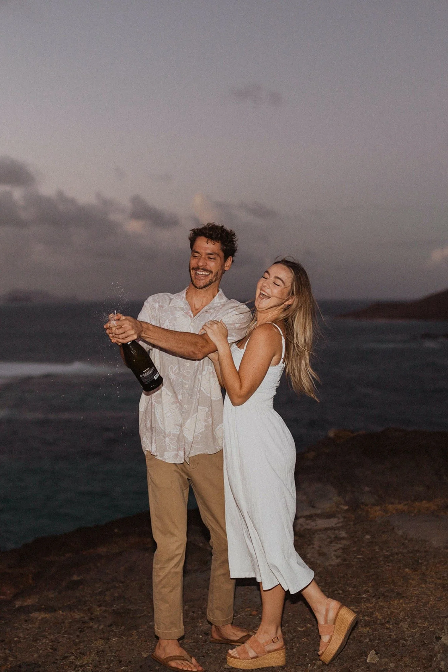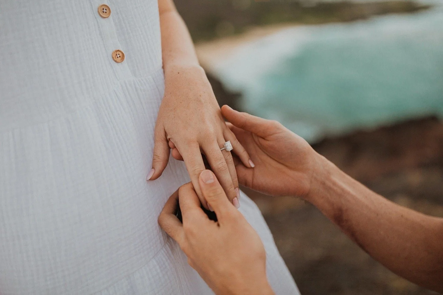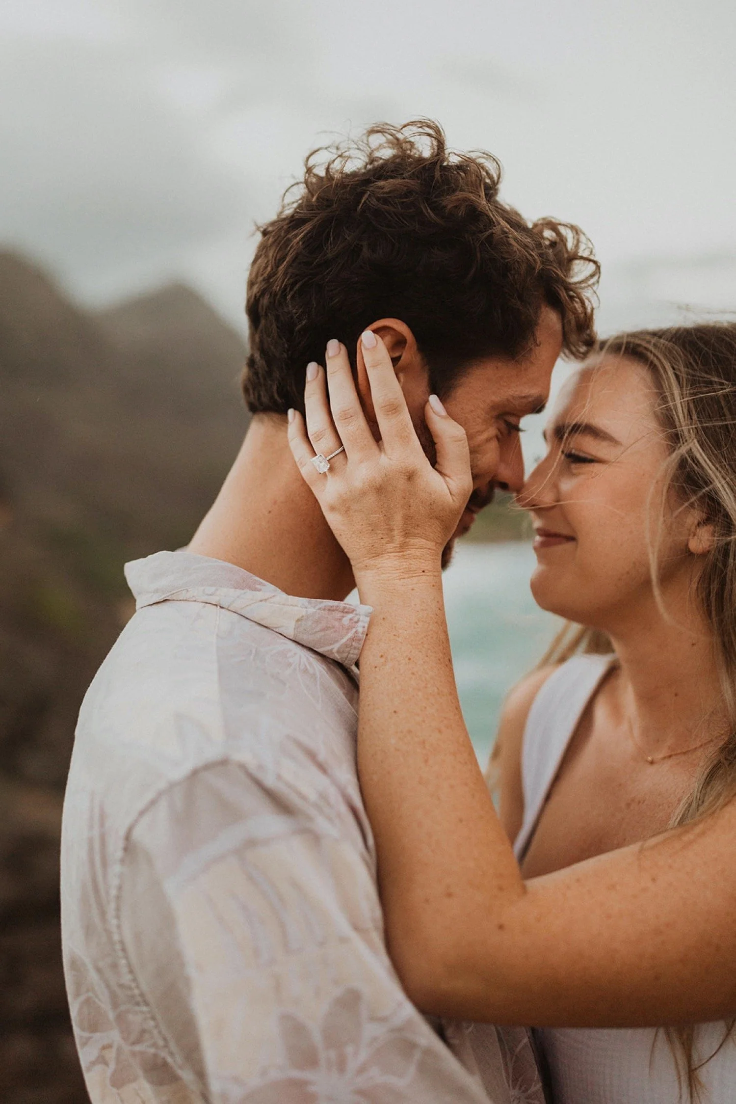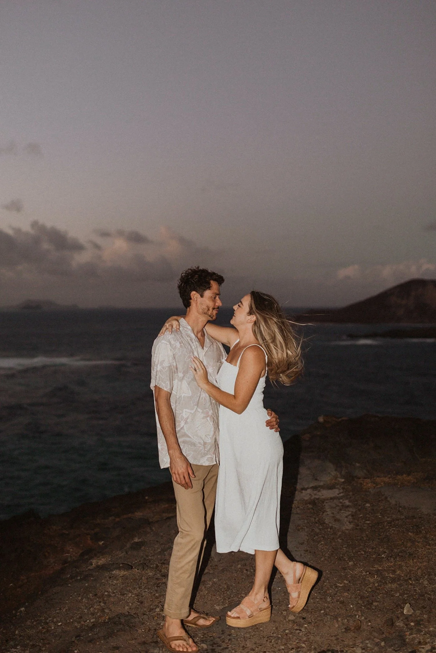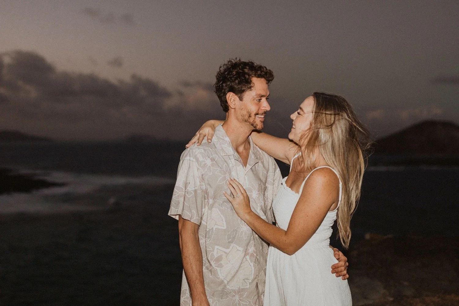 We decided to do the surprise proposal at one of my favorite lookout spots in Hawaii. It is on the East side of Oahu and has the best views of the beautiful blue ocean. This spot also looks out on the city where they live and has a gorgeous view of the island and coastline.