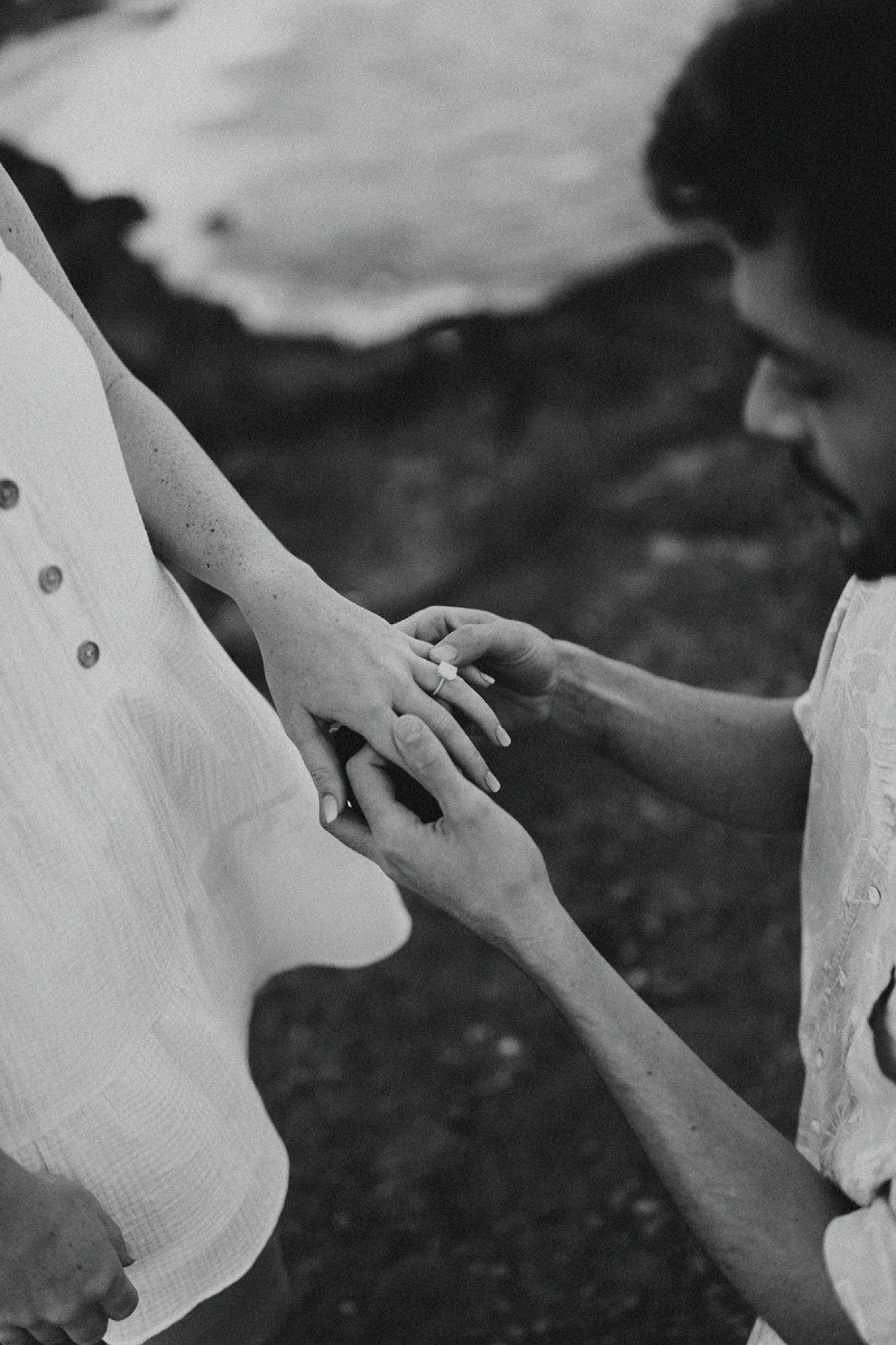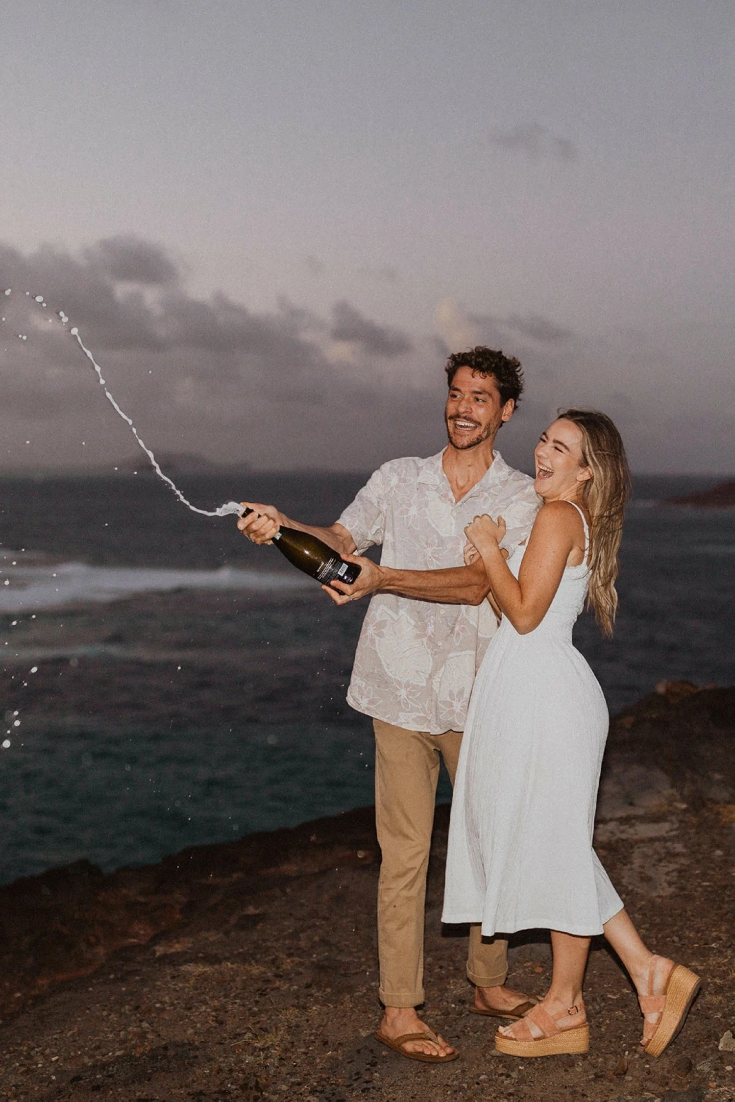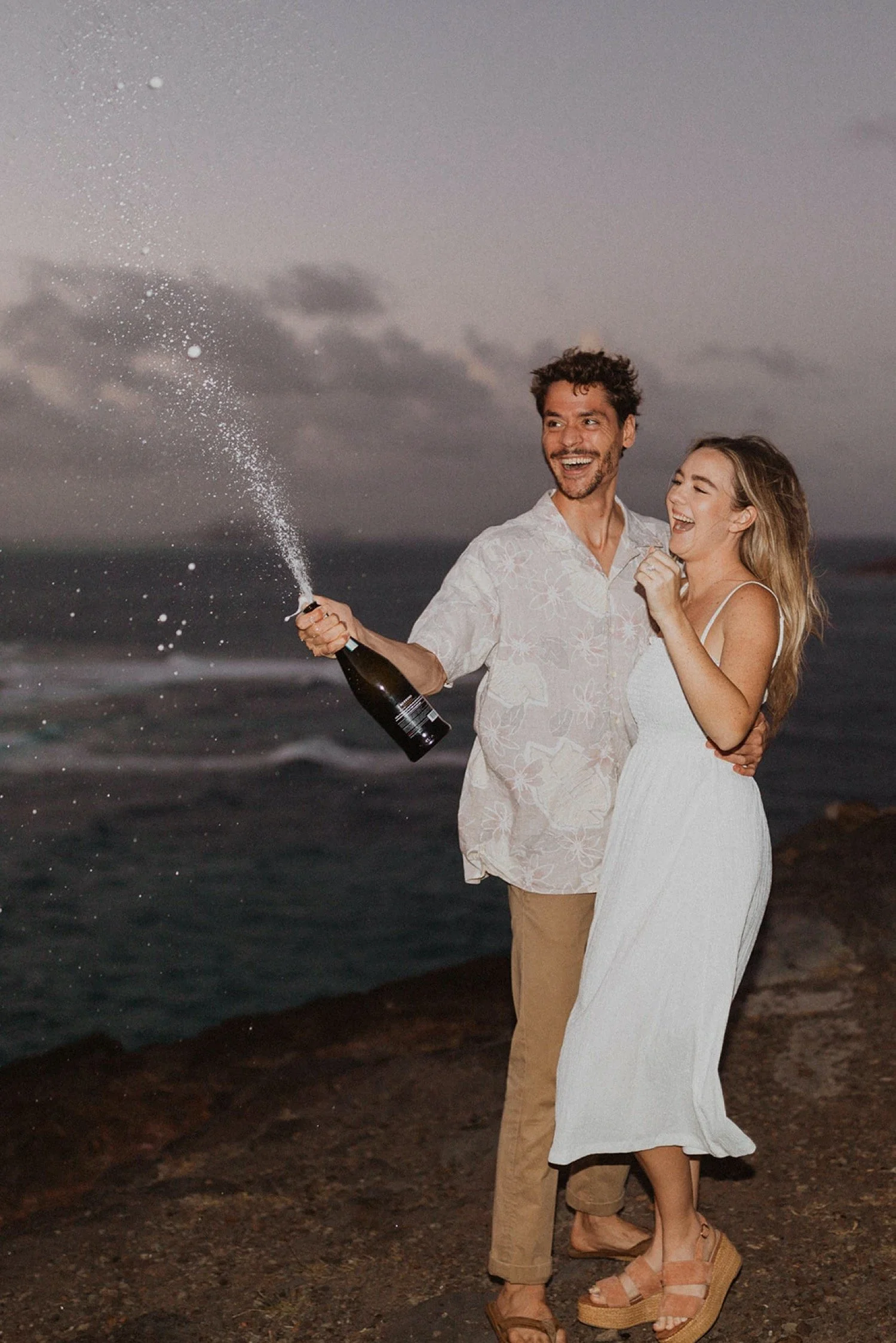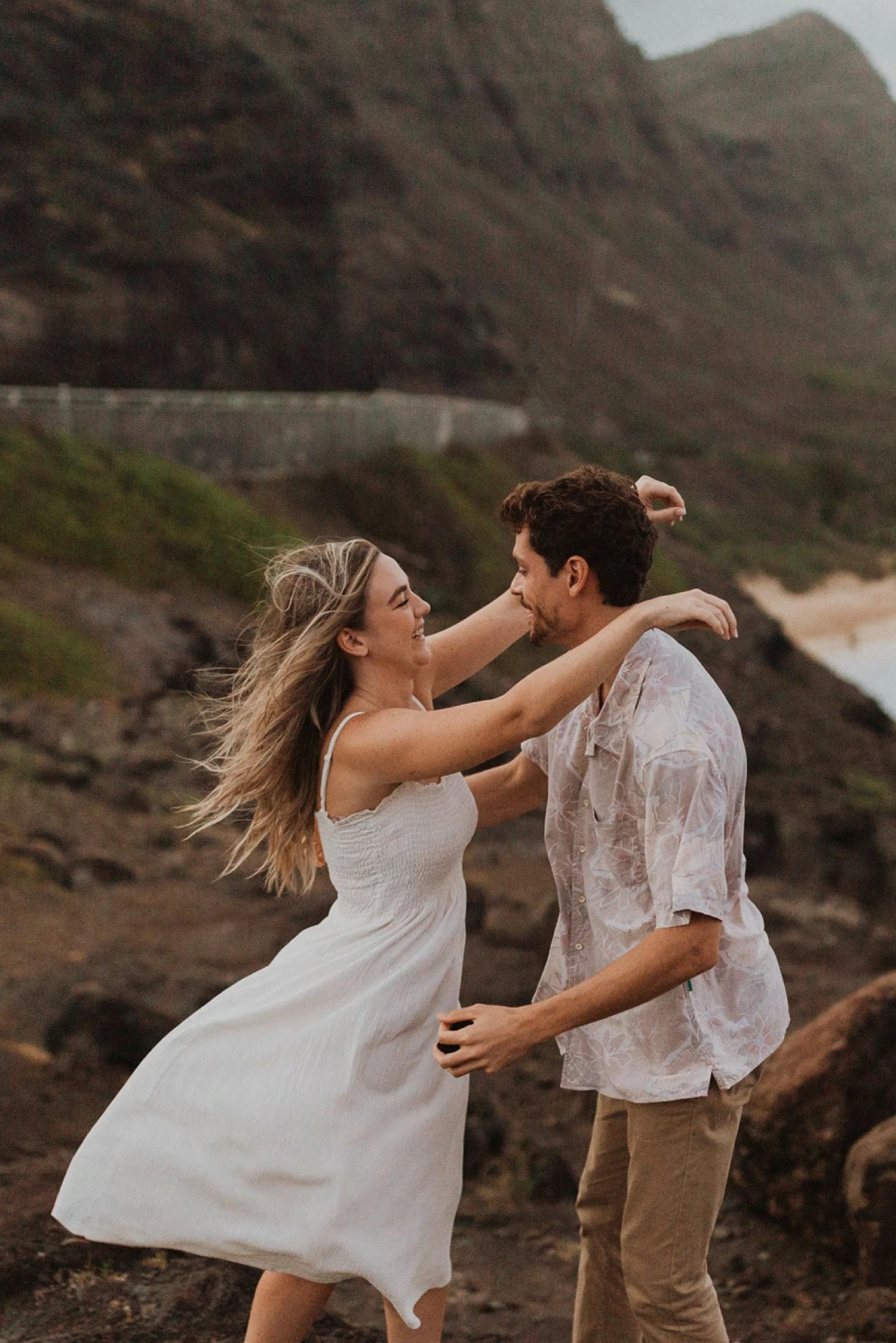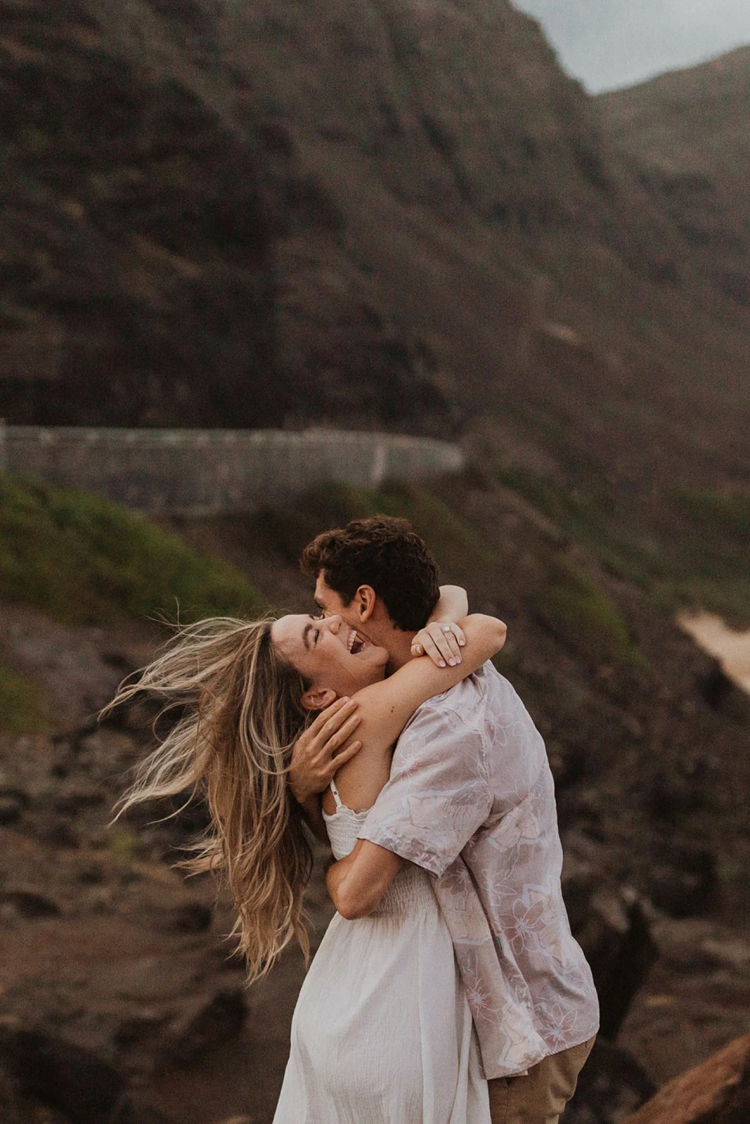 We decided to do the surprise proposal at one of my favorite lookout spots in Hawaii. It is on the East side of Oahu and has the best views of the beautiful blue ocean. This spot also looks out on the city where they live and has a gorgeous view of the island and coastline.