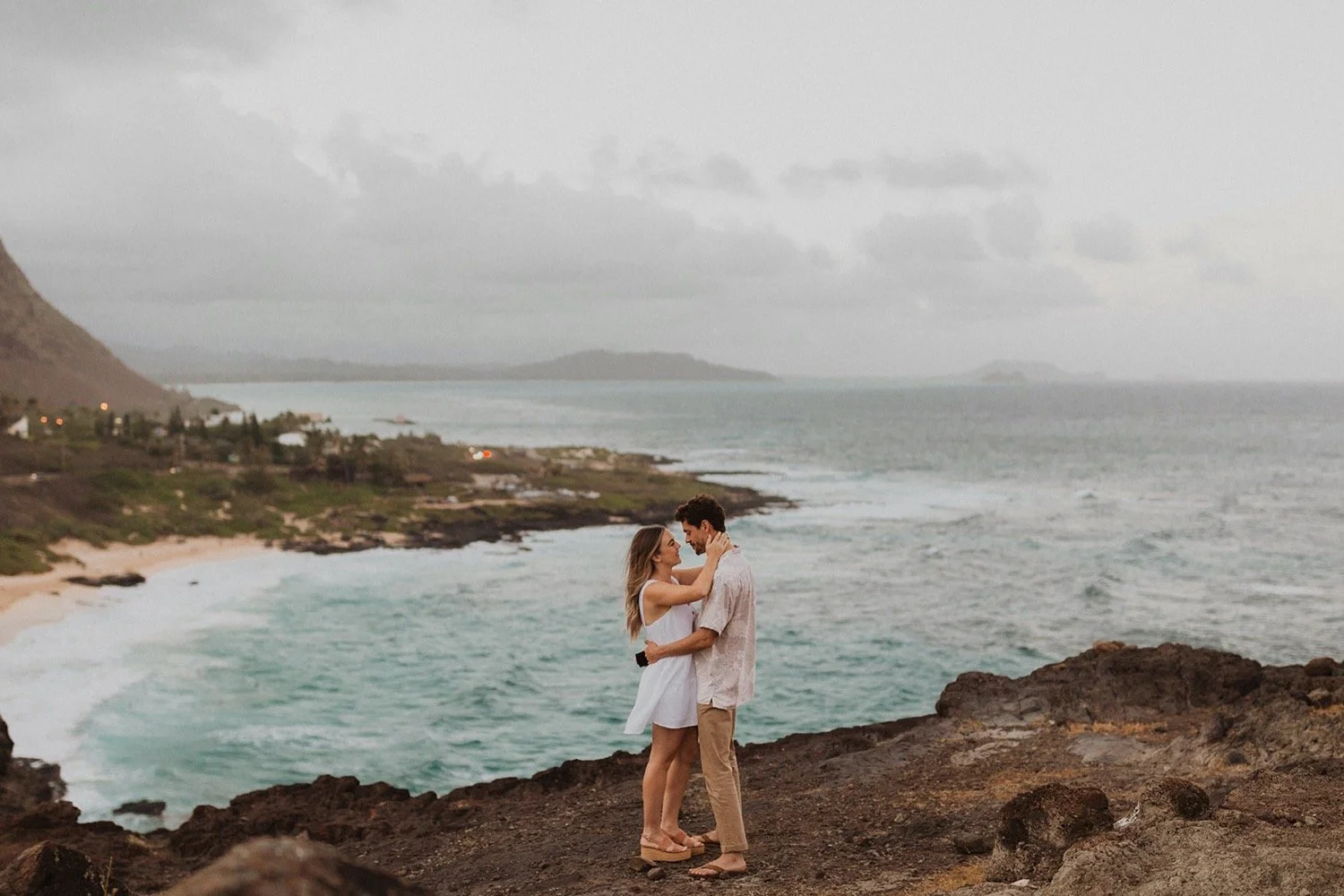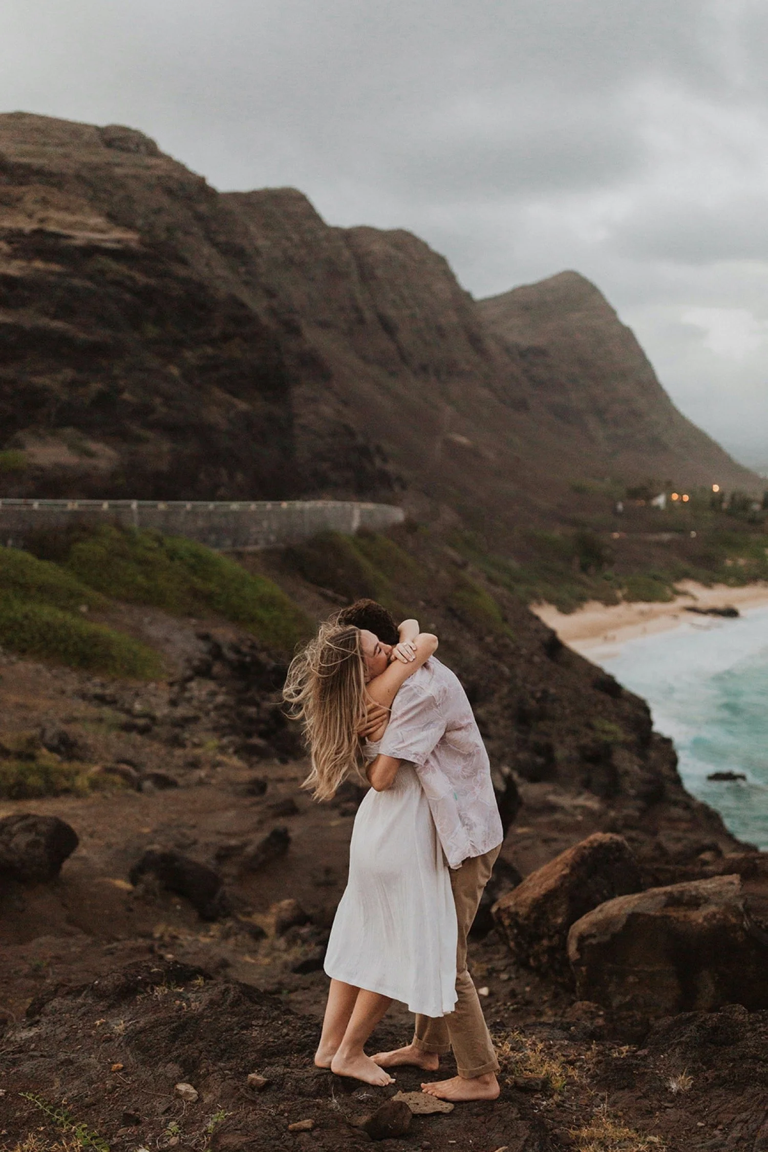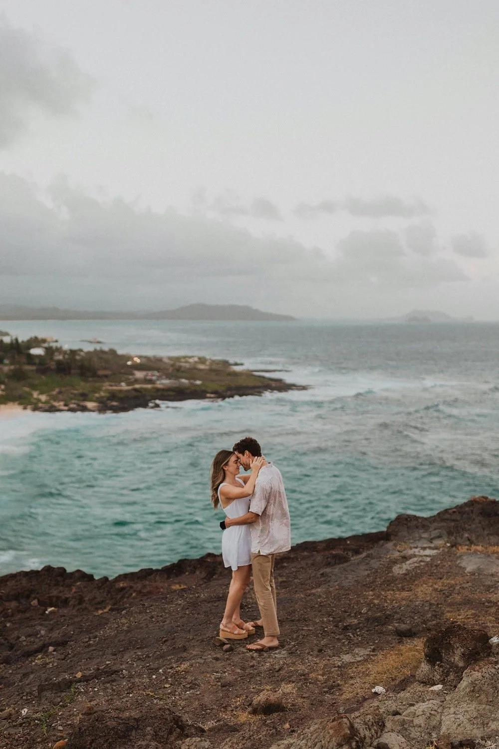 During the Hawaii winter, it tends to be a little stormy and overcast. I love the mood and feel that this brings to all the photos. This day encompassed hawaii winter perfectly! The weather  was moody and overcast that day and looked so dreamy at this ocean view lookout spot.