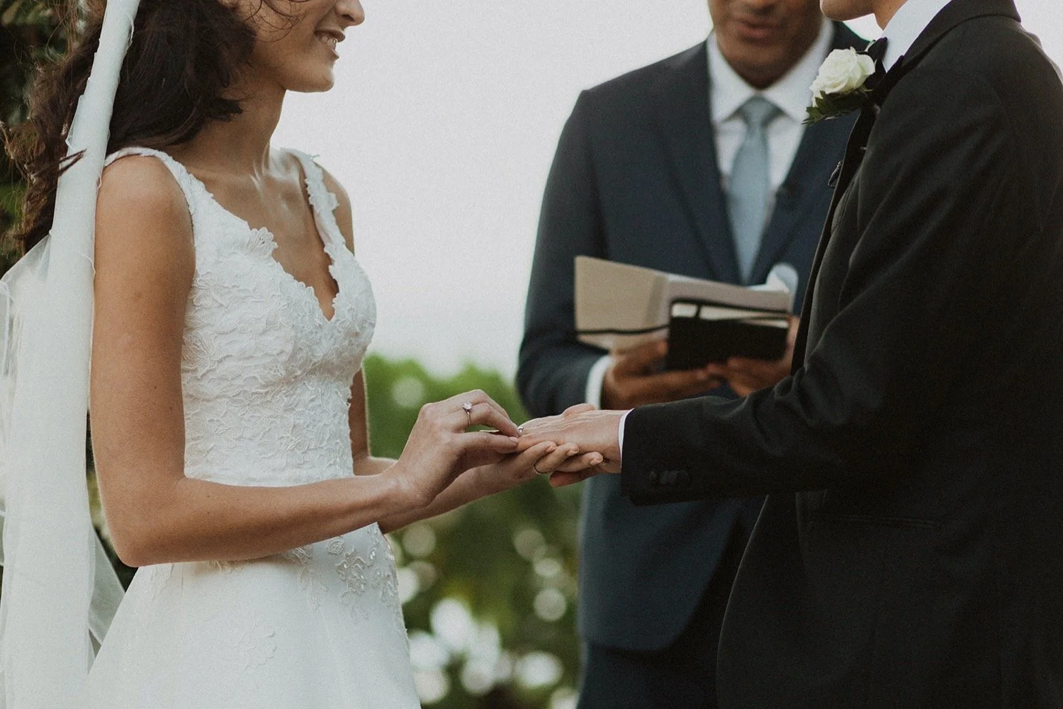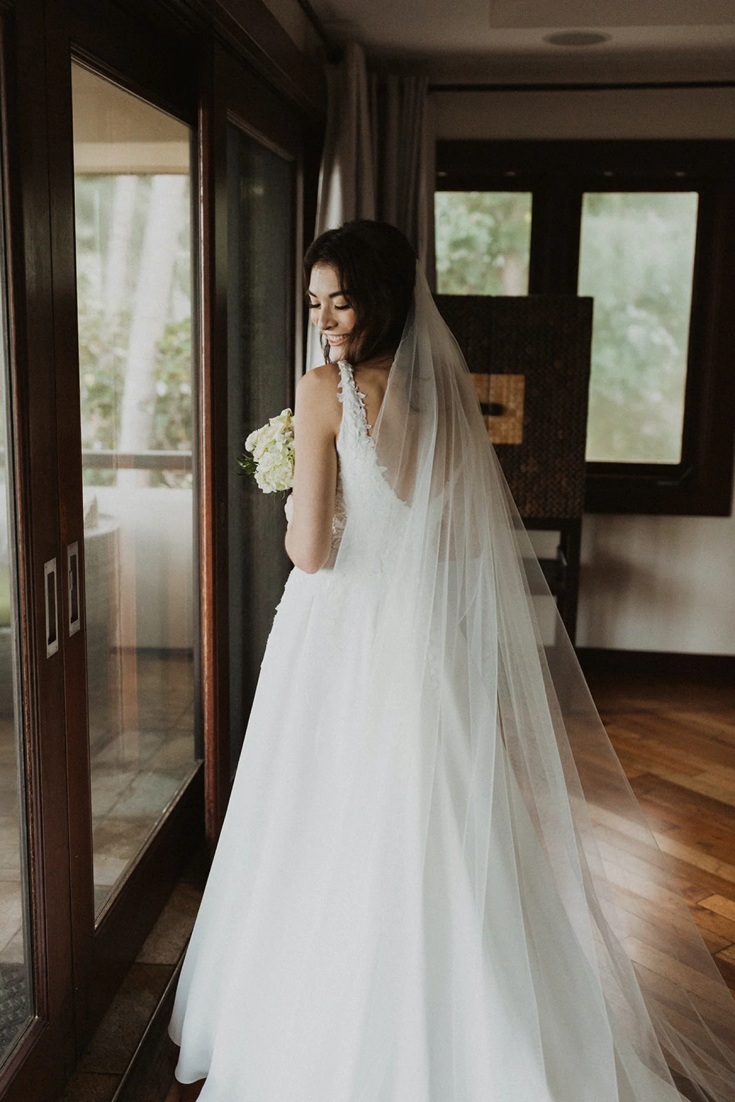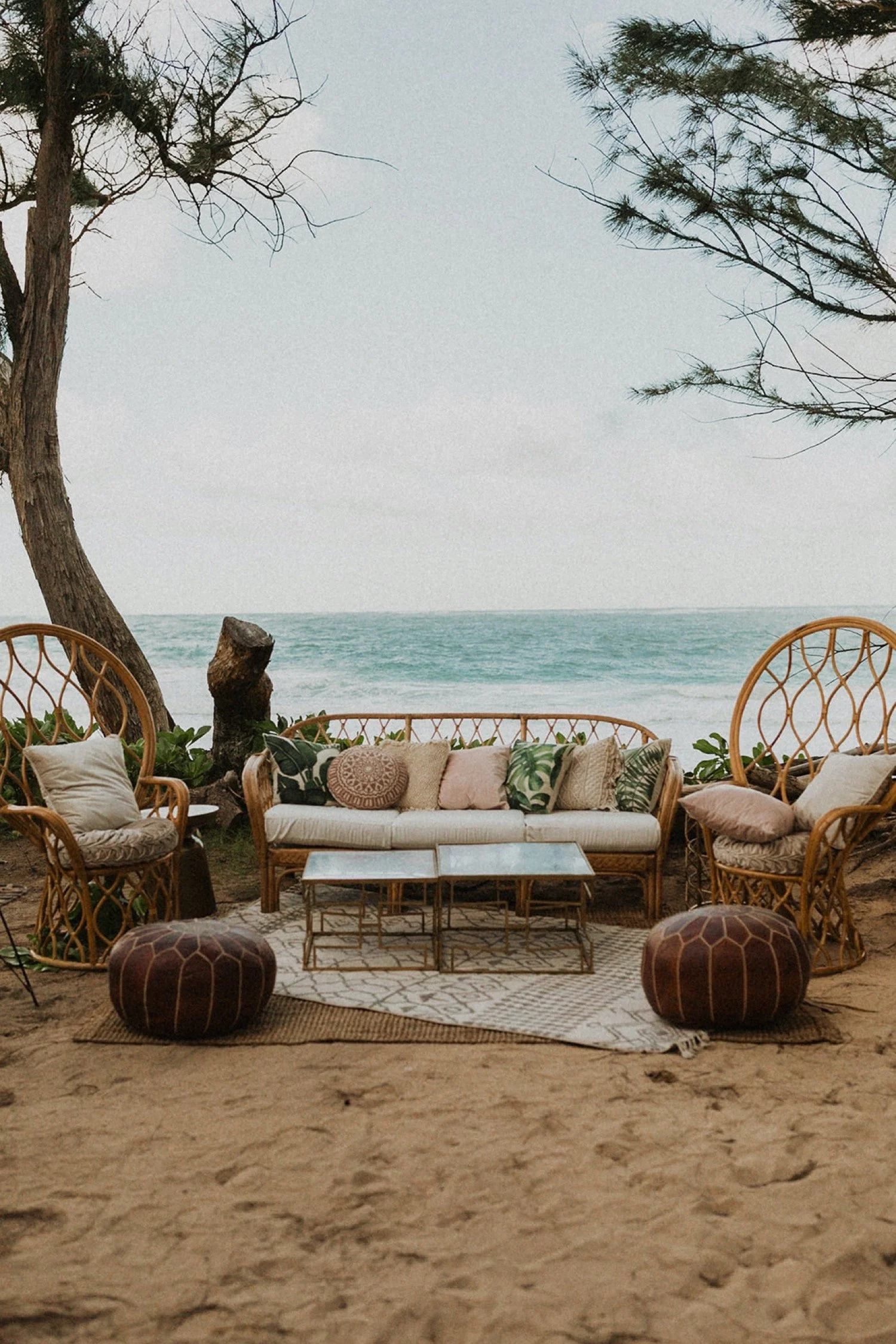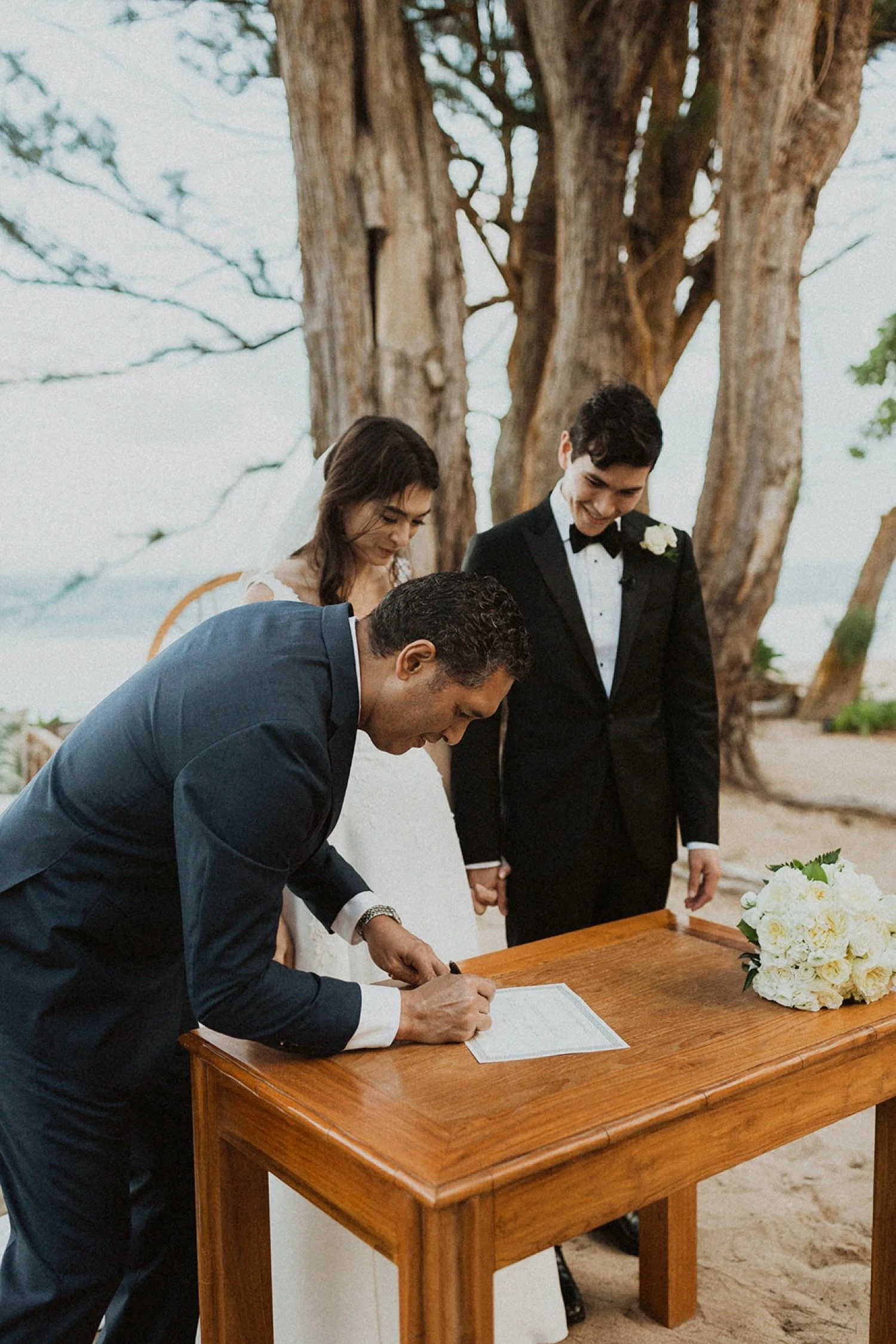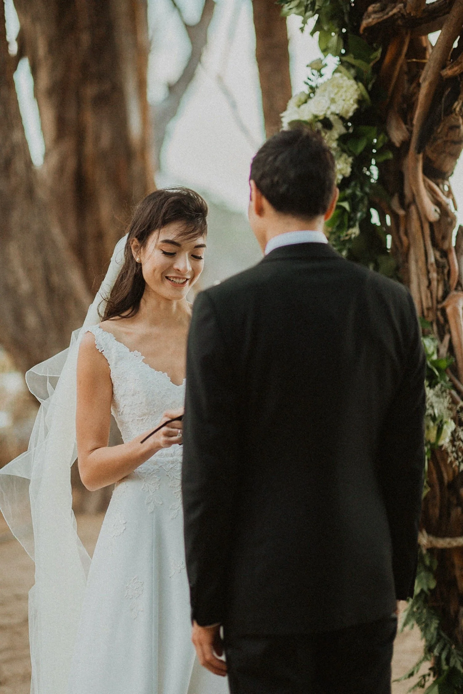 The ceremony was set up in the backyard of the private estate. It was right on the water’s edge and had the prettiest views of the blue Hawaiian ocean. They said the sweetest vows in front of a stunning driftwood floral wedding arch and things got emotional. Kyle and Jessica have been together for over 6 years so being able to witness them commit forever together was so special.