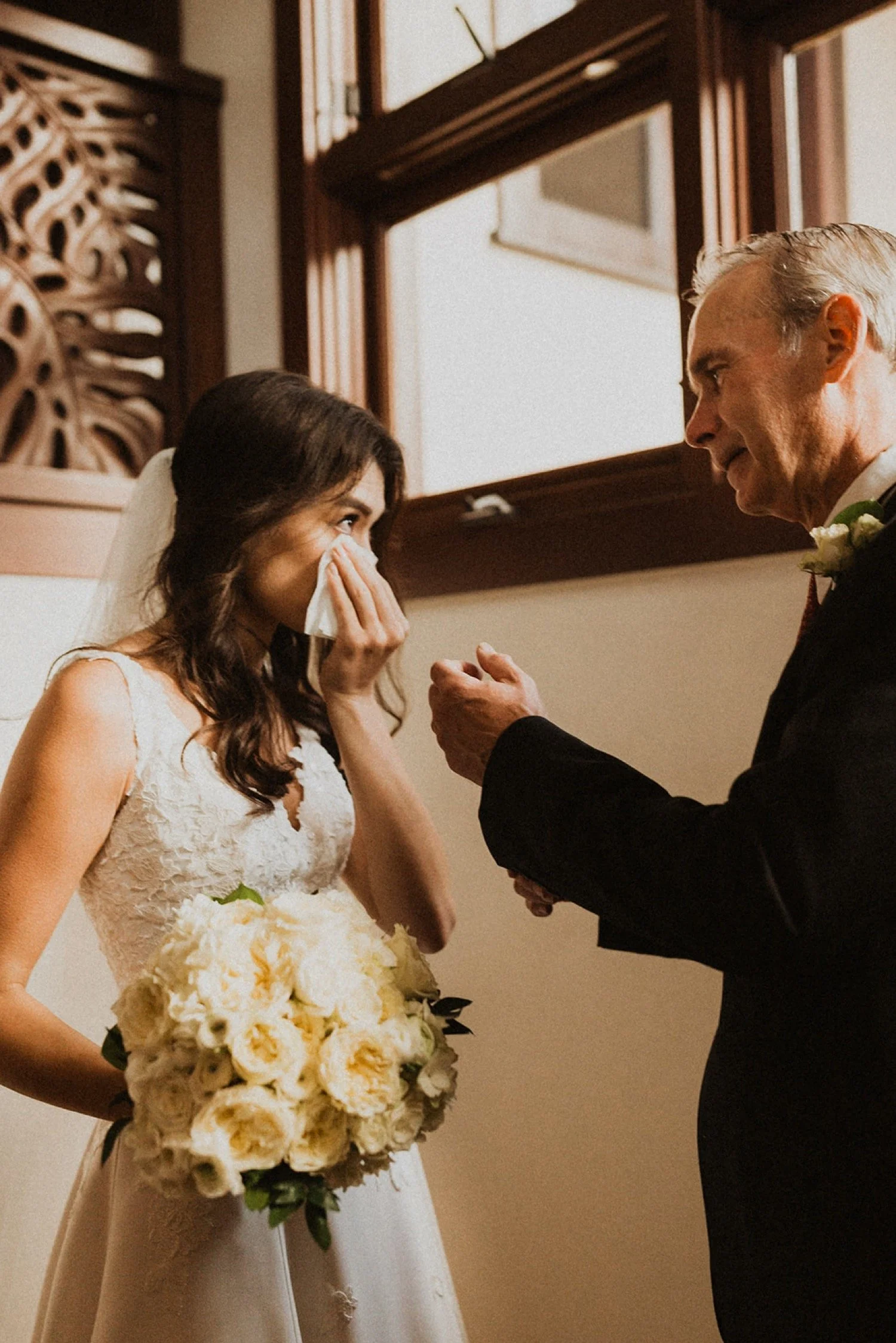 Jessica was the sweetest bride. She looked so effortlessly beautiful in her elegant lace v-neck dress and fit the ocean view venue perfectly! Her mom helped her get ready and those were some of the sweetest moments to capture. Her father’s reaction to seeing his daughter in her wedding gown was priceless, such a sweet and special moment.
