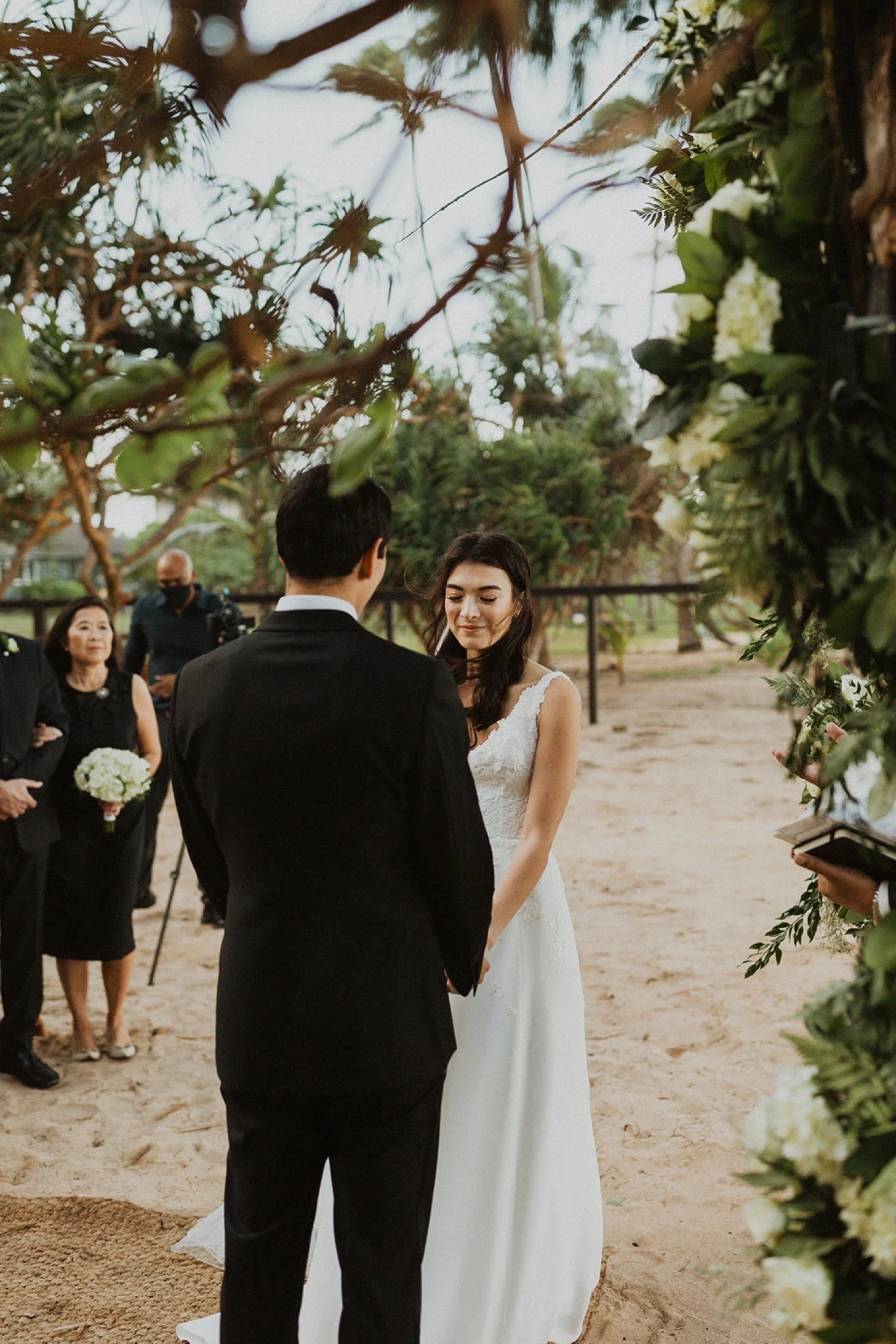 Kyle and Jessica originally planned for a beautiful new york city wedding. Because of COVID, all their plans had to be changed and they decided on an intimate elopement on the North Shore of Oahu, Hawaii. These two truly made the most out of their situation and planned a beautiful day with their family. The change of plans turned out to be so stunning. It was a day focused on them, and simply just celebrated their love and made the most of having a safe wedding during a pandemic!