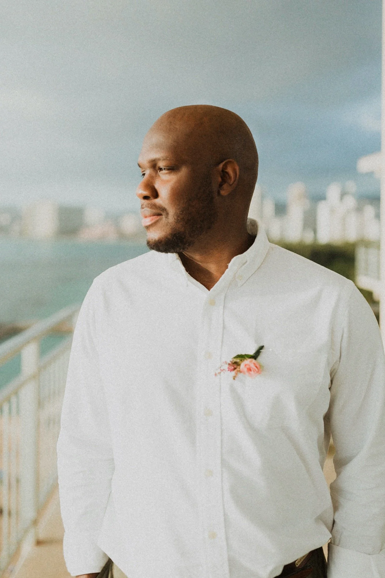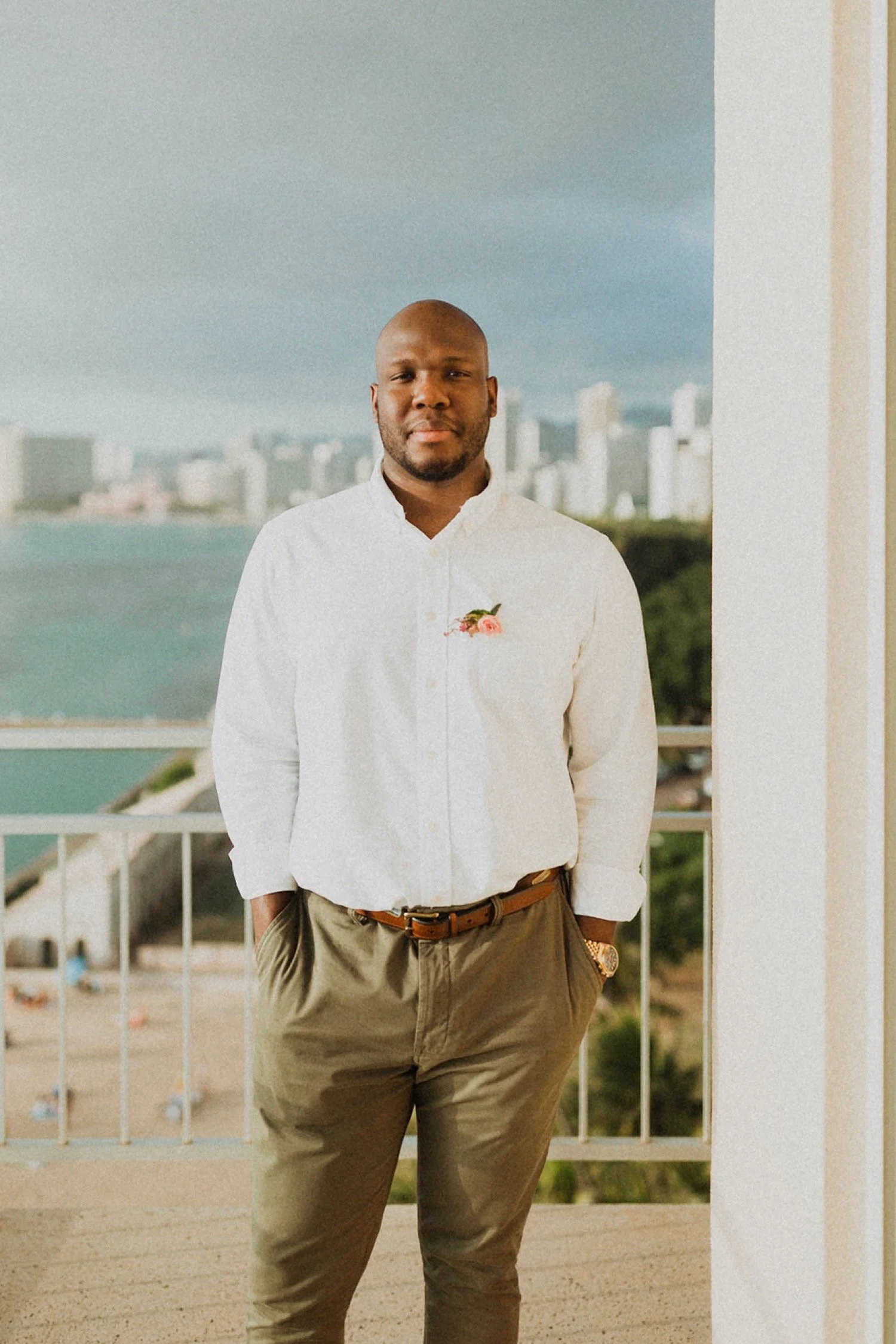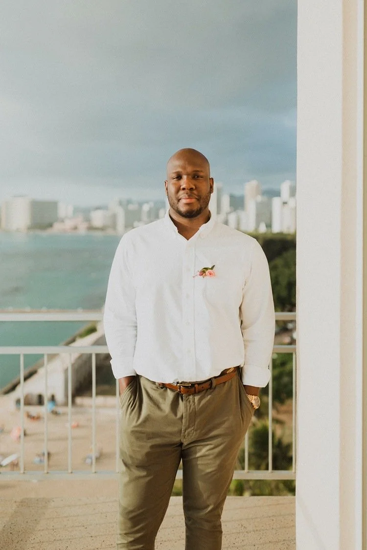 Keron and Emily live in Dallas Texas and had originally planned a wedding on the Big Island in 2021. When COVID hit, they decided to move up their wedding date so that all their immediate family could attend. They decided to have their wedding in Waikiki with their family, and it all worked out perfectly. They love Waikiki but, it is full of people and they chose to elope here so it could be private without sacrificing the gorgeous view!