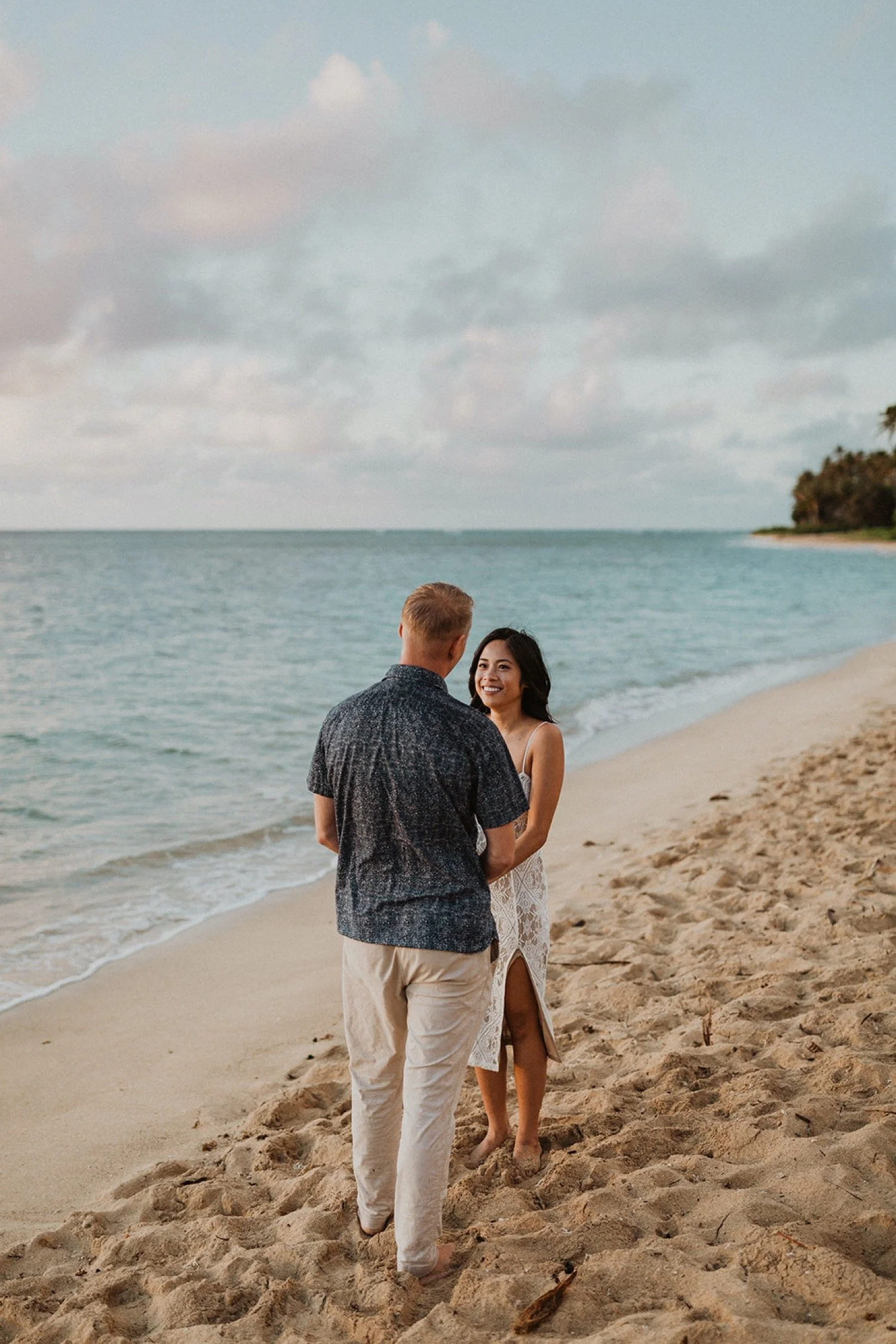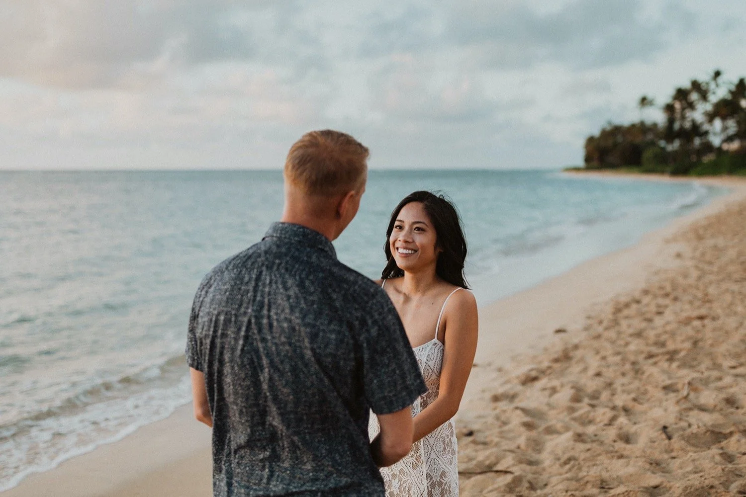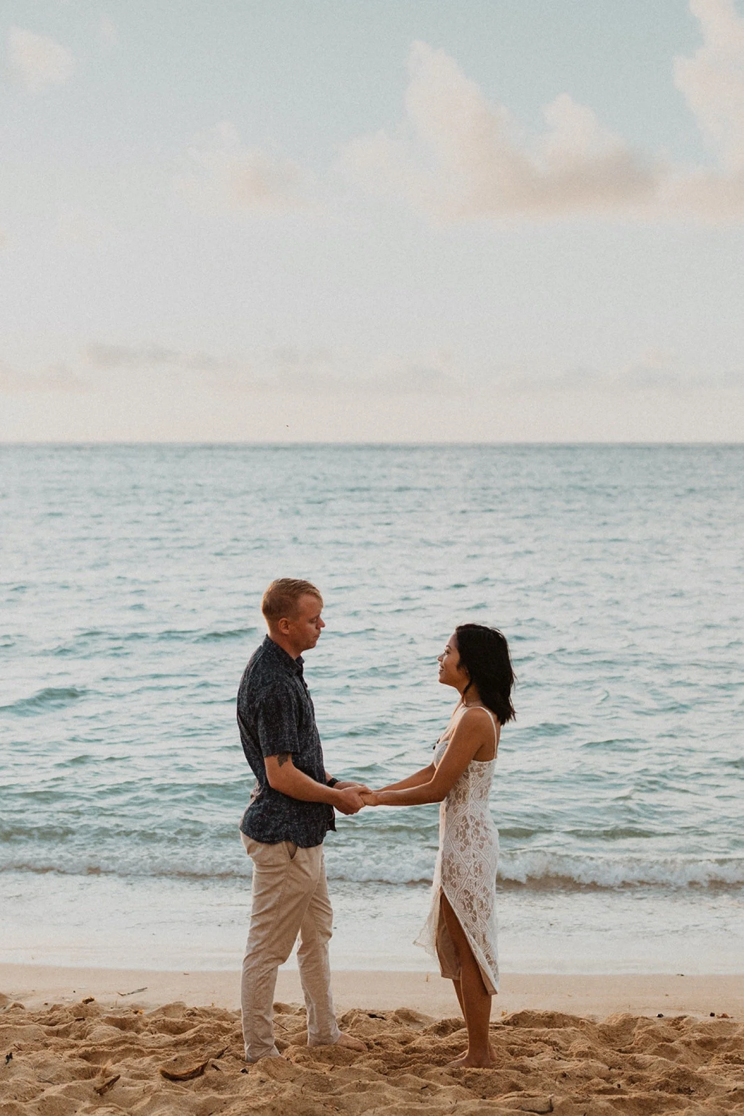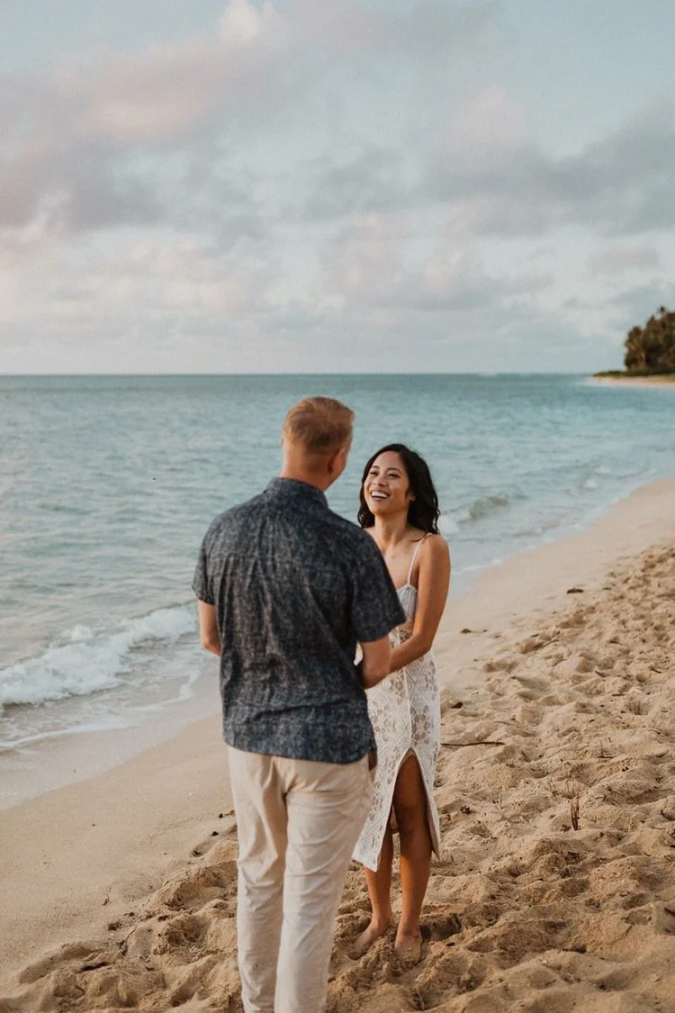 He planned the proposal at Waialae beach park which is right in front of the Kahala Hotel. It was the most stunning morning. Normally, this area is crowded with morning walkers and tourists out and about. The day of the surprise proposal was so quiet and calm making for the perfect intimate morning for Thomas to propose! Rocky’s best friend set up a little picnic with styled elopements on the beach for them to enjoy after the proposal. It was the sweetest touch and made it a full experience for the two of them so they could really just be present and enjoy each other before they went to celebrate with family.