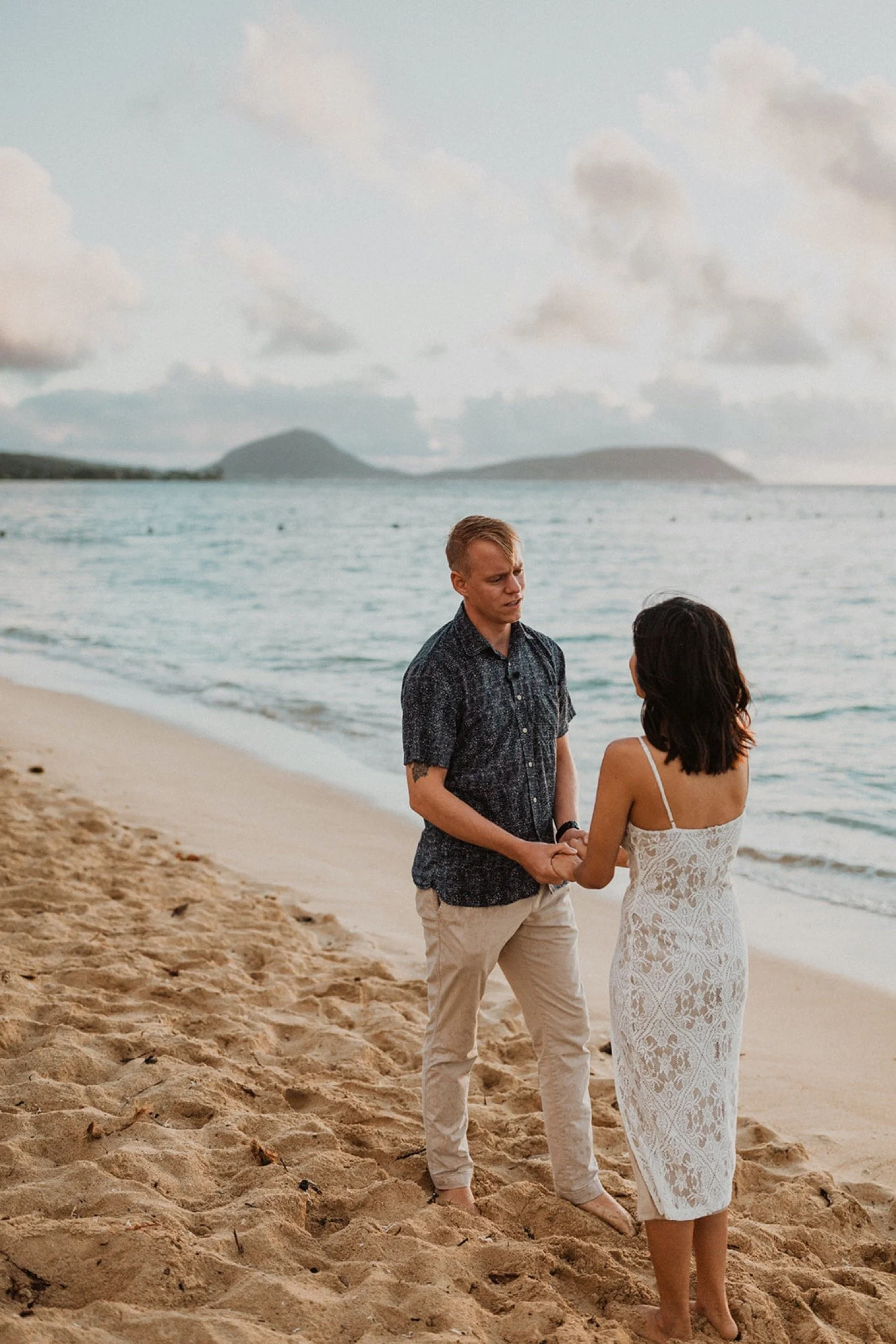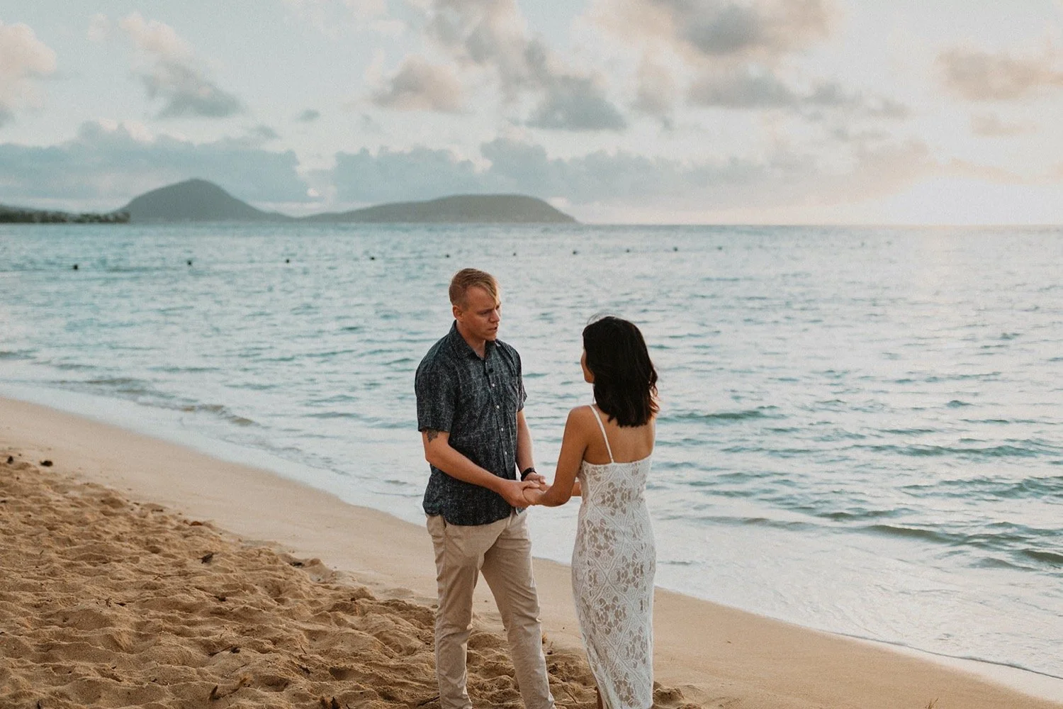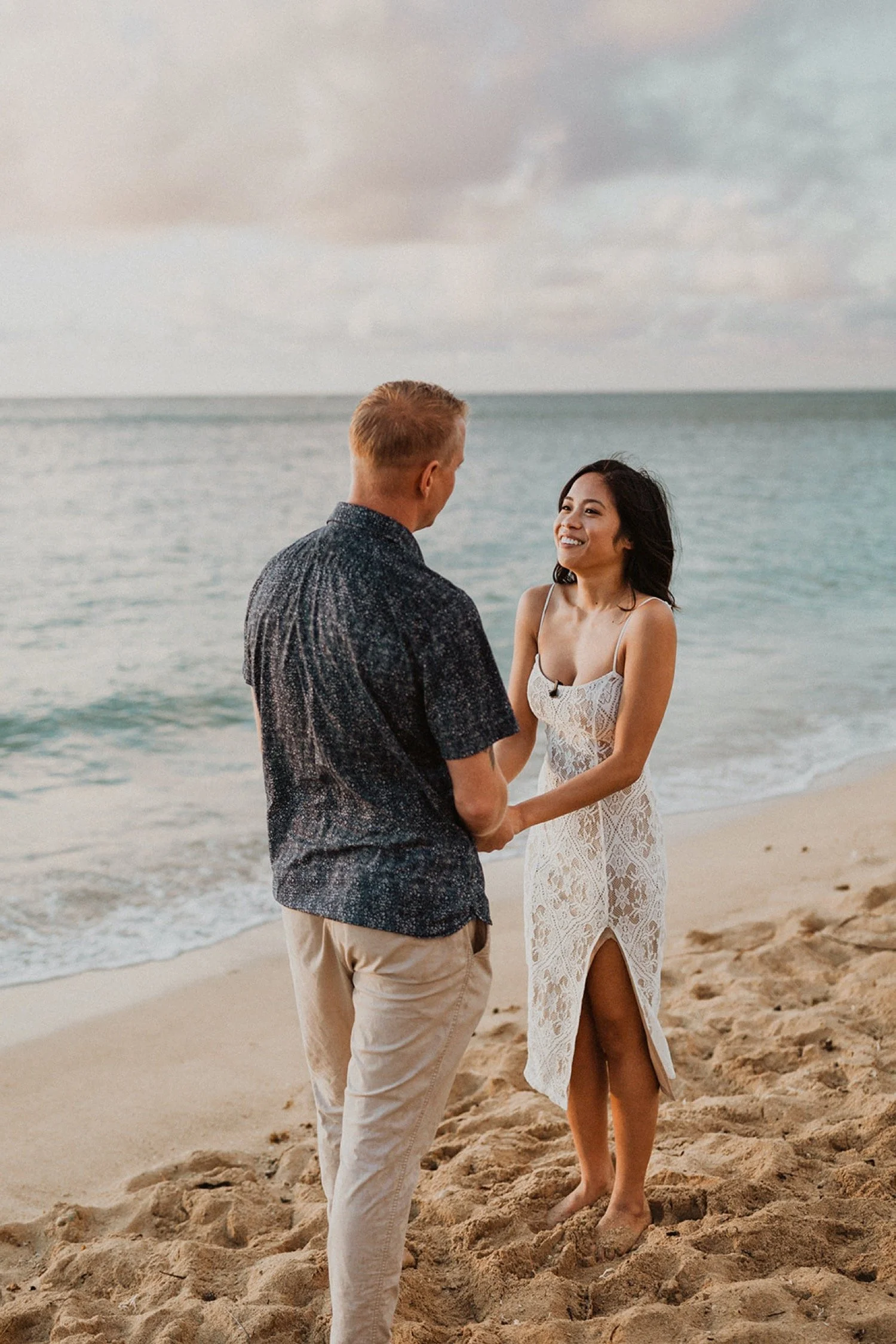 He planned the proposal at Waialae beach park which is right in front of the Kahala Hotel. It was the most stunning morning. Normally, this area is crowded with morning walkers and tourists out and about. The day of the surprise proposal was so quiet and calm making for the perfect intimate morning for Thomas to propose! Rocky’s best friend set up a little picnic with styled elopements on the beach for them to enjoy after the proposal. It was the sweetest touch and made it a full experience for the two of them so they could really just be present and enjoy each other before they went to celebrate with family.