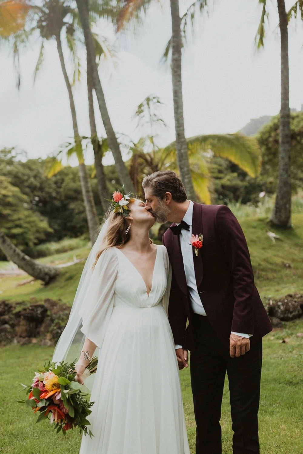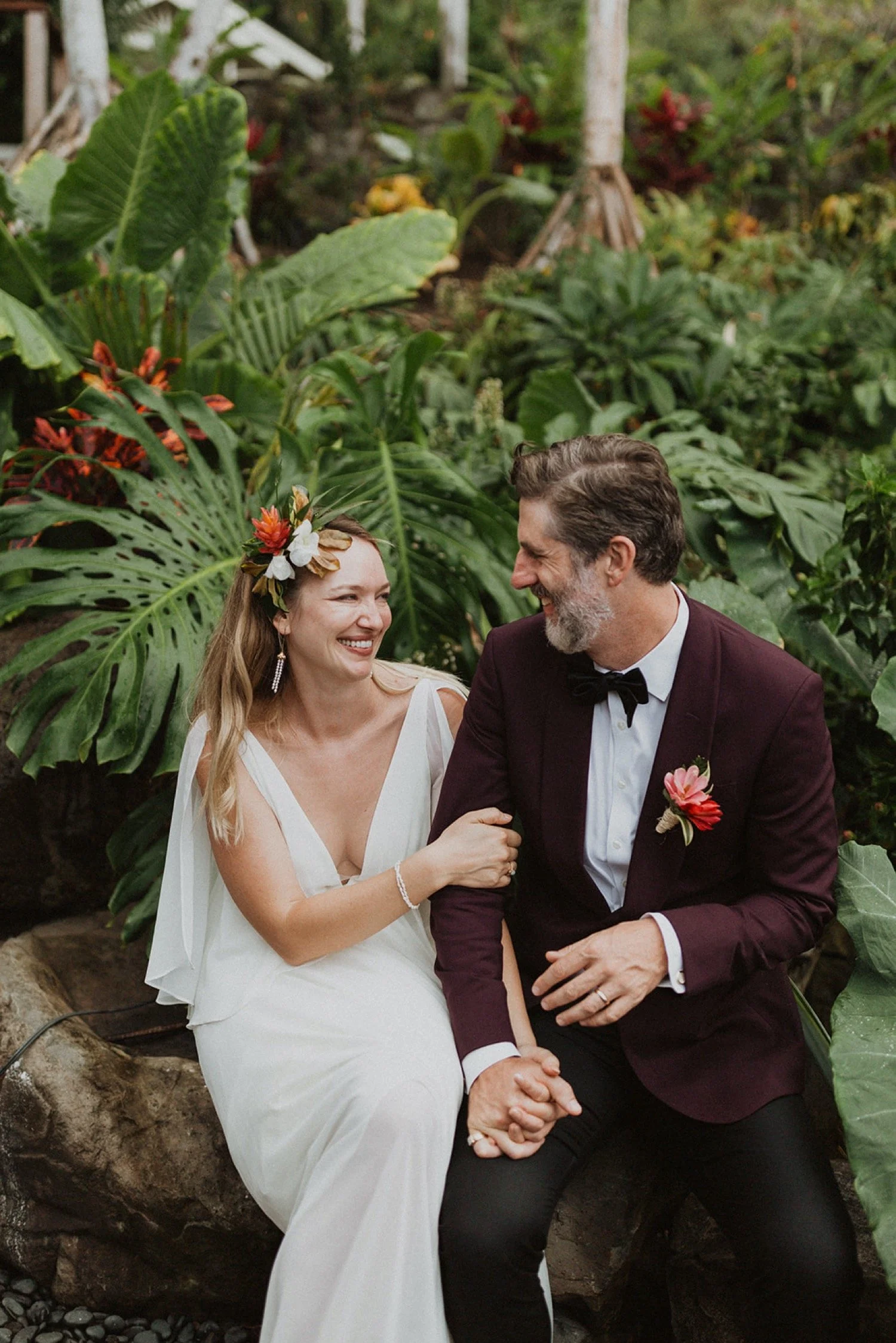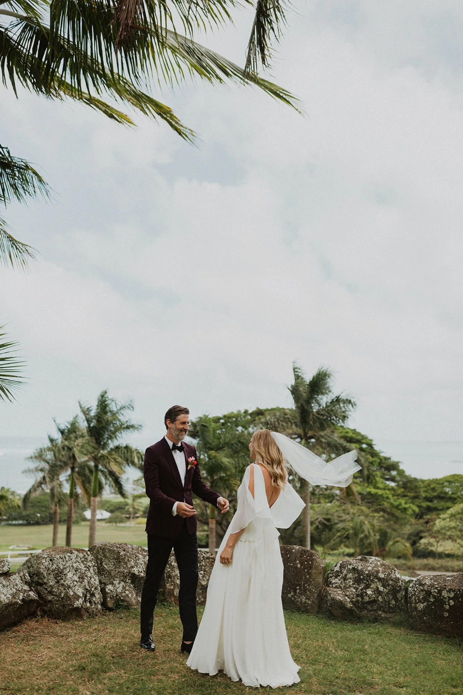 During the reception, some of their guests said the sweetest speeches. They loved every single one of their guests and treated them so well. Their guests loved them and it felt like the wedding was a celebration of their love but also their relationships with each one of them there. Having their Oahu elopement at an estate created a vibe of simply friends and family hanging out and being present together.