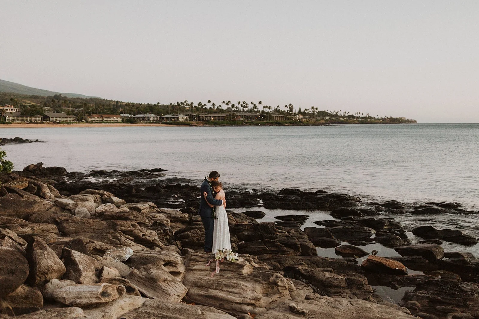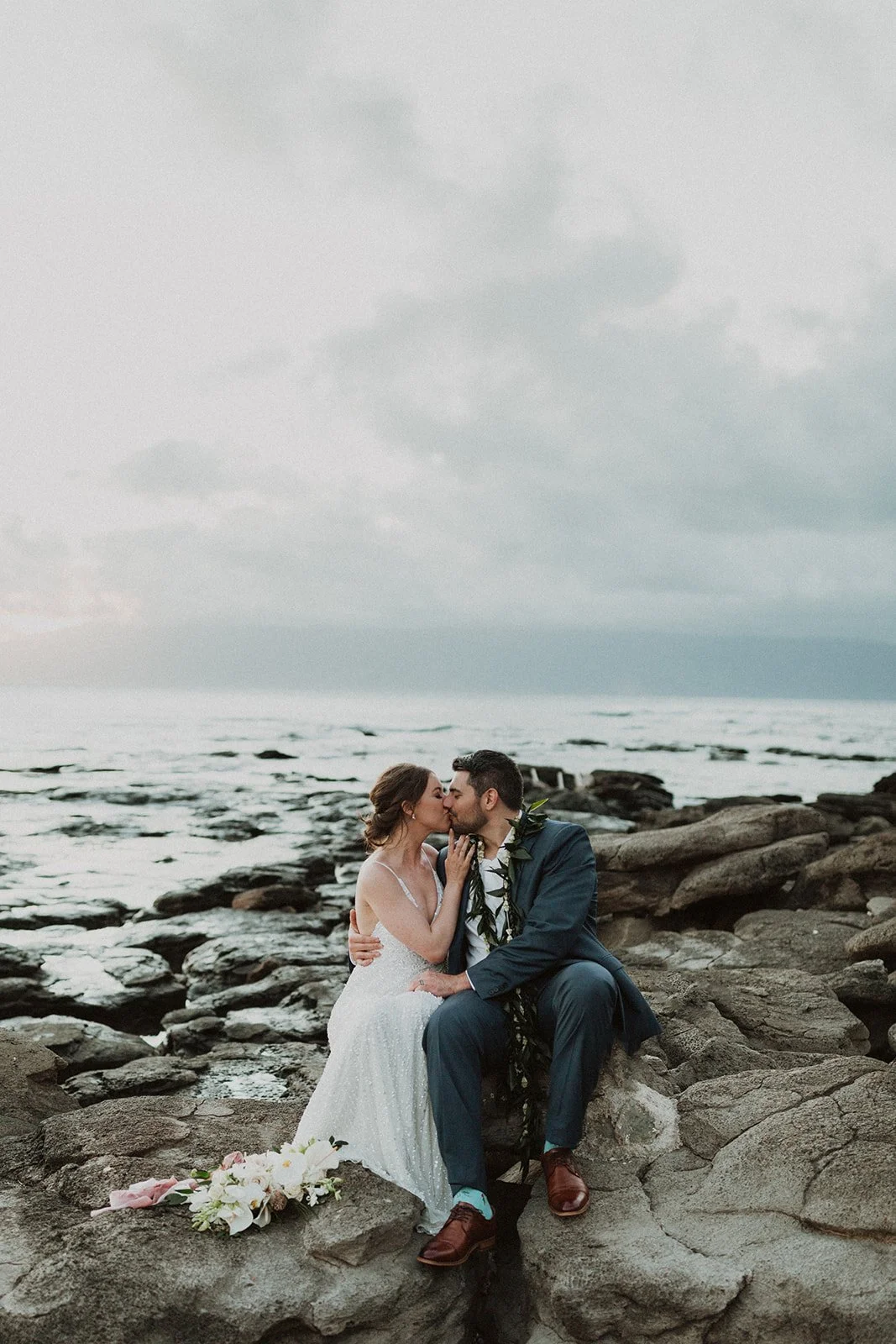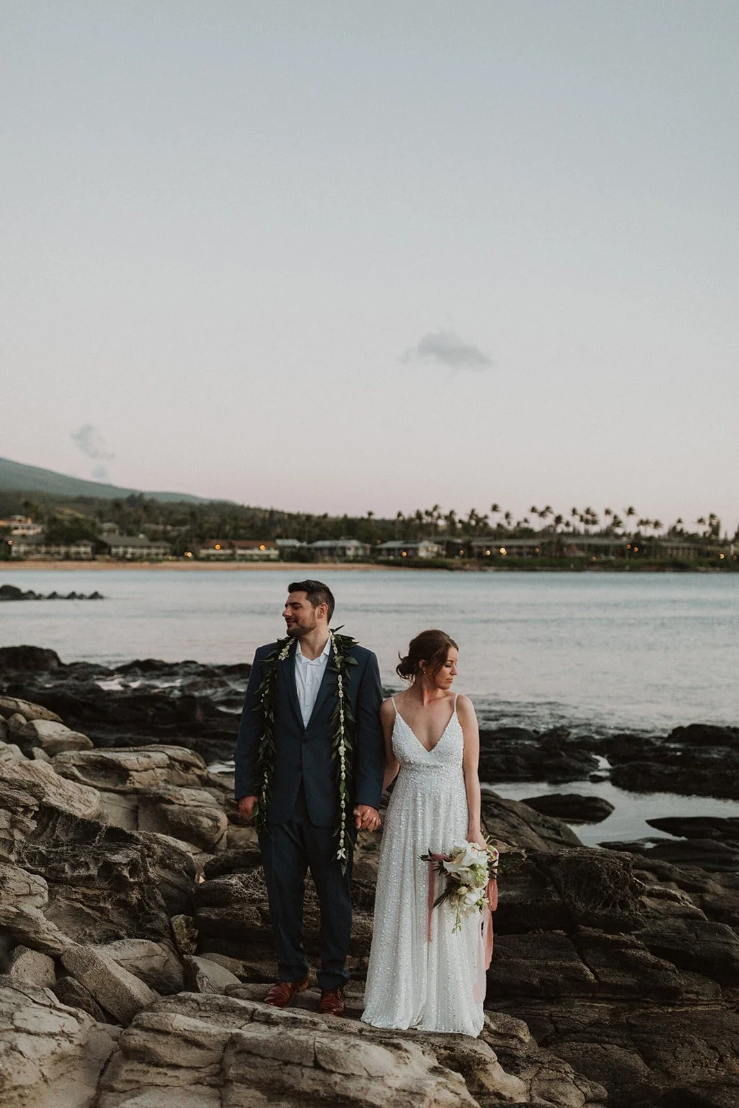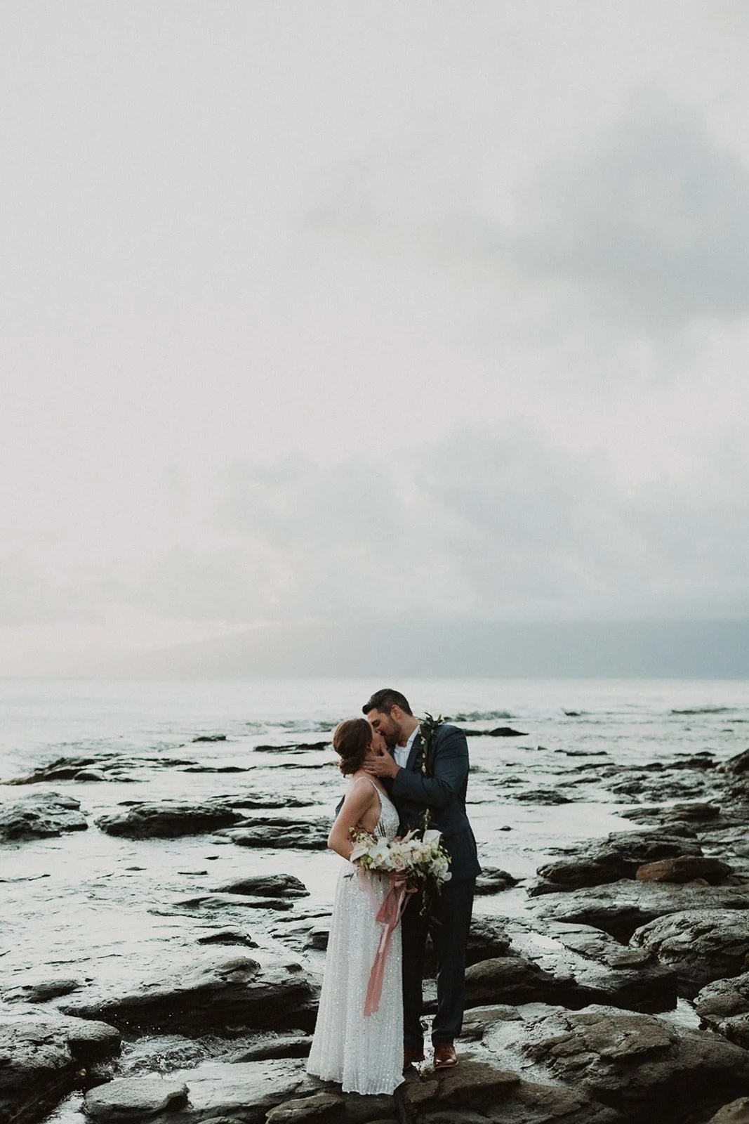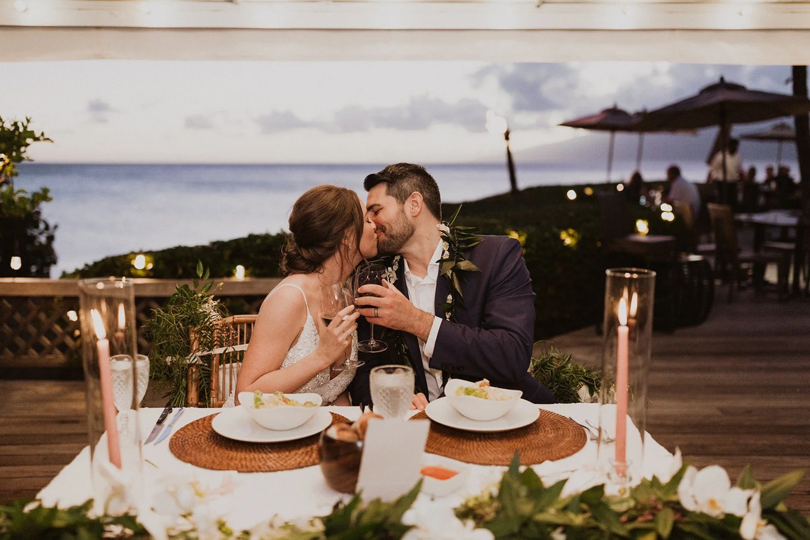 The elopement was absolutely dreamy. They held their special day at Merriman’s Maui and it was a perfect-perfect location! They had their ceremony on the beach, had their first dance, and then headed to the restaurant where there was an intimate + lush outdoor space for them to hold a romantic sunset reception with their close friends + family.