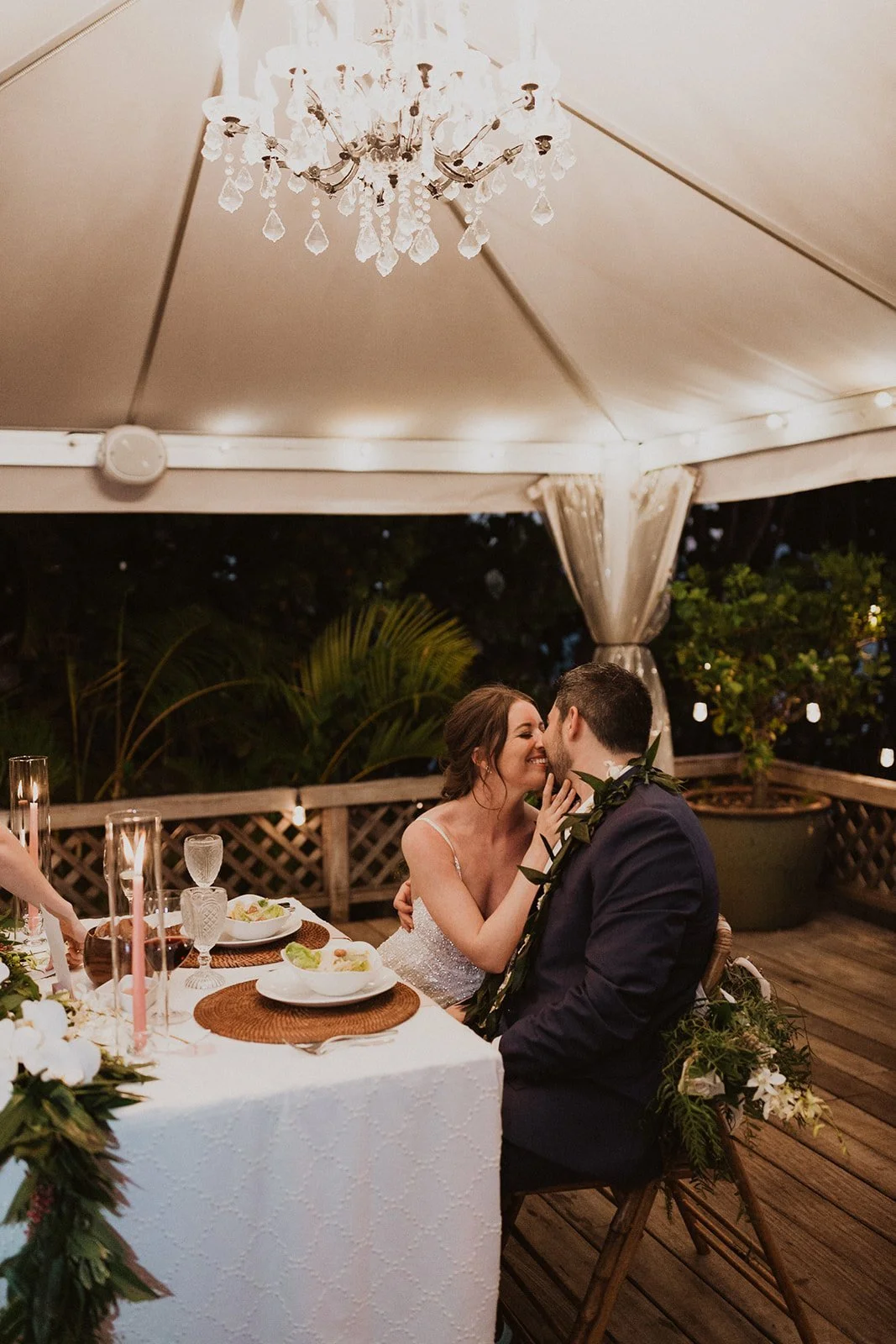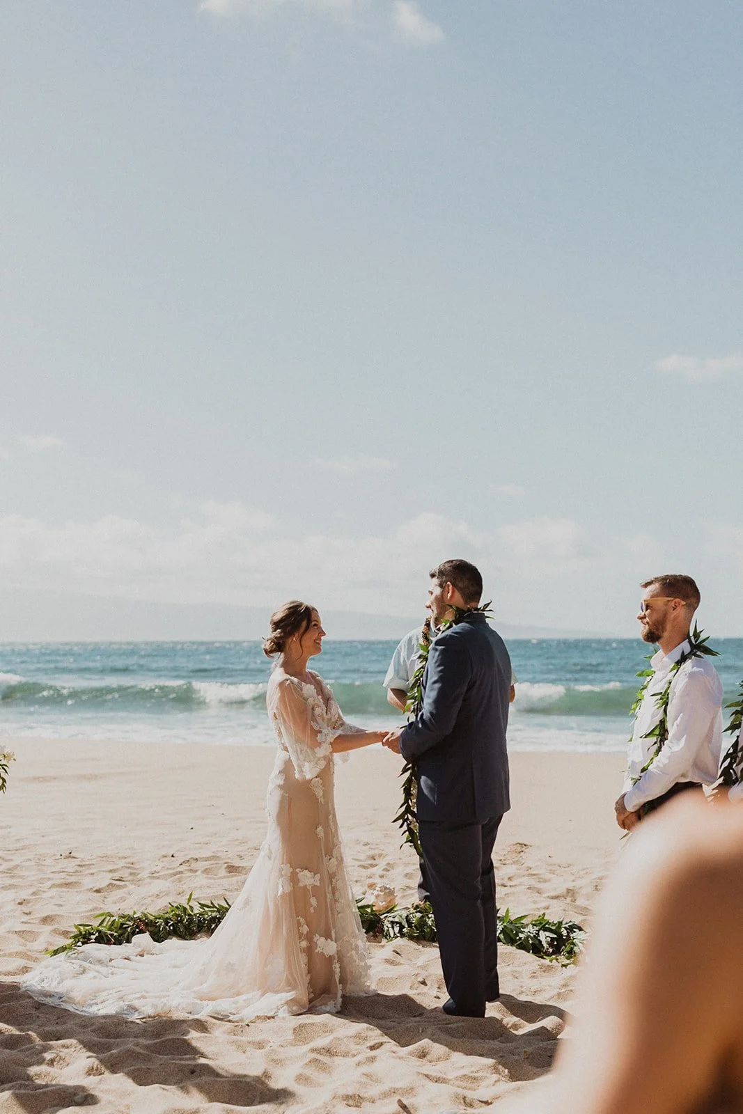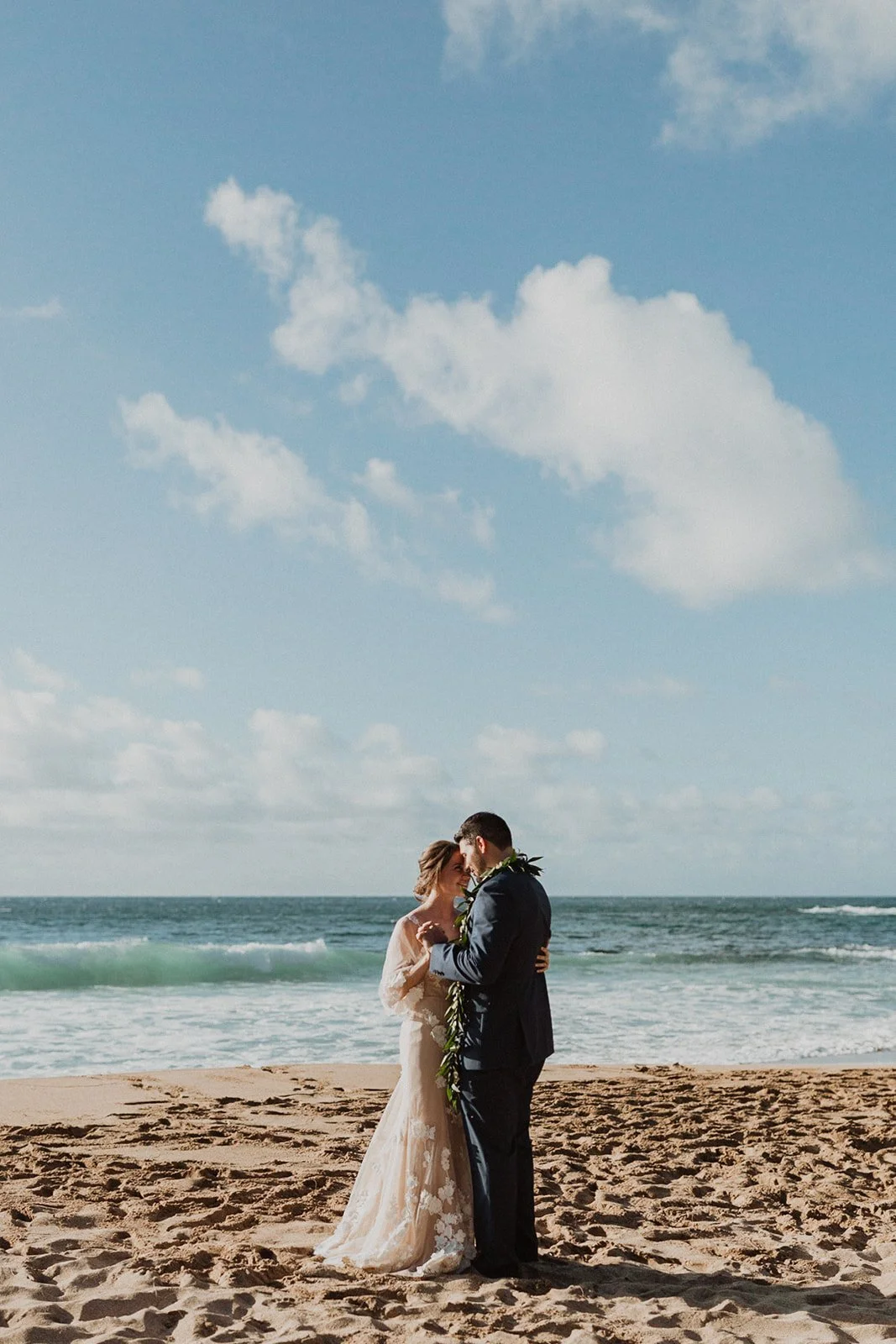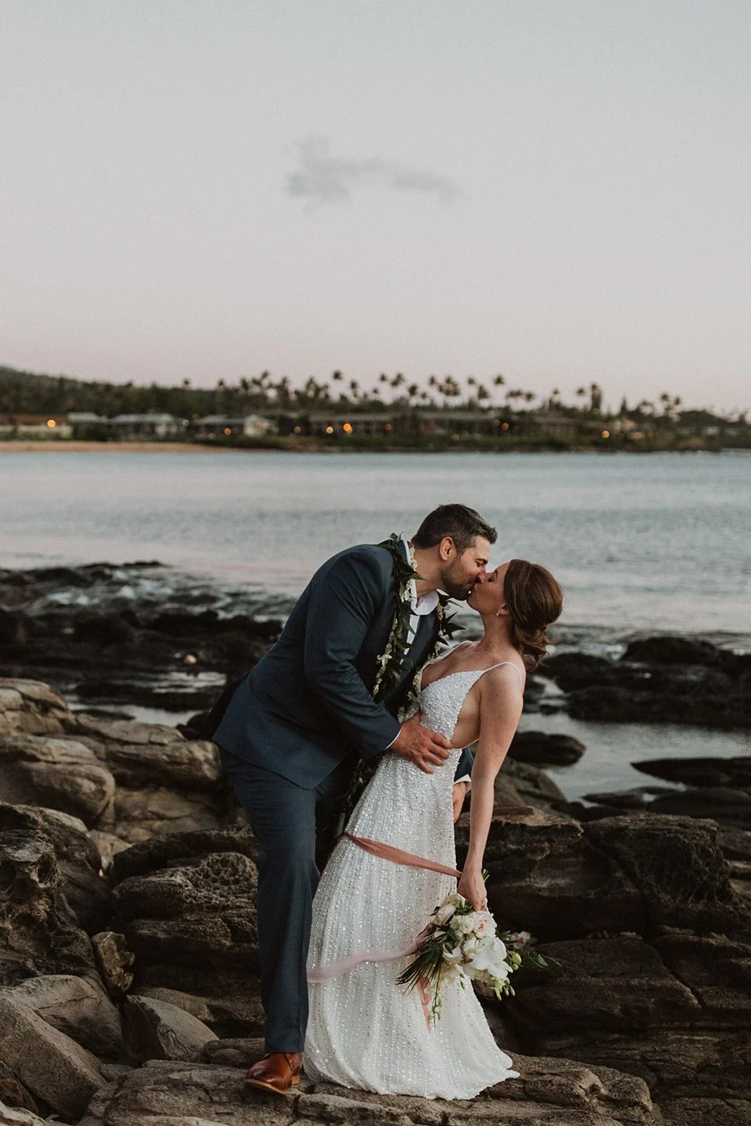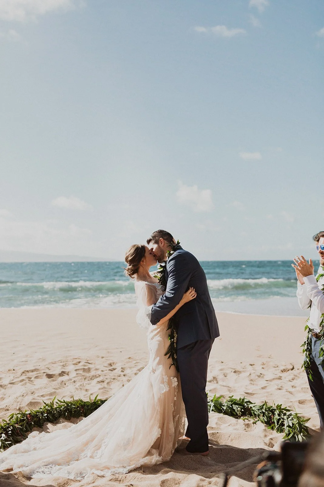 The elopement was absolutely dreamy. They held their special day at Merriman’s Maui and it was a perfect-perfect location! They had their ceremony on the beach, had their first dance, and then headed to the restaurant where there was an intimate + lush outdoor space for them to hold a romantic sunset reception with their close friends + family.