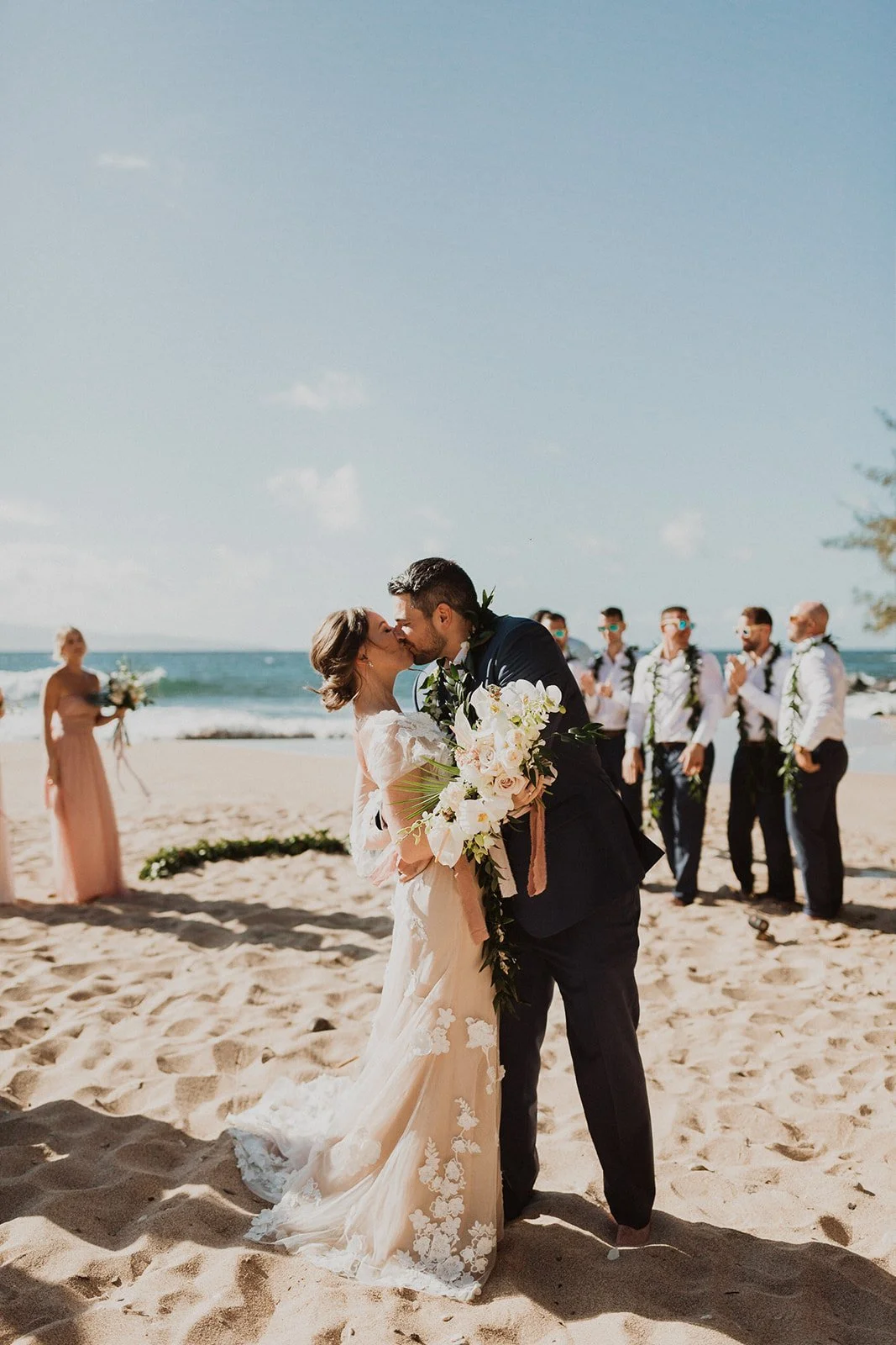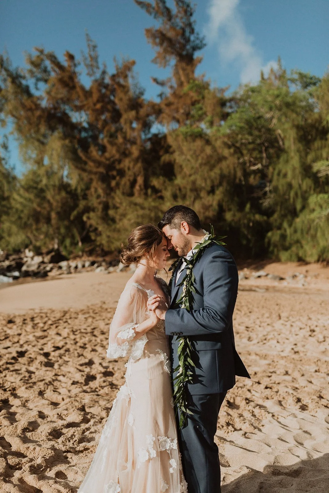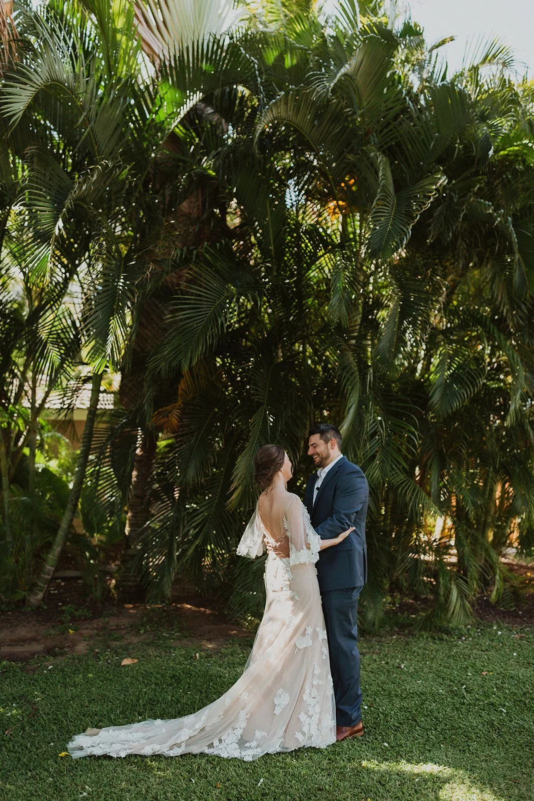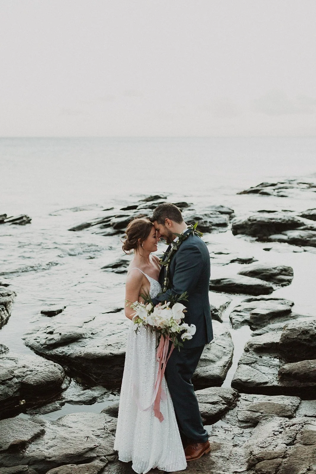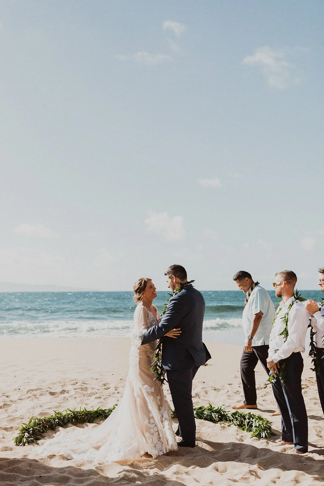 The elopement was absolutely dreamy. They held their special day at Merriman’s Maui and it was a perfect-perfect location! They had their ceremony on the beach, had their first dance, and then headed to the restaurant where there was an intimate + lush outdoor space for them to hold a romantic sunset reception with their close friends + family.