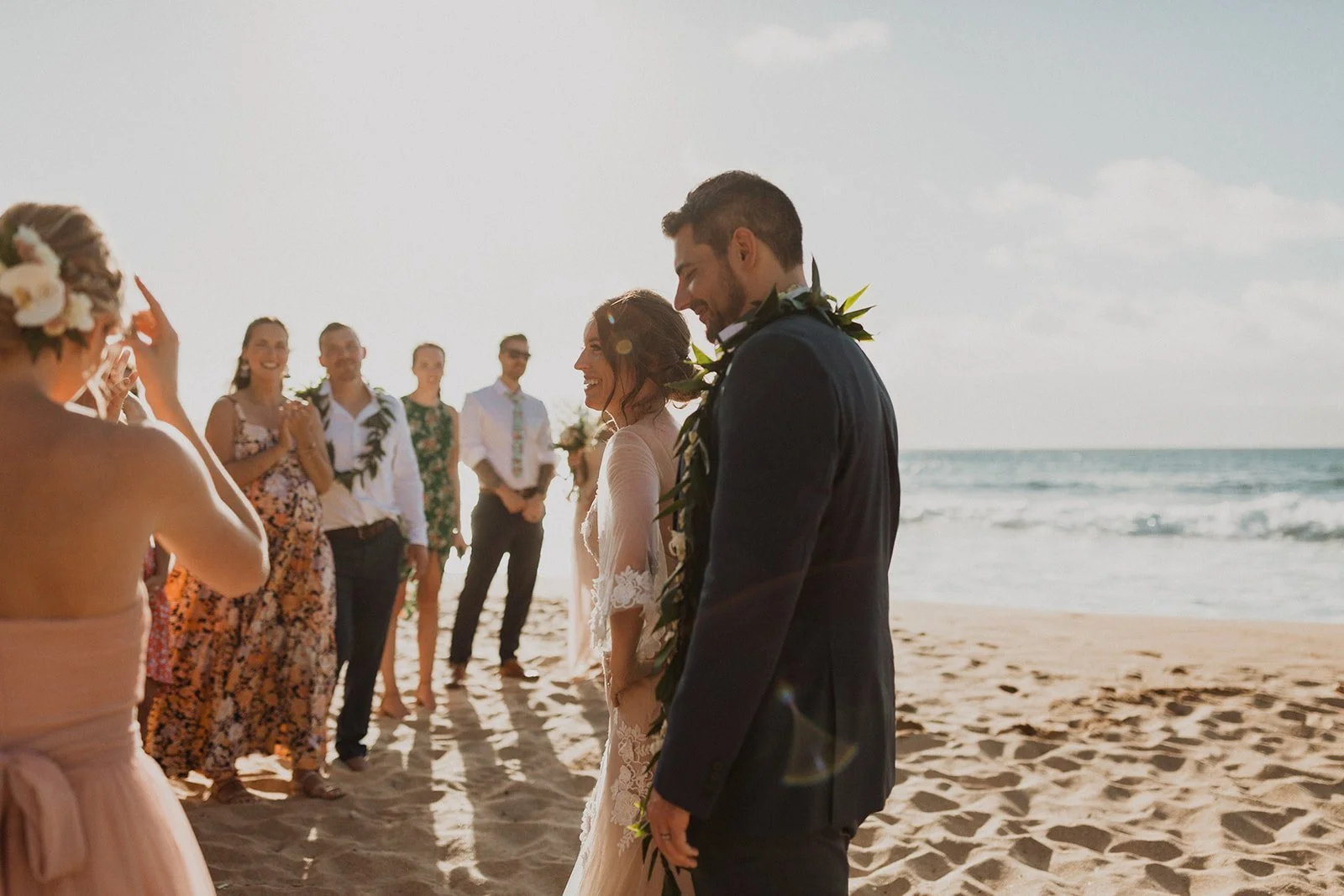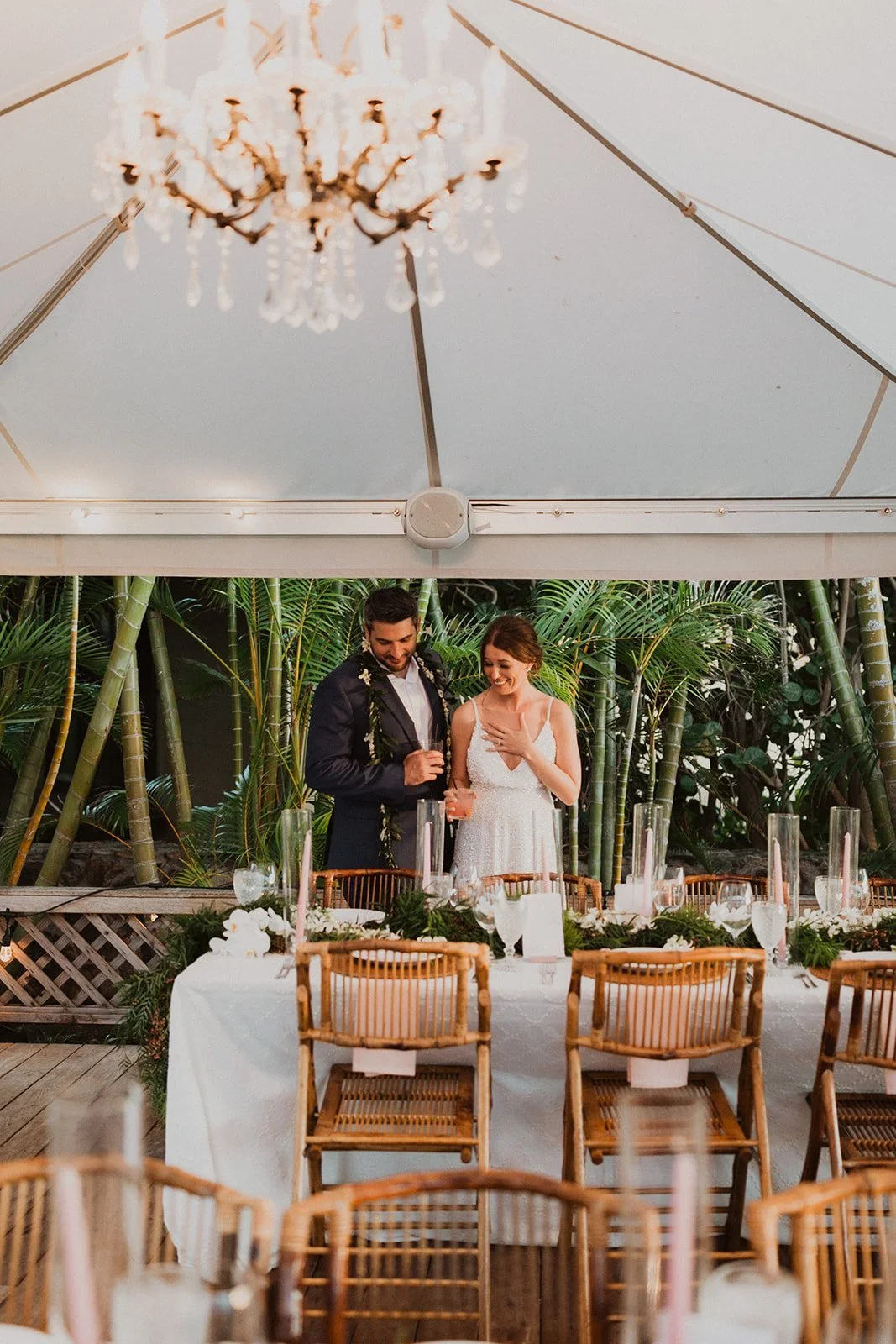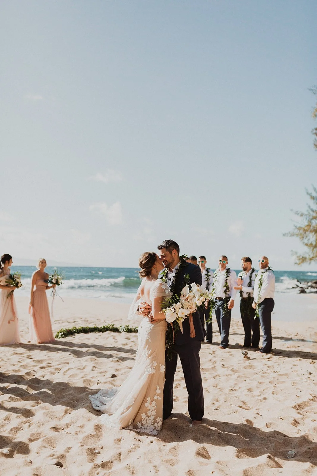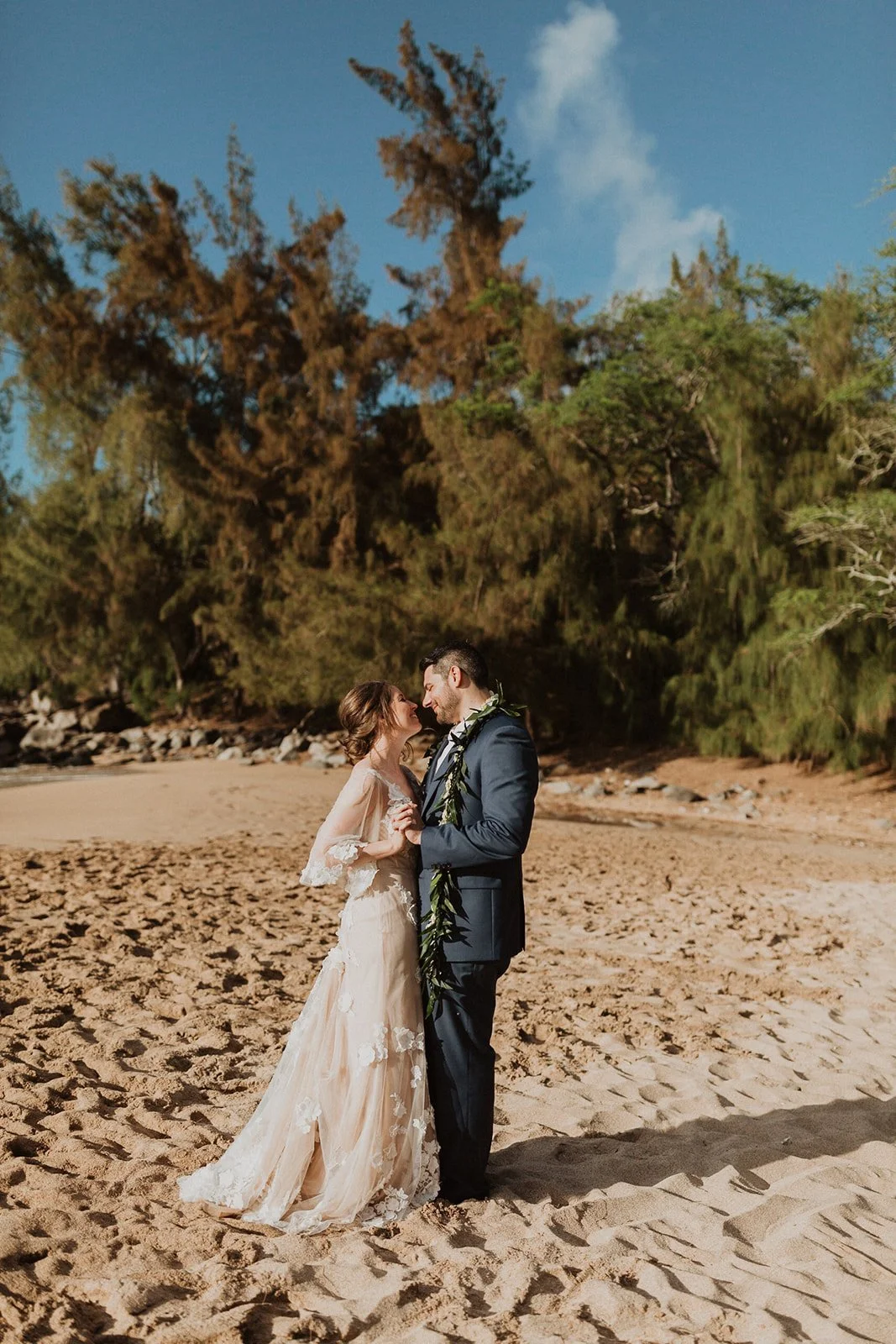 The elopement was absolutely dreamy. They held their special day at Merriman’s Maui and it was a perfect-perfect location! They had their ceremony on the beach, had their first dance, and then headed to the restaurant where there was an intimate + lush outdoor space for them to hold a romantic sunset reception with their close friends + family.