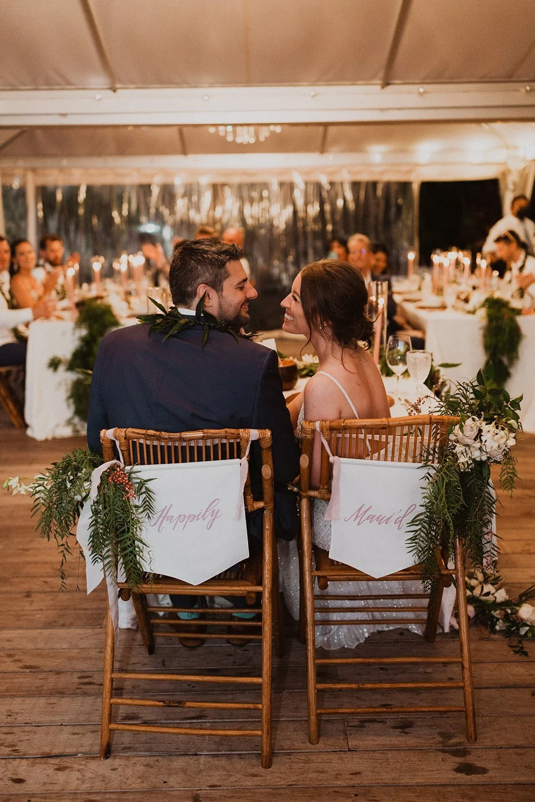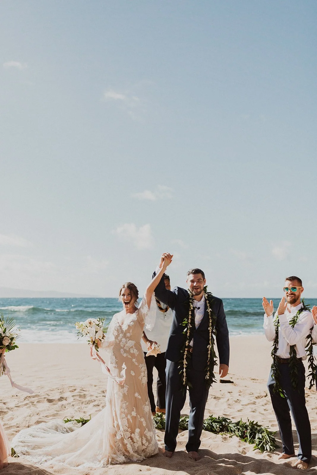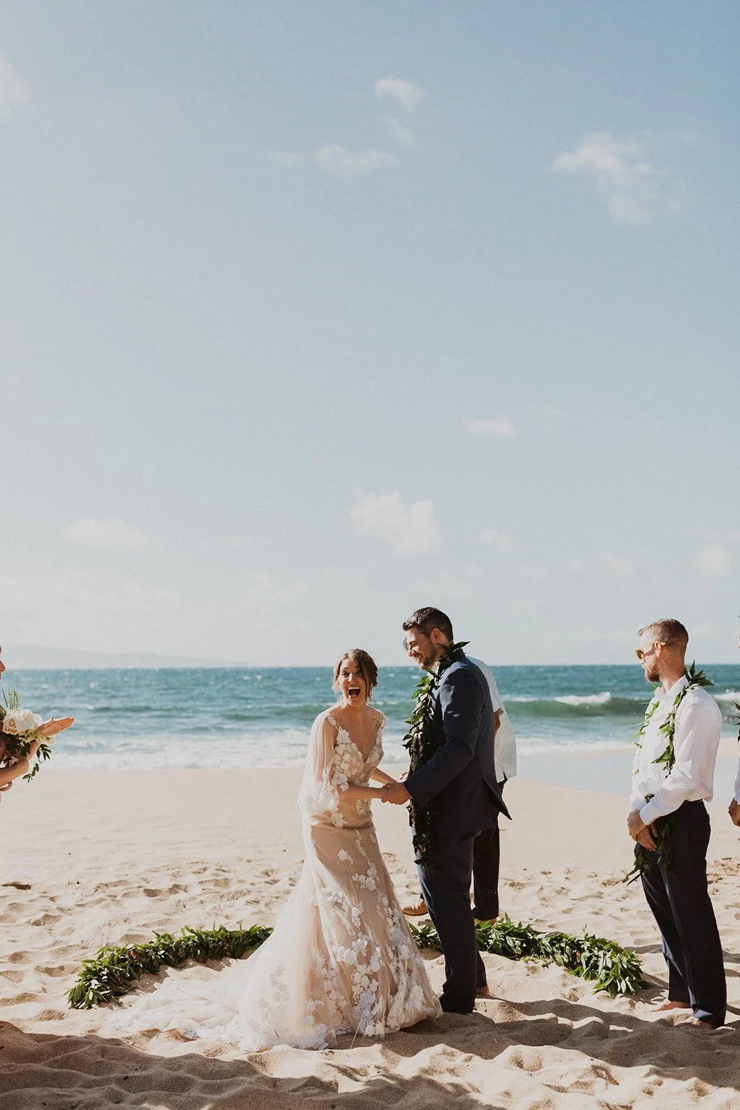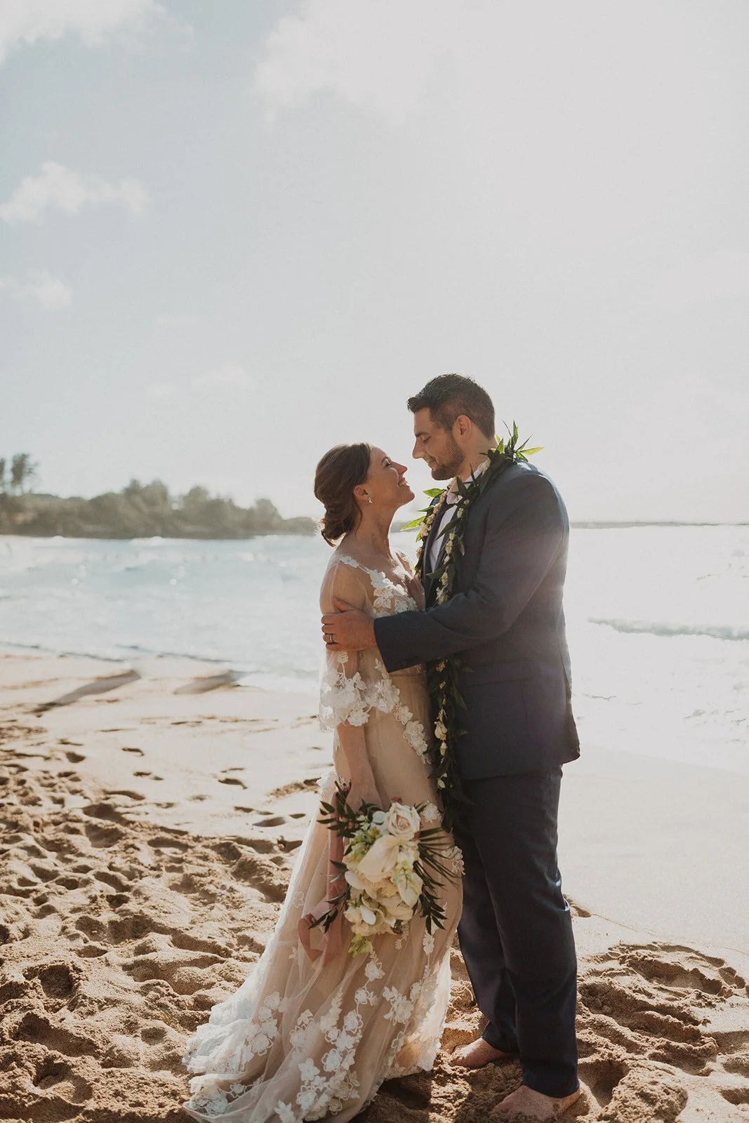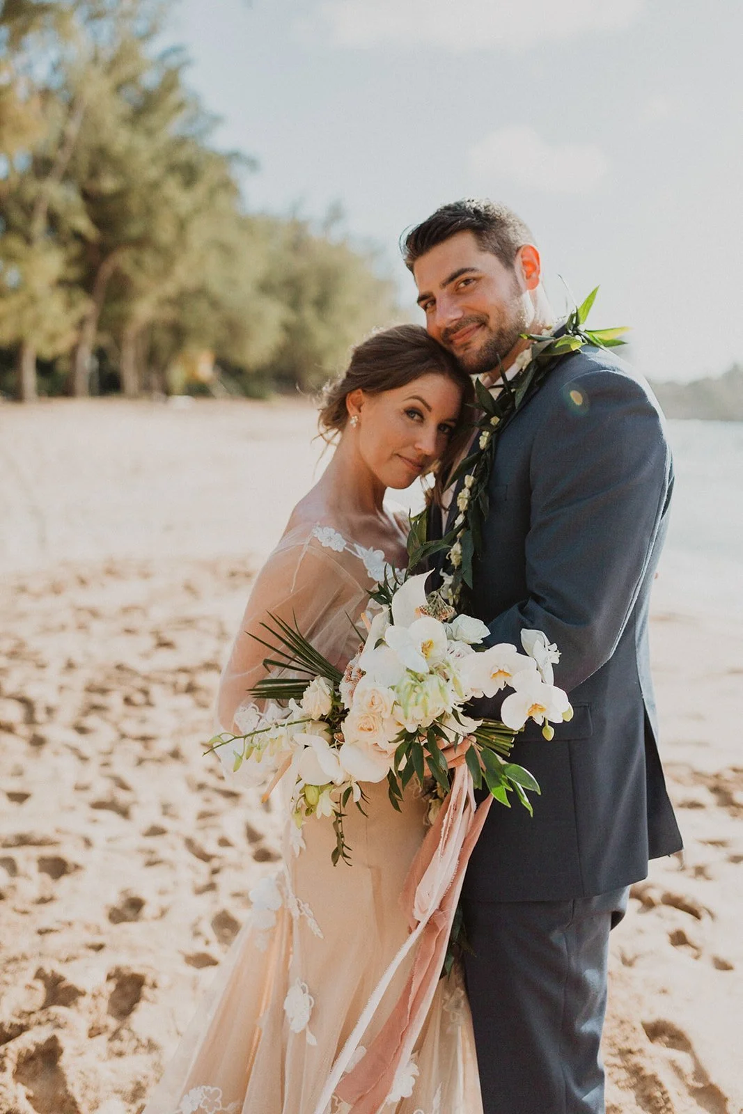 The elopement was absolutely dreamy. They held their special day at Merriman’s Maui and it was a perfect-perfect location! They had their ceremony on the beach, had their first dance, and then headed to the restaurant where there was an intimate + lush outdoor space for them to hold a romantic sunset reception with their close friends + family.