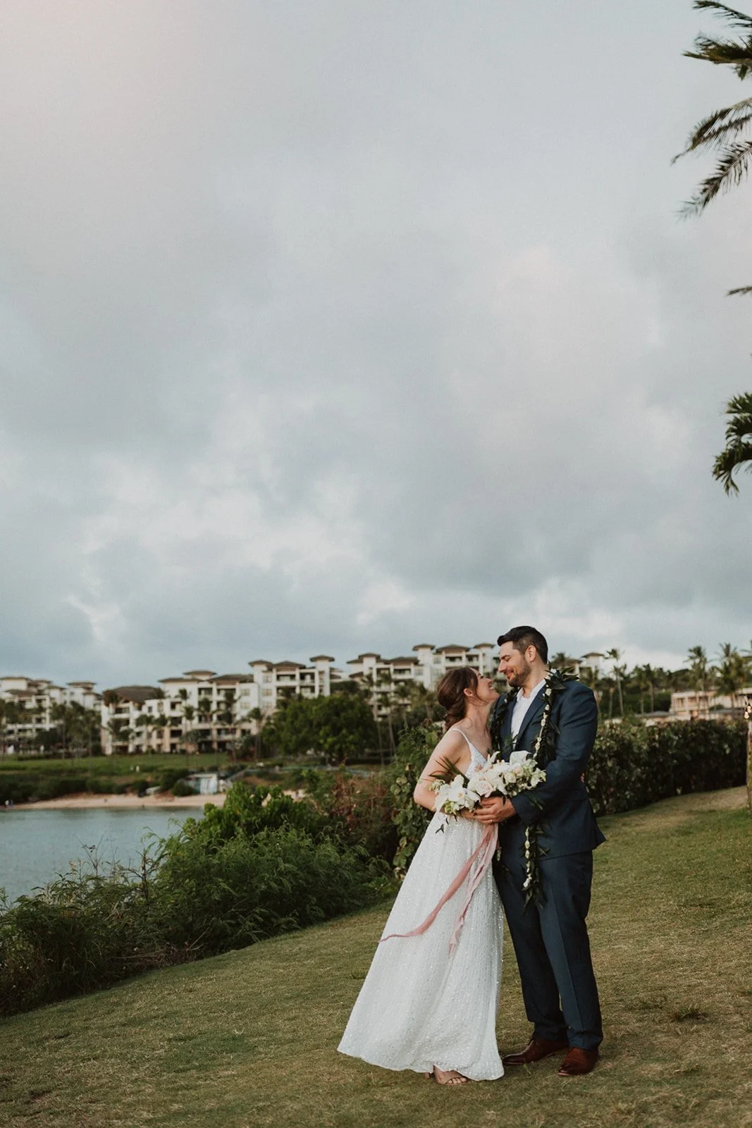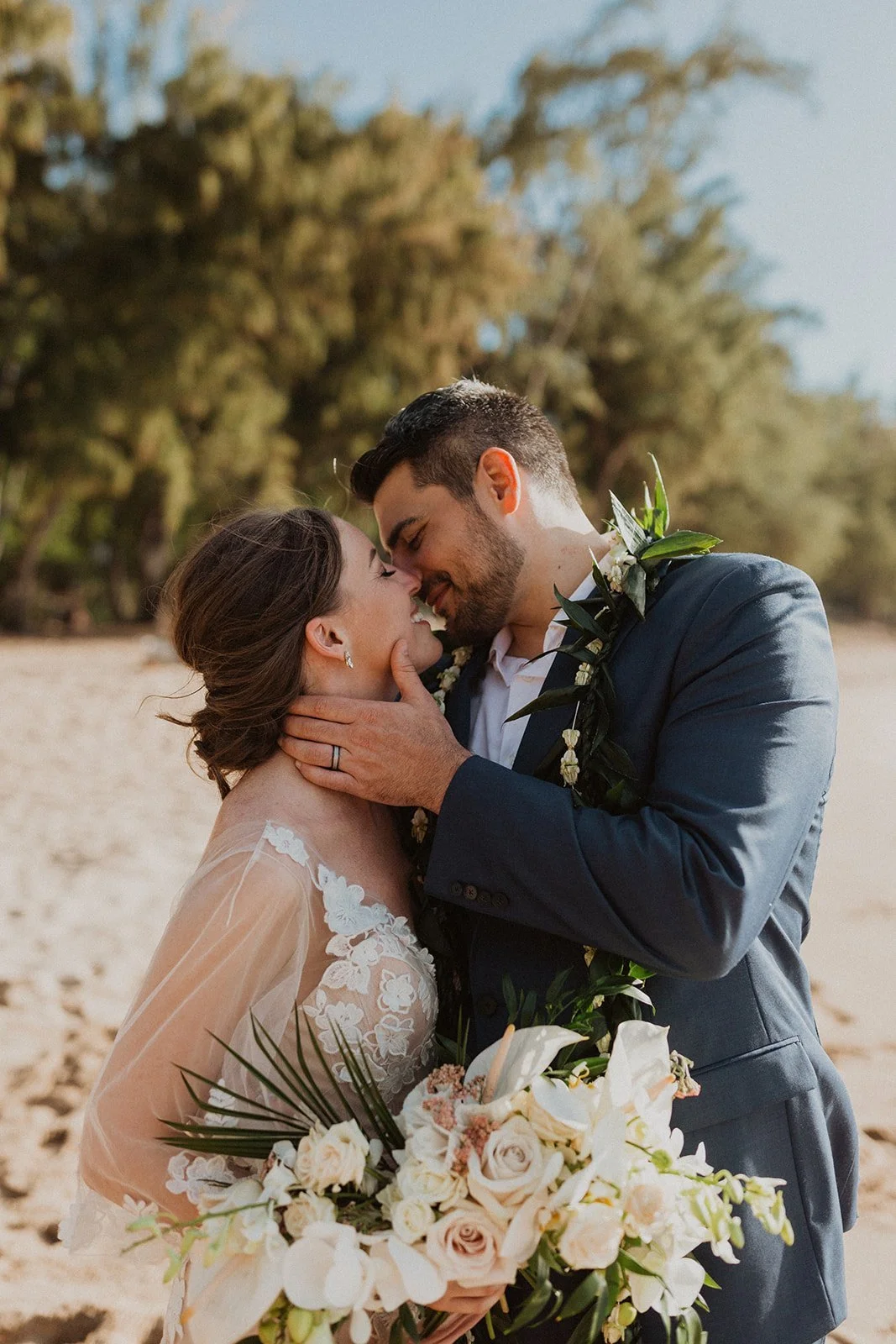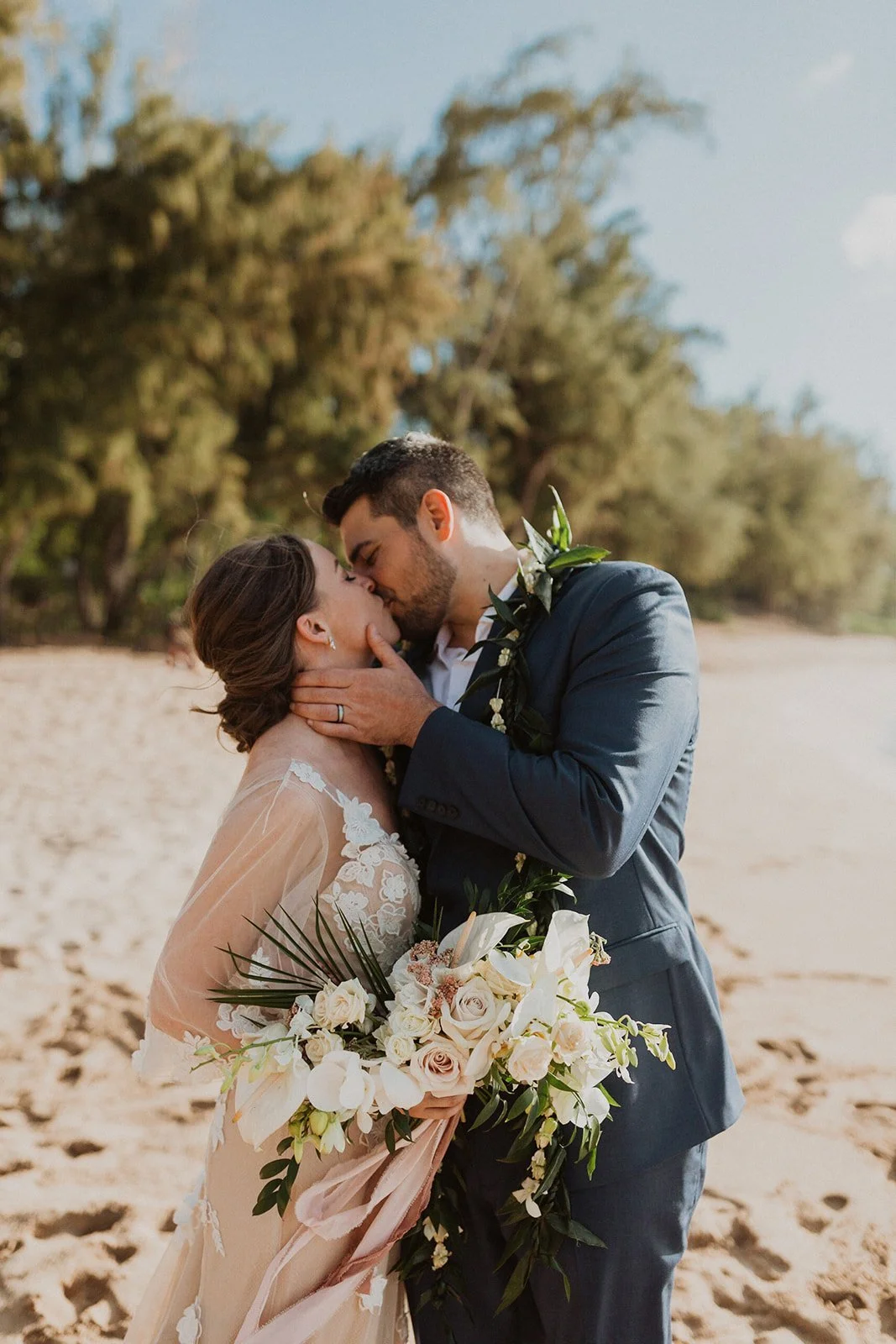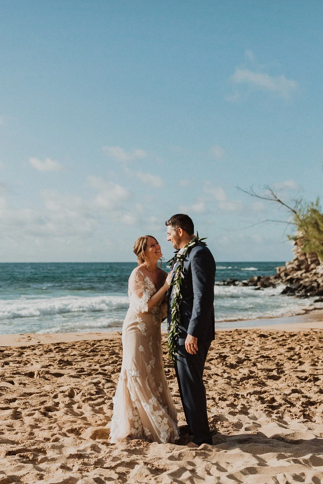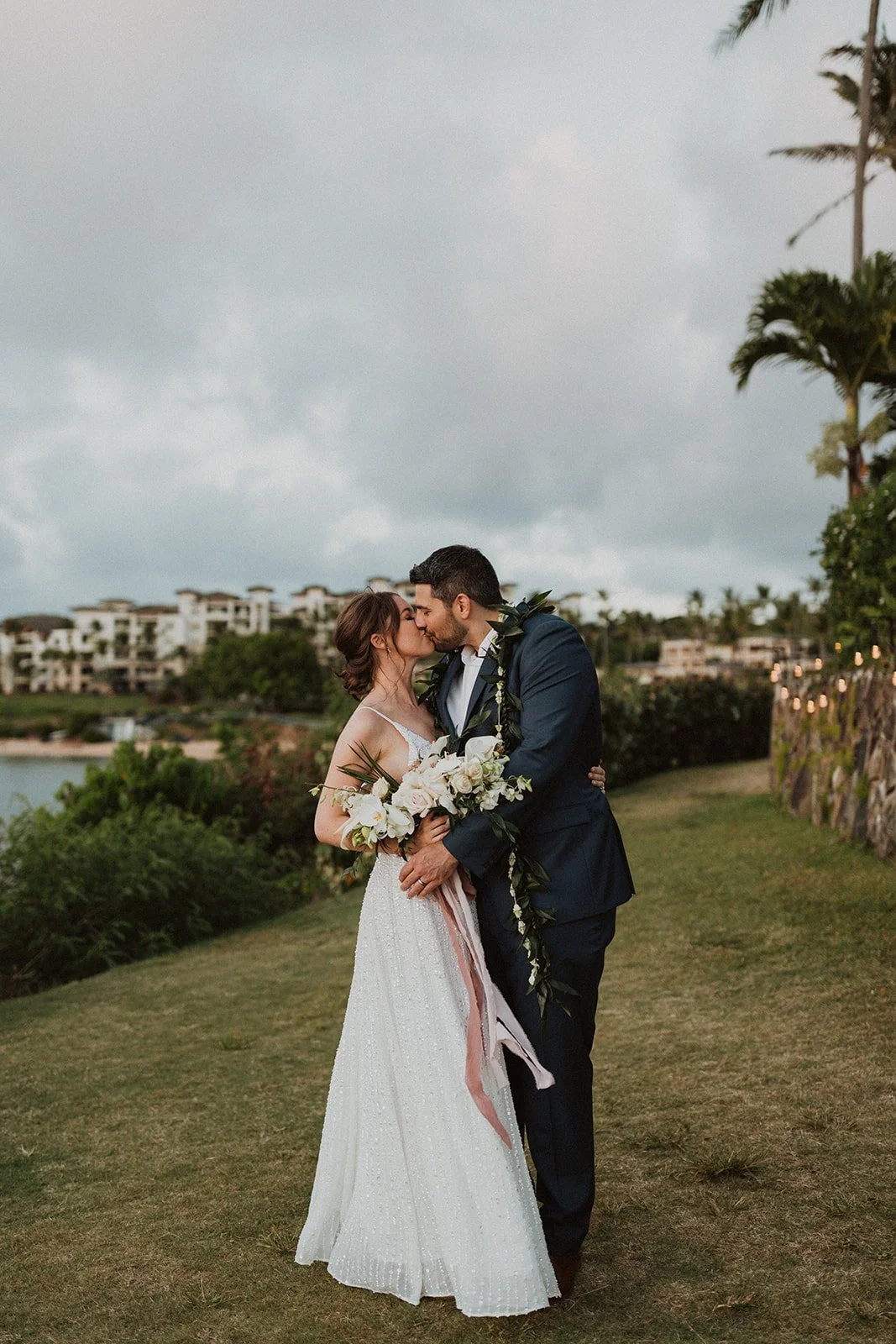 The elopement was absolutely dreamy. They held their special day at Merriman’s Maui and it was a perfect-perfect location! They had their ceremony on the beach, had their first dance, and then headed to the restaurant where there was an intimate + lush outdoor space for them to hold a romantic sunset reception with their close friends + family.