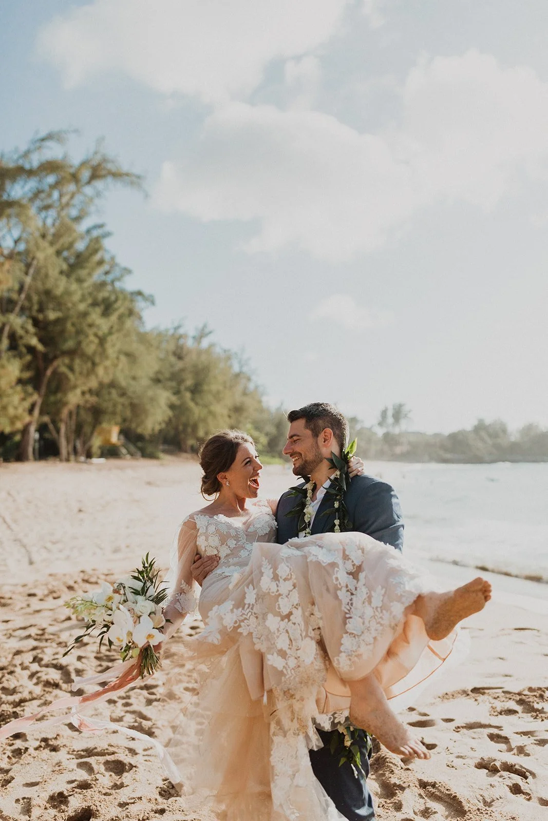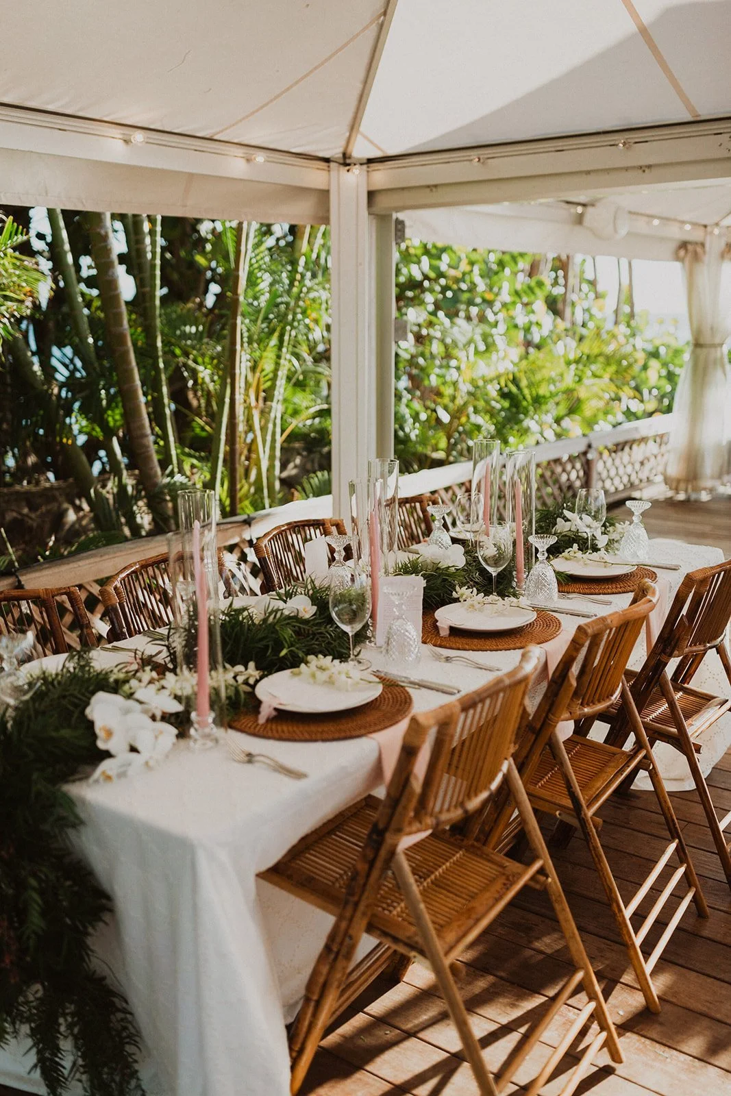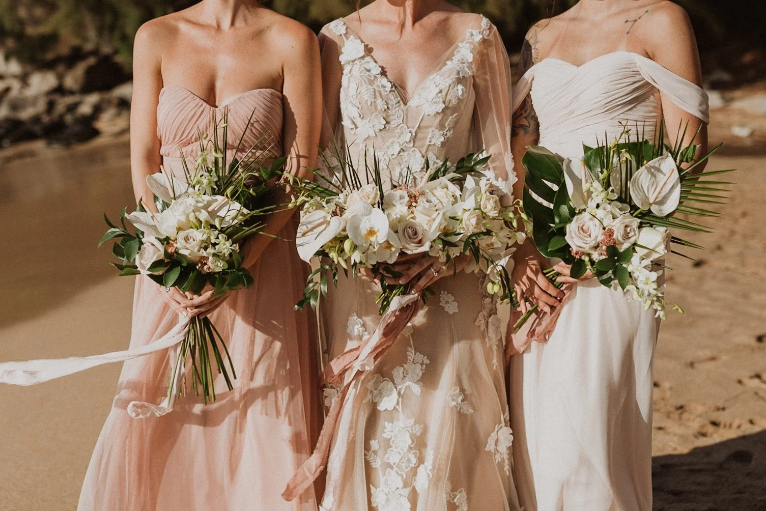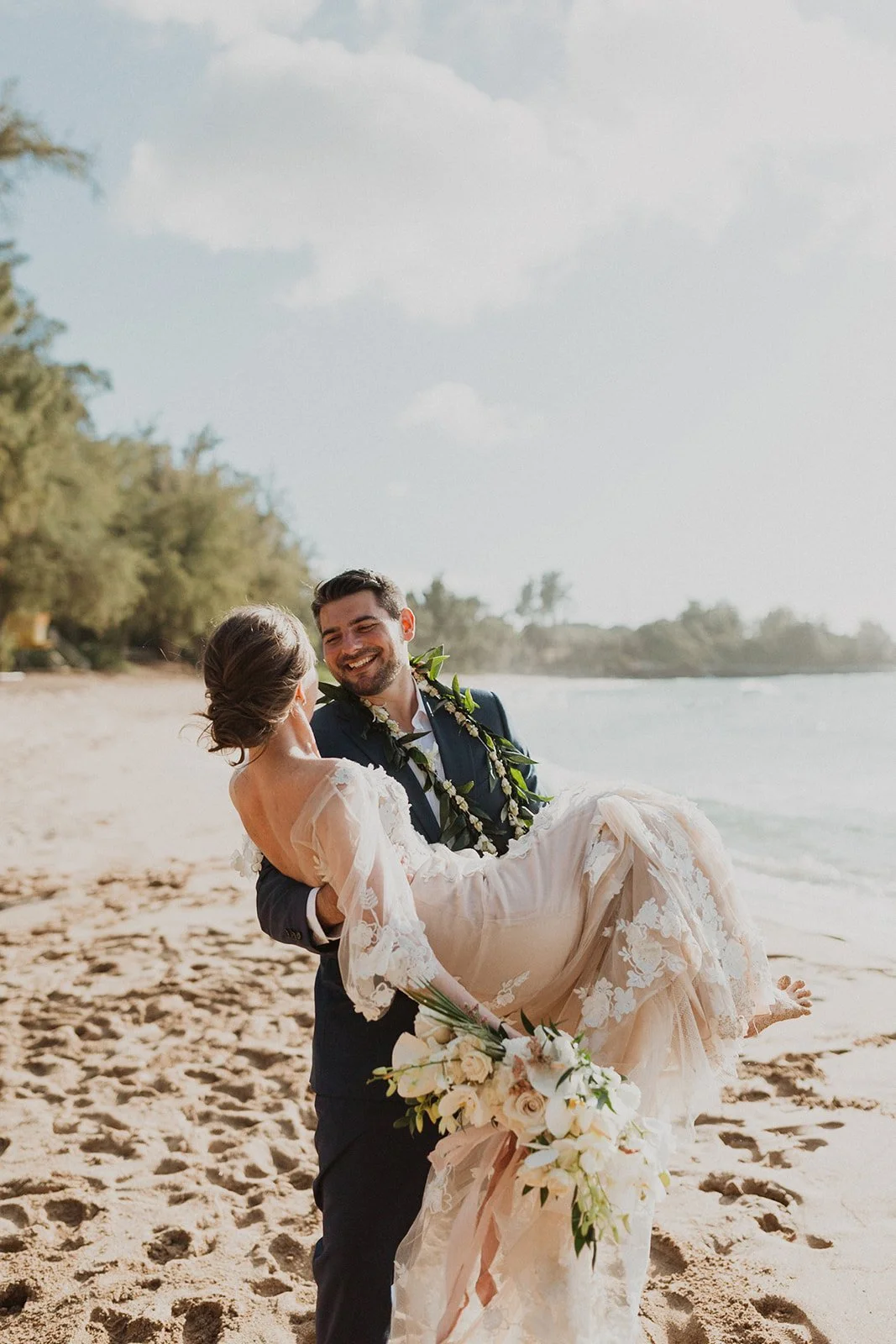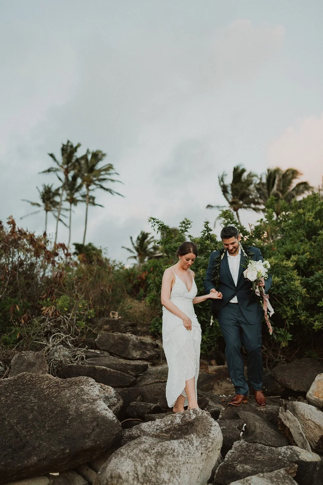 The elopement was absolutely dreamy. They held their special day at Merriman’s Maui and it was a perfect-perfect location! They had their ceremony on the beach, had their first dance, and then headed to the restaurant where there was an intimate + lush outdoor space for them to hold a romantic sunset reception with their close friends + family.