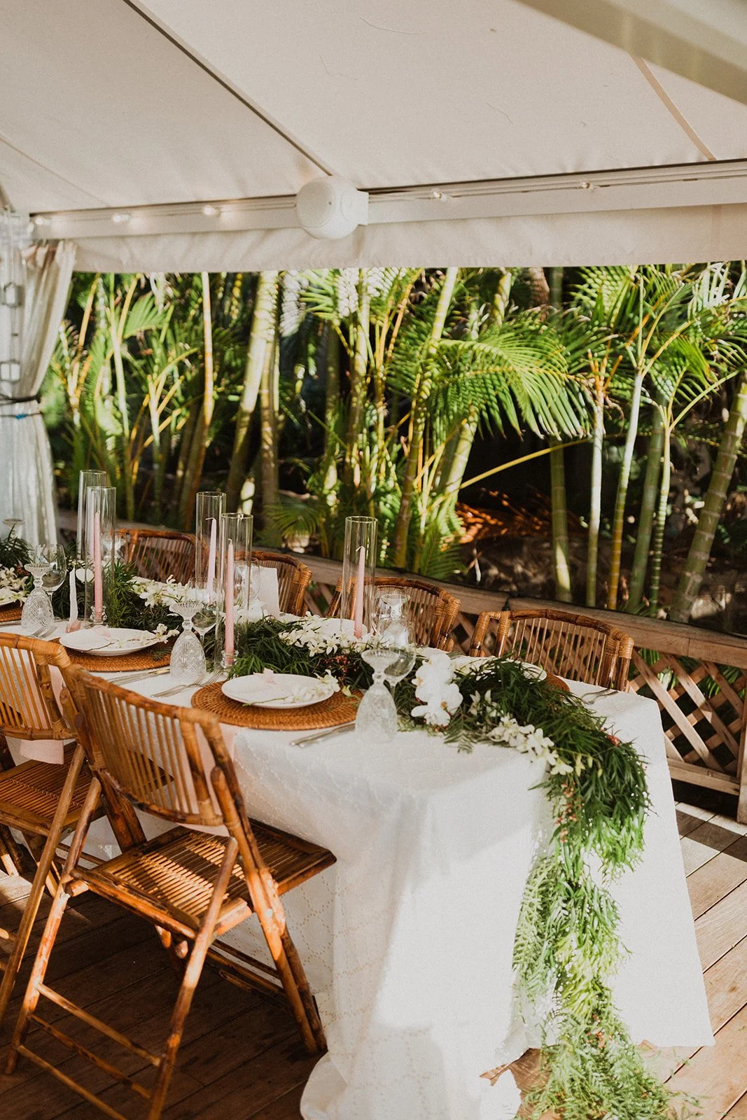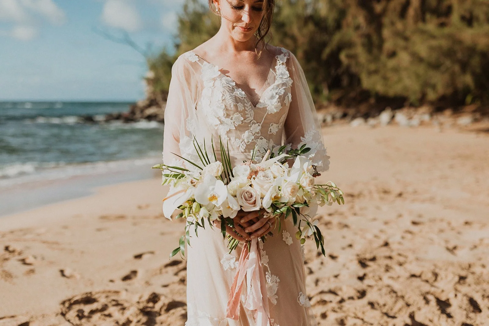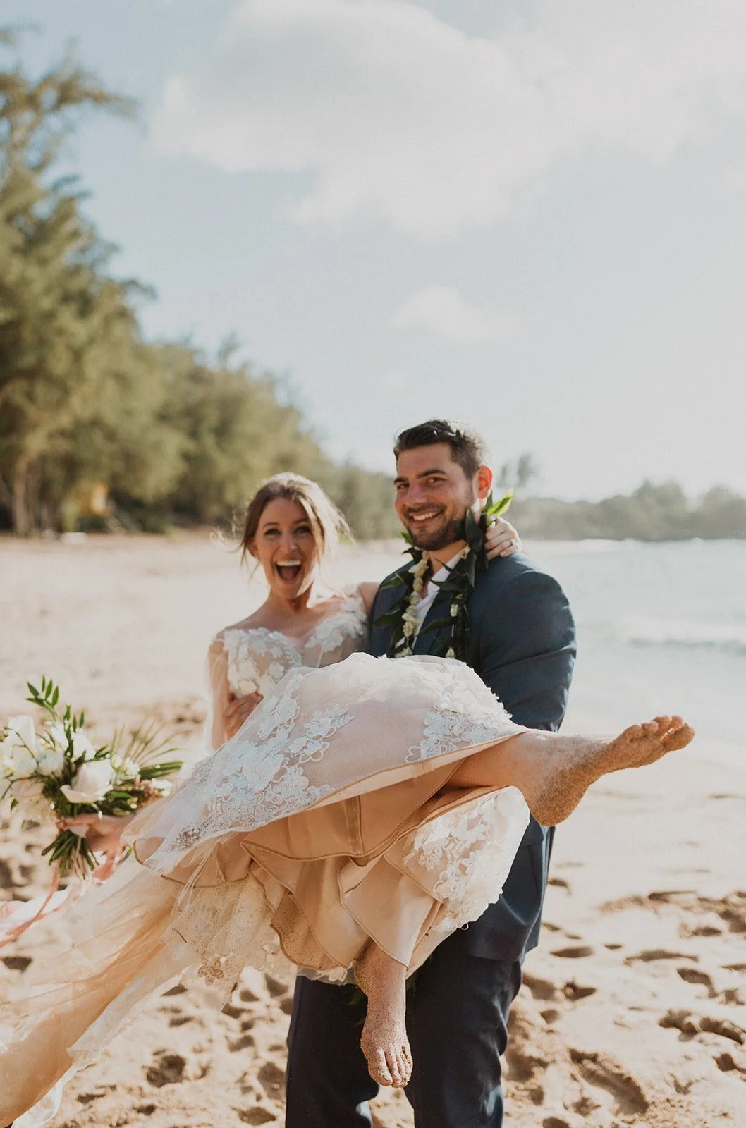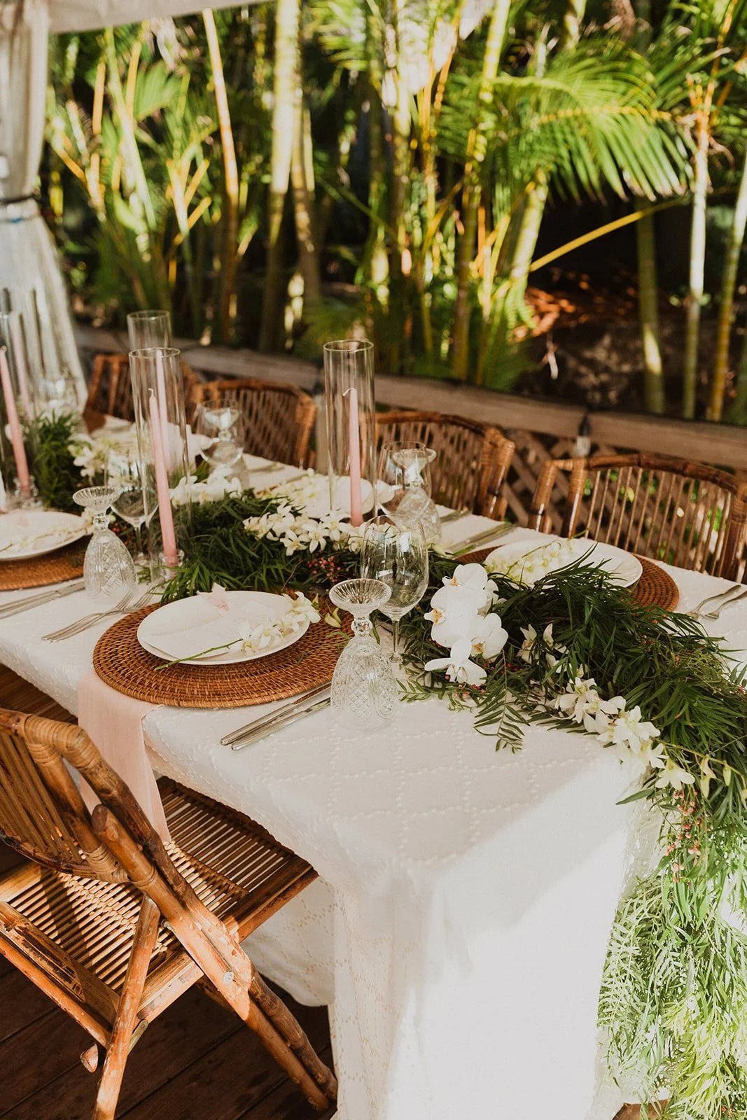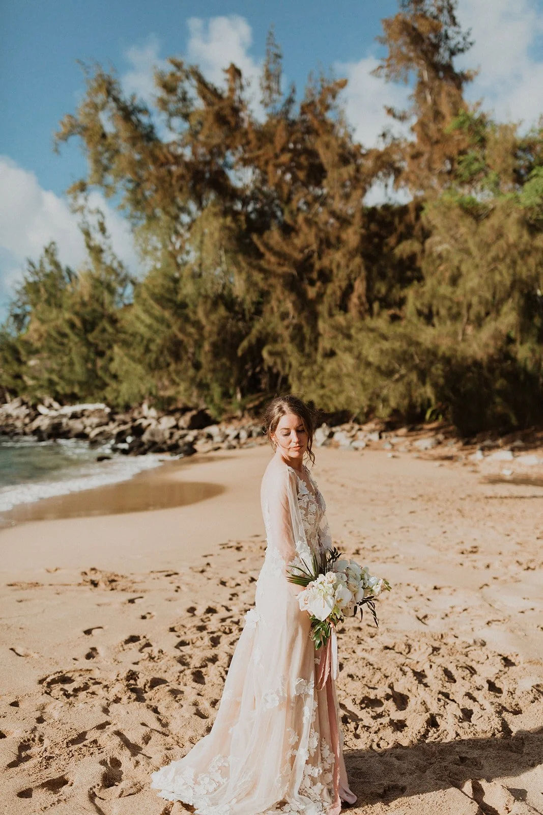 The elopement was absolutely dreamy. They held their special day at Merriman’s Maui and it was a perfect-perfect location! They had their ceremony on the beach, had their first dance, and then headed to the restaurant where there was an intimate + lush outdoor space for them to hold a romantic sunset reception with their close friends + family.