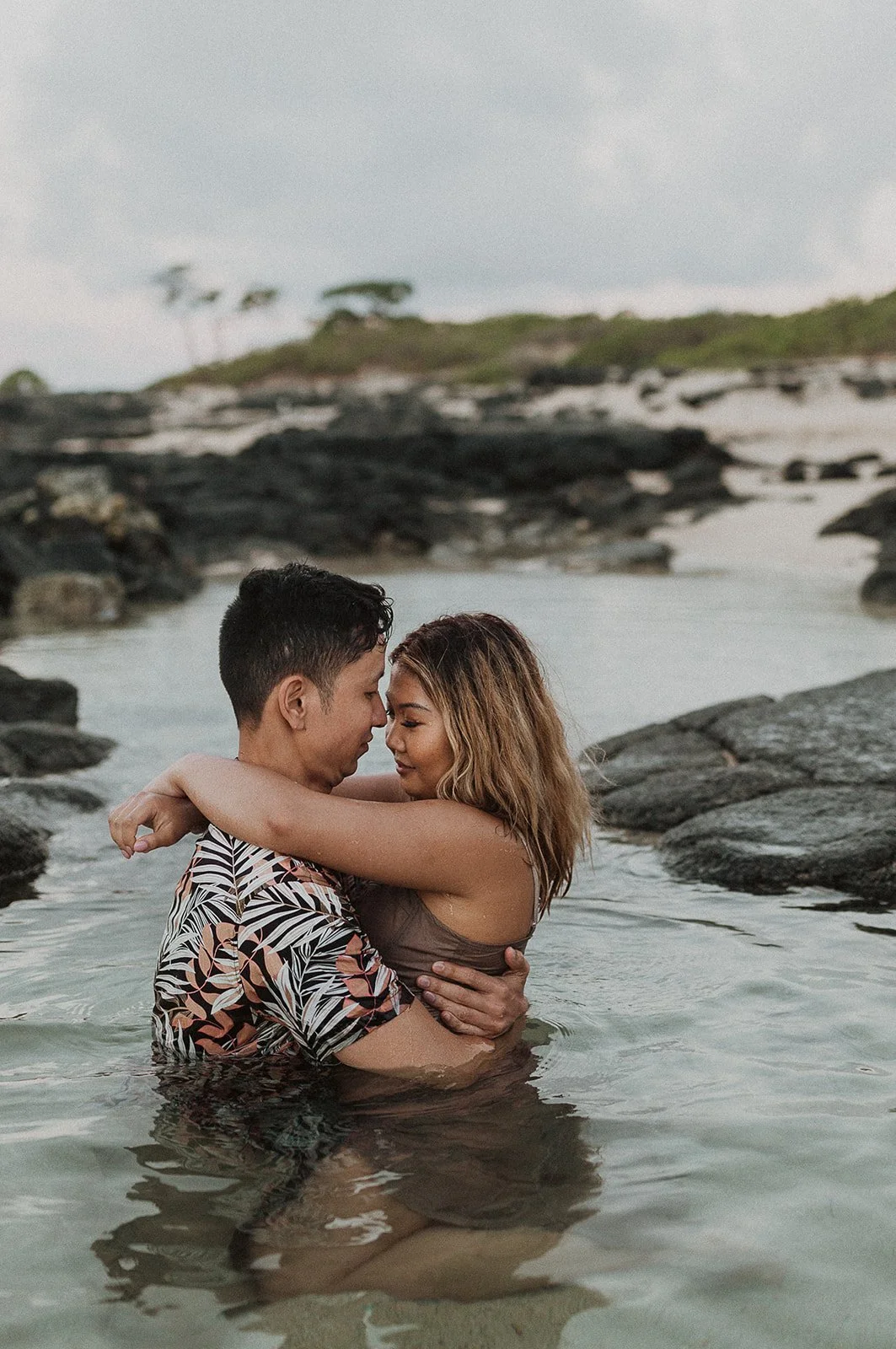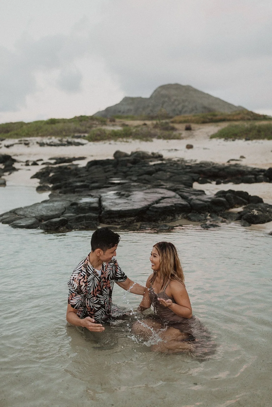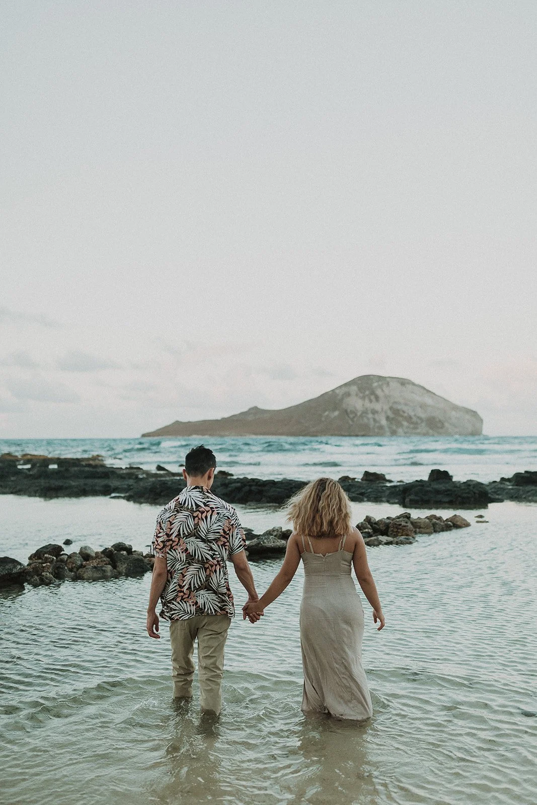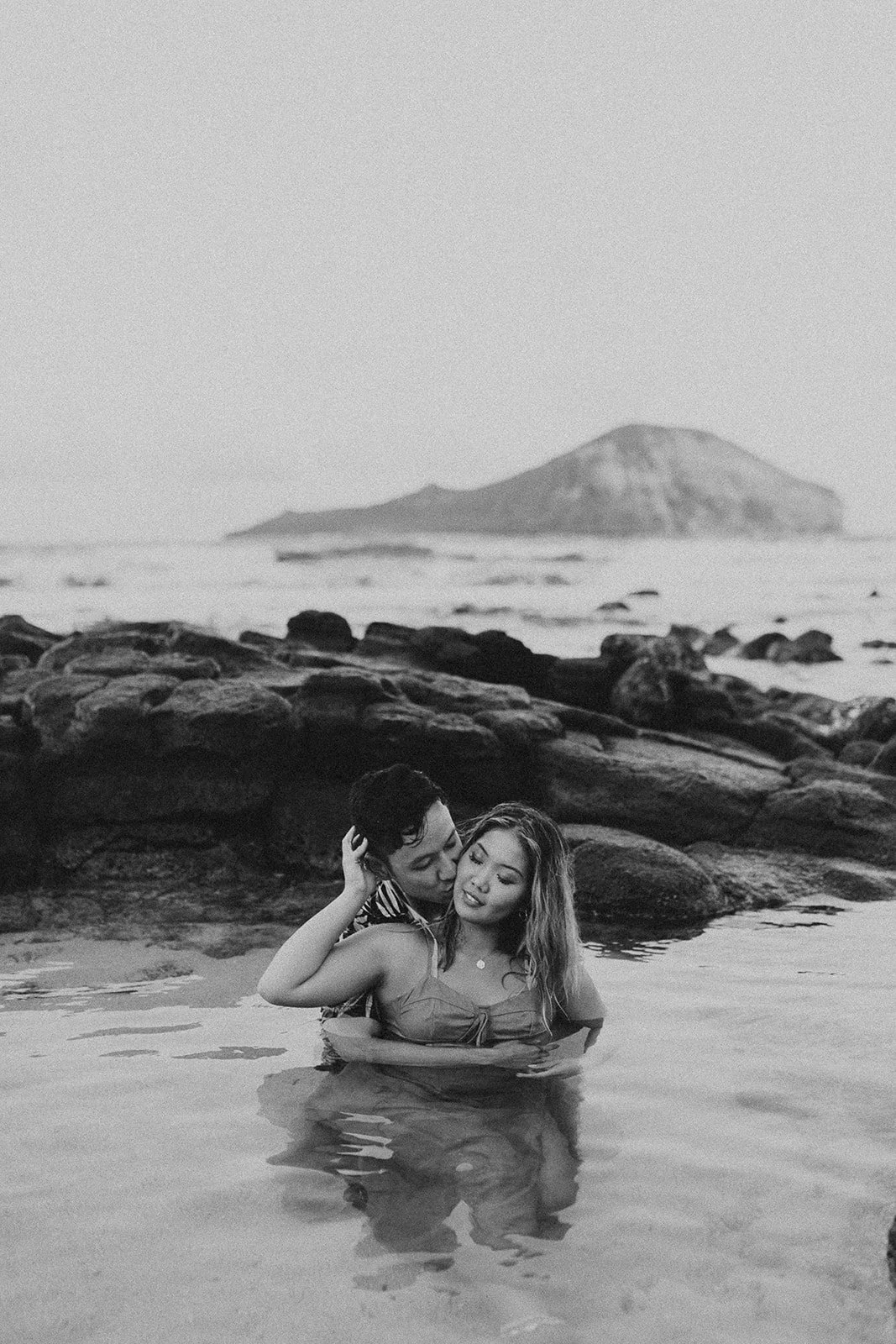The couple wanted to capture a variety of different locations, so we adventured around Oahu’s east side and a few hit different beaches to really maximize the experience. Usually, that side of the island is best for sunrise in terms of lighting, but we decided to shoot at sunset for a softer + more delicate look; and let me tell you, it did not disappoint!
