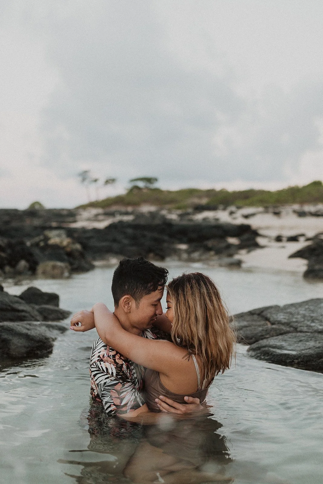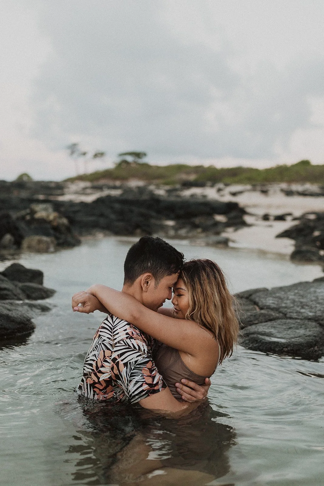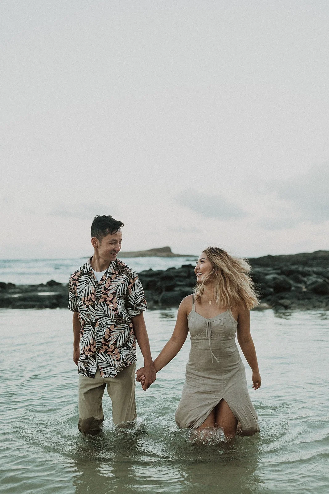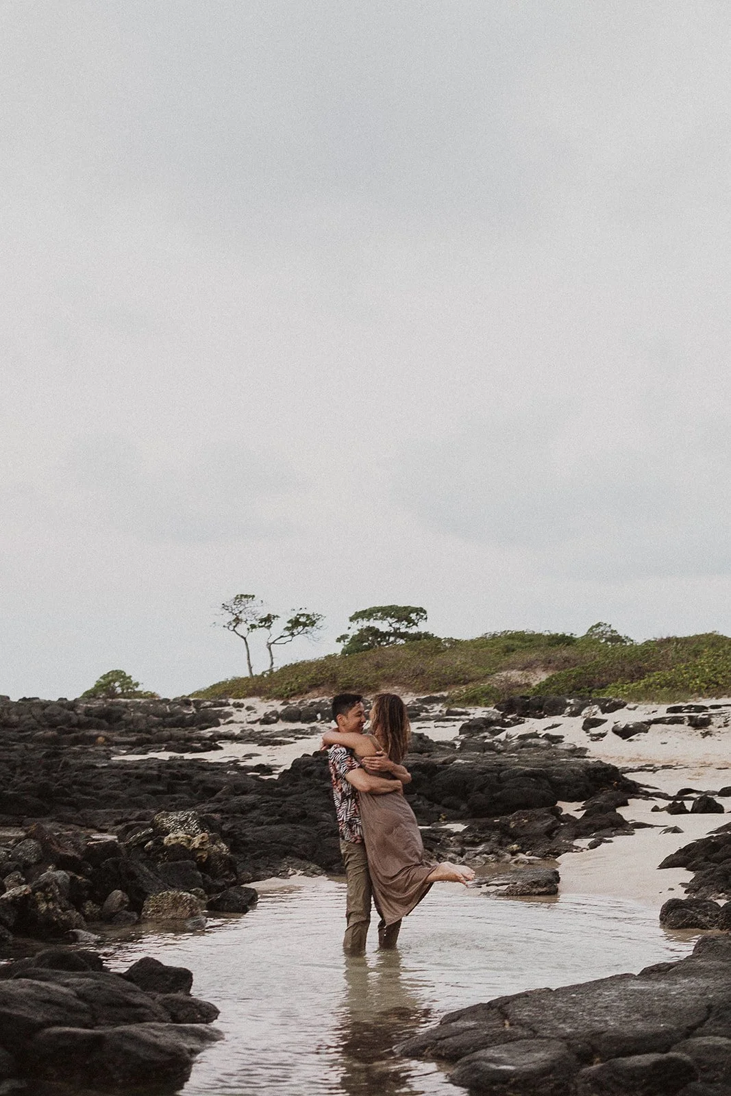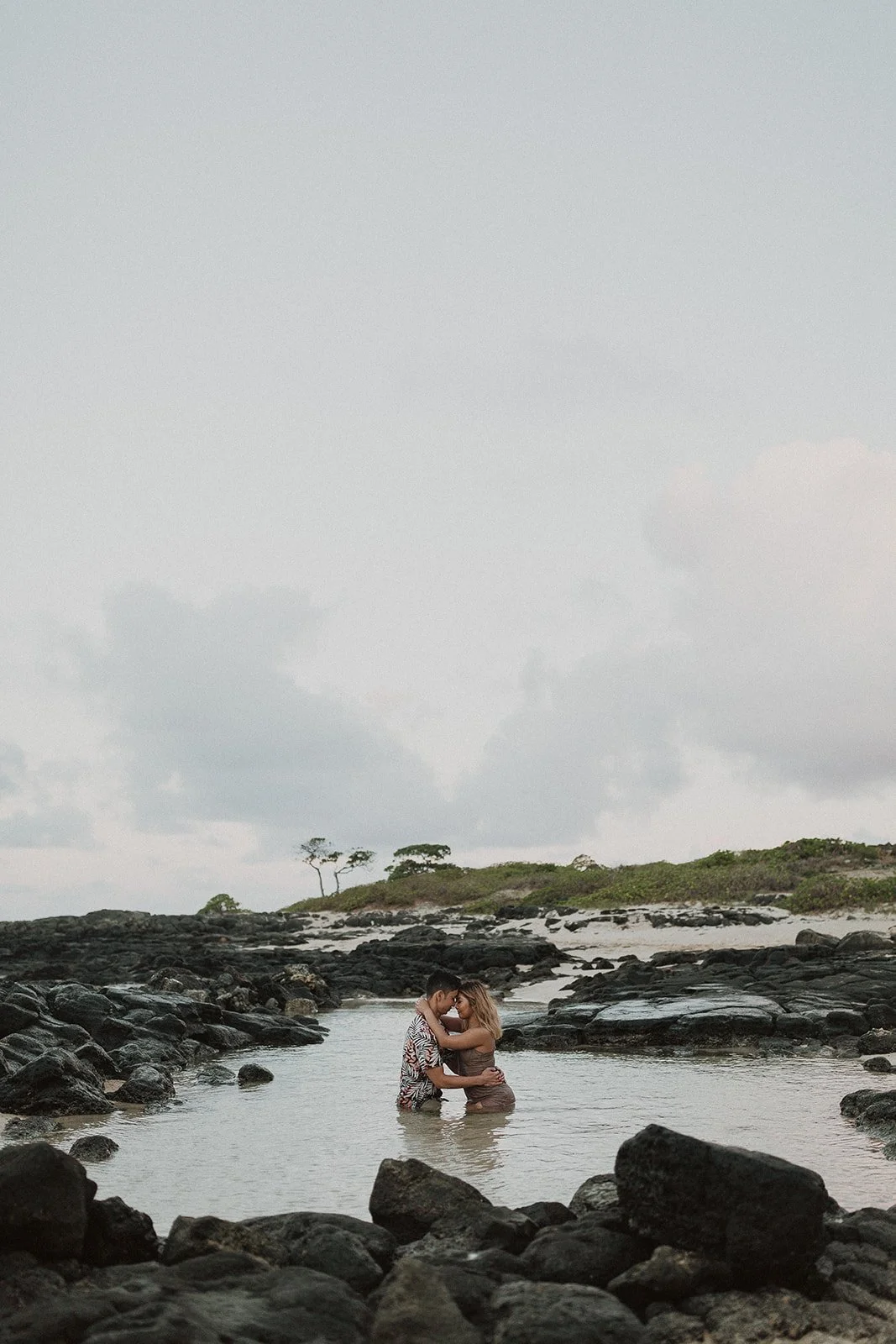 The couple wanted to capture a variety of different locations, so we adventured around Oahu’s east side and a few hit different beaches to really maximize the experience. Usually, that side of the island is best for sunrise in terms of lighting, but we decided to shoot at sunset for a softer + more delicate look; and let me tell you, it did not disappoint!