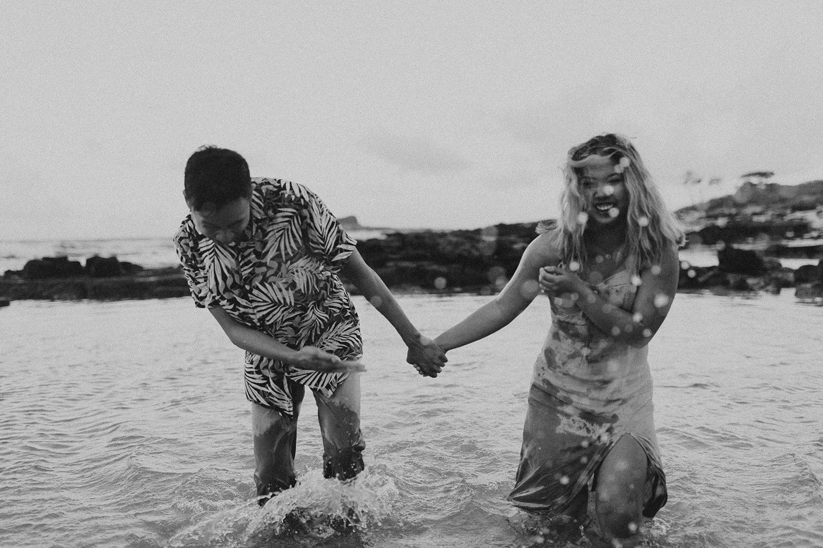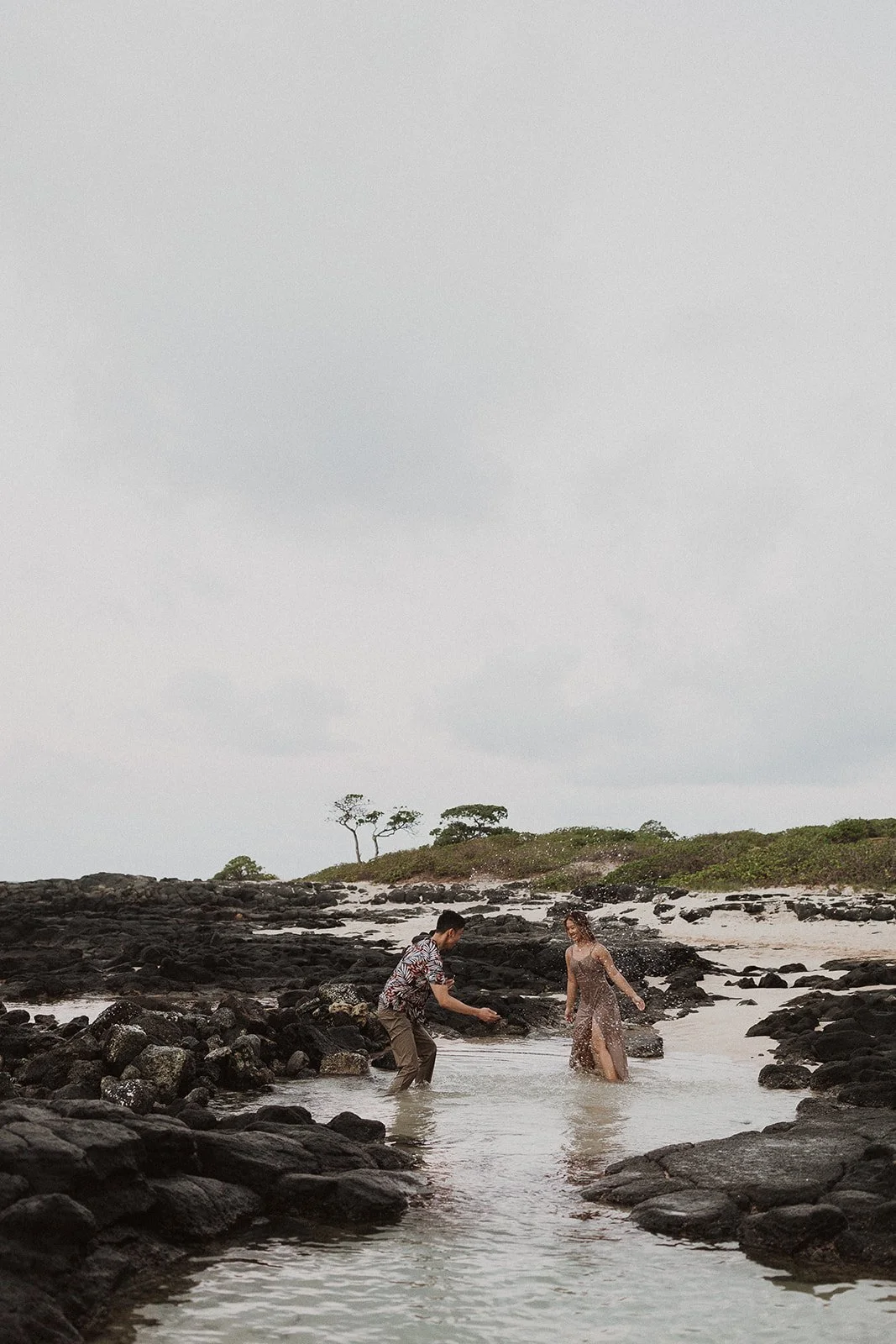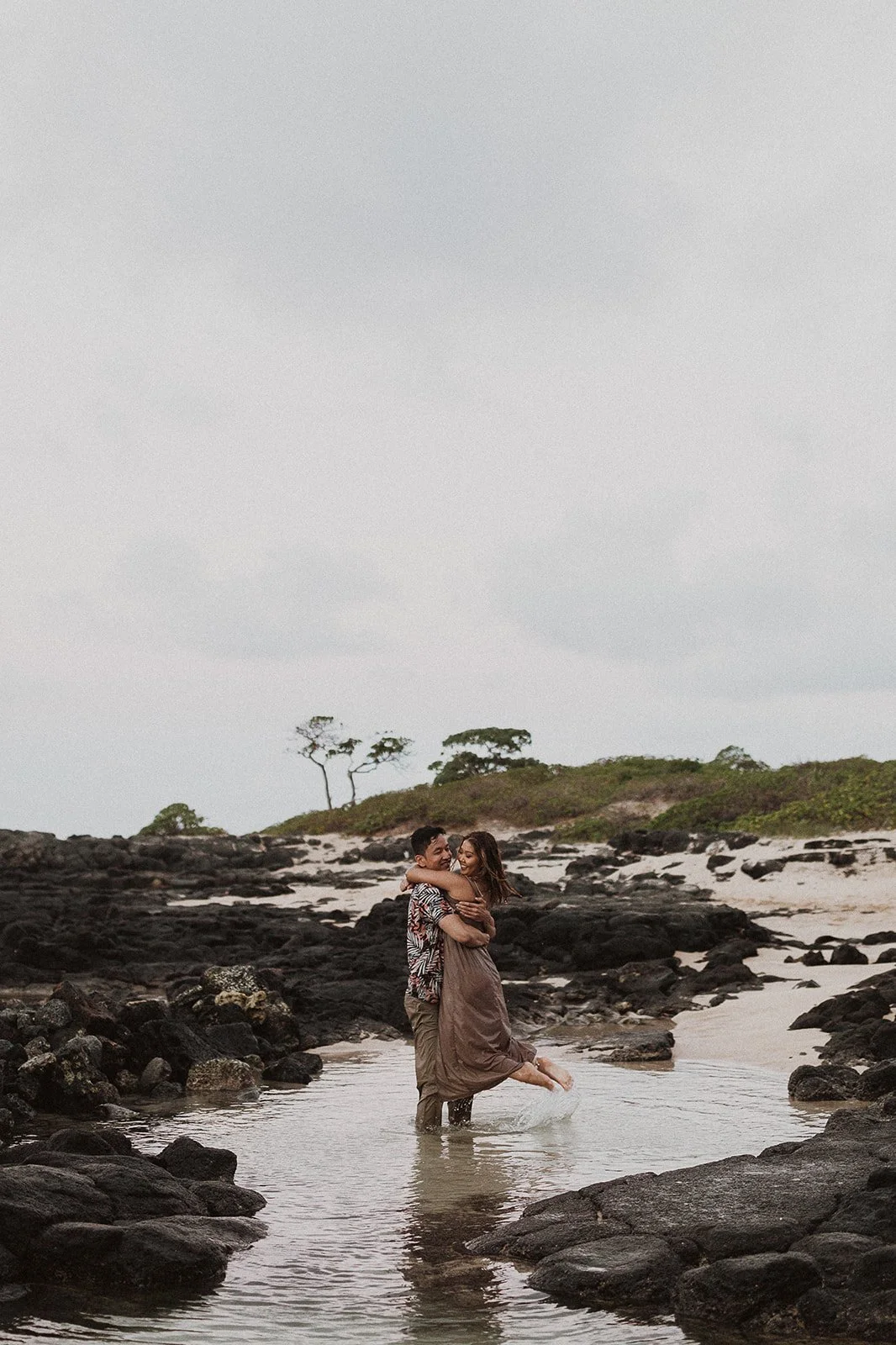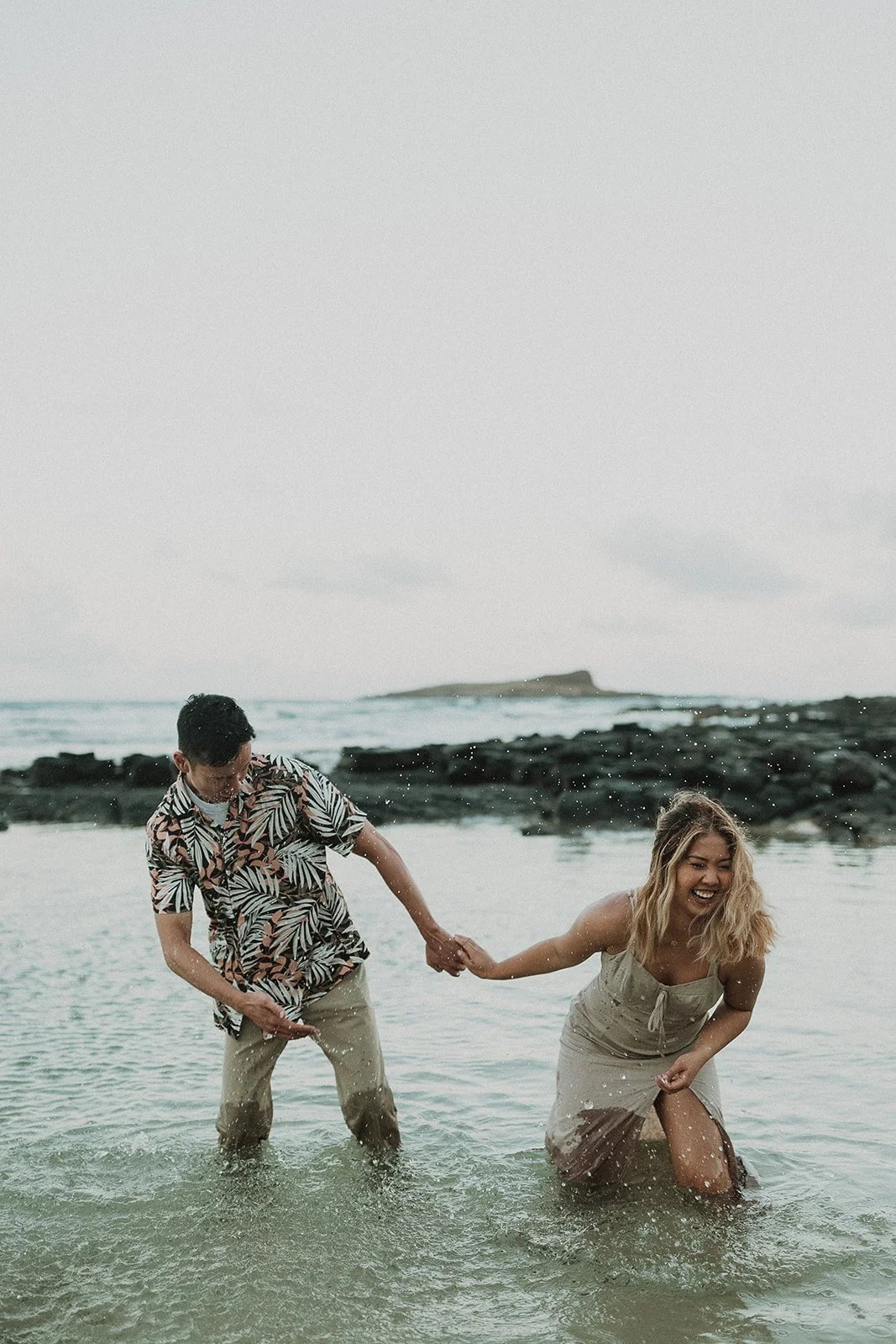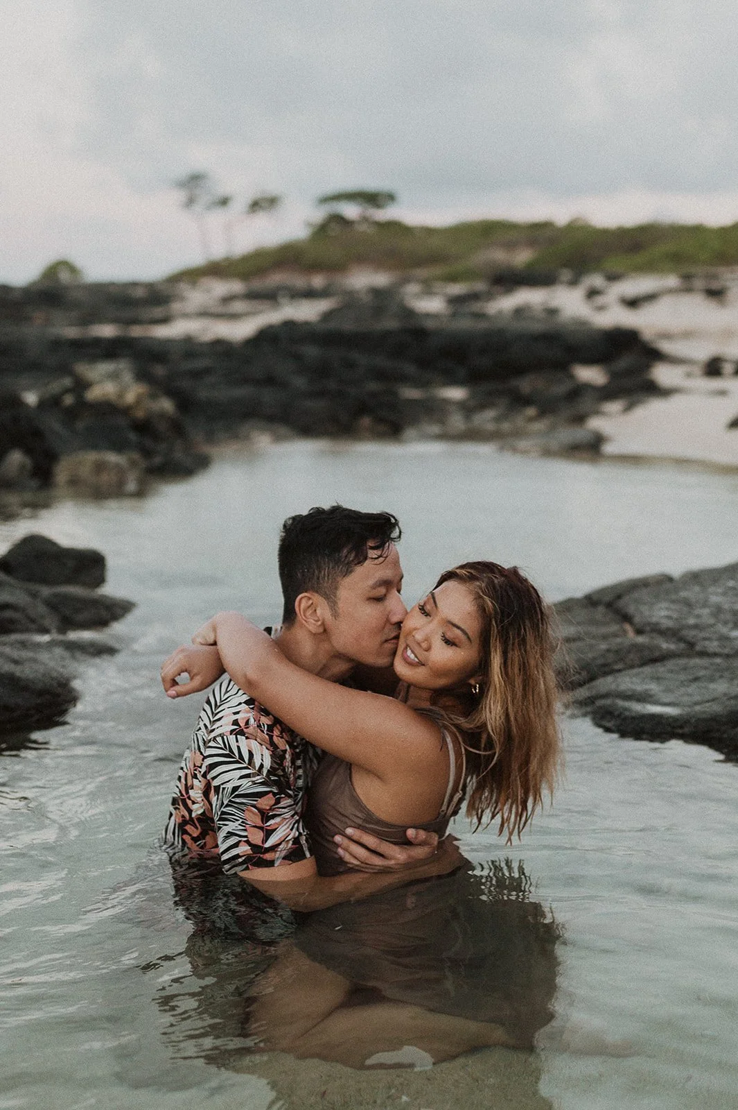 The couple wanted to capture a variety of different locations, so we adventured around Oahu’s east side and a few hit different beaches to really maximize the experience. Usually, that side of the island is best for sunrise in terms of lighting, but we decided to shoot at sunset for a softer + more delicate look; and let me tell you, it did not disappoint!