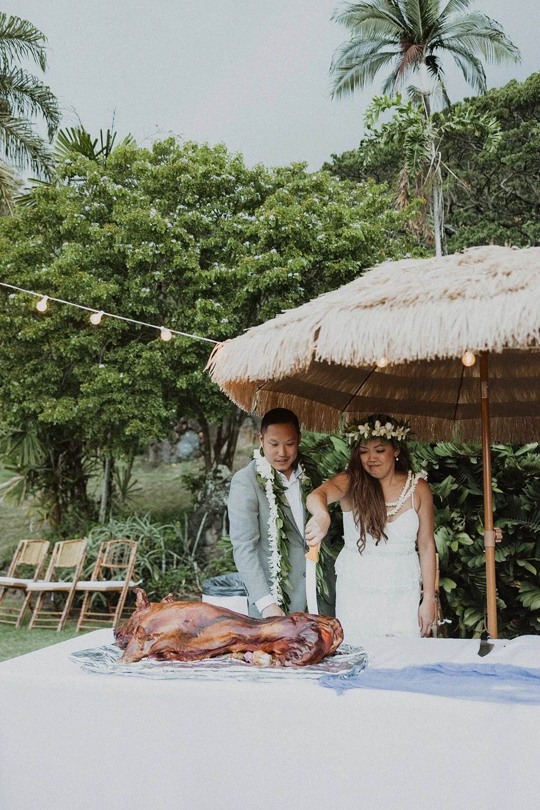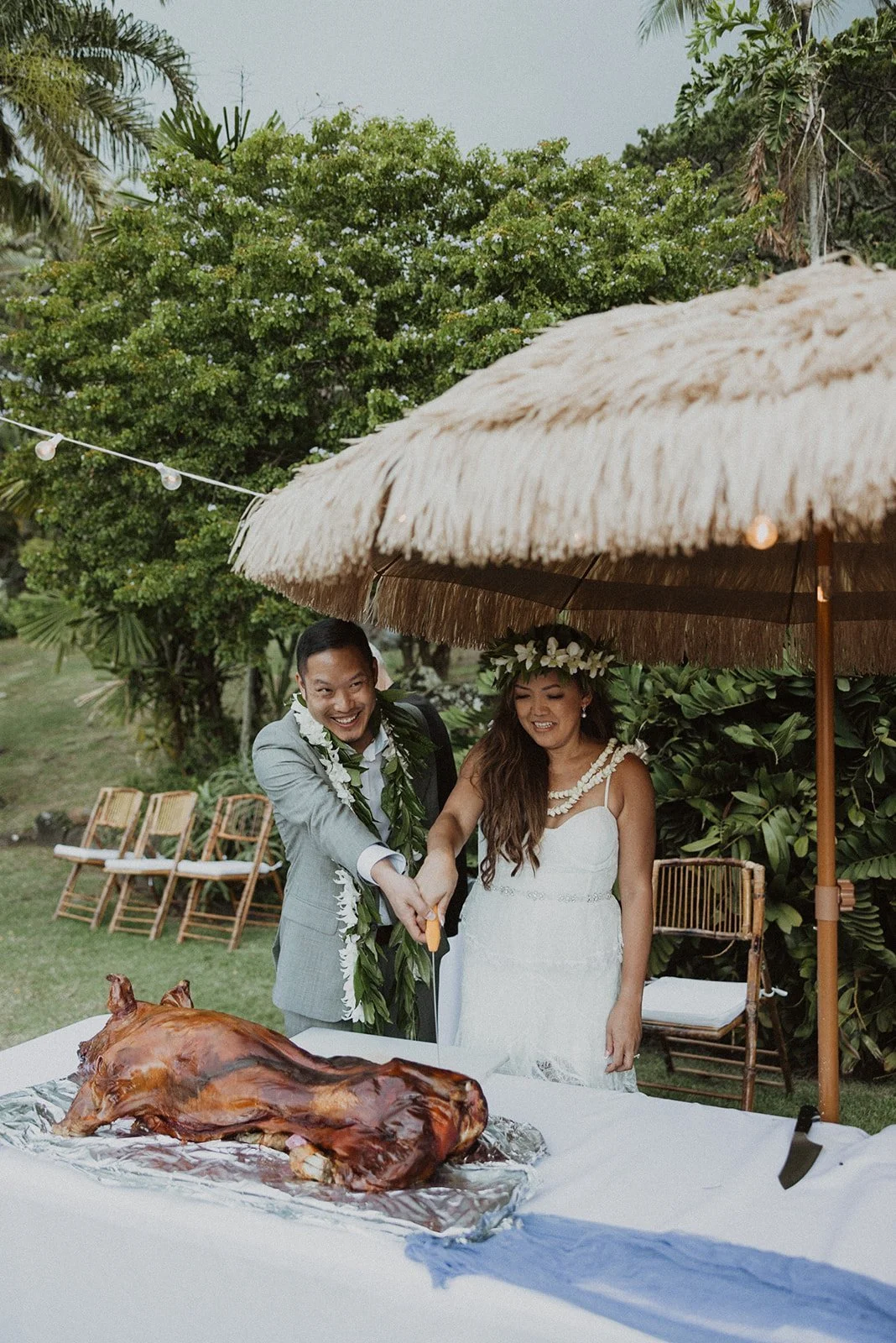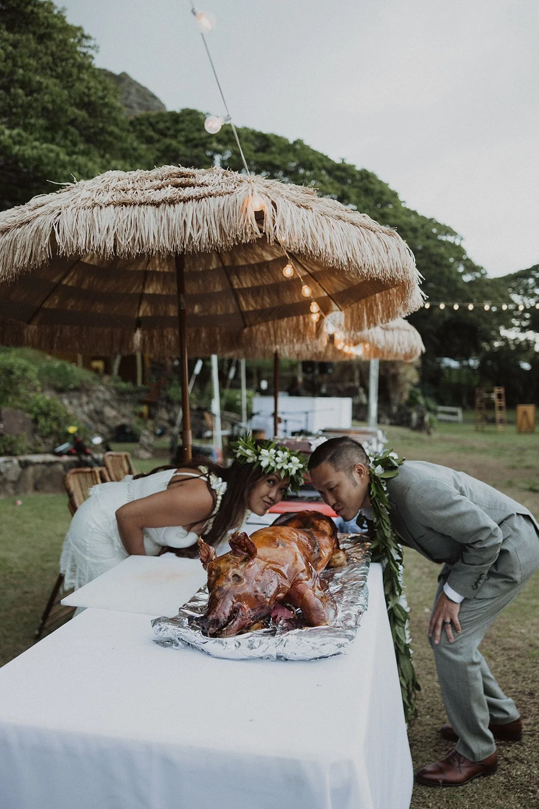 I loved Matt + Claire’s vision for their day. They wanted an intimate and relaxed day while still honoring some traditional Philippine wedding celebrations by incorporating a whole roasted pig, a personalized banner, and even a luau show. Claire shared with me that she grew up in the Philippines and did a lot of hula dancing growing up, always had a roasted pig (lechon; as she called it) at every celebration, and that the banners symbolize the fiesta atmosphere are always present in the Philippines. I absolutely LOVE hearing details like this because it allows me to truly capture the essence of their day and focusing on the parts that have an extra special meaning to the couple.