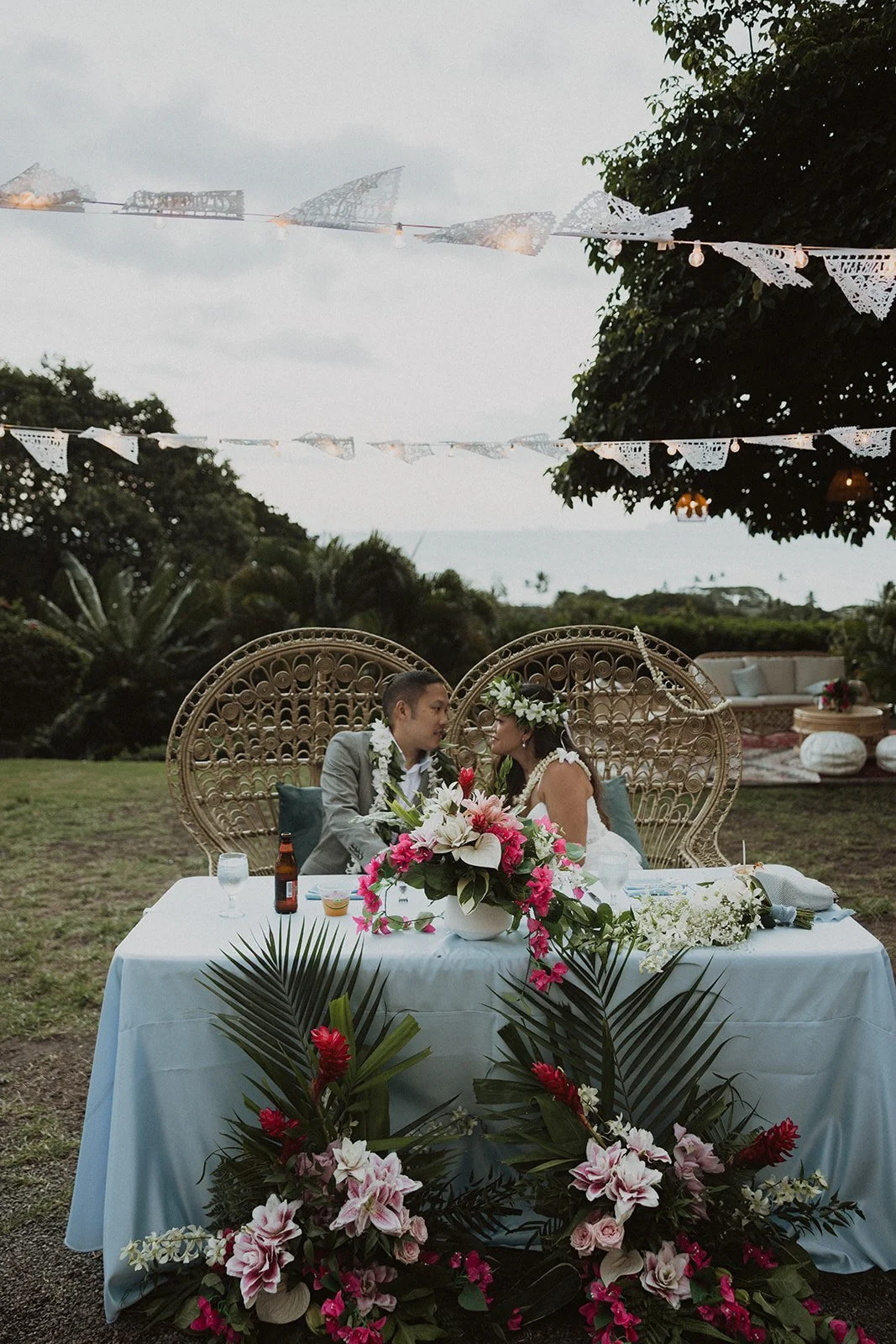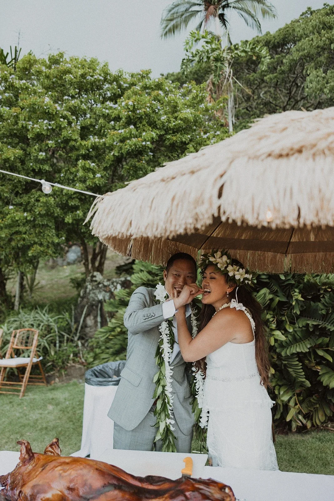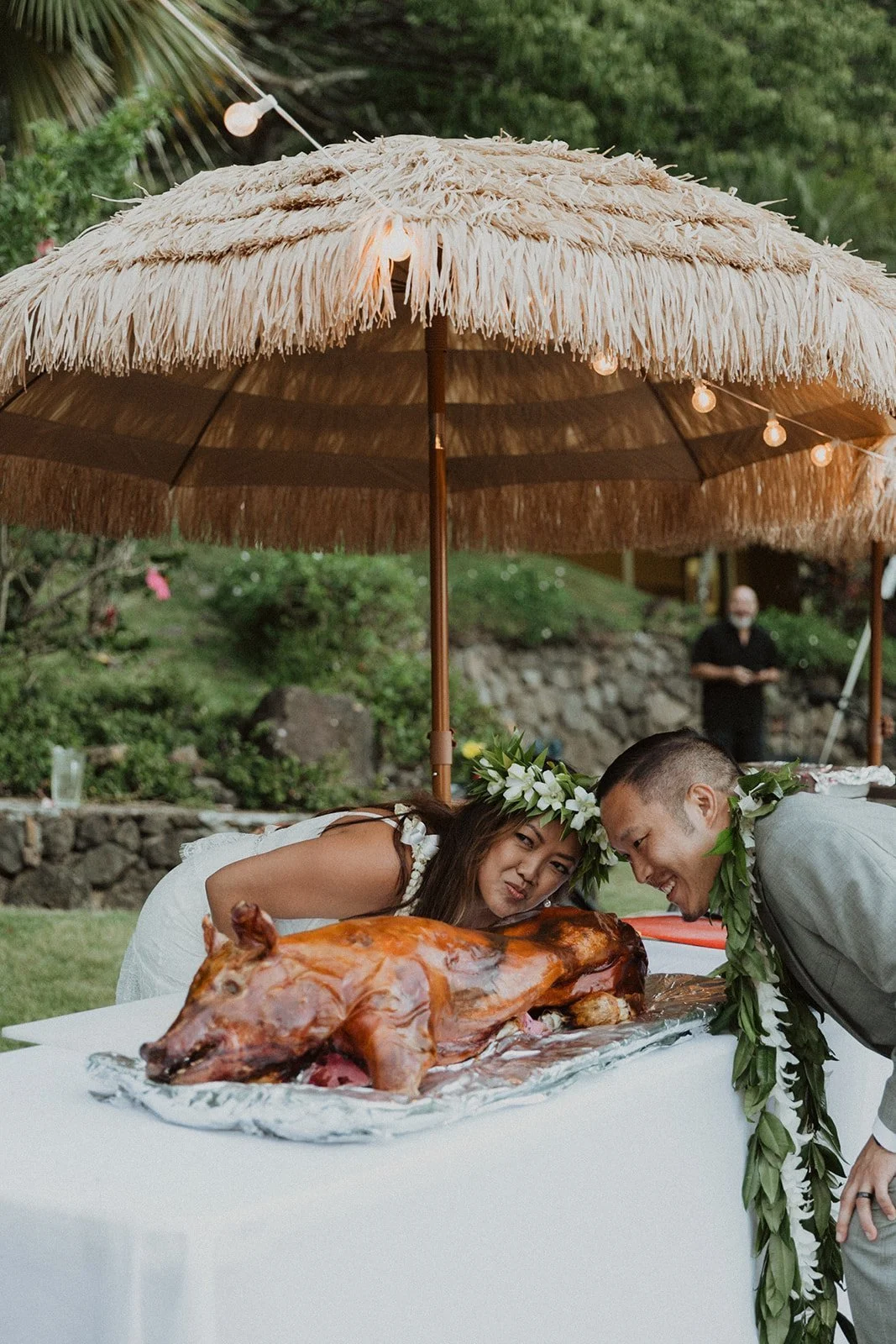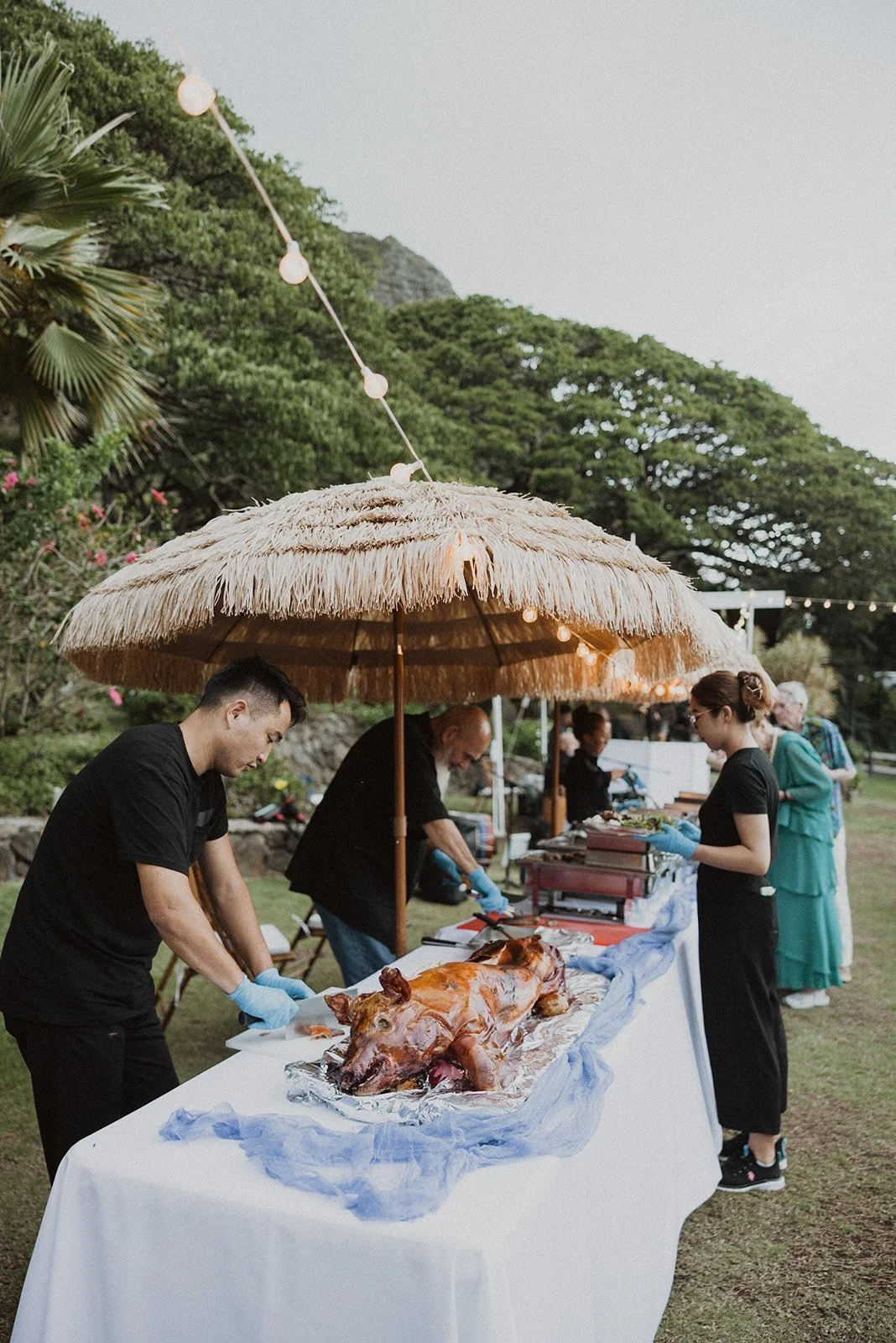 I loved Matt + Claire’s vision for their day. They wanted an intimate and relaxed day while still honoring some traditional Philippine wedding celebrations by incorporating a whole roasted pig, a personalized banner, and even a luau show. Claire shared with me that she grew up in the Philippines and did a lot of hula dancing growing up, always had a roasted pig (lechon; as she called it) at every celebration, and that the banners symbolize the fiesta atmosphere are always present in the Philippines. I absolutely LOVE hearing details like this because it allows me to truly capture the essence of their day and focusing on the parts that have an extra special meaning to the couple.