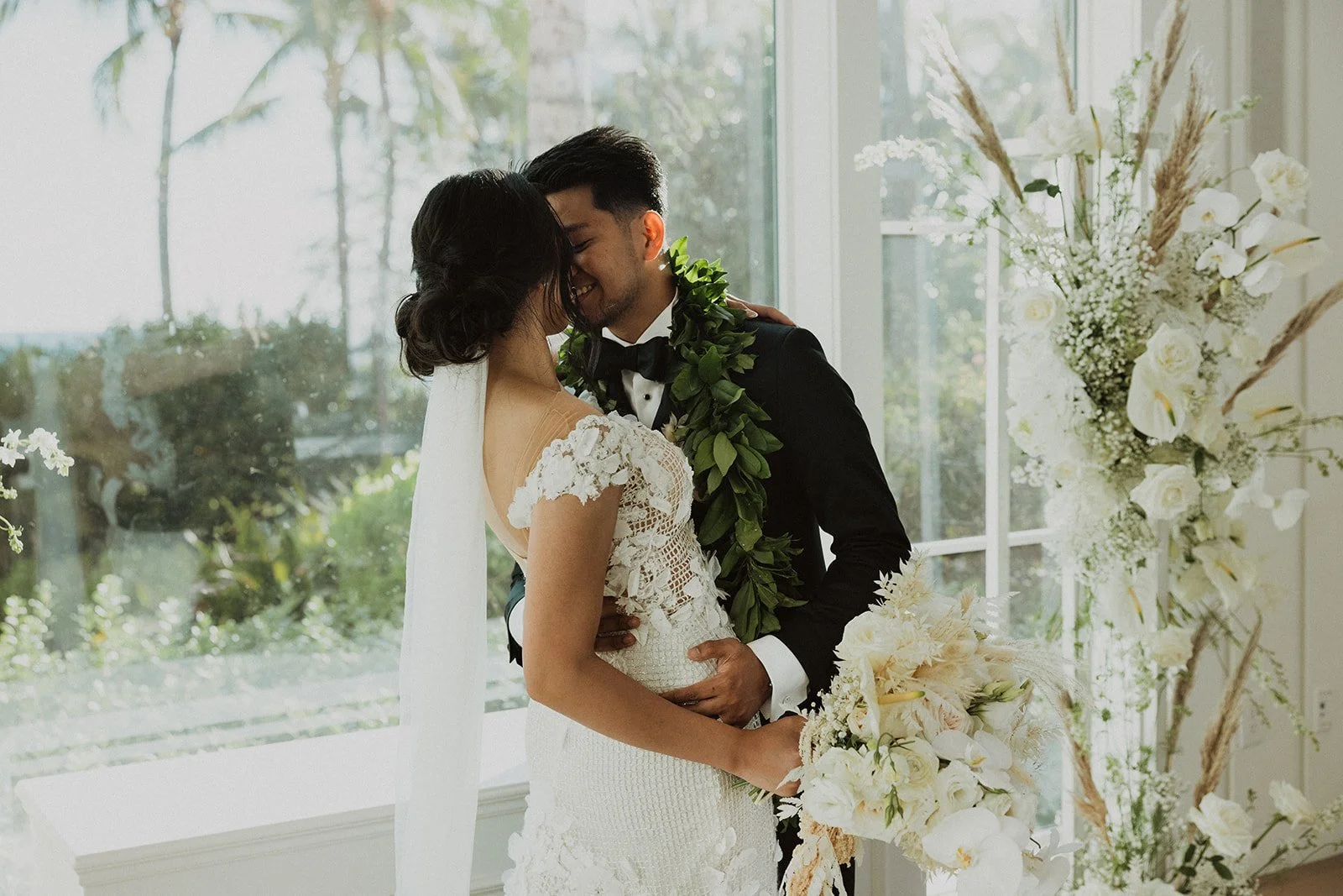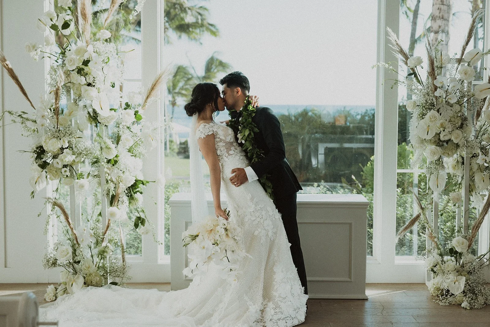 This Four Seasons Resort Oahu wedding was straight out of a luxury wedding magazine!! These two had such a beautiful vision when it came to their special day; it was small, intimate, and had incredibly impeccable design elements throughout their entire day!