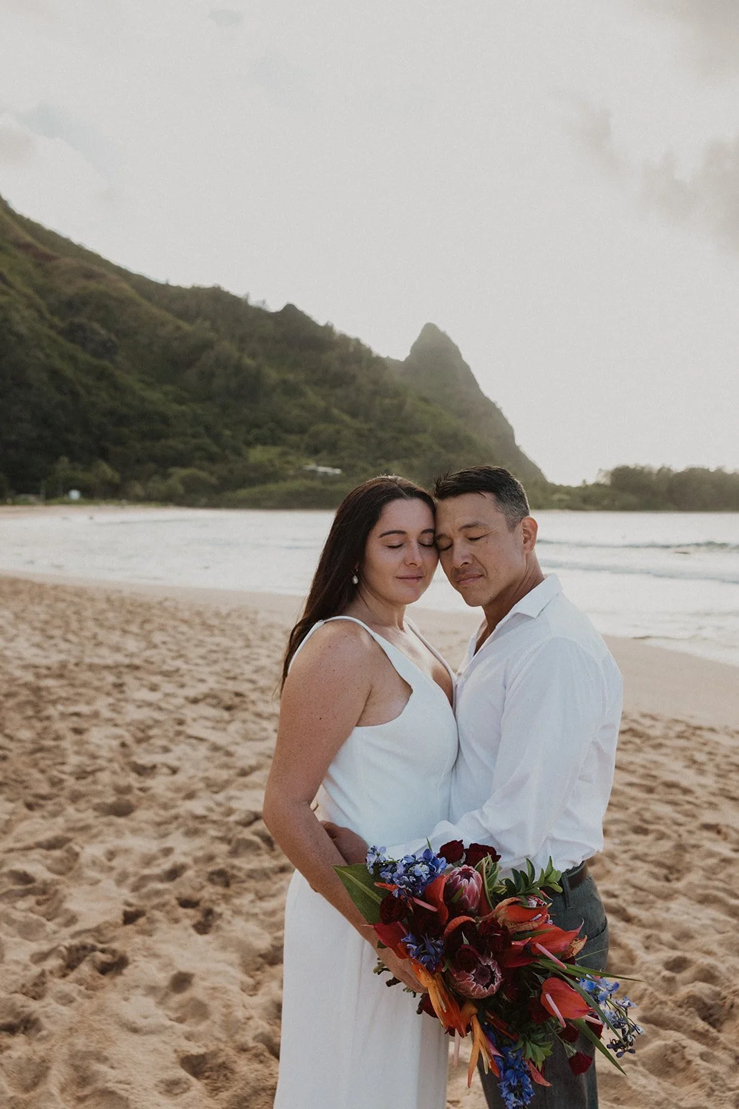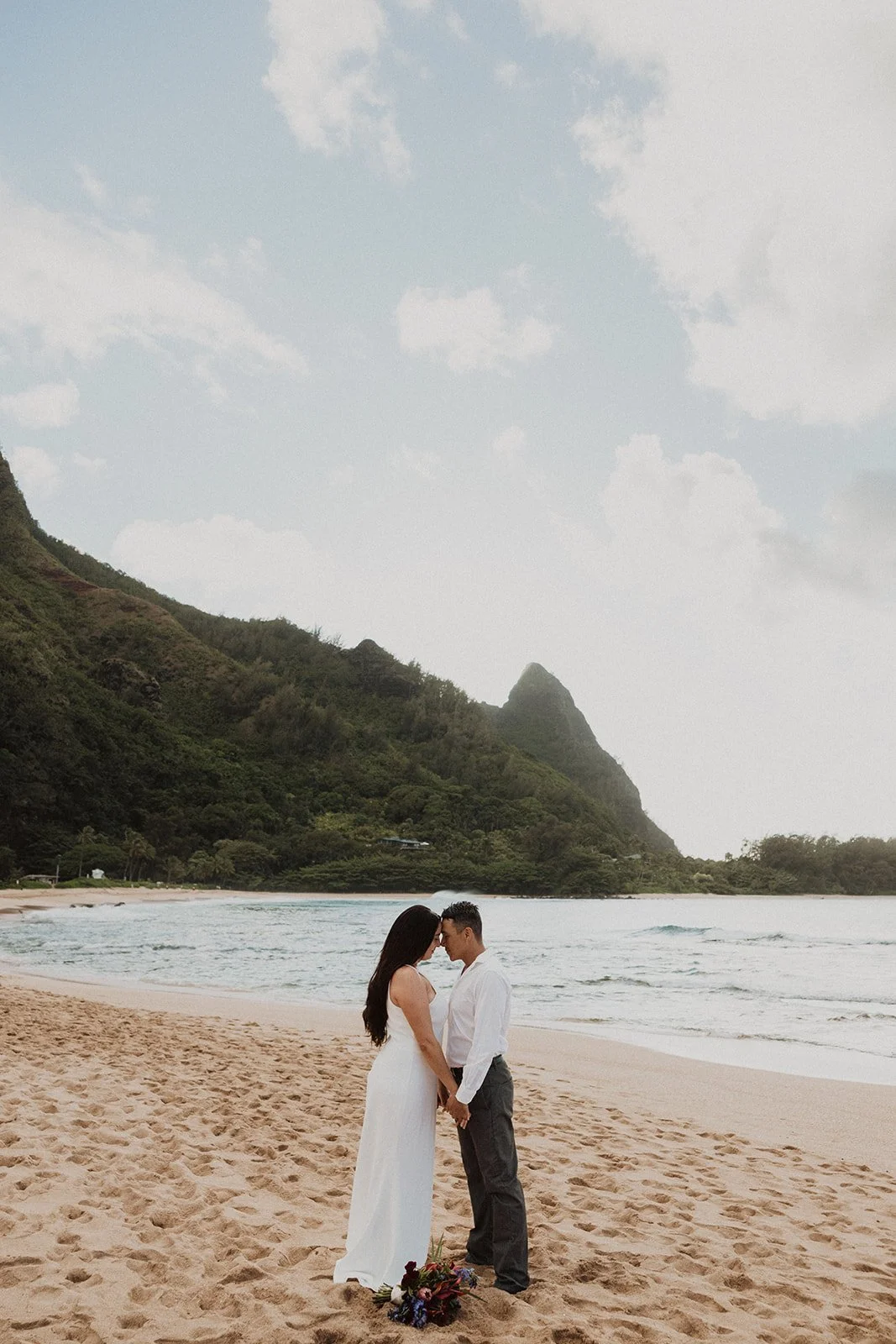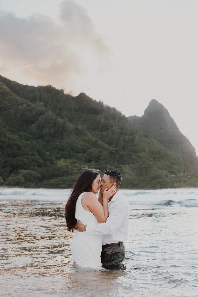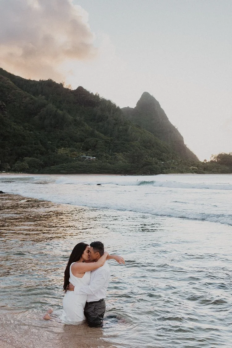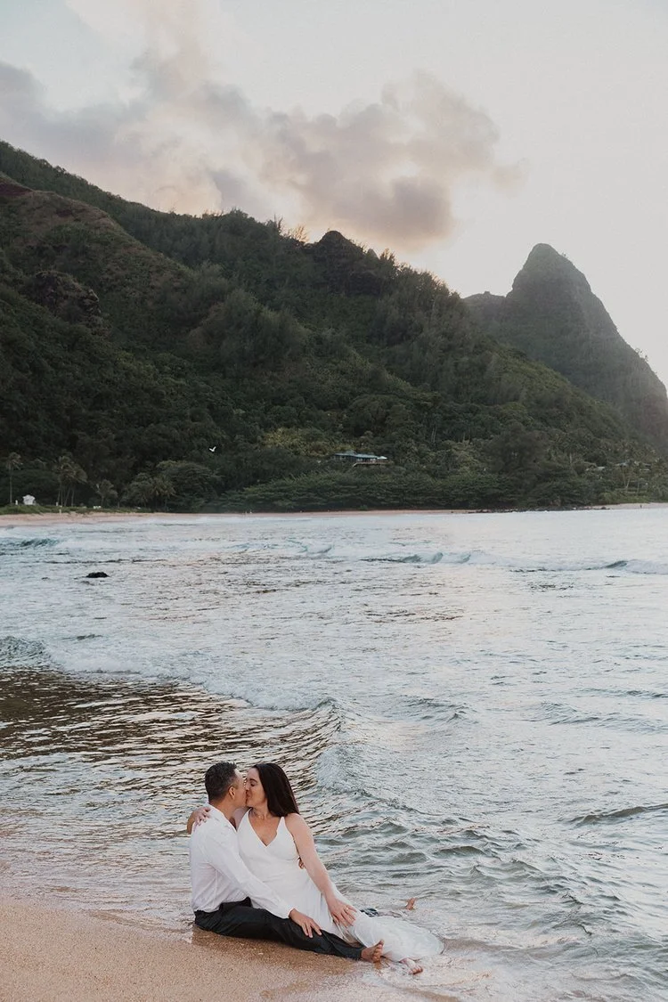 The Kauai elopement of my dreams! This was such a simple, adventurous, and down-to-earth elopement on the North Shore of Kauai for sunset with the prettiest mountain view. Kauai is 1000% the place to elope if you’re looking for an intimate, quiet, and simple day.