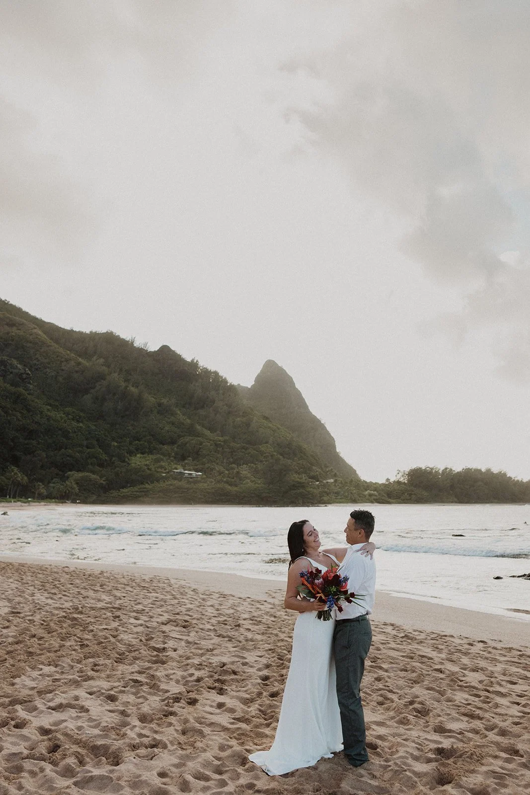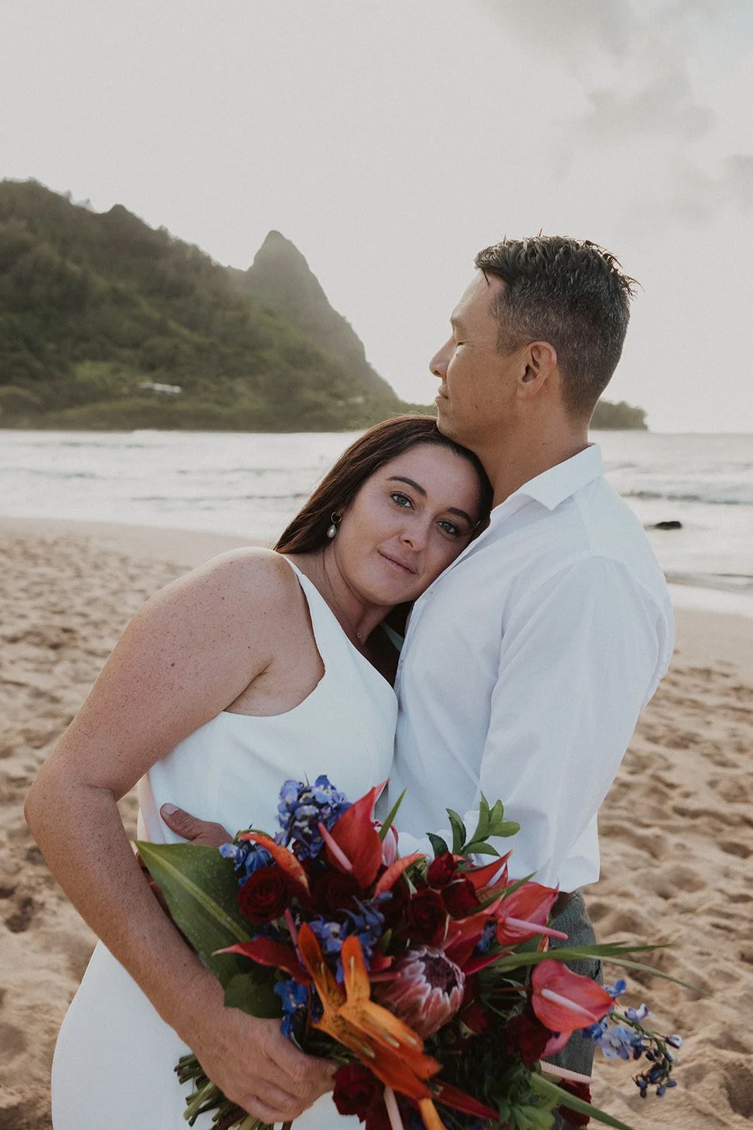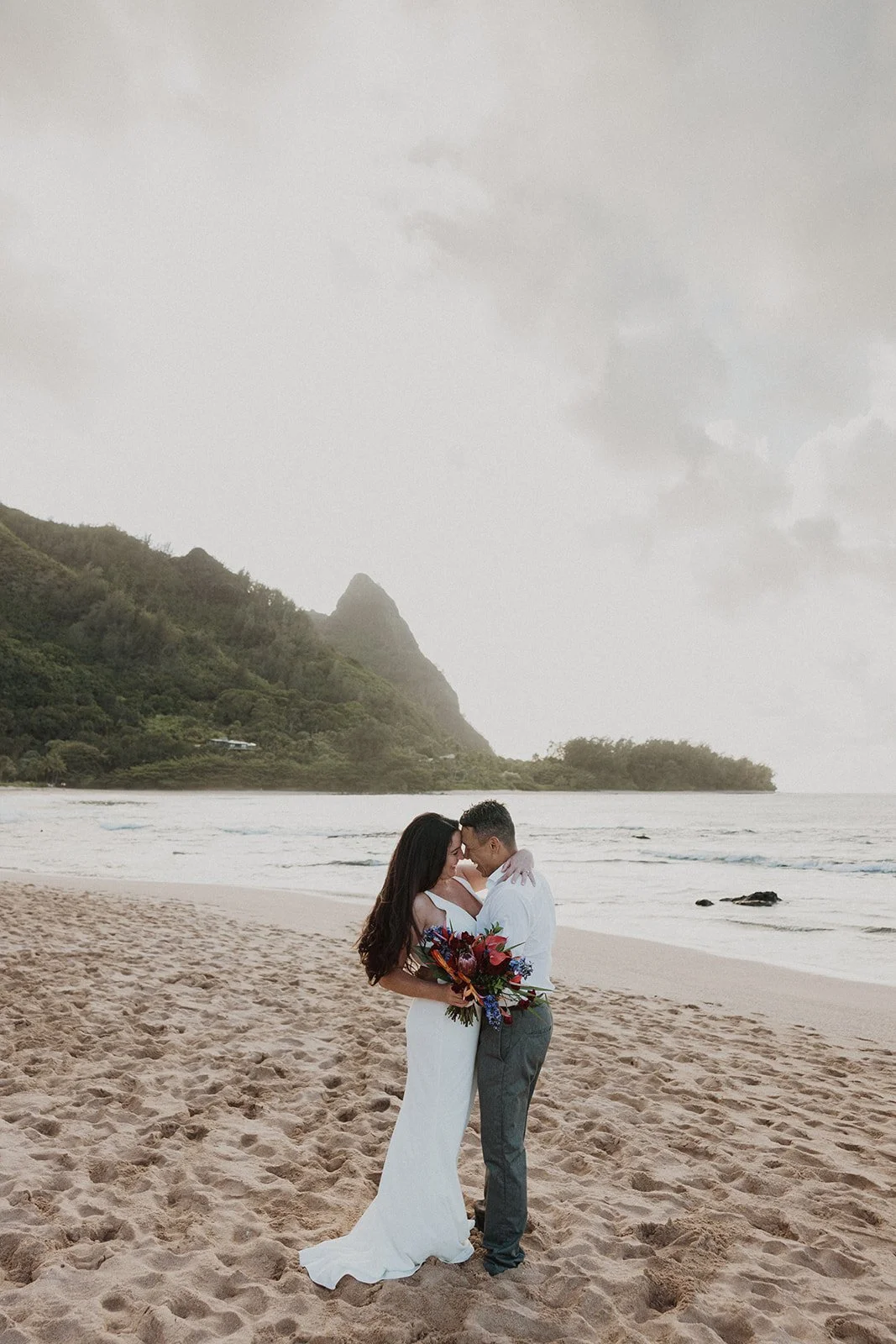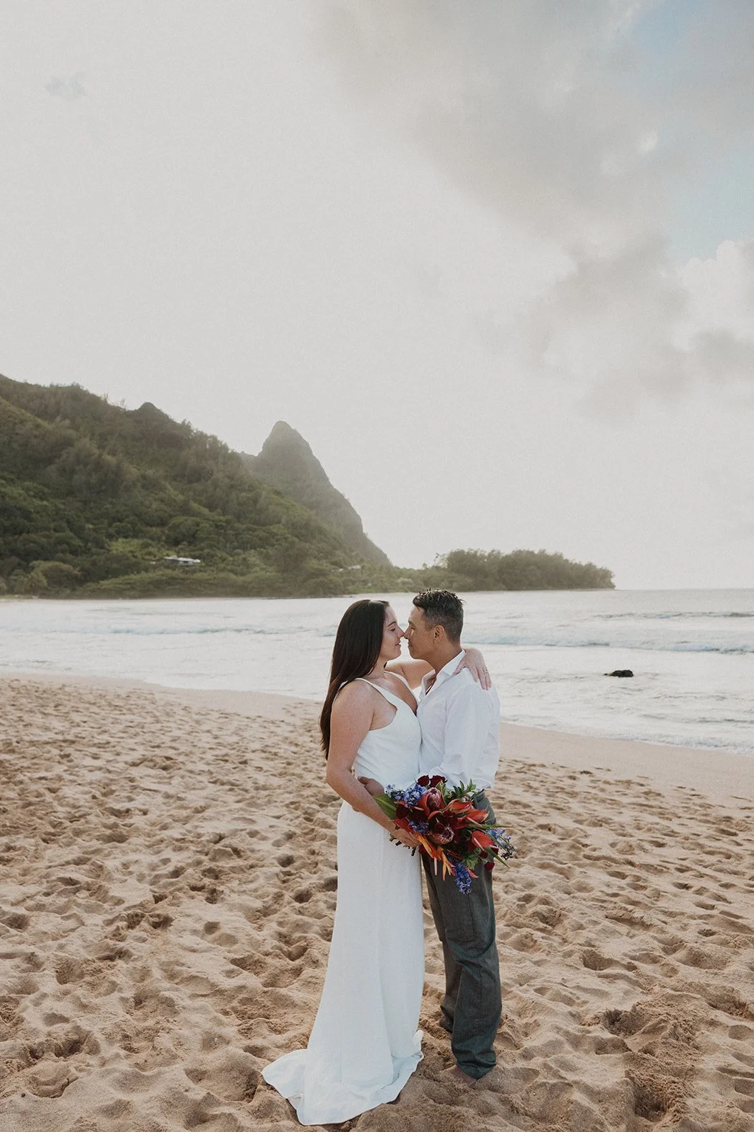 The Kauai elopement of my dreams! This was such a simple, adventurous, and down-to-earth elopement on the North Shore of Kauai for sunset with the prettiest mountain view. Kauai is 1000% the place to elope if you’re looking for an intimate, quiet, and simple day.