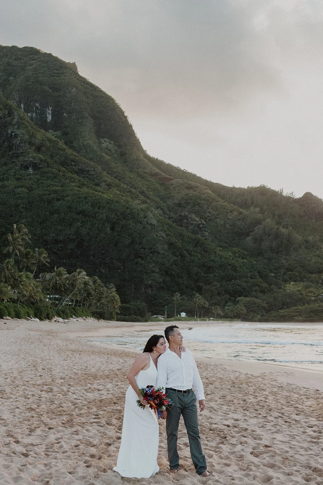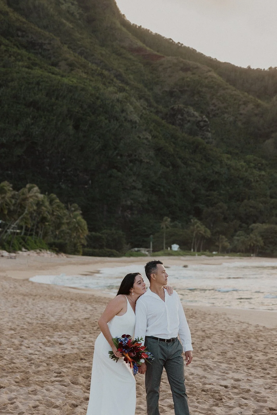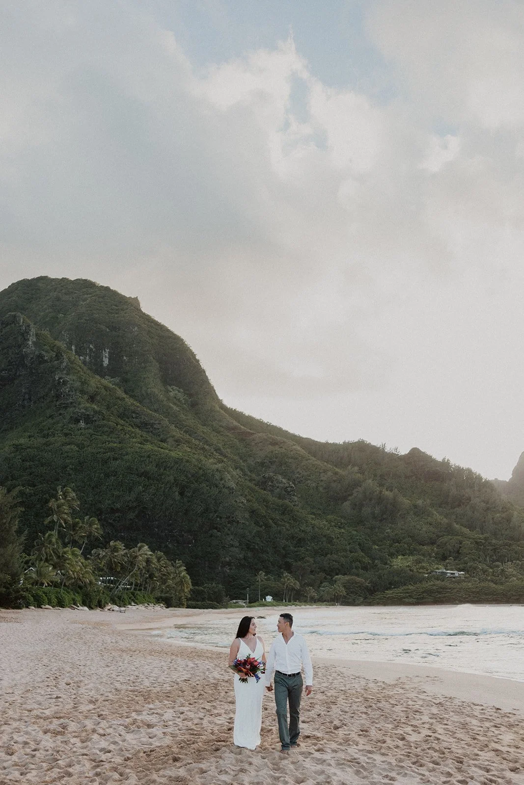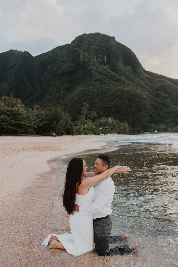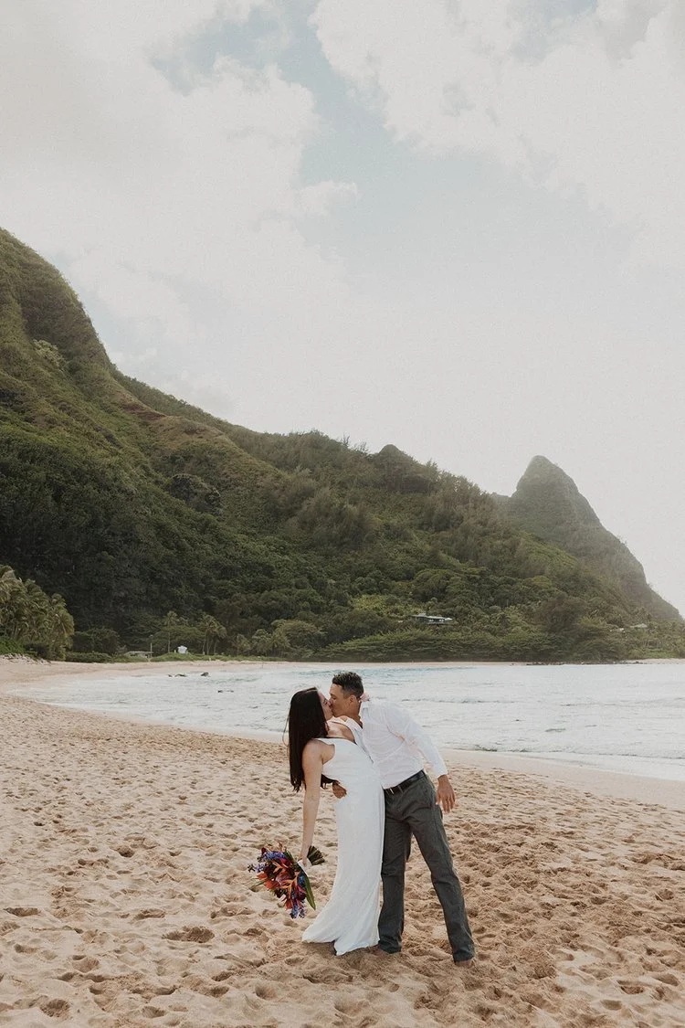 North Shore: Filled with lush greenery and sweeping mountain views with gorgeous sunsets overlooking the Pacific Ocean. (Where this elopement was captured!)