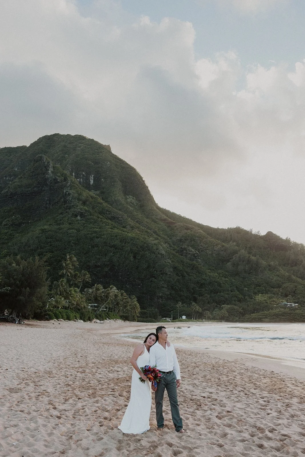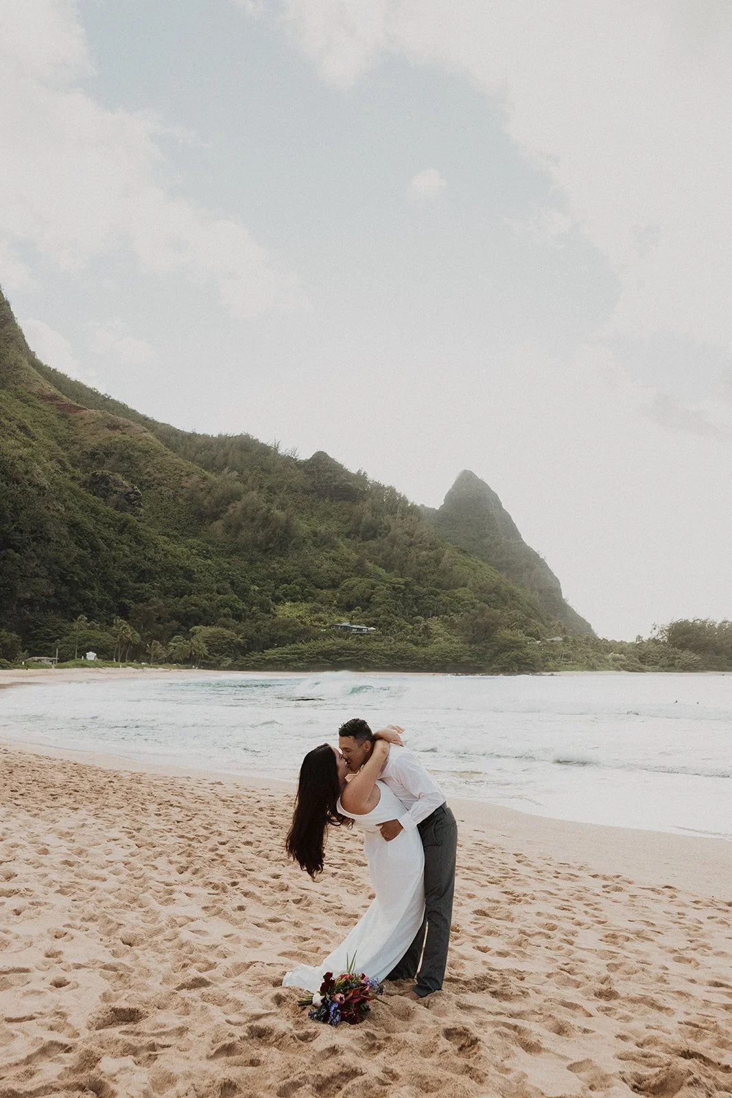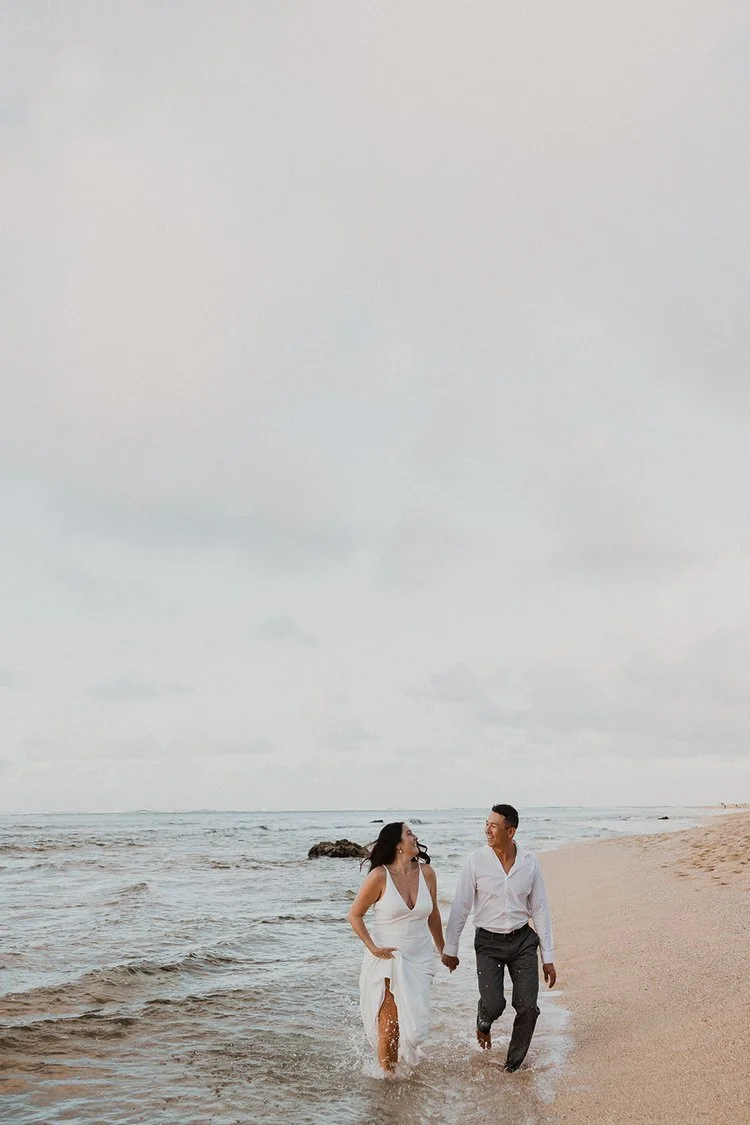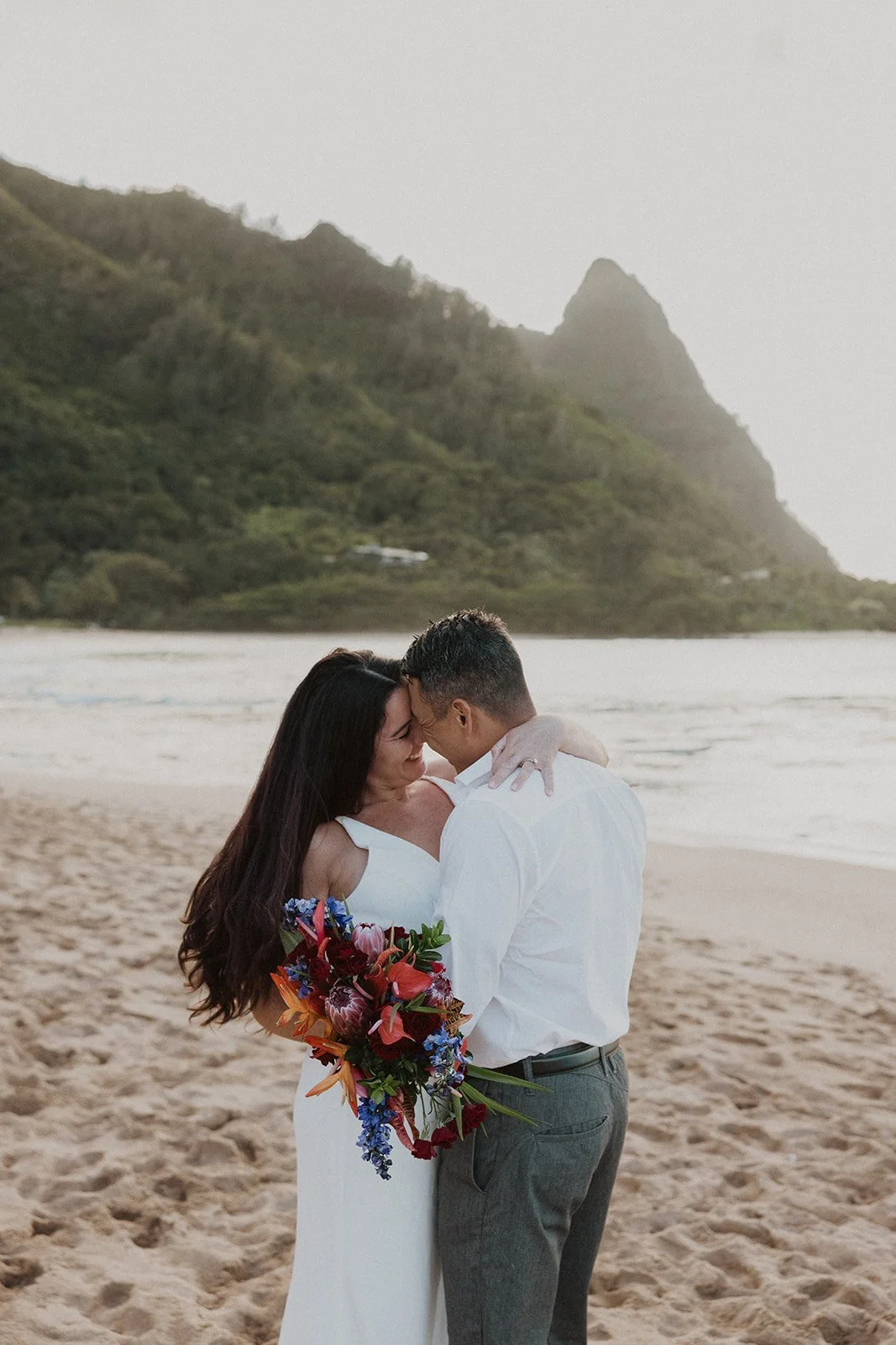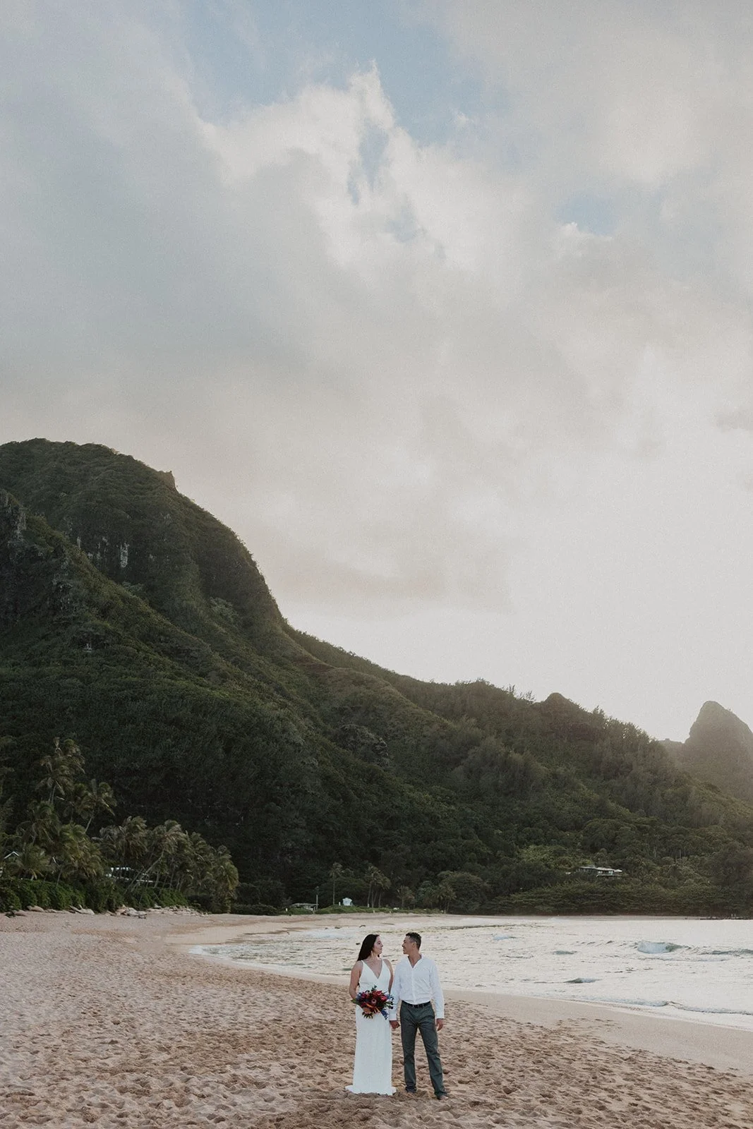 North Shore: Filled with lush greenery and sweeping mountain views with gorgeous sunsets overlooking the Pacific Ocean. (Where this elopement was captured!)