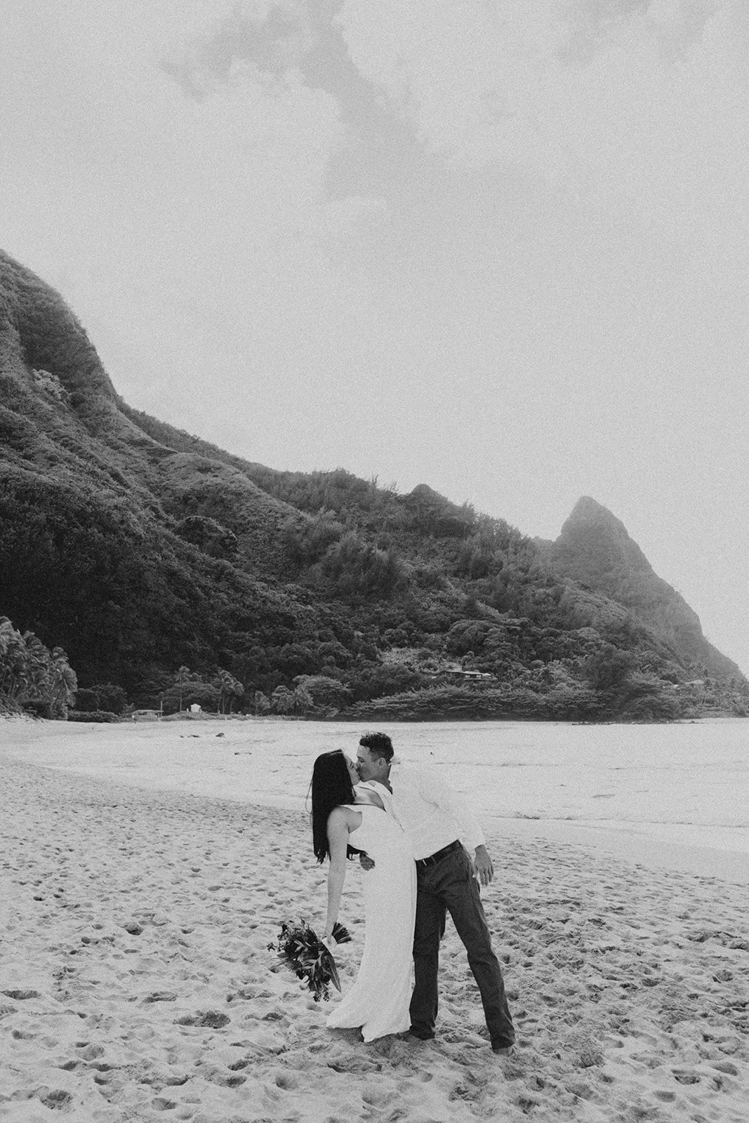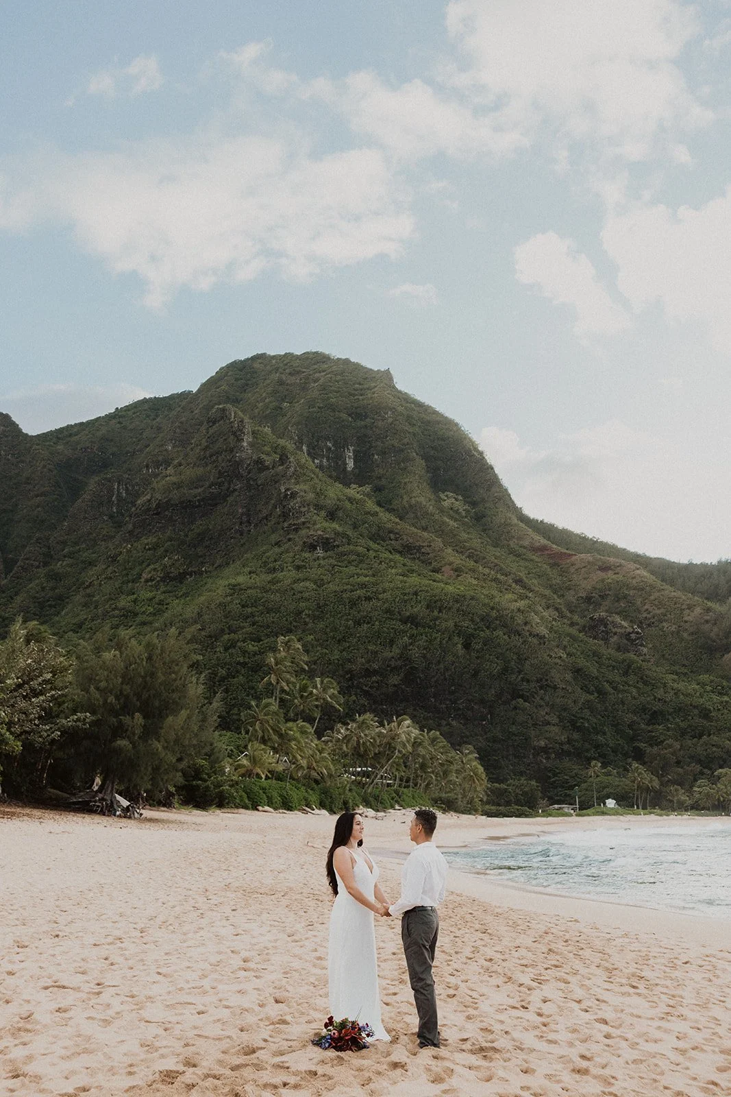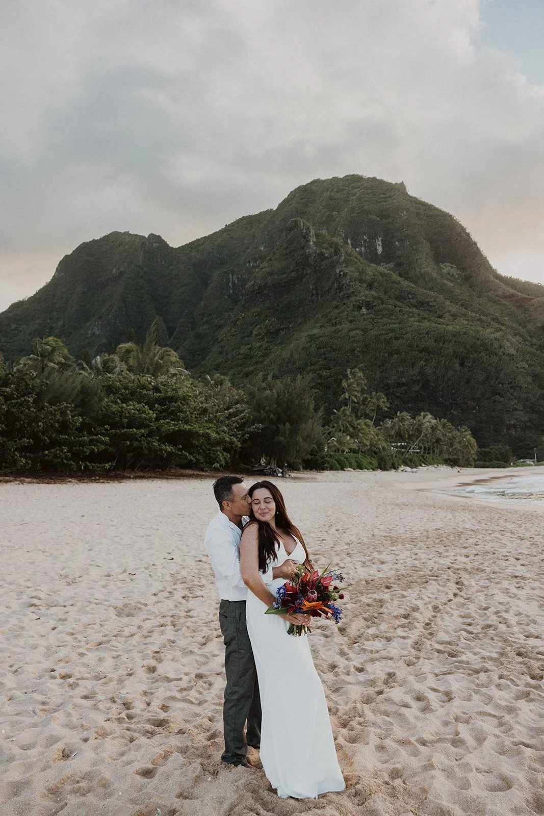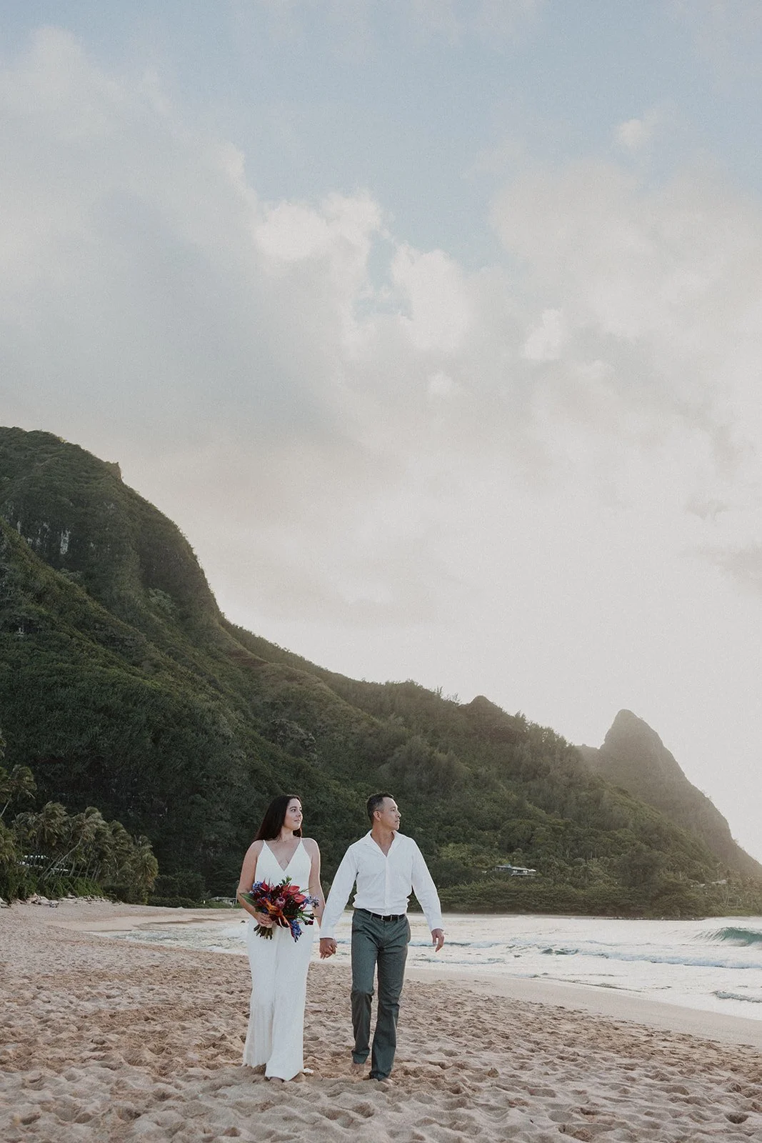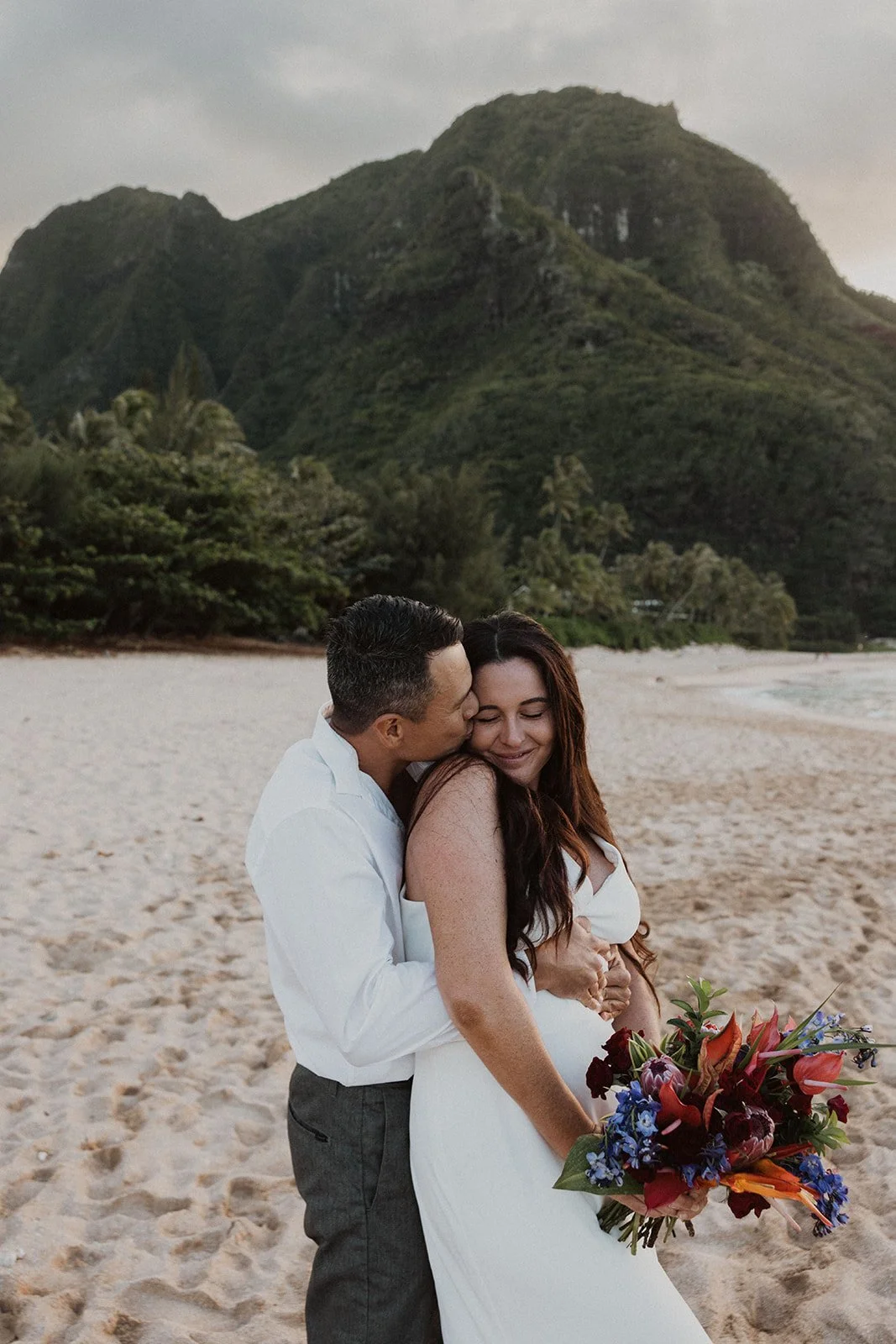 North Shore: Filled with lush greenery and sweeping mountain views with gorgeous sunsets overlooking the Pacific Ocean. (Where this elopement was captured!)