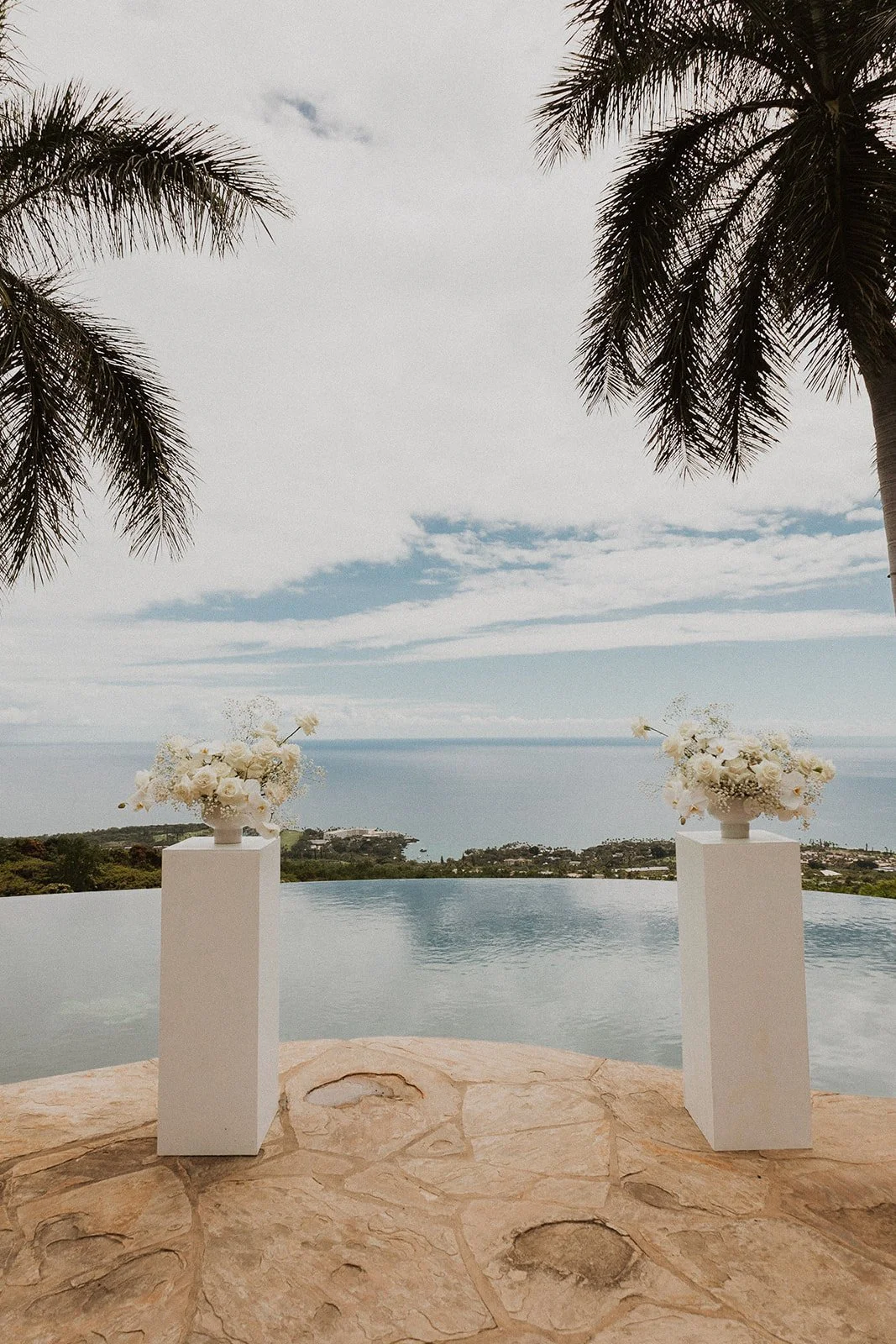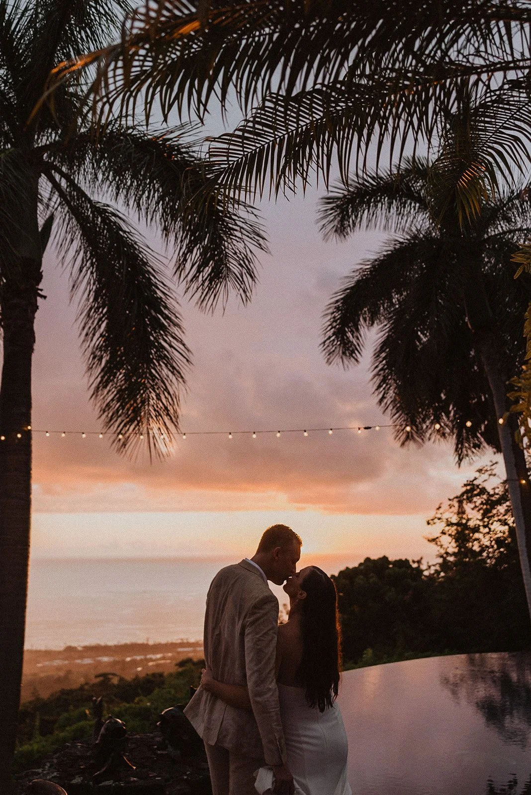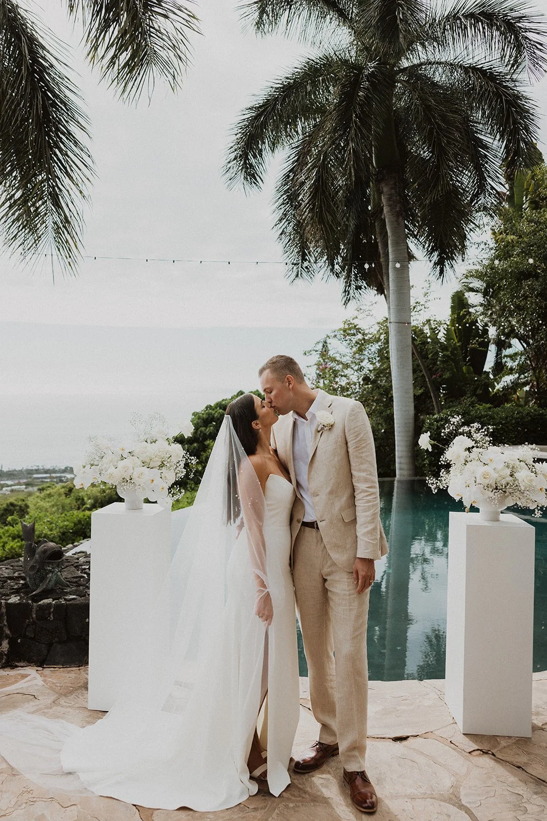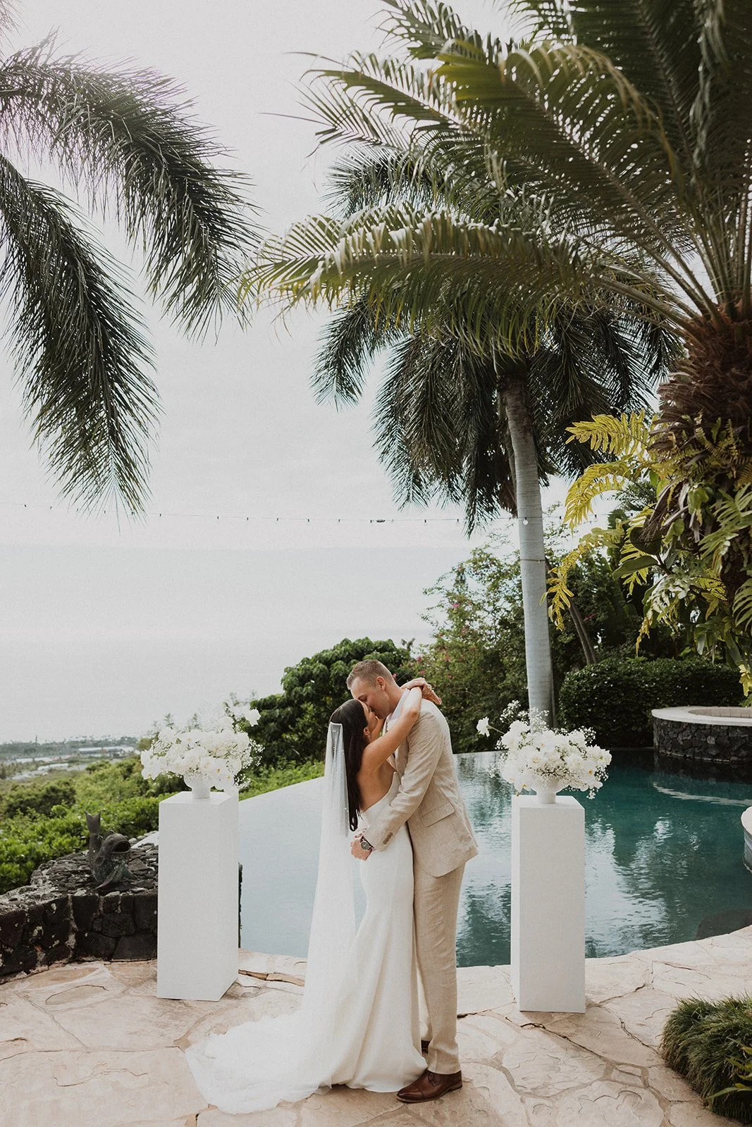 Hale Wailele is in Kailua Kona, Hawaii. It’s considered a luxury estate and has the dreamiest ocean view, elegant palm trees, and a sweet and romantic ambiance. Every wedding I’ve photographed here has been absolutely dreamy and totally encompassed that luxury feel. Couldn’t recommend enough!!