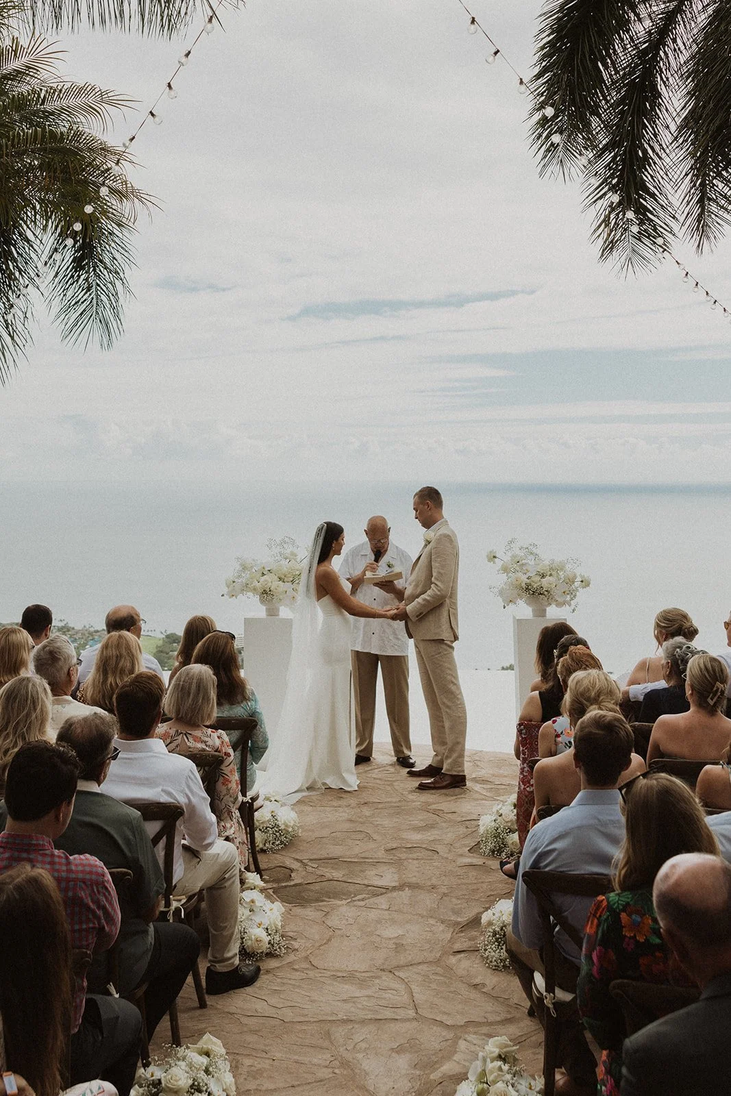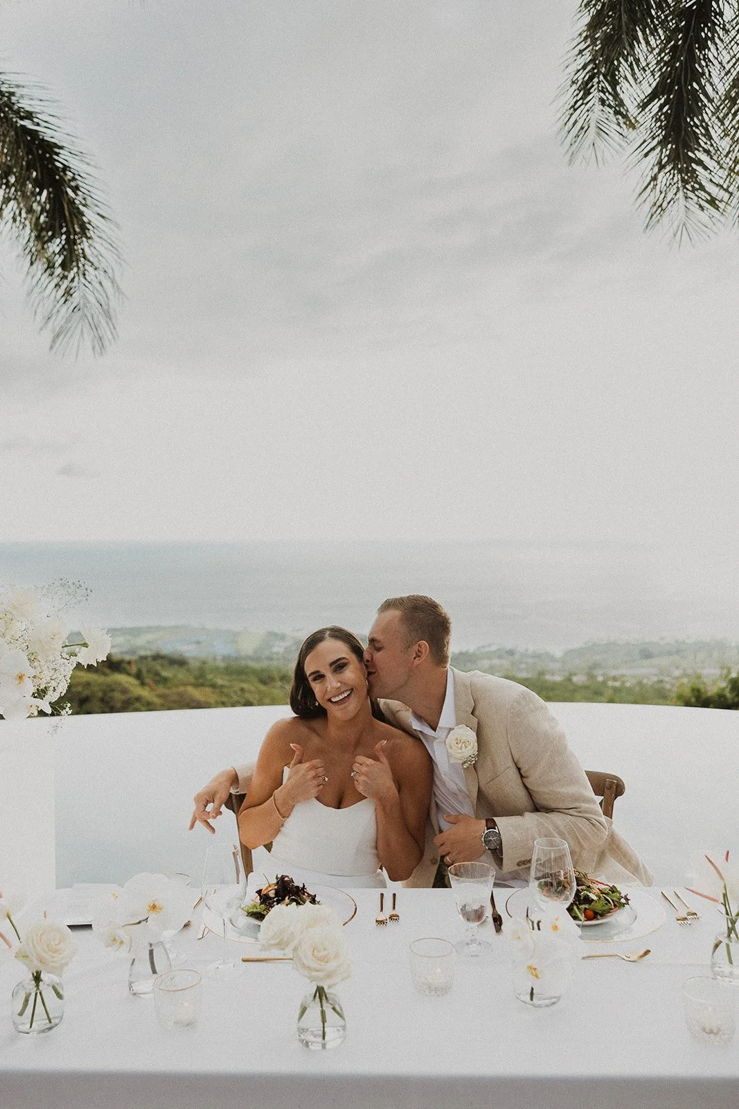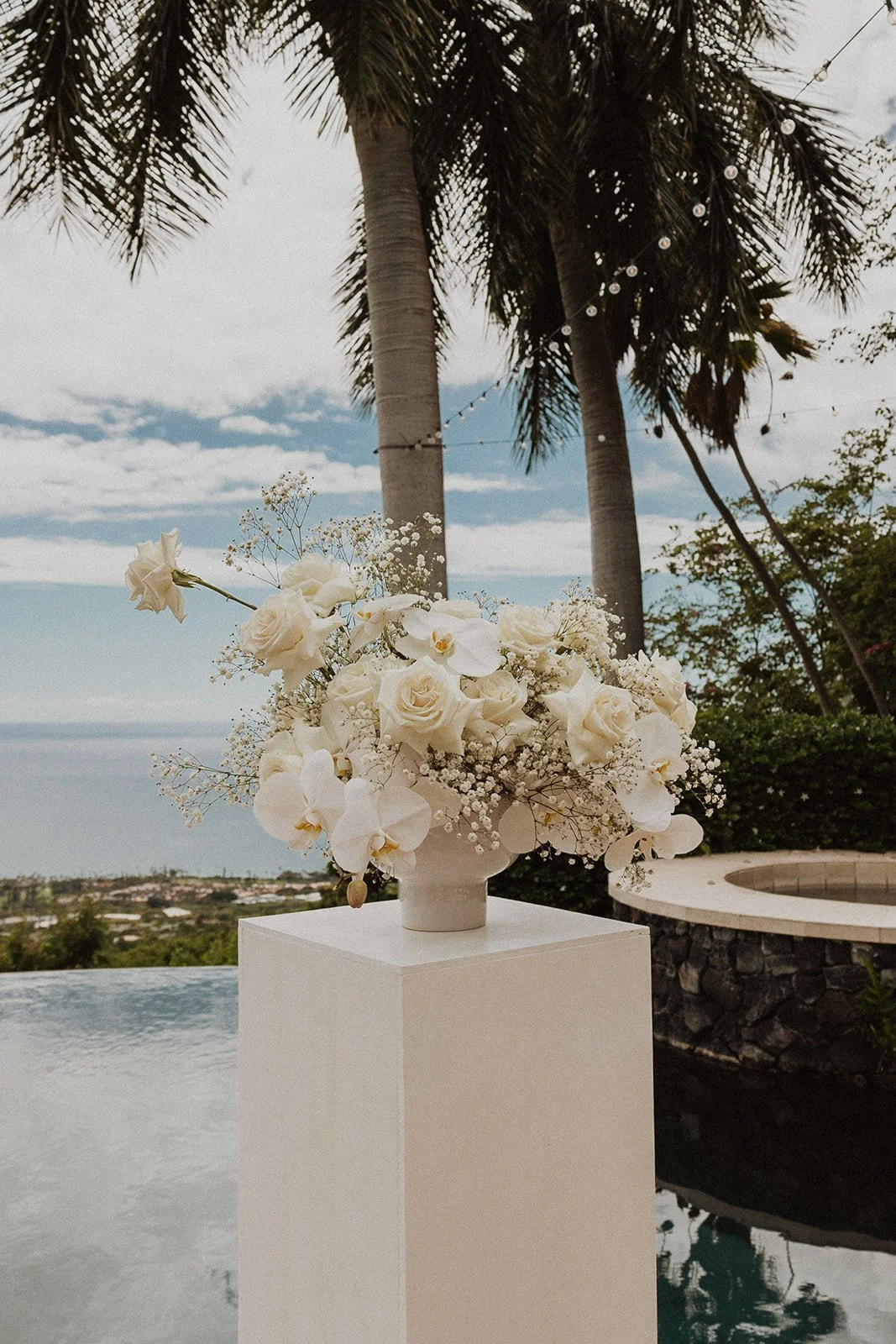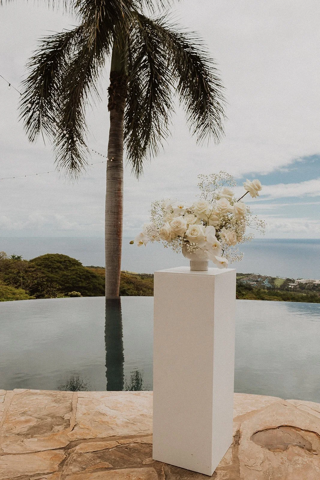 Hale Wailele is in Kailua Kona, Hawaii. It’s considered a luxury estate and has the dreamiest ocean view, elegant palm trees, and a sweet and romantic ambiance. Every wedding I’ve photographed here has been absolutely dreamy and totally encompassed that luxury feel. Couldn’t recommend enough!!