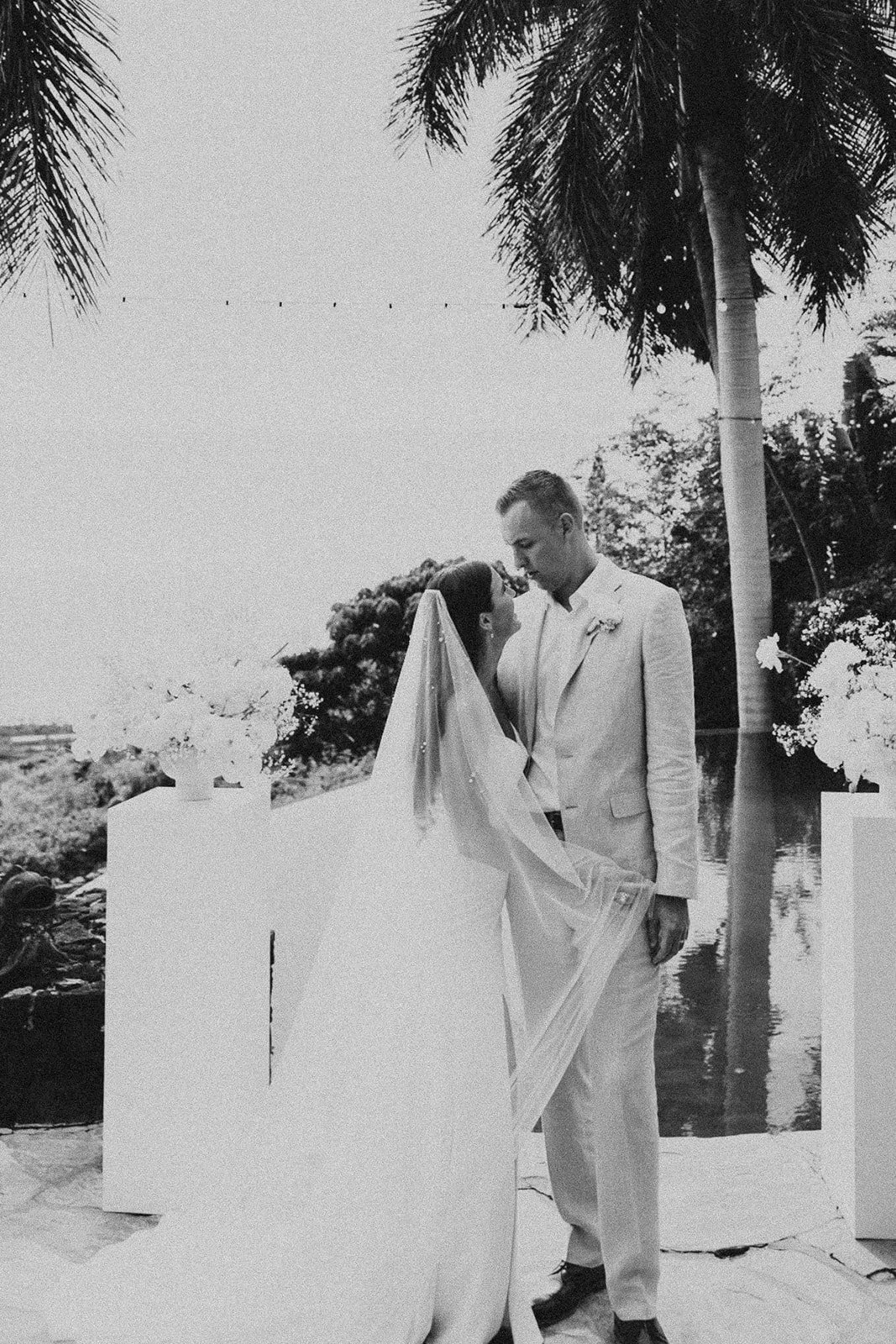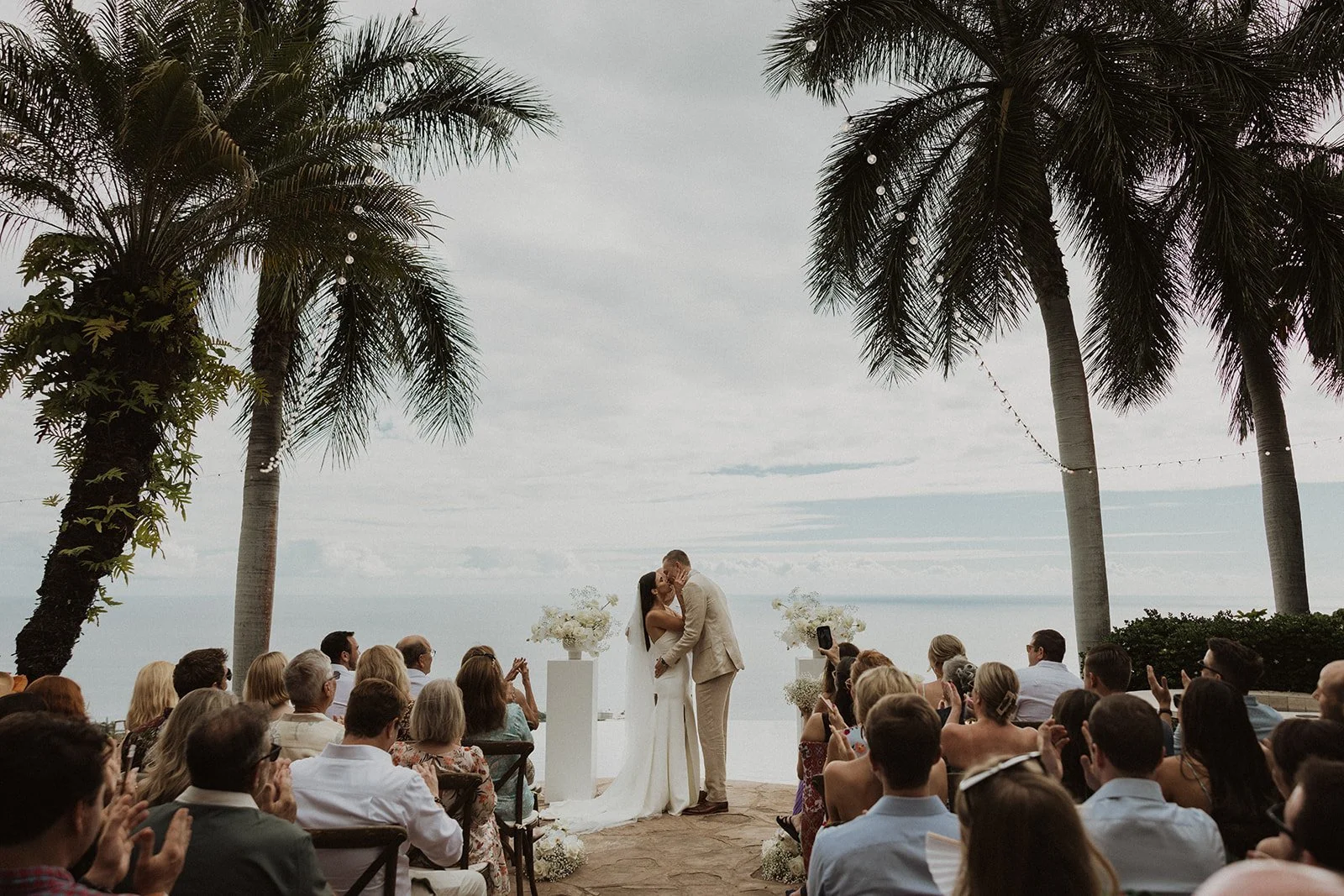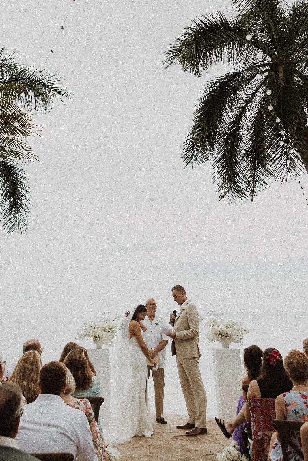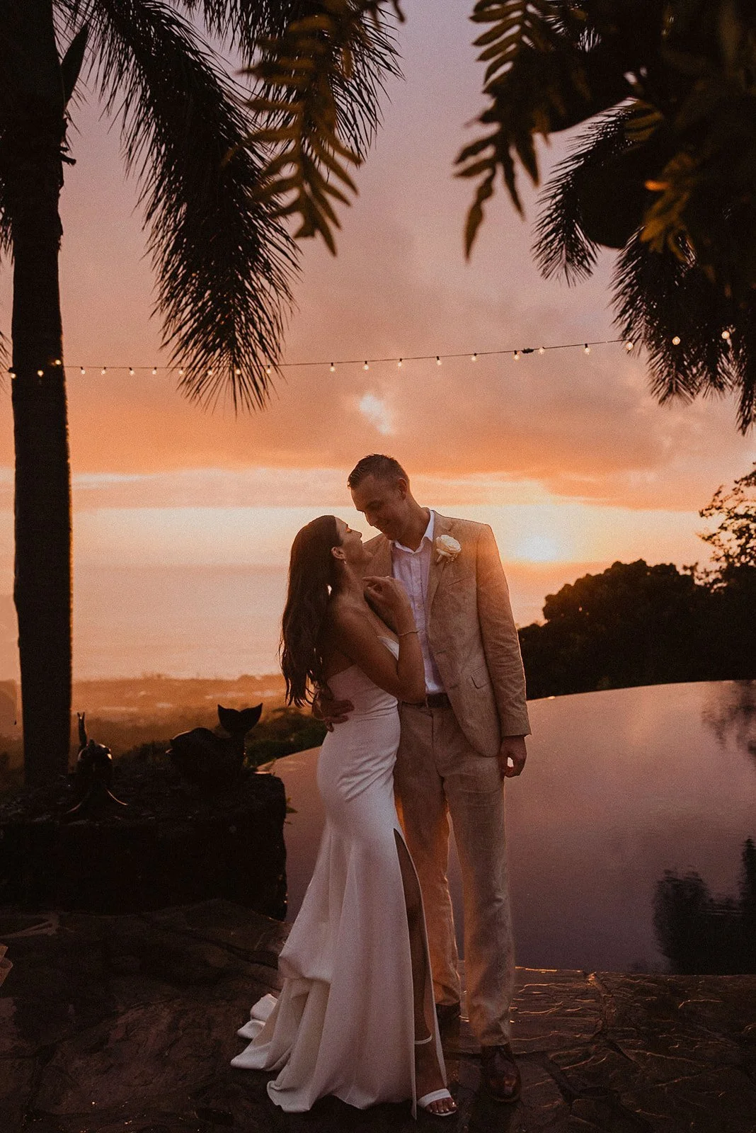 Hale Wailele is in Kailua Kona, Hawaii. It’s considered a luxury estate and has the dreamiest ocean view, elegant palm trees, and a sweet and romantic ambiance. Every wedding I’ve photographed here has been absolutely dreamy and totally encompassed that luxury feel. Couldn’t recommend enough!!