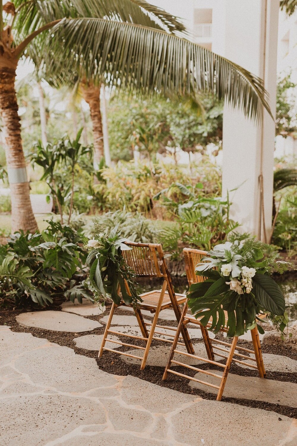 Where to begin with this beautiful Hawaii mountain elopement? These two are some of the sweetest, adventurous people I have ever met and their day was nothing short of amazing. Getting ready was done at the Four Seasons Oahu in Ko’olina Hawaii where they had time to relax and prepare for the day. Arluis weddings creating such a gorgeous tropical chair setup for them to soak in the moments before their wedding.