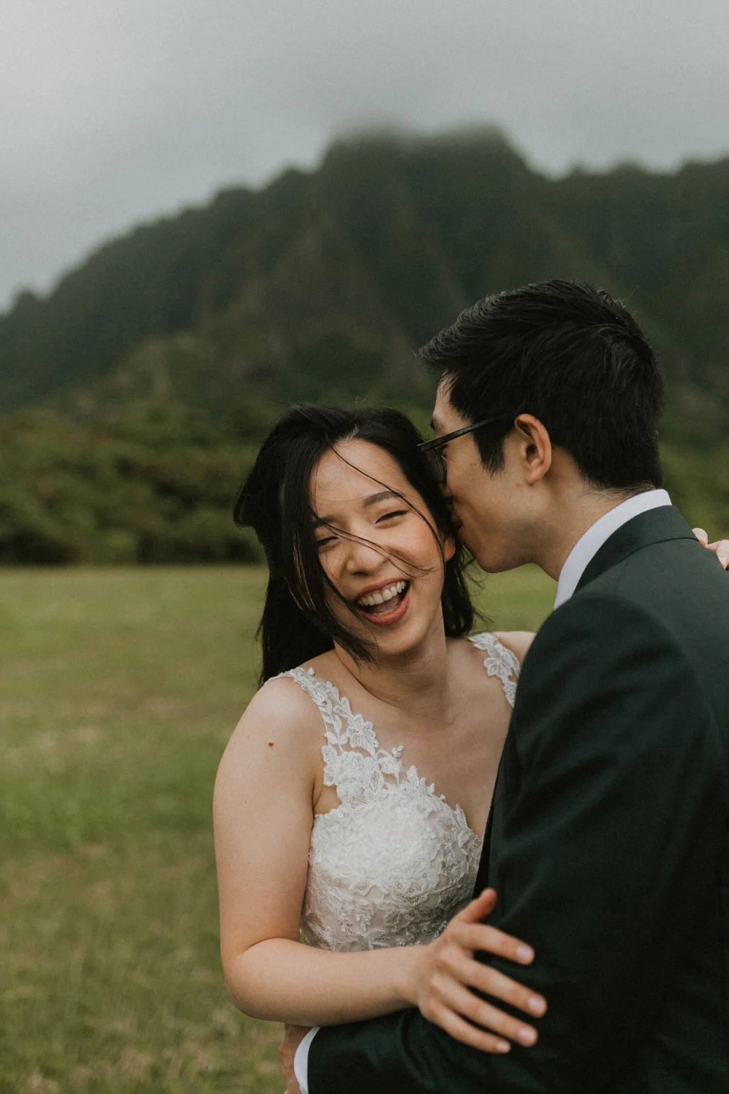 Yue and Lawrence had the perfect Kualoa Ranch Molii Wedding. Their wedding was in the early morning and when we woke up I was so nervous that it would rain, but everything ended up working out perfectly. They all got ready and Yue + Lawrence made time for a first look. We spent about an hour together before the ceremony doing the first look, taking some portraits, and just having a blast before they said I do. Their time together was so special and I feel so happy we were able to be a part of it. We then headed to the ceremony site at Kualoa Ranch Moli’i Gardens for the perfect Kualoa Ranch Molii wedding. Their day was fun, intimate, and perfect. I feel so happy to have been a part of it. Scroll to the bottom of the post for Petrofilms video of the day.