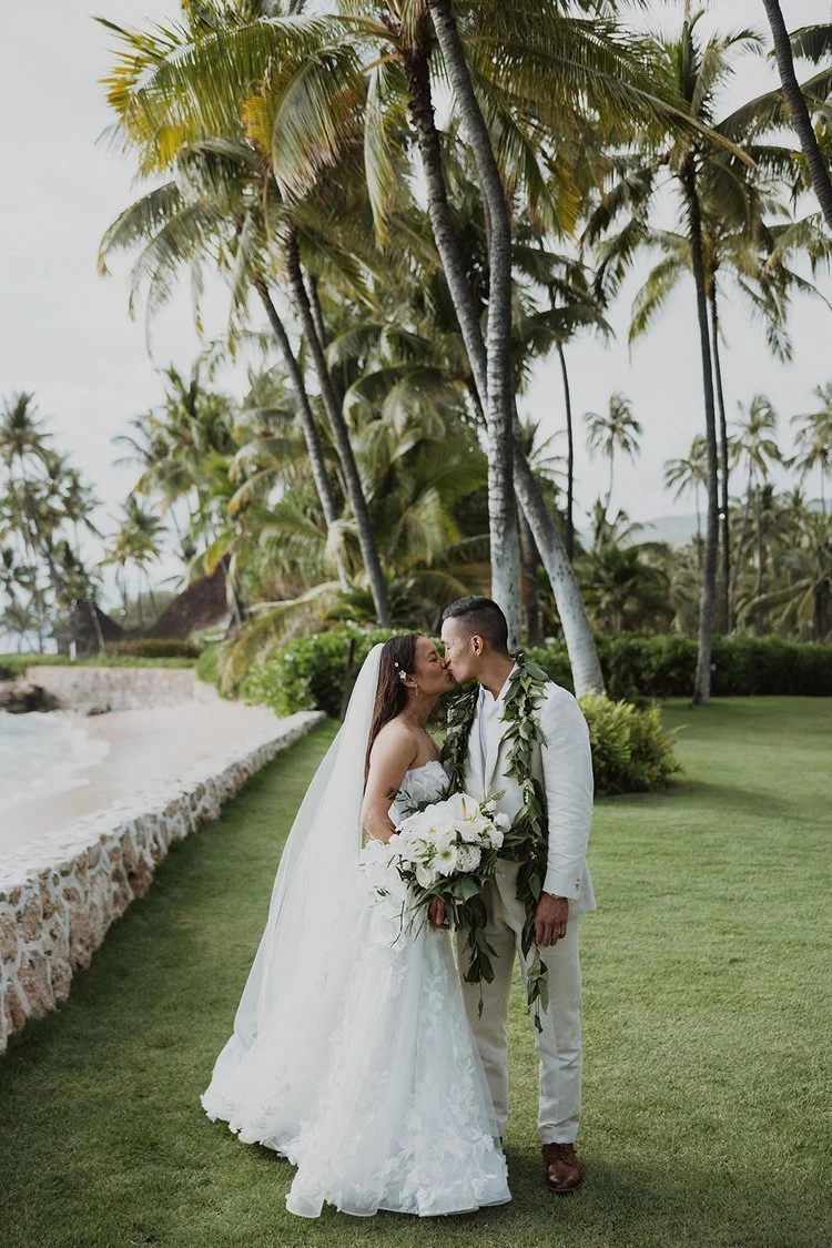 This Lanikuhonua wedding day in Oahu Hawaii was such a dream! It was the perfect combination of effortless style, elevated experience, and timeless luxury that made it the perfect destination summer wedding for the heartfelt lovers.