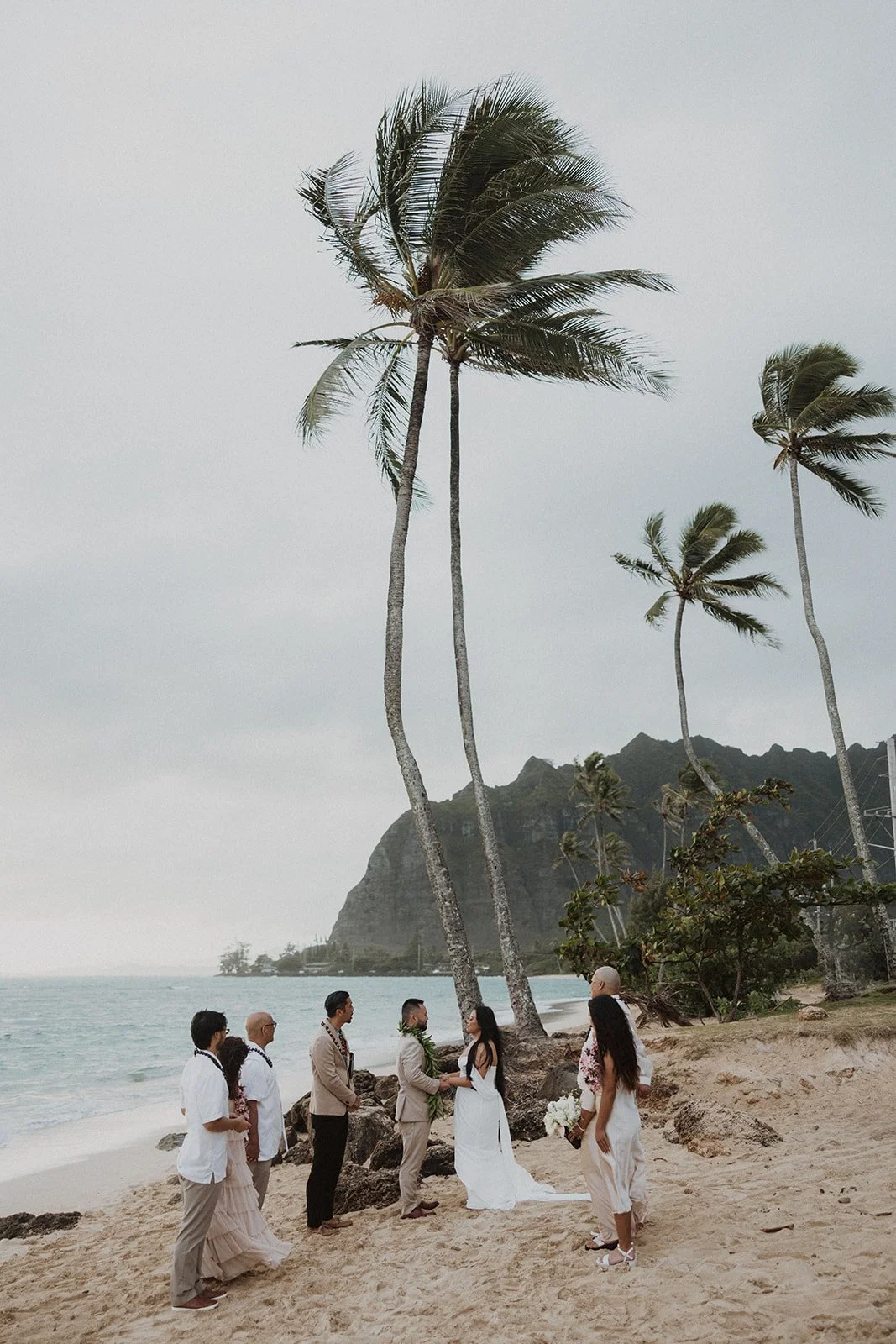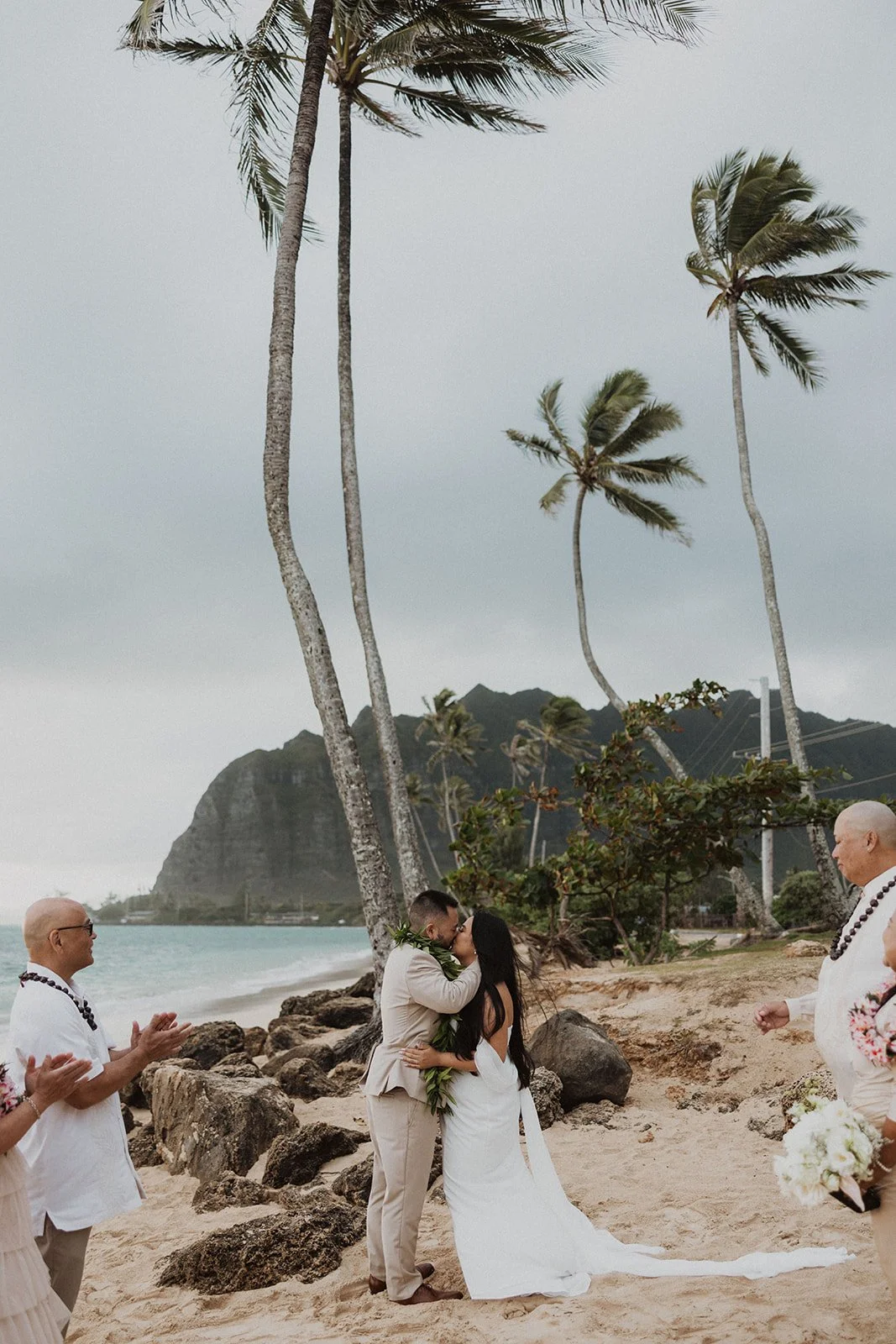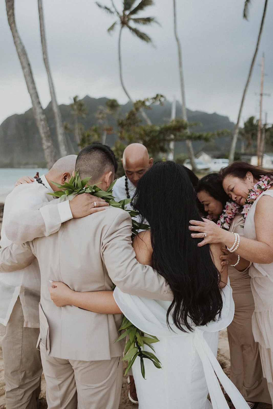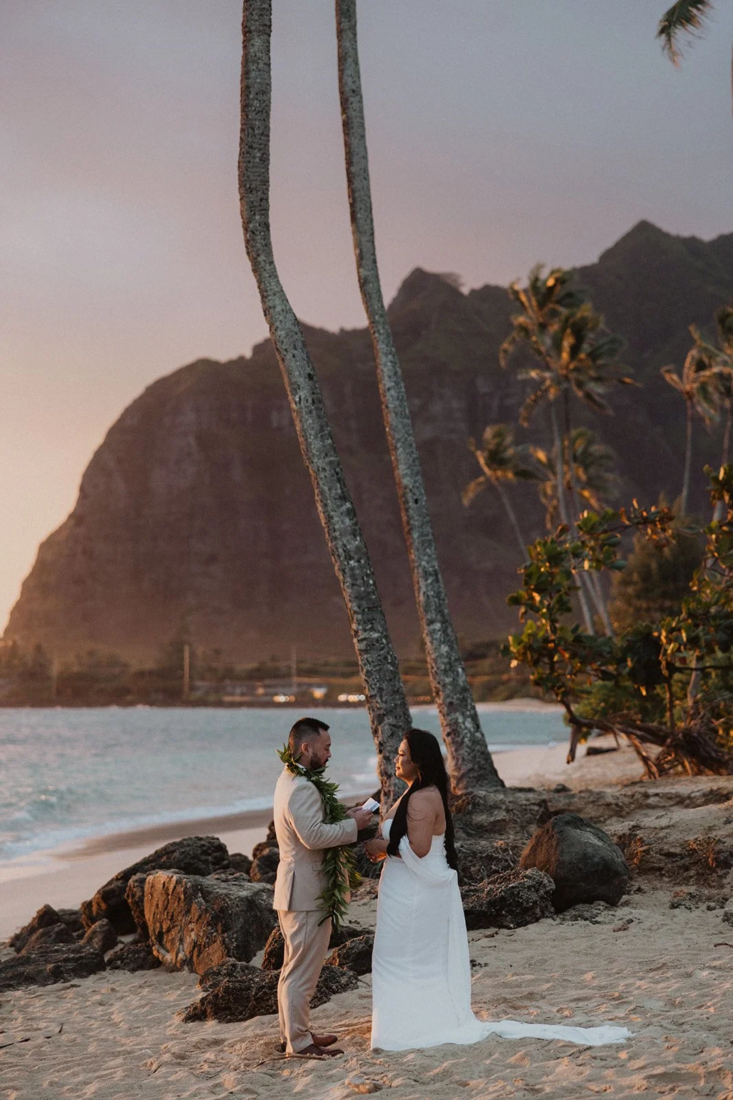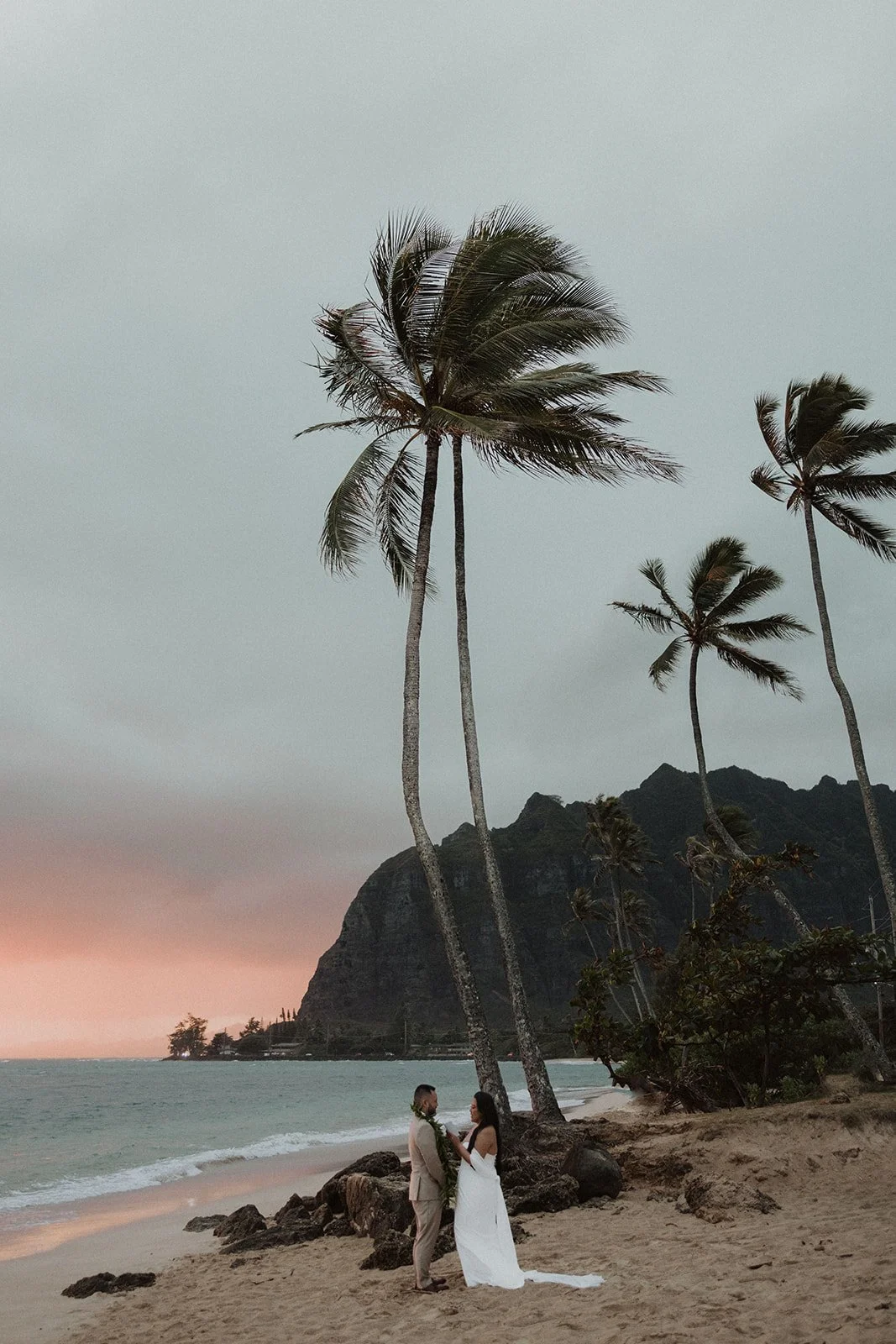 As the first light of dawn broke over the serene shores of Oahu, a couple stood hand in hand, surrounded by their closest family members, ready to elope in an intimate and meaningful ceremony. The soft hues of the sunrise painted the sky in warm shades of pink and gold, creating a breathtaking backdrop for their vows. With the gentle sound of waves crashing nearby, they exchanged promises of love and commitment, embracing the beauty of the moment. The simplicity of the celebration allowed for genuine connections, as laughter and heartfelt words filled the air, creating lasting memories against the spectacular island scenery. This intentional gathering honored not only their love but the support and presence of their immediate family, elevating the day to one filled with joy and togetherness.