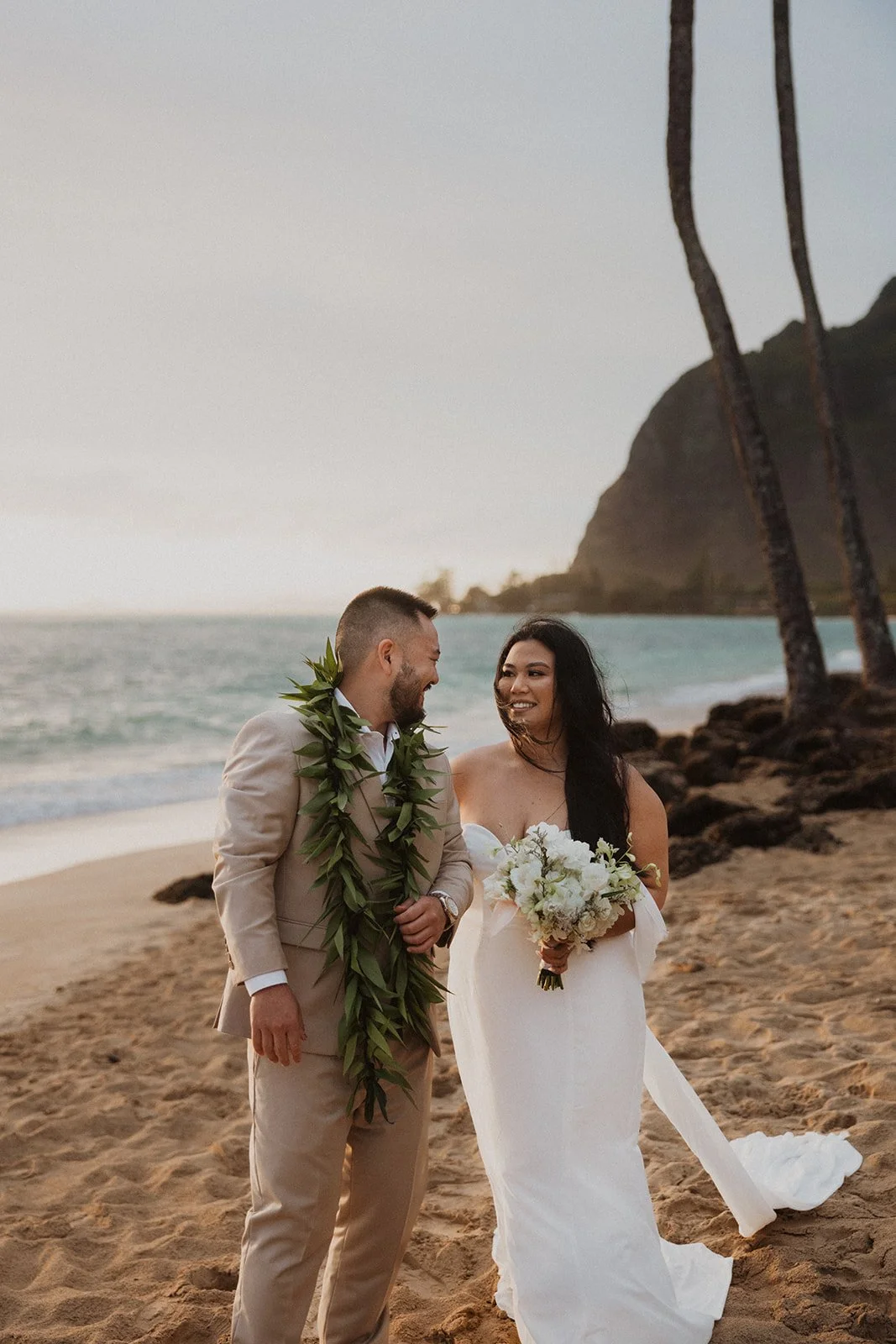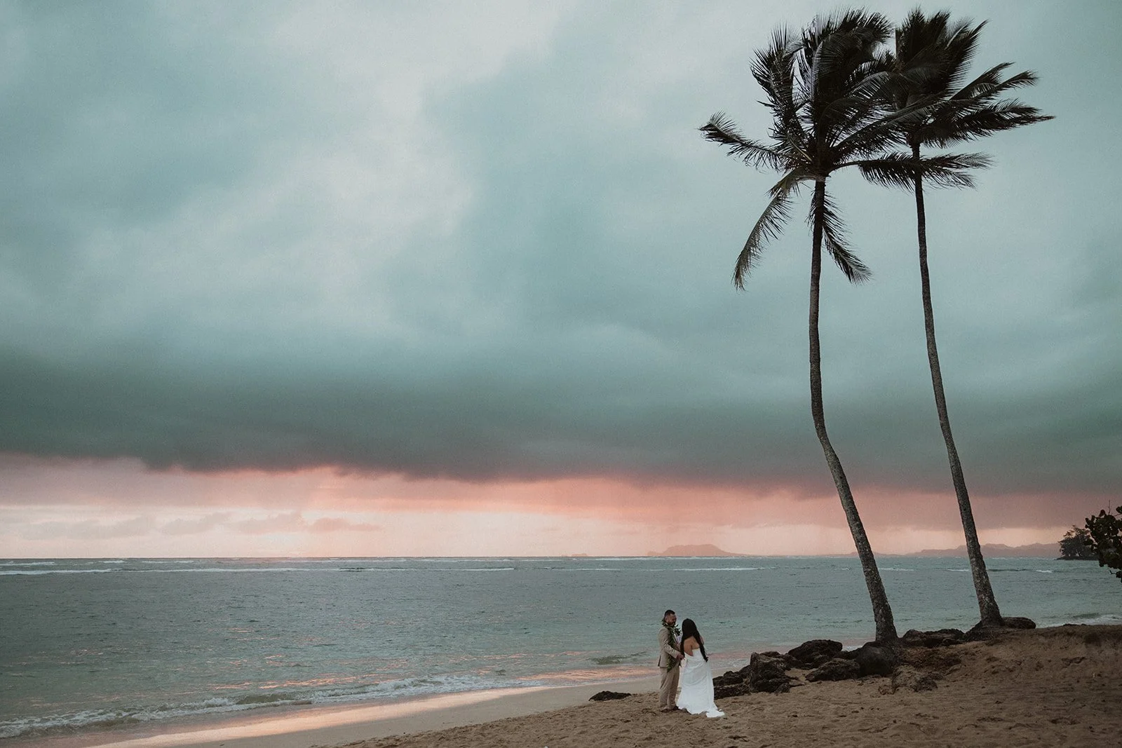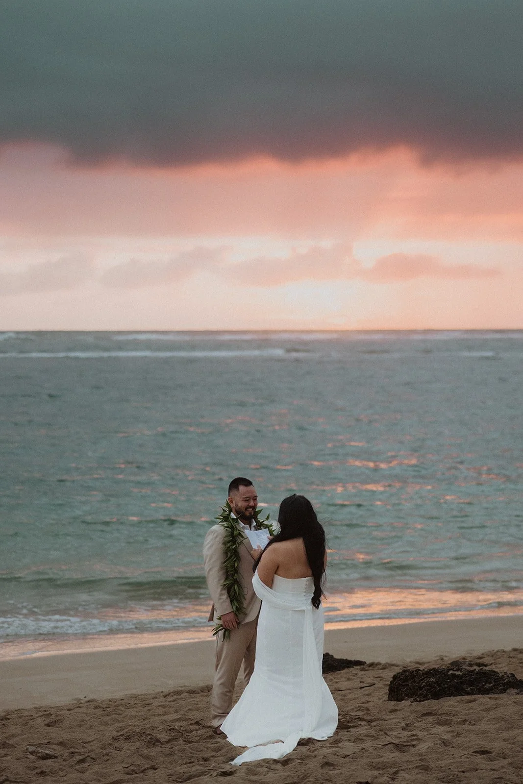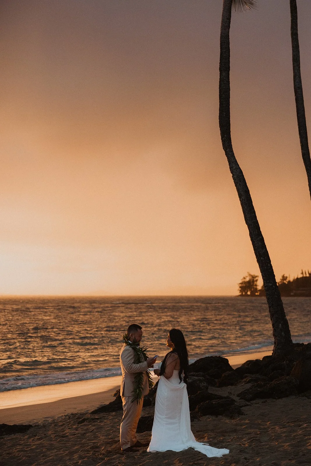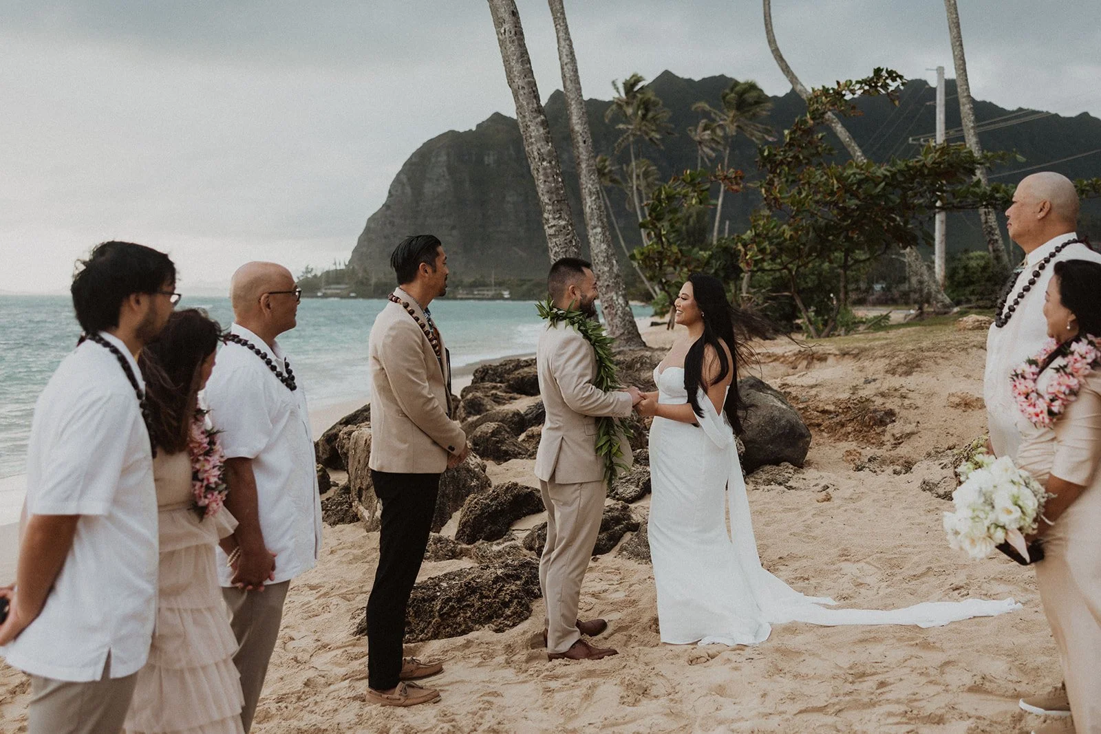 As the first light of dawn broke over the serene shores of Oahu, a couple stood hand in hand, surrounded by their closest family members, ready to elope in an intimate and meaningful ceremony. The soft hues of the sunrise painted the sky in warm shades of pink and gold, creating a breathtaking backdrop for their vows. With the gentle sound of waves crashing nearby, they exchanged promises of love and commitment, embracing the beauty of the moment. The simplicity of the celebration allowed for genuine connections, as laughter and heartfelt words filled the air, creating lasting memories against the spectacular island scenery. This intentional gathering honored not only their love but the support and presence of their immediate family, elevating the day to one filled with joy and togetherness.