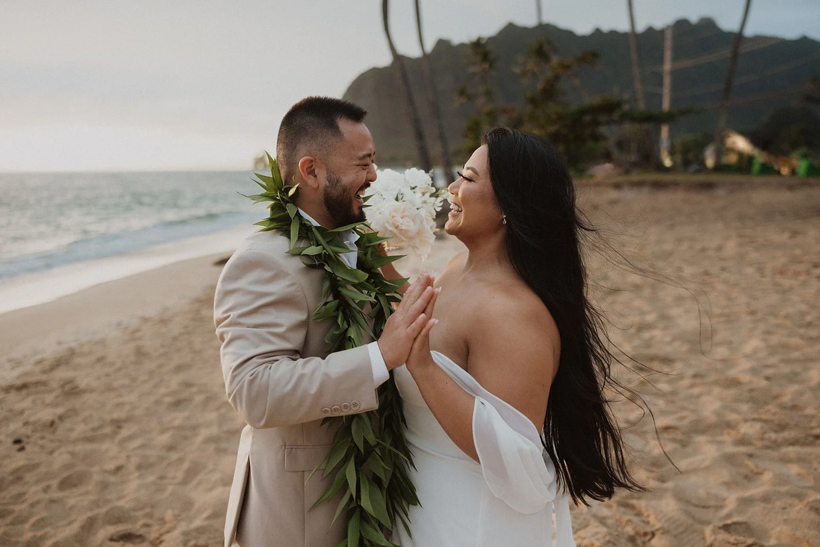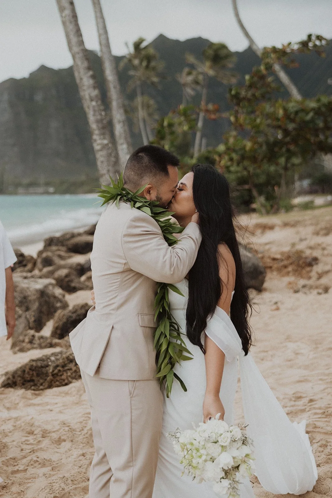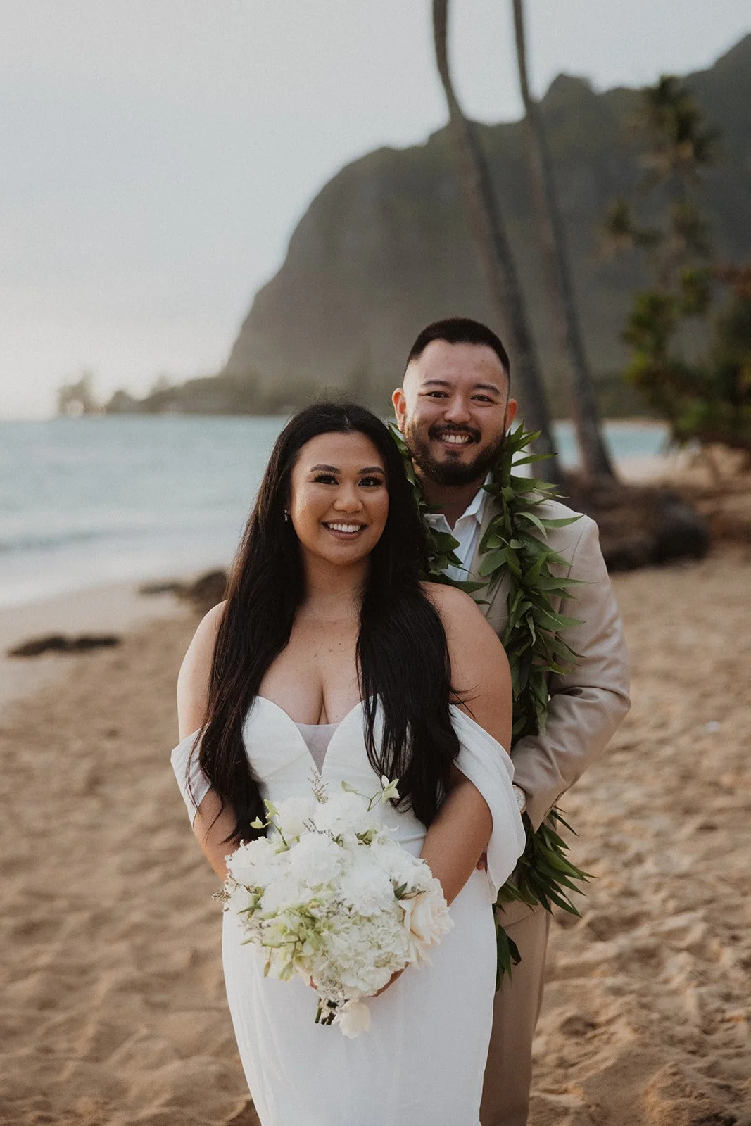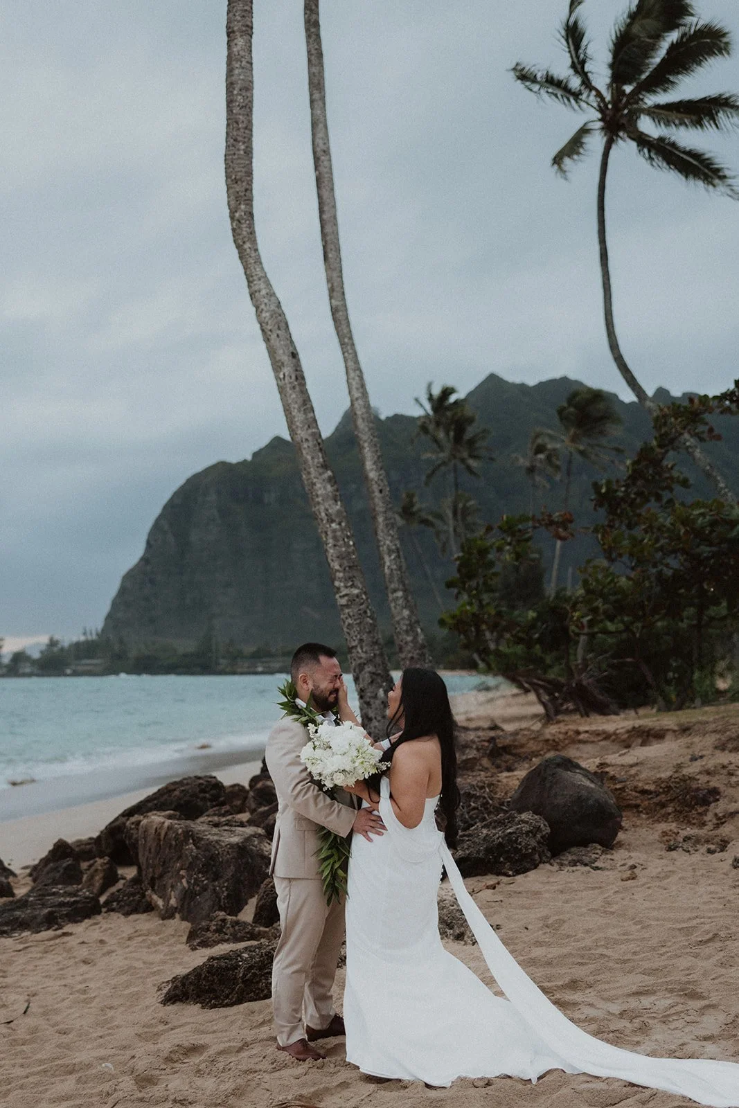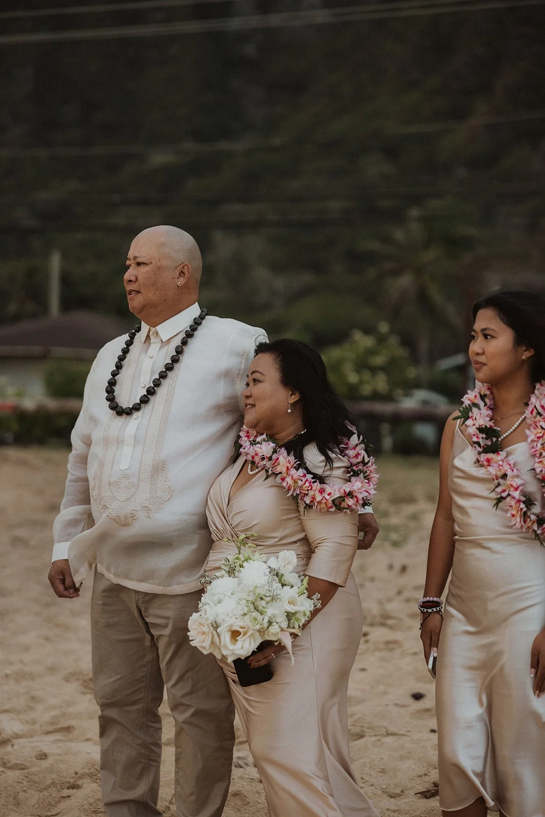 As the first light of dawn broke over the serene shores of Oahu, a couple stood hand in hand, surrounded by their closest family members, ready to elope in an intimate and meaningful ceremony. The soft hues of the sunrise painted the sky in warm shades of pink and gold, creating a breathtaking backdrop for their vows. With the gentle sound of waves crashing nearby, they exchanged promises of love and commitment, embracing the beauty of the moment. The simplicity of the celebration allowed for genuine connections, as laughter and heartfelt words filled the air, creating lasting memories against the spectacular island scenery. This intentional gathering honored not only their love but the support and presence of their immediate family, elevating the day to one filled with joy and togetherness.