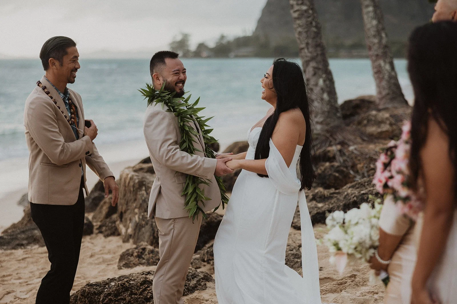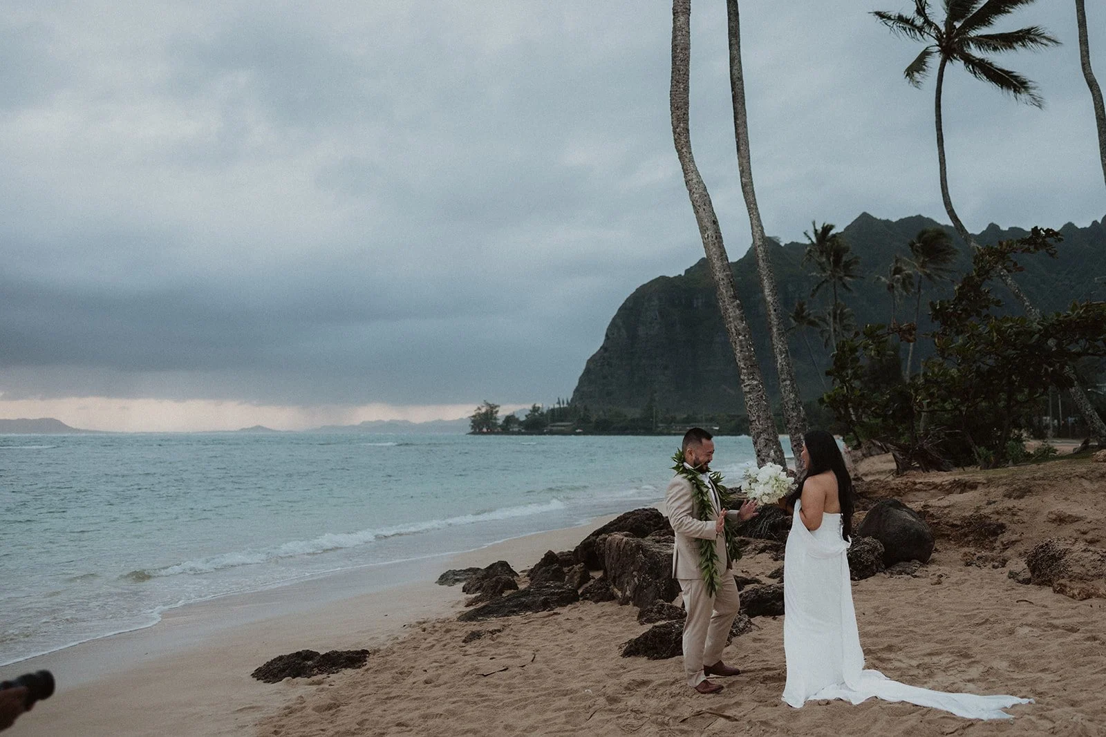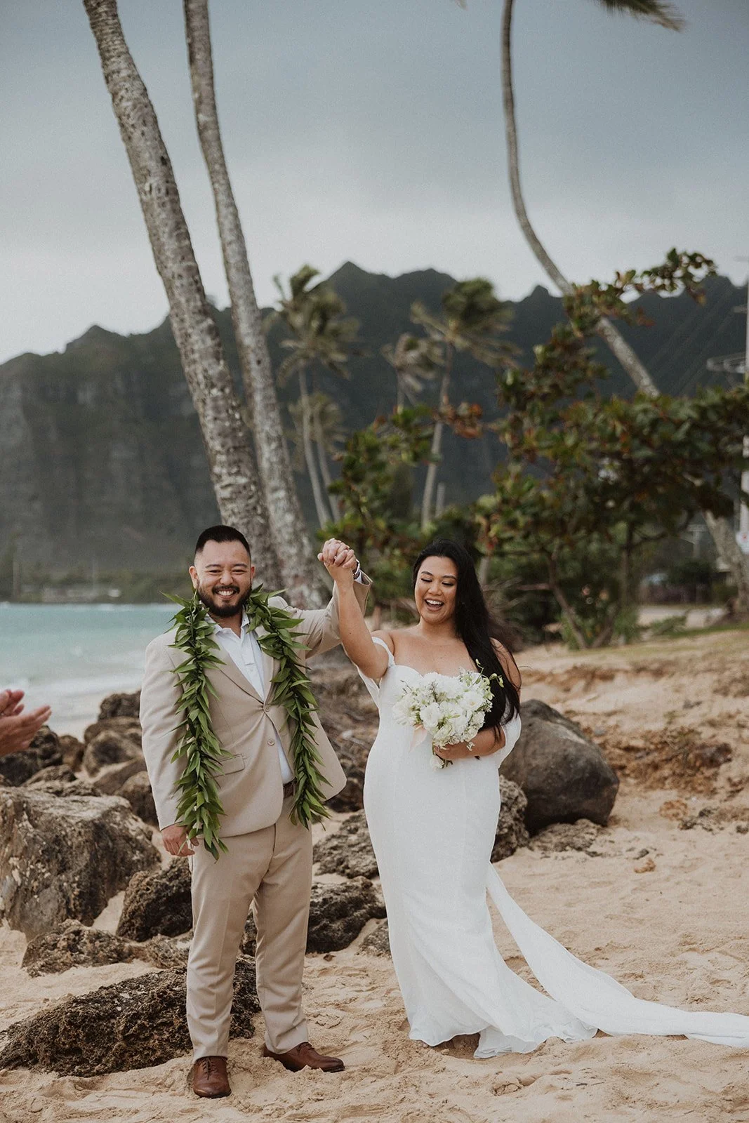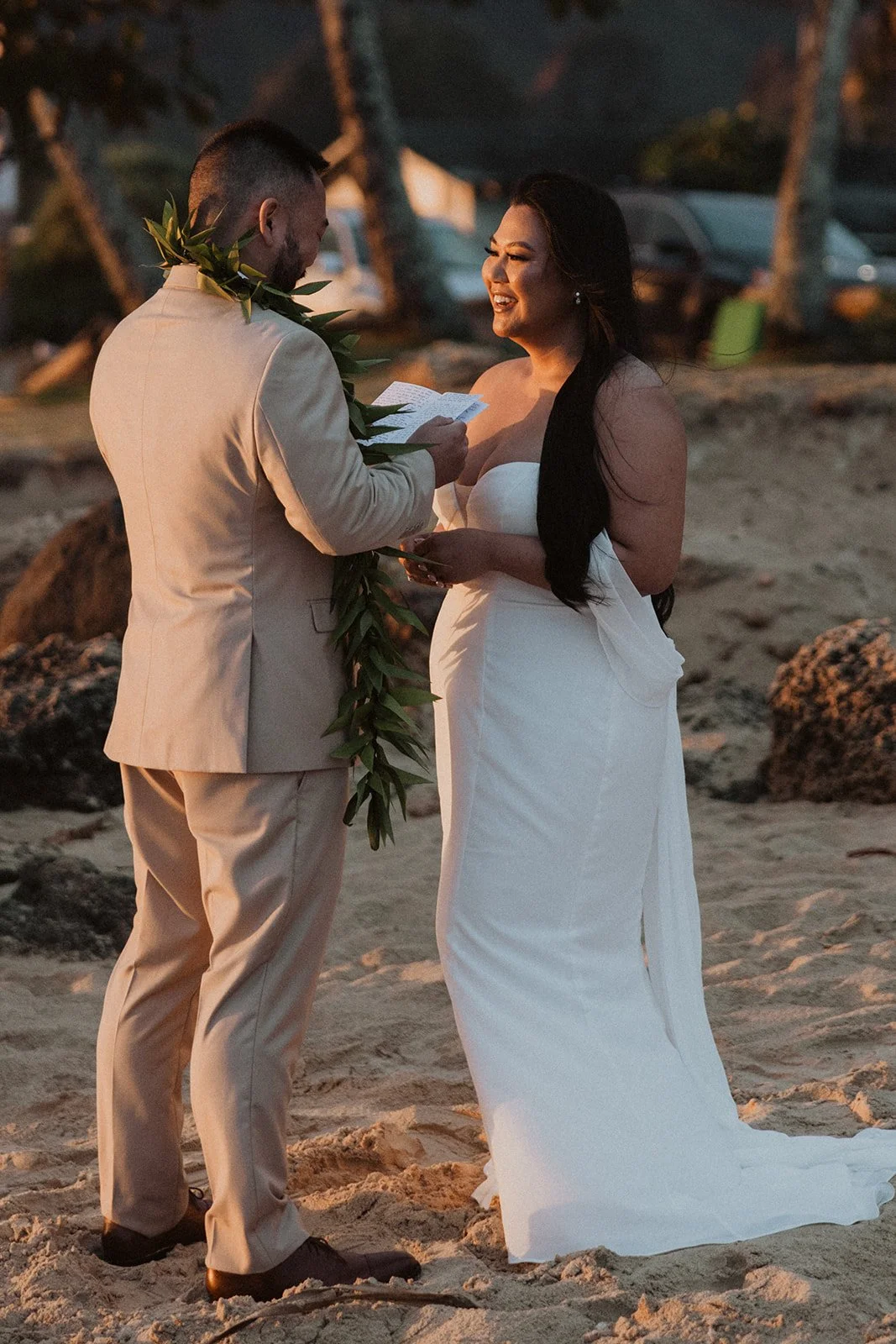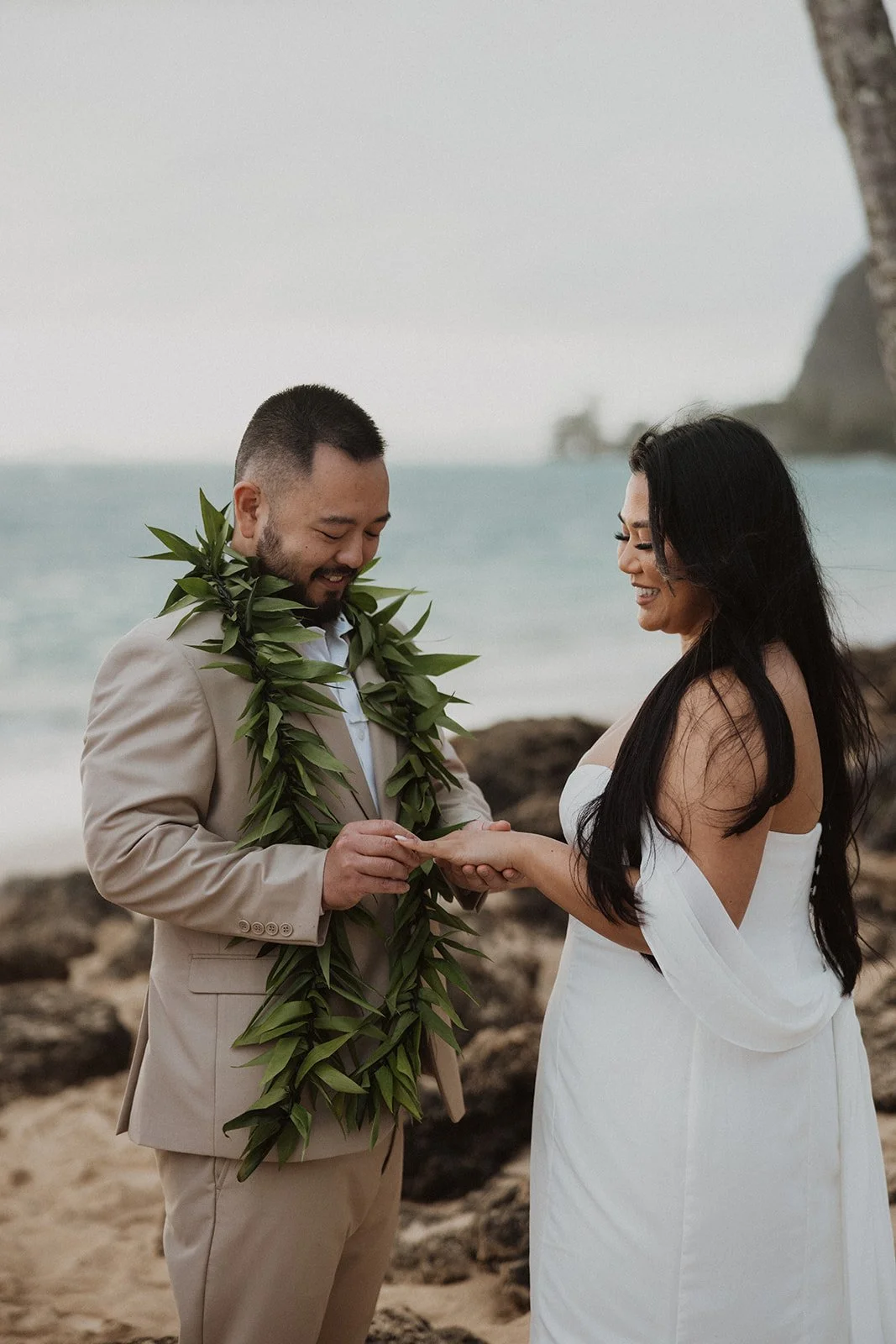 As the first light of dawn broke over the serene shores of Oahu, a couple stood hand in hand, surrounded by their closest family members, ready to elope in an intimate and meaningful ceremony. The soft hues of the sunrise painted the sky in warm shades of pink and gold, creating a breathtaking backdrop for their vows. With the gentle sound of waves crashing nearby, they exchanged promises of love and commitment, embracing the beauty of the moment. The simplicity of the celebration allowed for genuine connections, as laughter and heartfelt words filled the air, creating lasting memories against the spectacular island scenery. This intentional gathering honored not only their love but the support and presence of their immediate family, elevating the day to one filled with joy and togetherness.