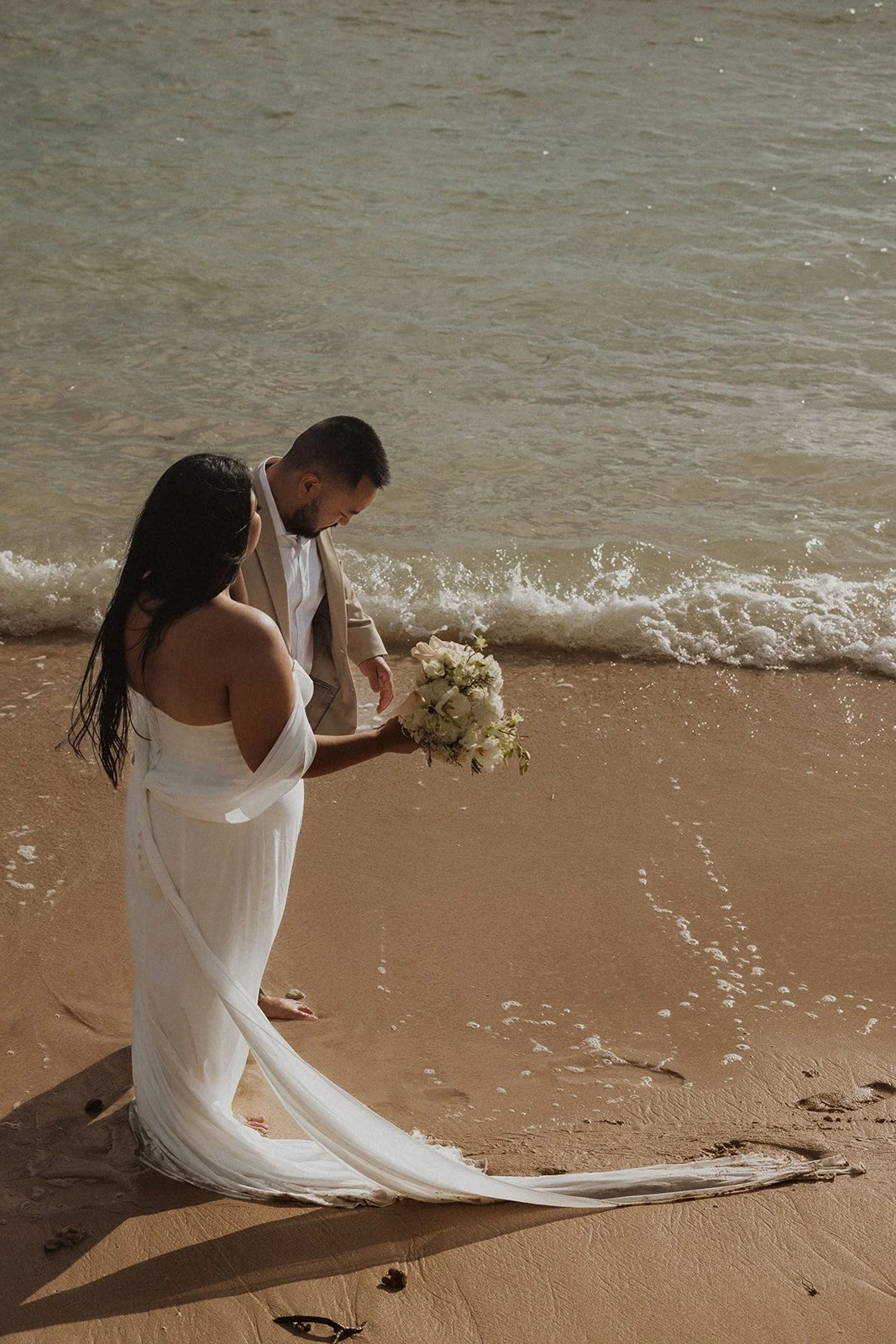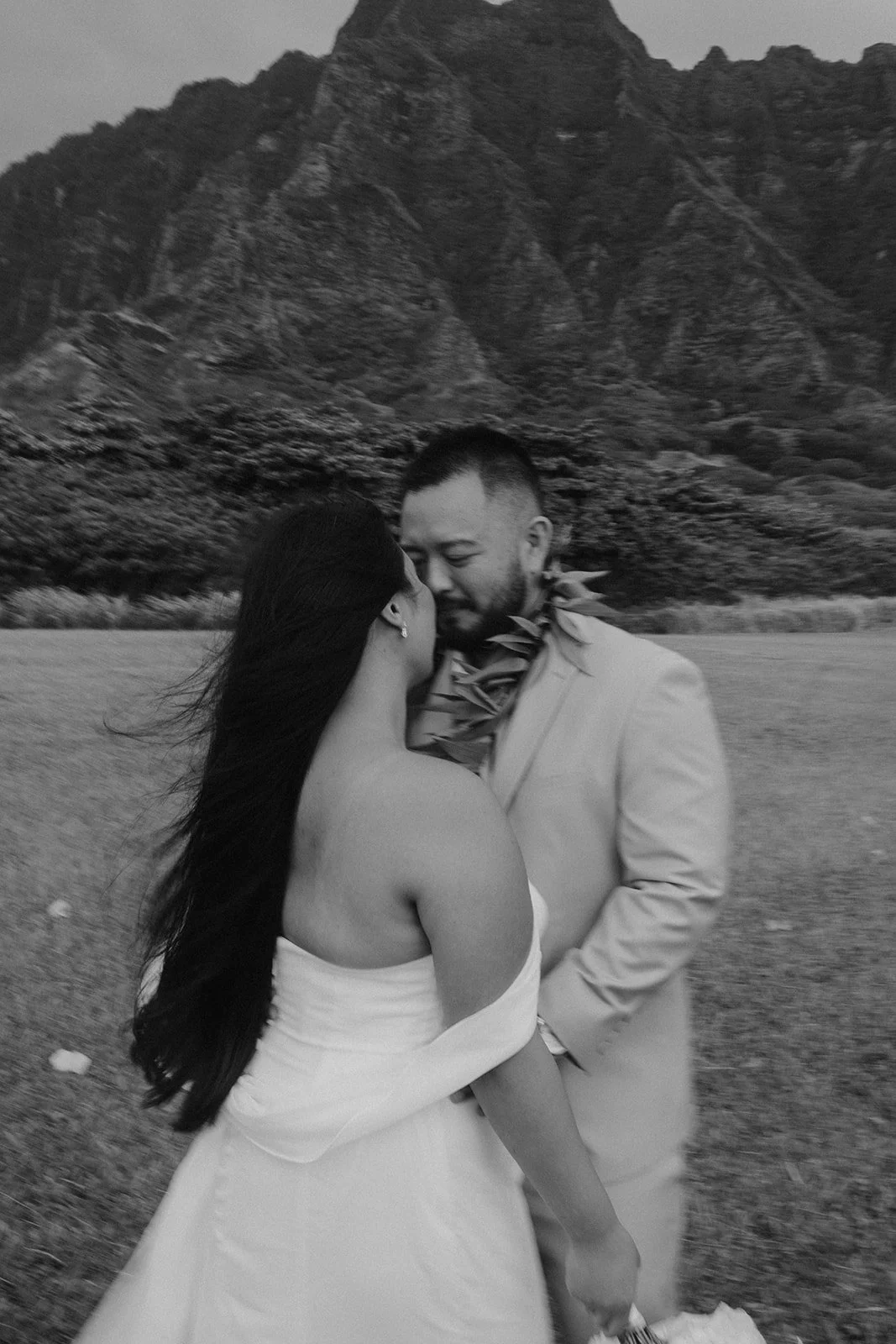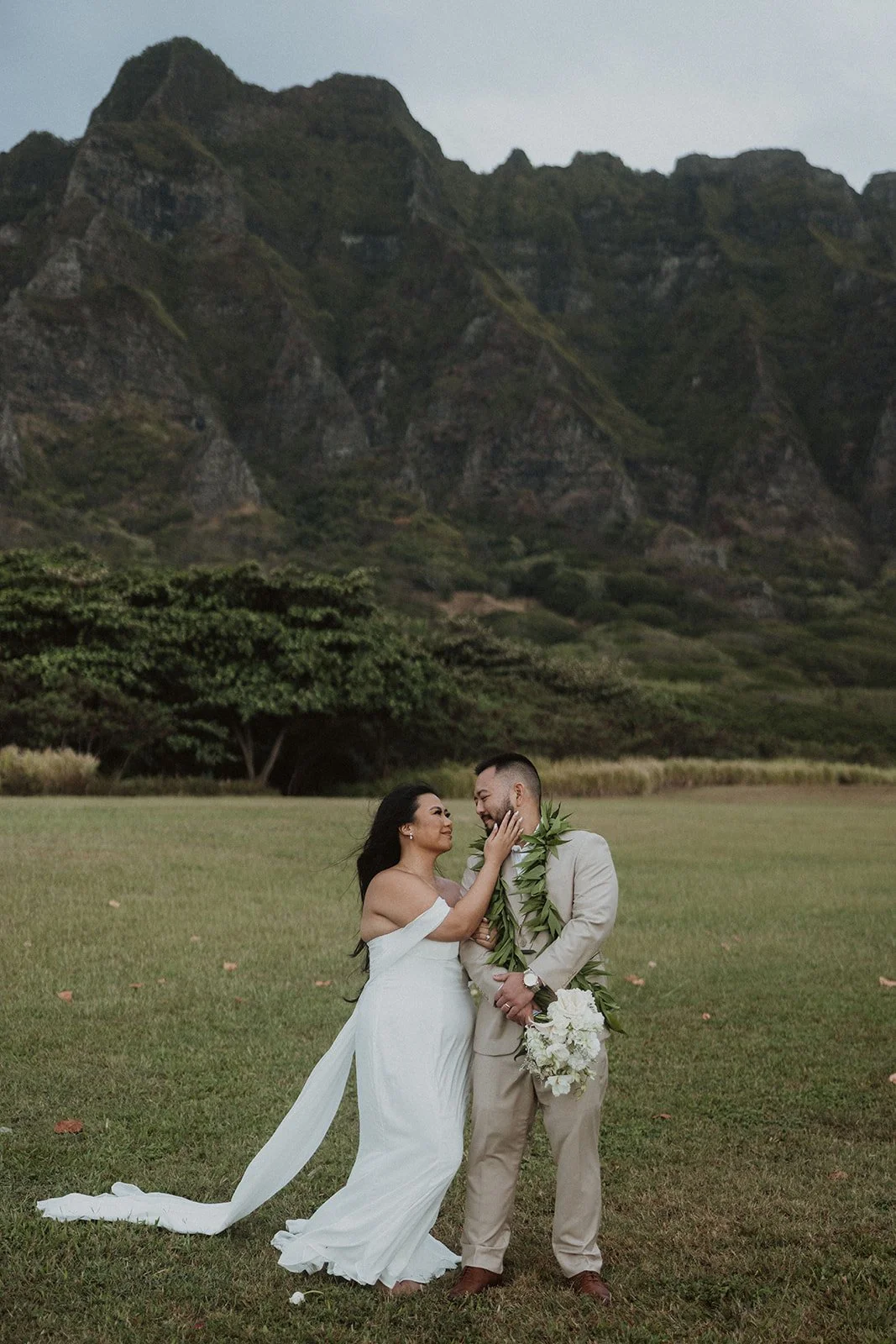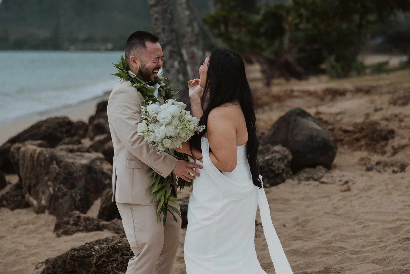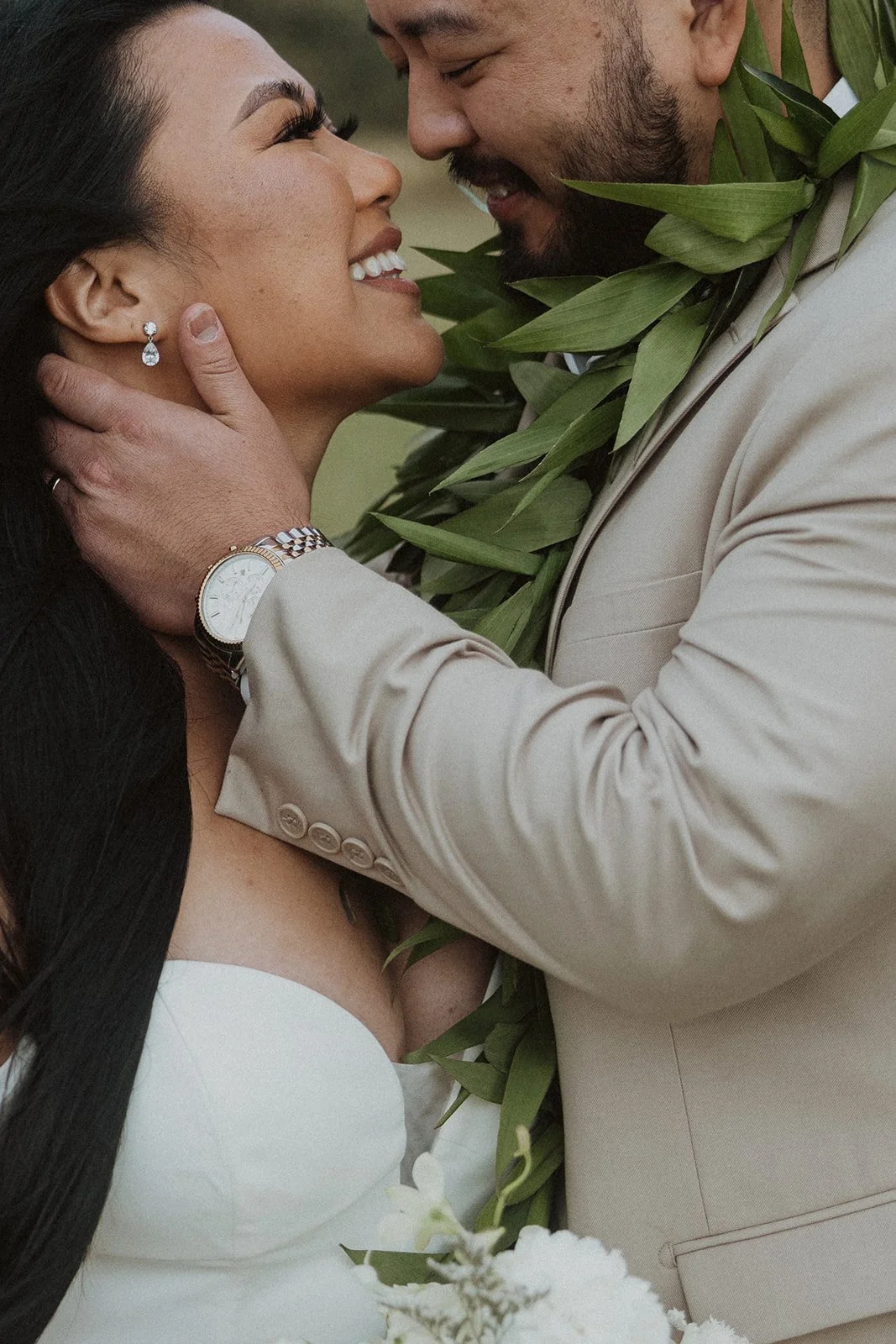 As the first light of dawn broke over the serene shores of Oahu, a couple stood hand in hand, surrounded by their closest family members, ready to elope in an intimate and meaningful ceremony. The soft hues of the sunrise painted the sky in warm shades of pink and gold, creating a breathtaking backdrop for their vows. With the gentle sound of waves crashing nearby, they exchanged promises of love and commitment, embracing the beauty of the moment. The simplicity of the celebration allowed for genuine connections, as laughter and heartfelt words filled the air, creating lasting memories against the spectacular island scenery. This intentional gathering honored not only their love but the support and presence of their immediate family, elevating the day to one filled with joy and togetherness.