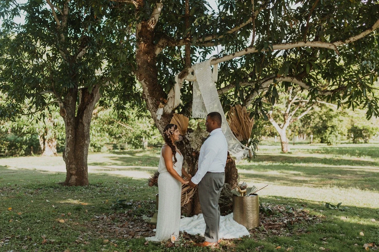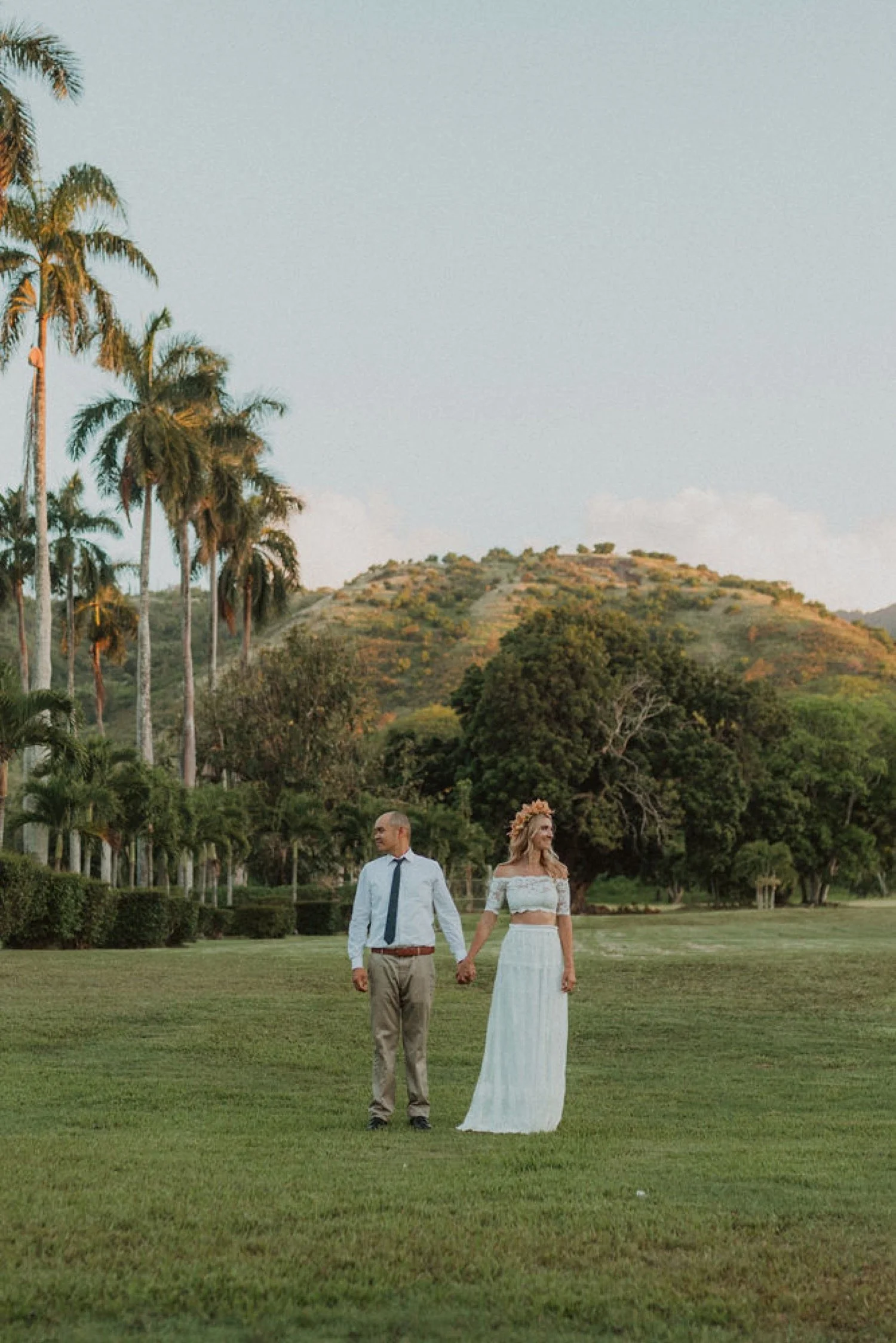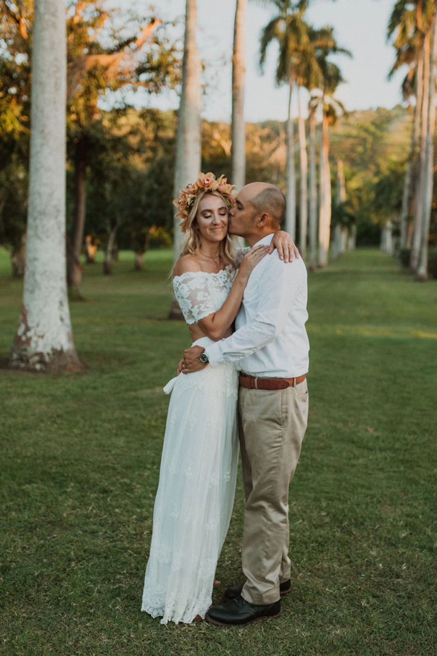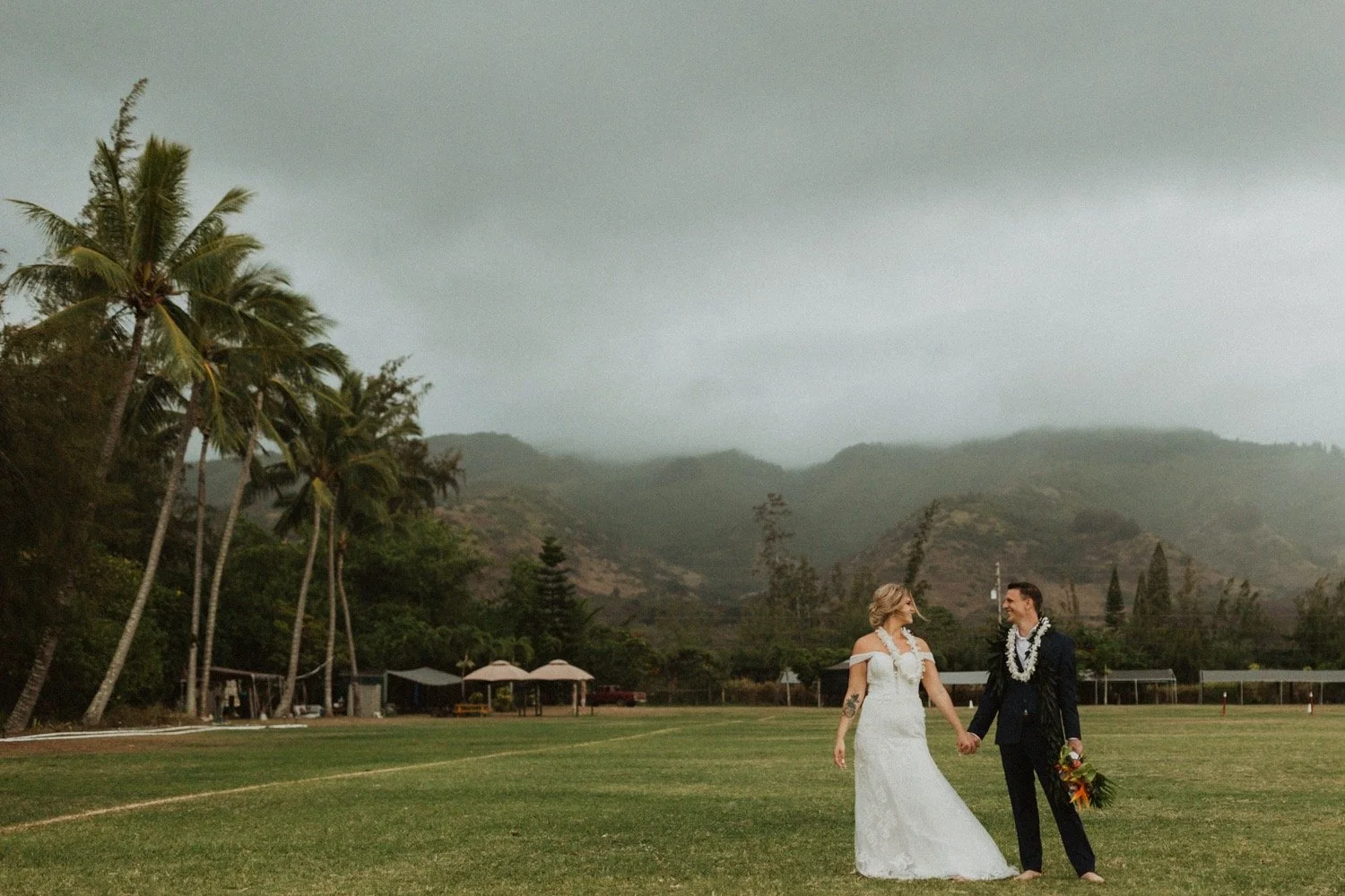 Dillingham Ranch is located on the North Shore of Oahu, Hawaii. It is surrounded by palm trees, so much open space and the coolest old school vintage Hawaii style plantation home. It is one of the oldest wedding venues in Oahu, Hawaii and filled with so much beautiful history. This wedding venue is so private and big, which makes it a perfect place to get married in Hawaii if you are wanting a large event! My favorite thing about Dillingham Ranch is that it’s a big canvas where you can create whatever vision you are wanting and have it come to life on your wedding at this Hawaii Wedding venue.