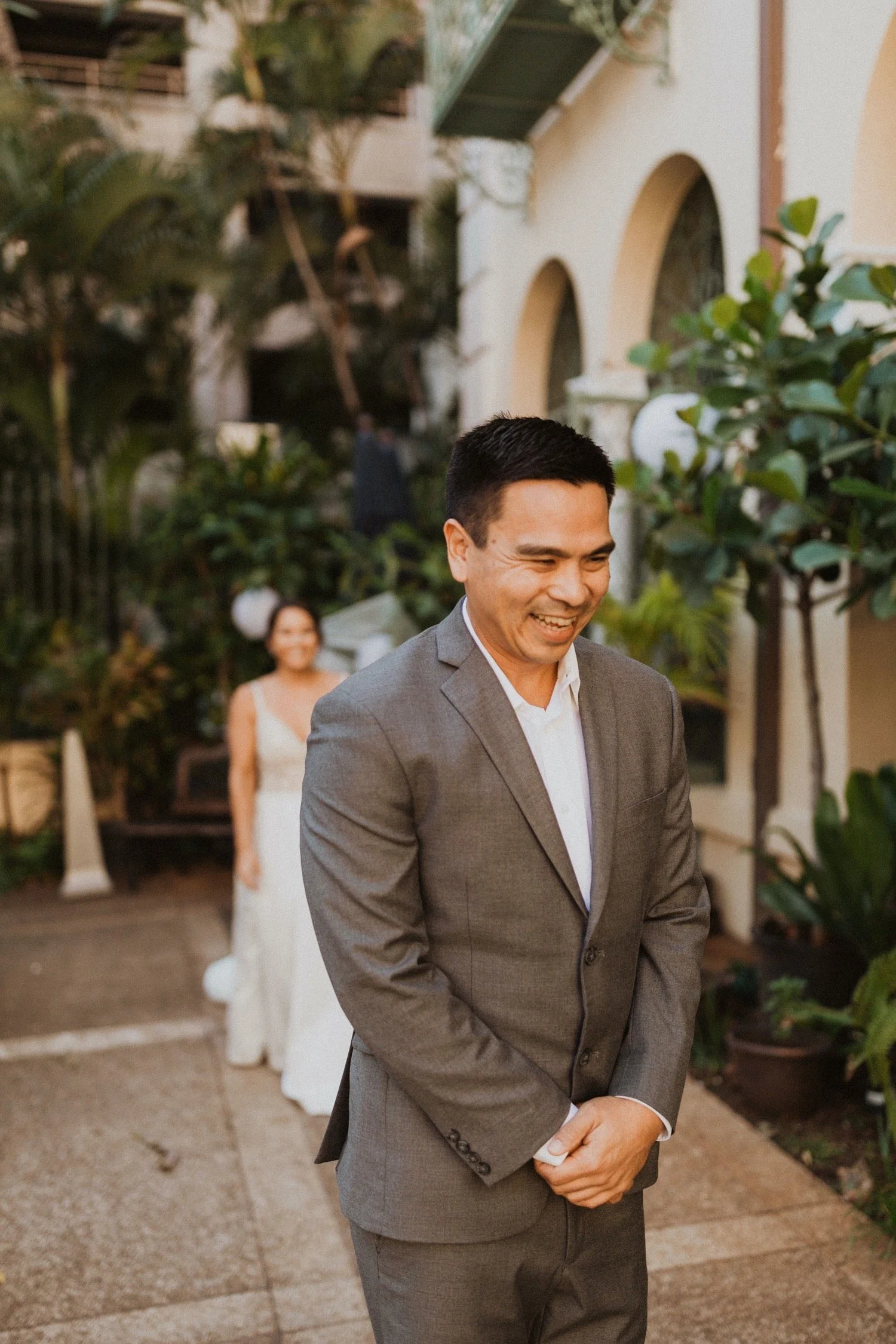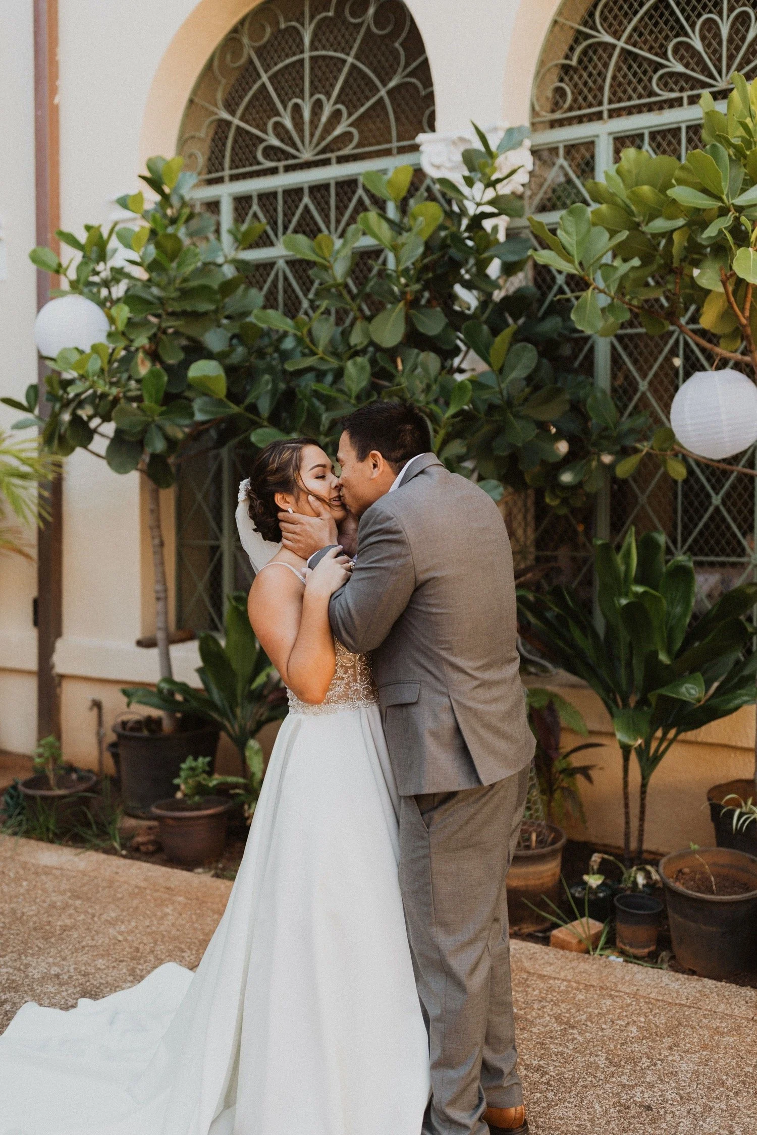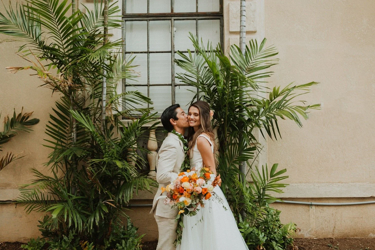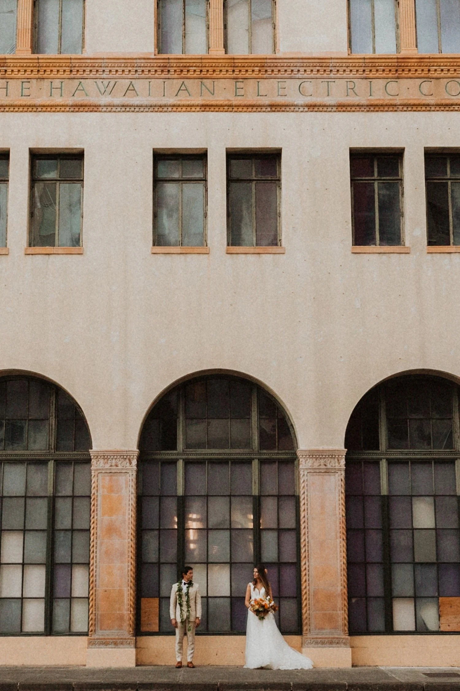 Cafe Julia is my one and only town wedding venue recommendation! It is a hidden treasure in the heart of Honolulu and the perfect spot for any wedding in town. I adore Cafe Julia and the way it GLOWS beside all the history in downtown Honolulu. The beautiful courtyard with arched walls is the perfect place for a romantic wedding ceremony. Each little corner of this venue is so gorgeous and so much variety! I always sneak away with my couples during sunset for some amazing city-scape bridal portraits around downtown!