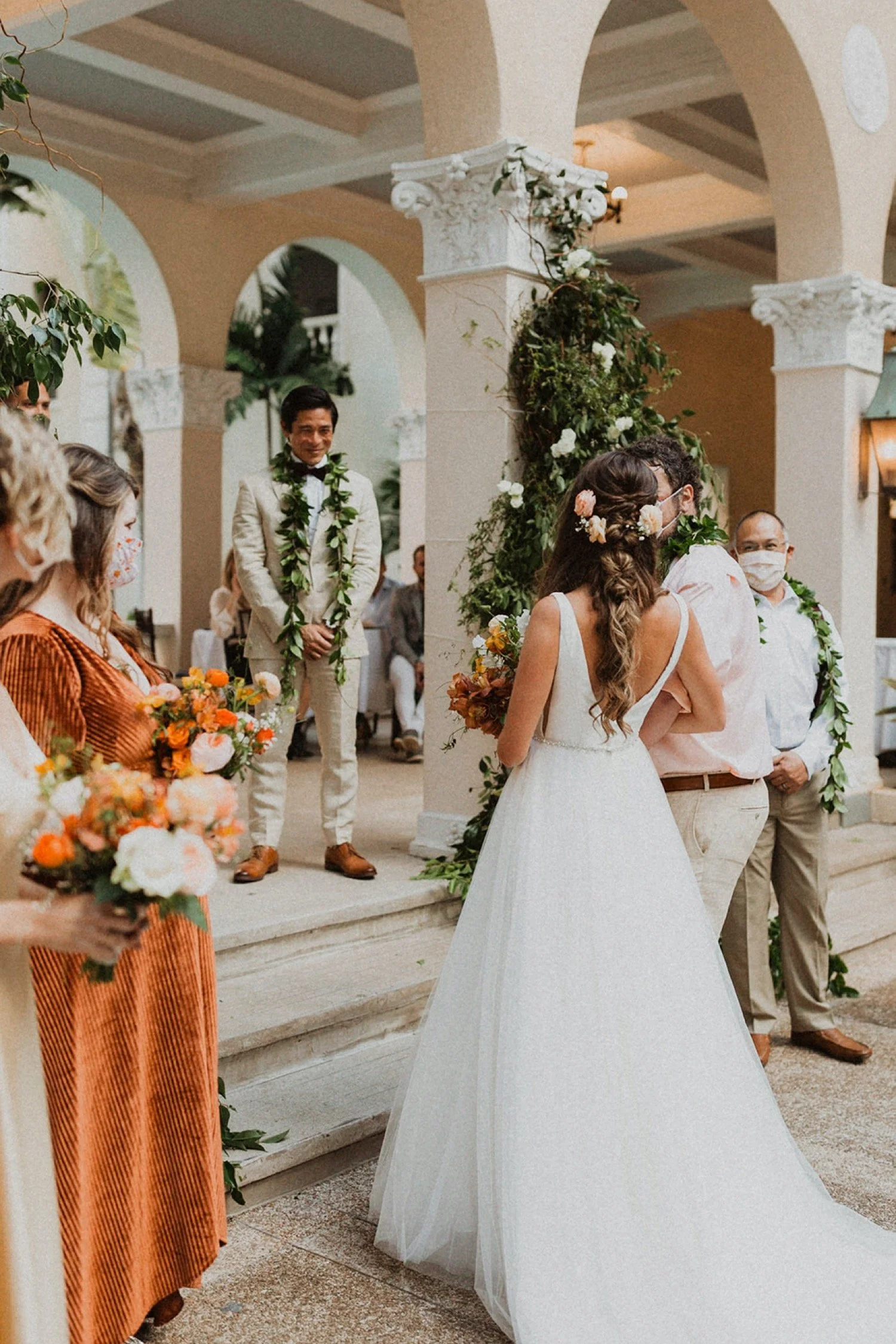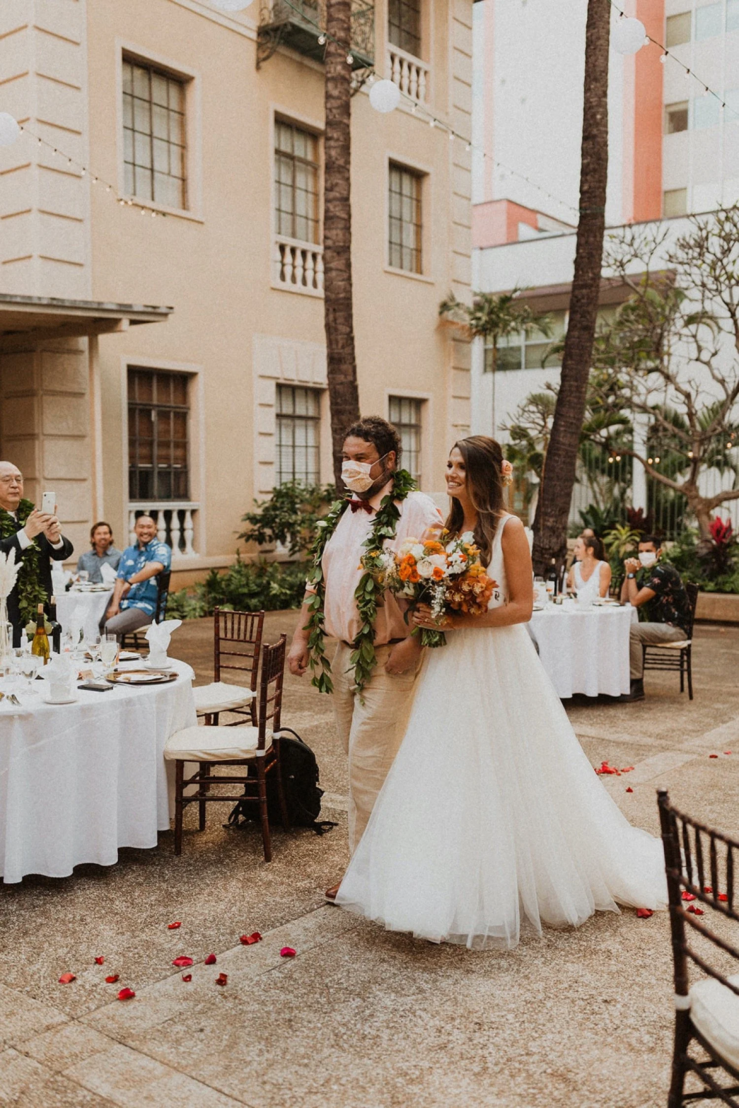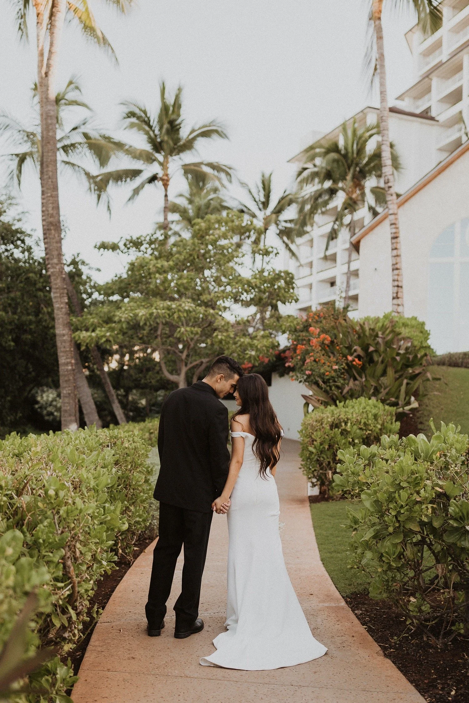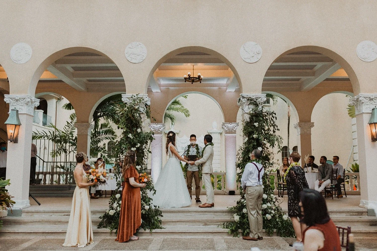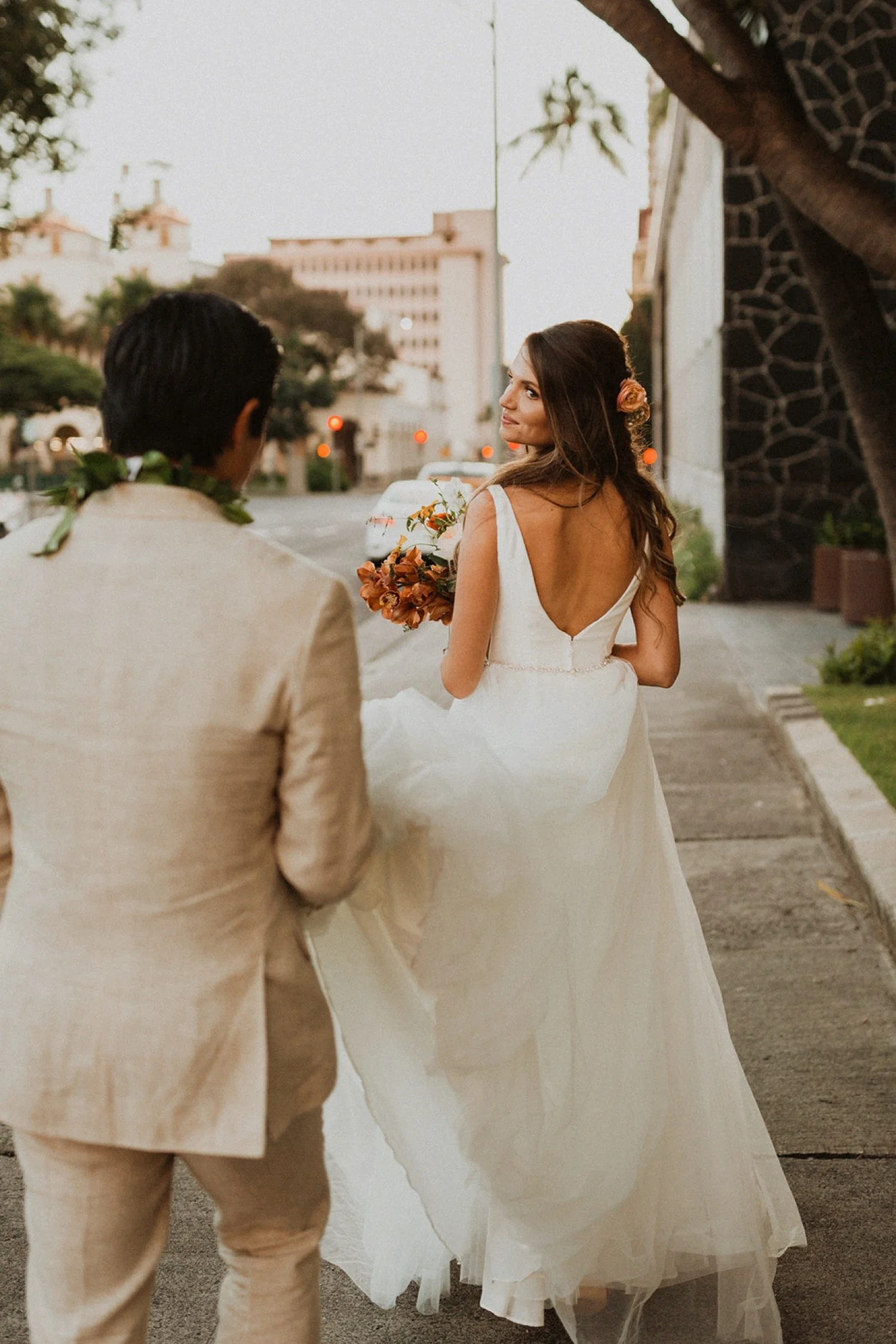 Cafe Julia is my one and only town wedding venue recommendation! It is a hidden treasure in the heart of Honolulu and the perfect spot for any wedding in town. I adore Cafe Julia and the way it GLOWS beside all the history in downtown Honolulu. The beautiful courtyard with arched walls is the perfect place for a romantic wedding ceremony. Each little corner of this venue is so gorgeous and so much variety! I always sneak away with my couples during sunset for some amazing city-scape bridal portraits around downtown!
