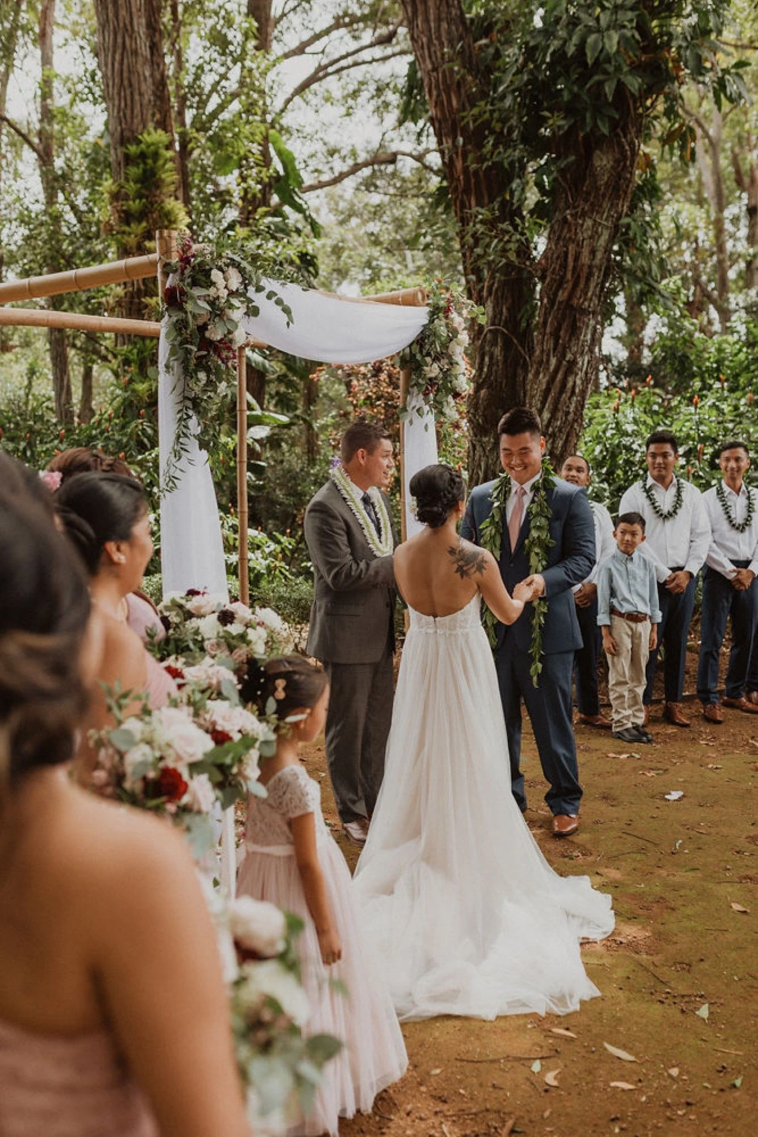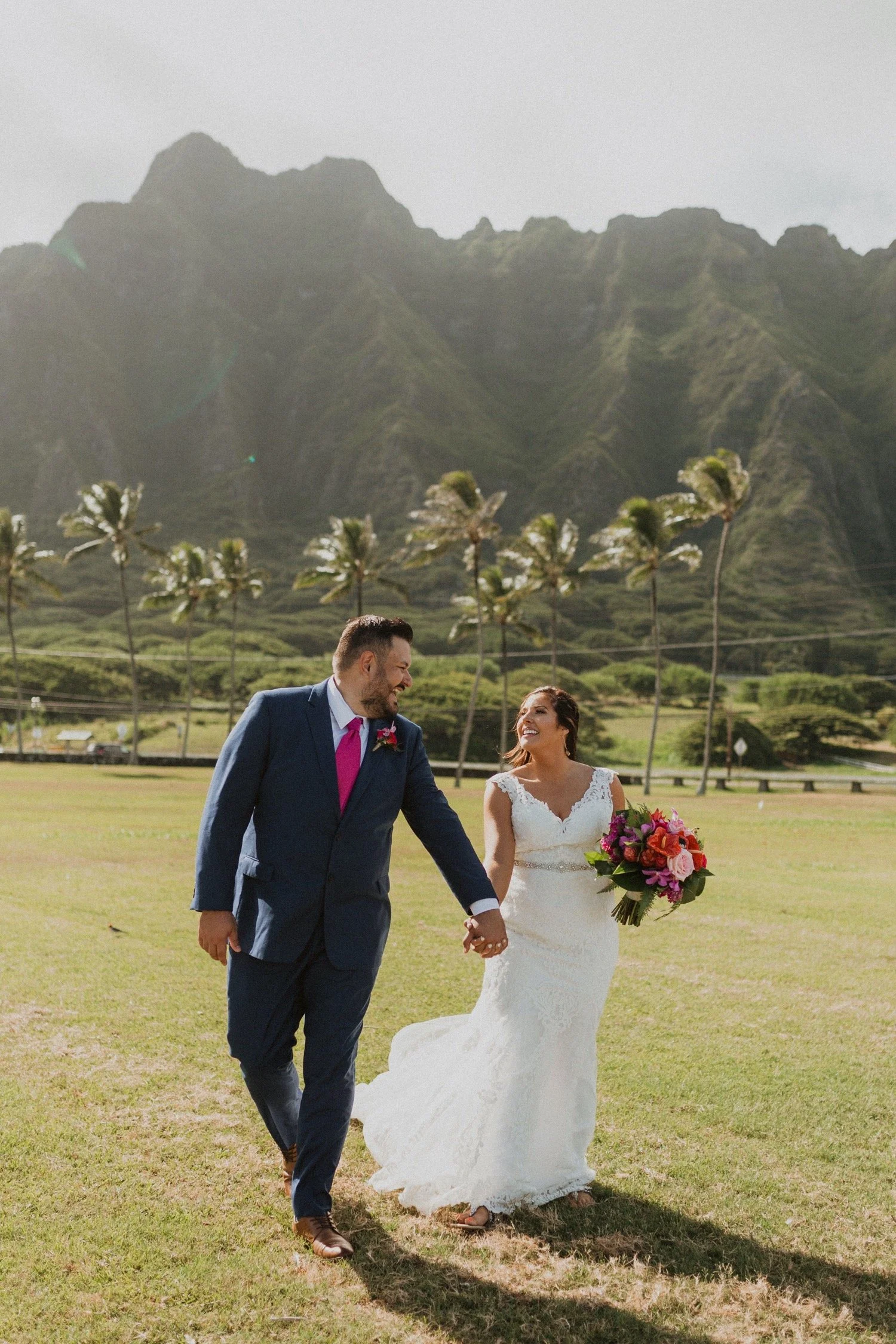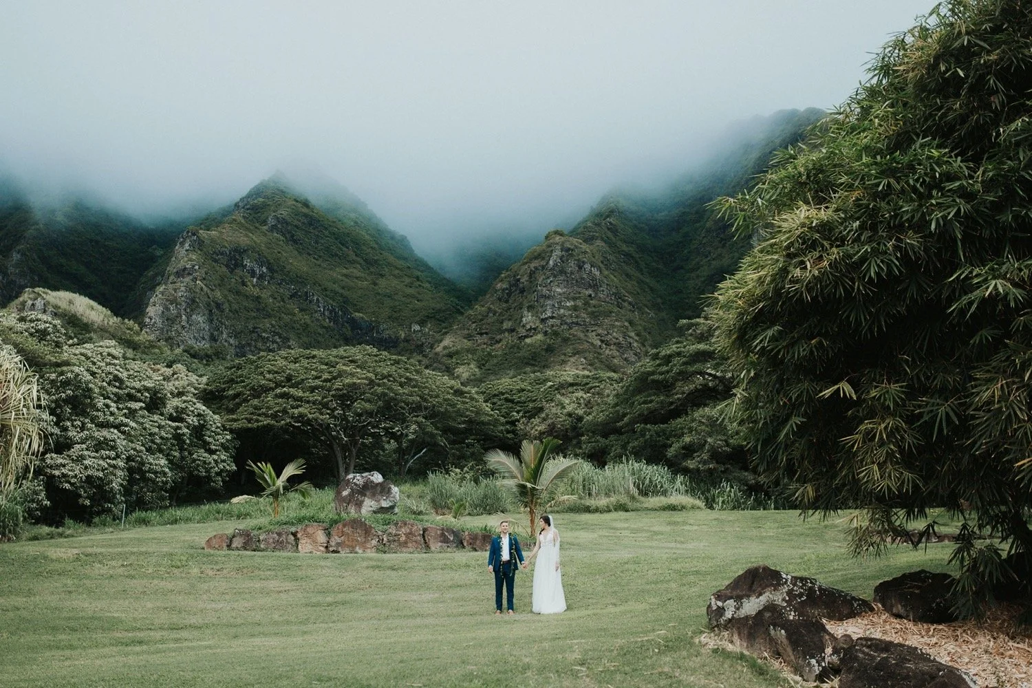 Kualoa Ranch is one of the most well known locations on Oahu and one of my favorite wedding venues in Hawaii. This location has been used in some well known films like jumaji and Jurrasic Park. It is on such a beautiful property and such an amazing place to get married! They have so many different venue locations which are all so unique and absolutely gorgeous. There is something for everyone with locations in front of huge green mountains, jungle vibes, and breathtaking views of the ocean. I personally love ceremonies at low camp and receptions at Paliku gardens or Hale Nanea.