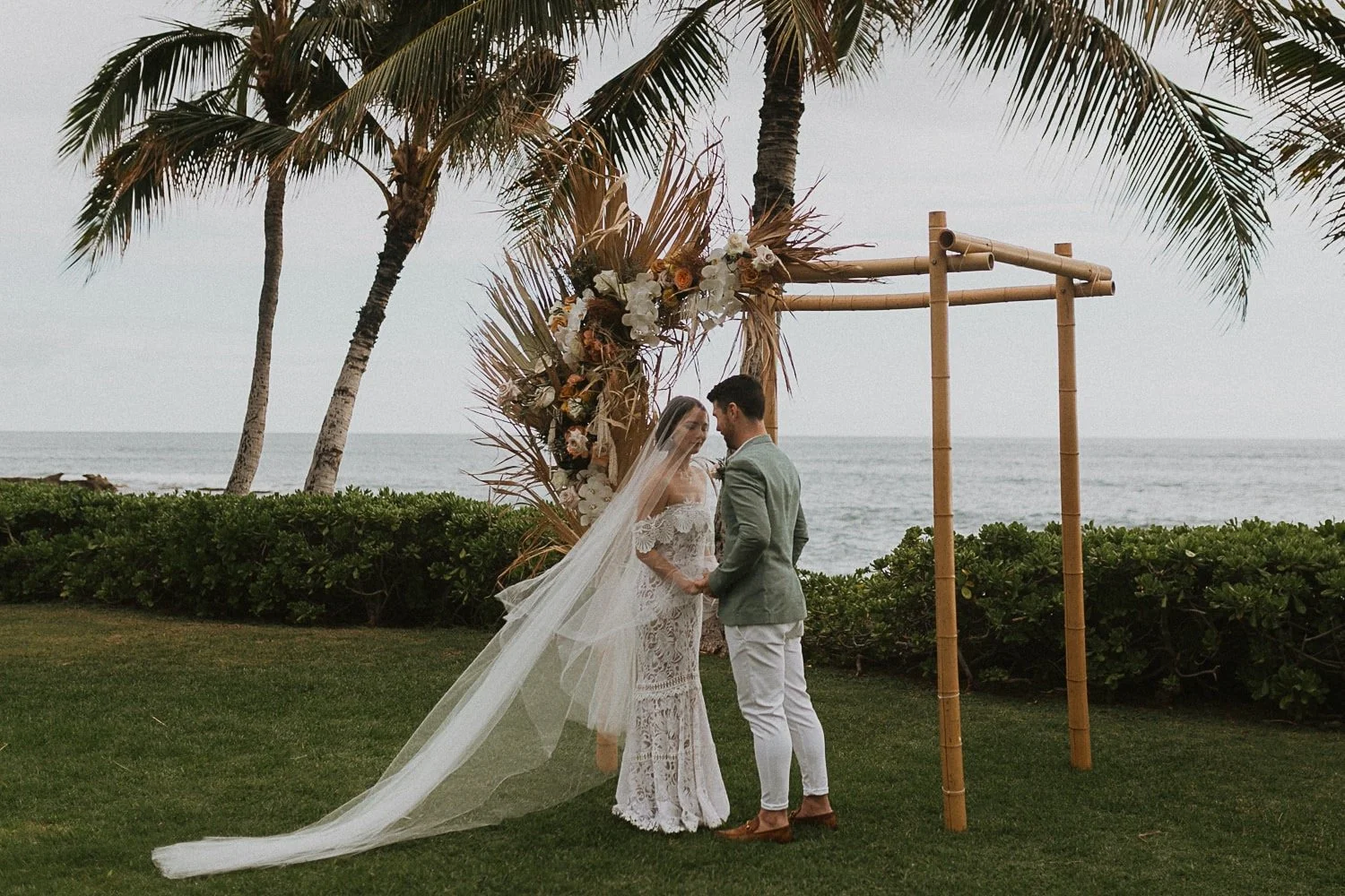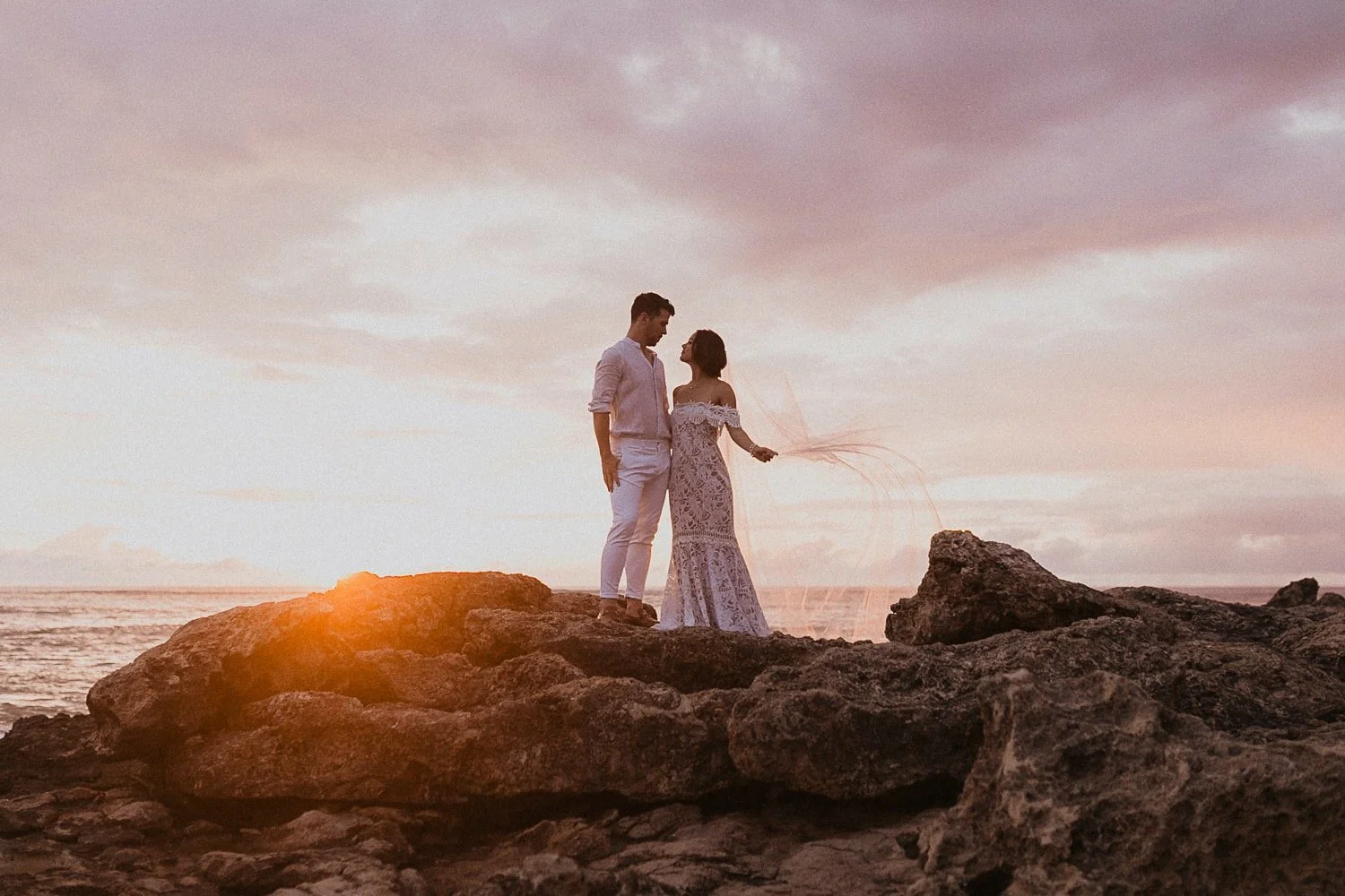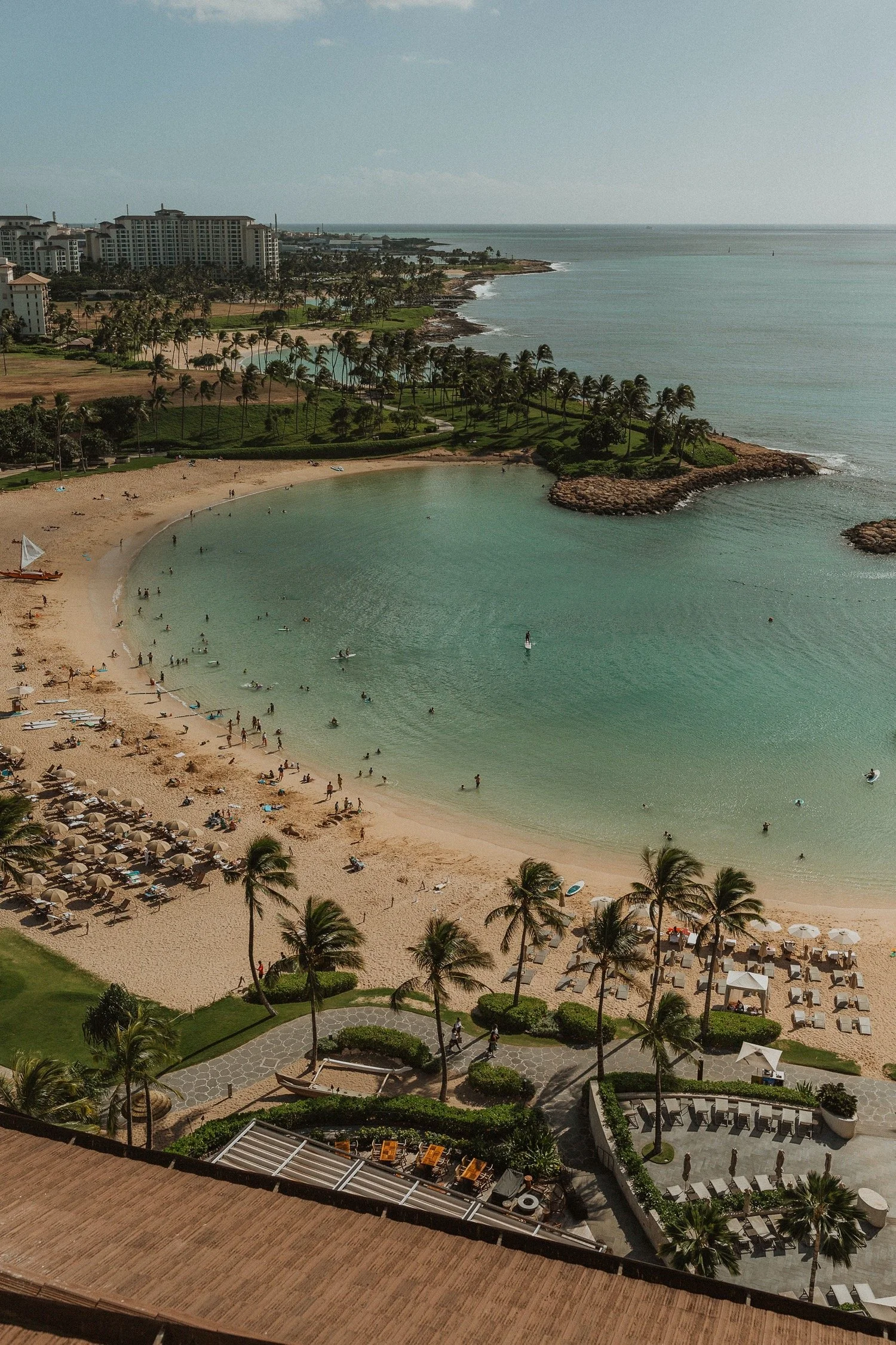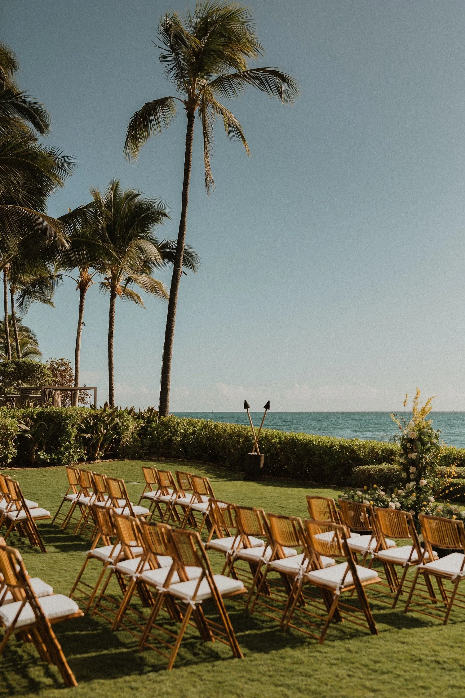 The Four Season Oahu is definitely one of my favorite wedding venues in Hawaii! It is located next to a serene lagoon on the west side of Oahu and truly incorporates the beauty of Hawaii in each location. I adore when couples do an intimate ceremony in the sun-lit chapel and receptions on the ocean front lawn! The sunset views at the Four Seasons Oahu are some of the best on the Island. Every ounce of this resort is gorgeous from their tropical gardens, and beautiful getting ready rooms for photos. The lighting at this Hawaii wedding venue is PERFECT and such a gorgeous and romantic location!