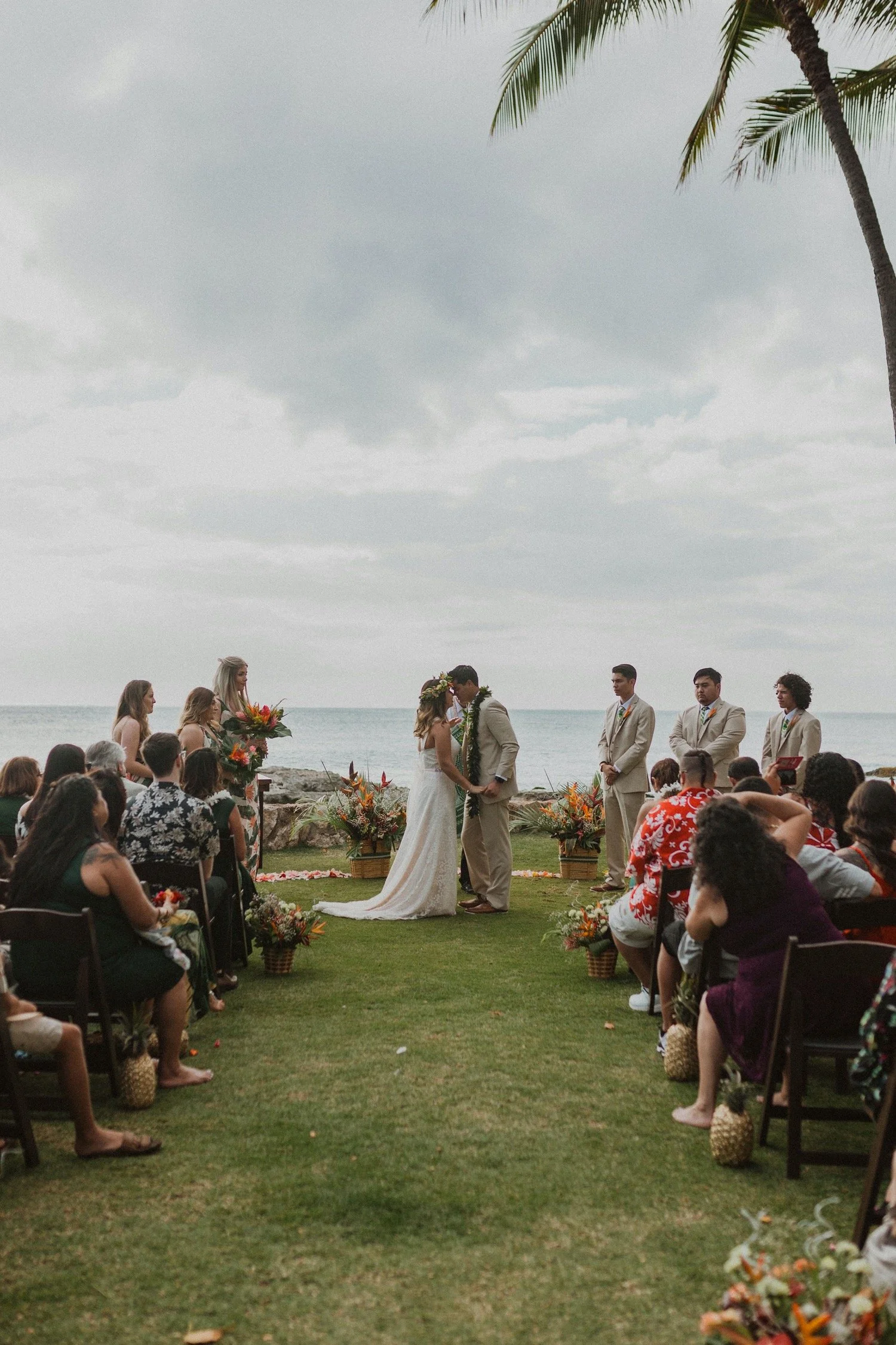 This Hawaii Wedding venue – Paradise Cove has so many options. They have several different venue rental locations from the cutest chapel, beachfront lawn or on the sand surrounded by the crystal clear ocean. Located on the west side, you are sure to see a gorgeous sunset. I love this little west side gem so much! There is SO much potential here to create your dream Hawaii wedding day and to create some amazing memories!
