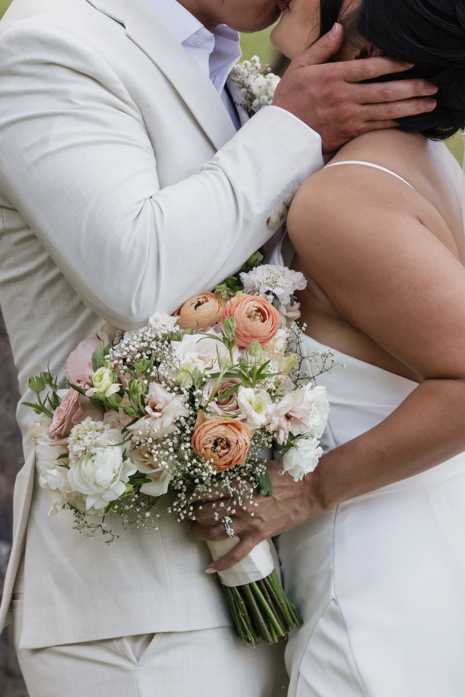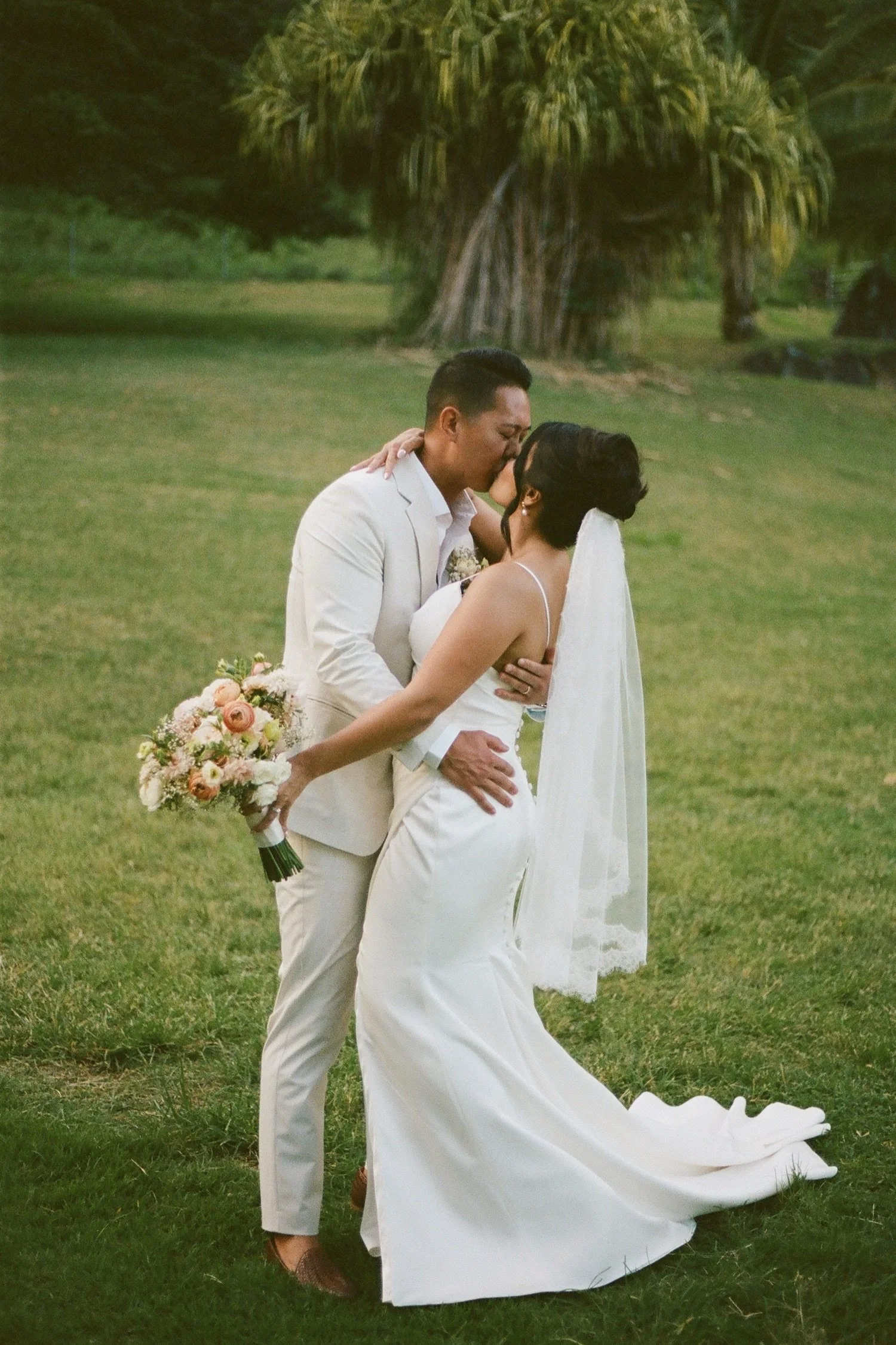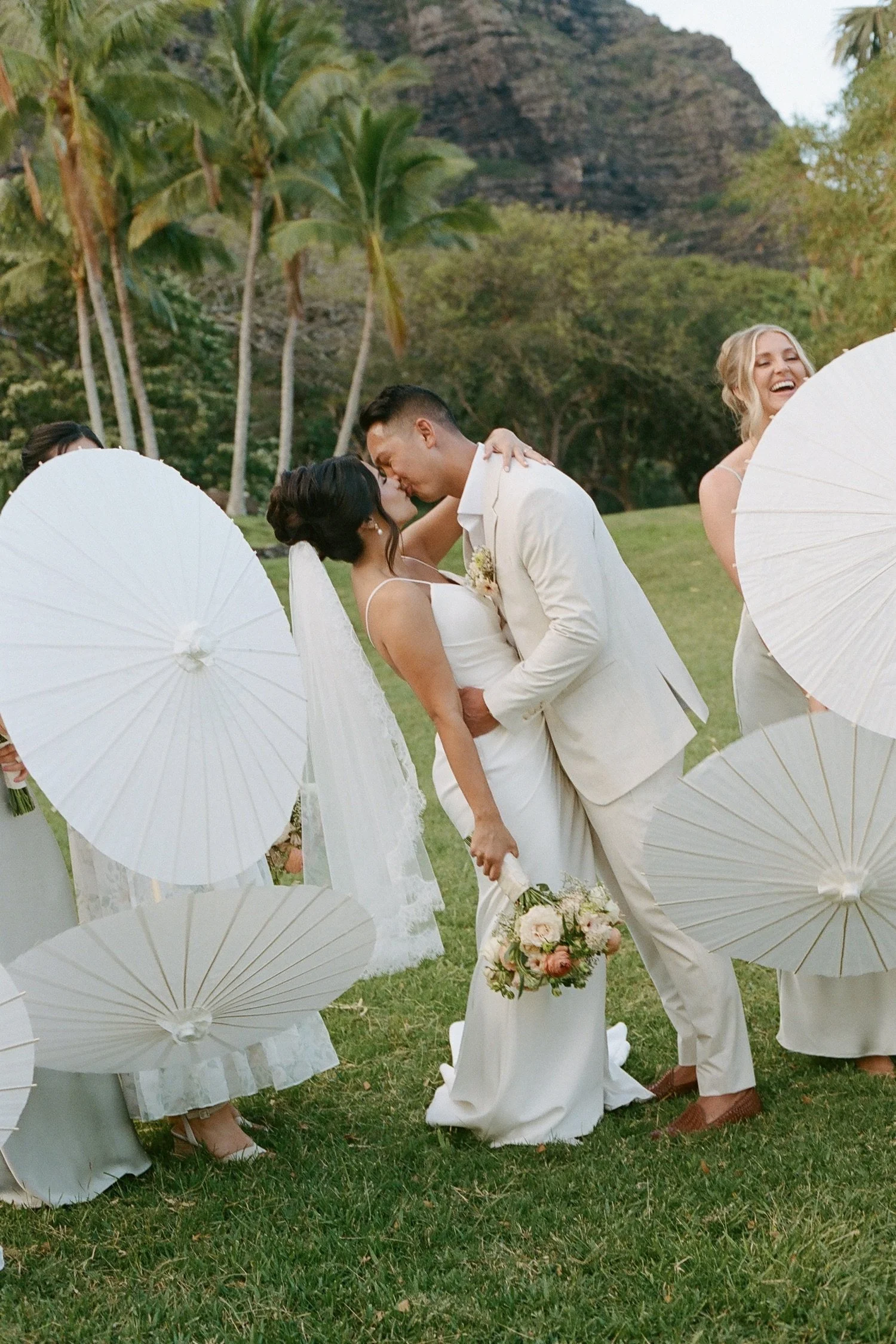 While my digital photos are the main way I document any wedding, I have my film camera at the ready at all points throughout the day. With Sandy and Mitch’s wedding day at Kualoa Ranch for example, I was able to incorporate these film photos in moments both big and small from the day. Whether it’s their sweet and personal first look, or a stolen kiss during their first dance together, these photos help to accentuate and elevate the story of the wedding day.