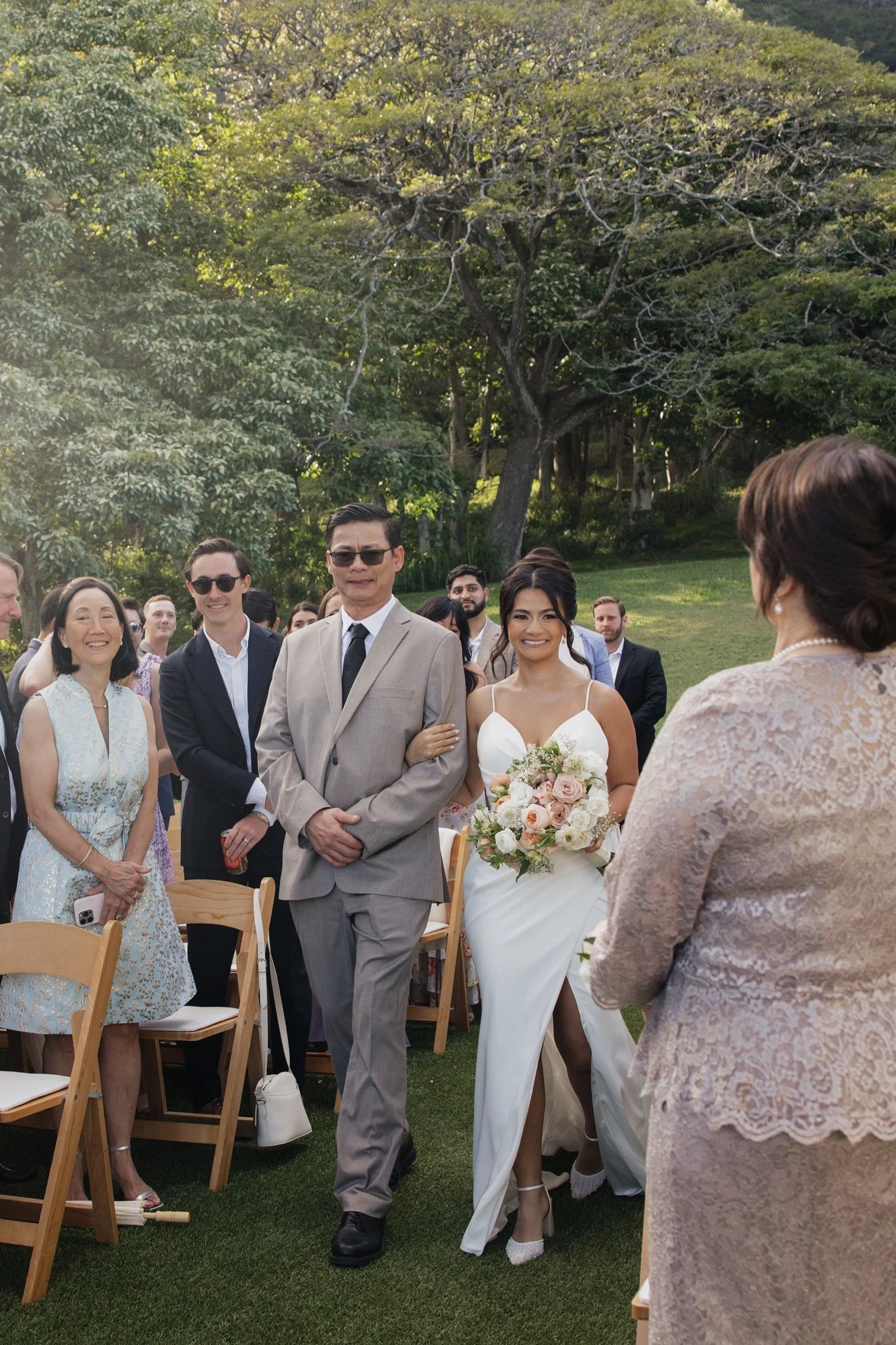 When it comes to a distinct, breathtaking, and romantic setting for a wedding day here in Hawaii, there are few venues that fit this vision better than Kualoa Ranch on Oahu. This refined space perfectly mixes elegance and natural wonder to create a literal dream space for a timeless wedding. Sandy and Mitch’s wedding is one such experience, and a wonderful example of how to balance luxury vibes and style with intentional moments.